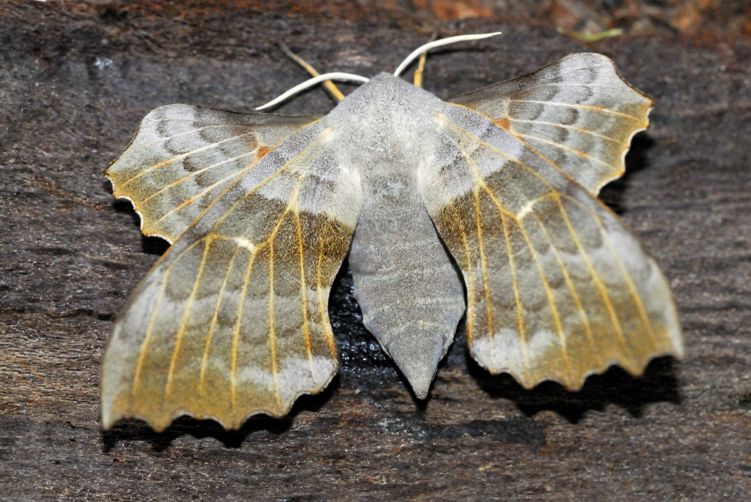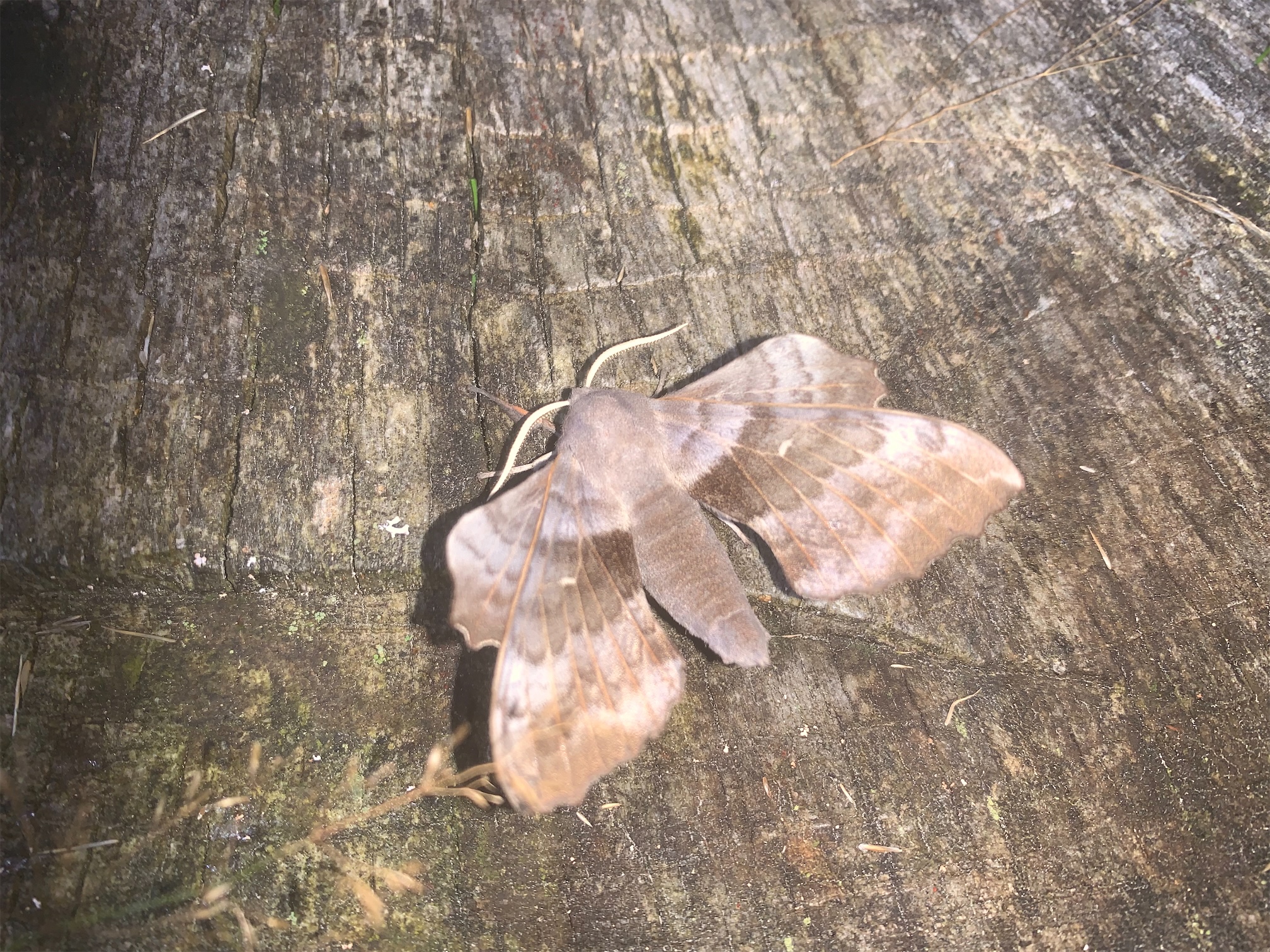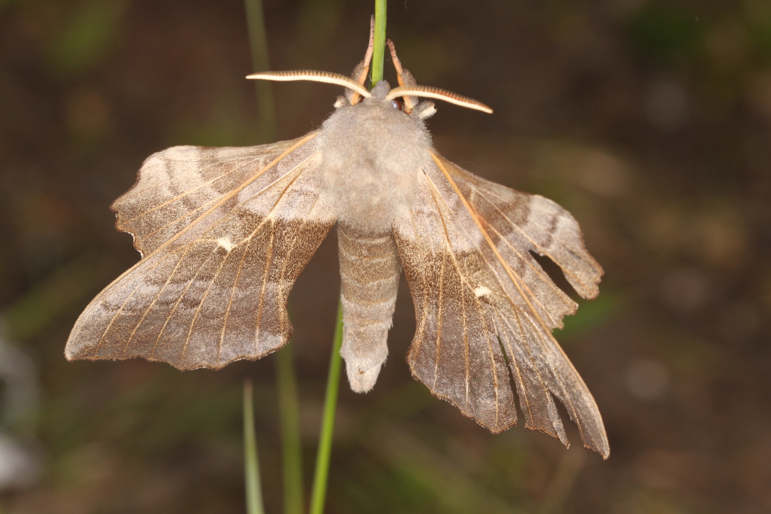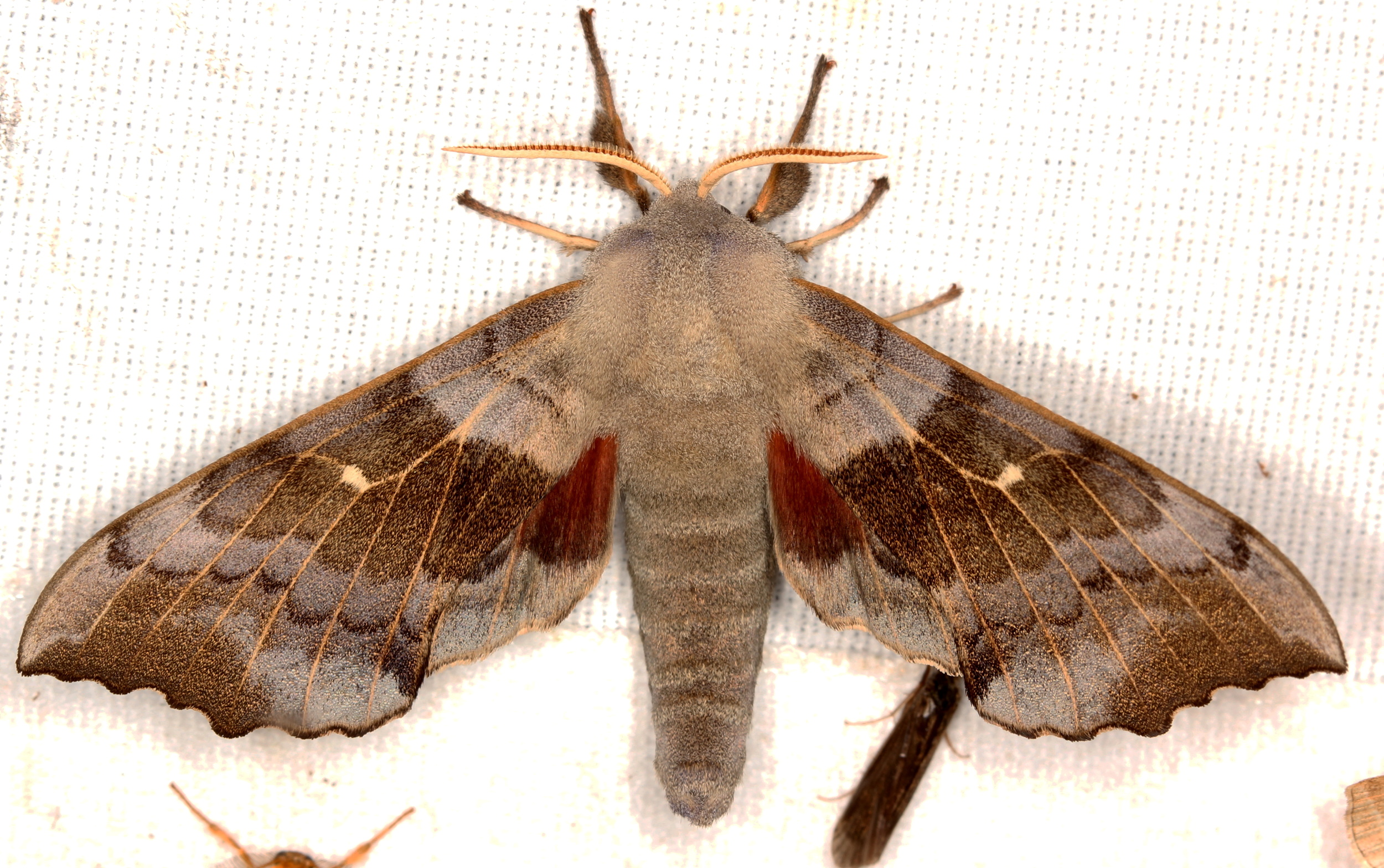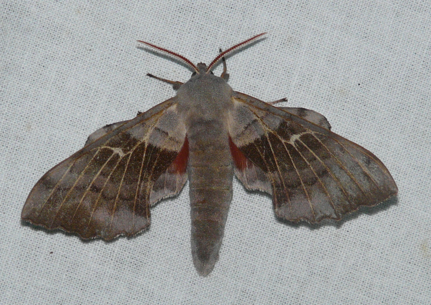 Laothoe populi (Linnaeus, 1758), Pappelschwärmer, Chemnitz-Zeisigwald//Planitzwiese, Anfang August 2014.