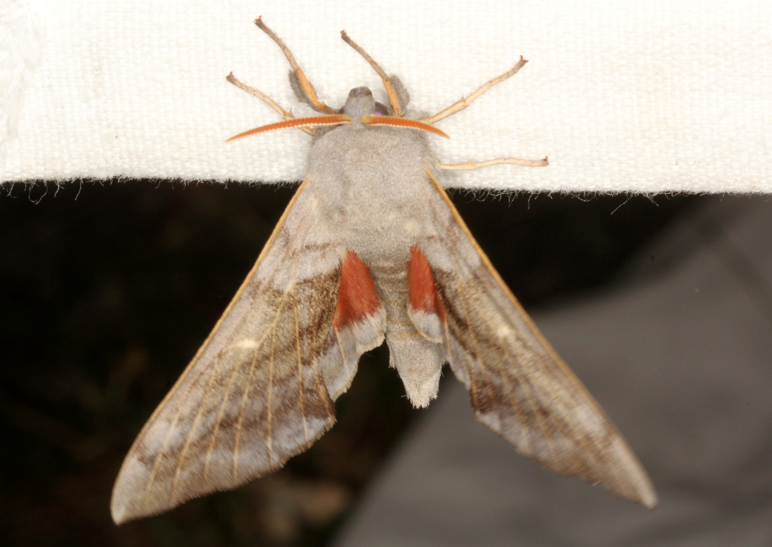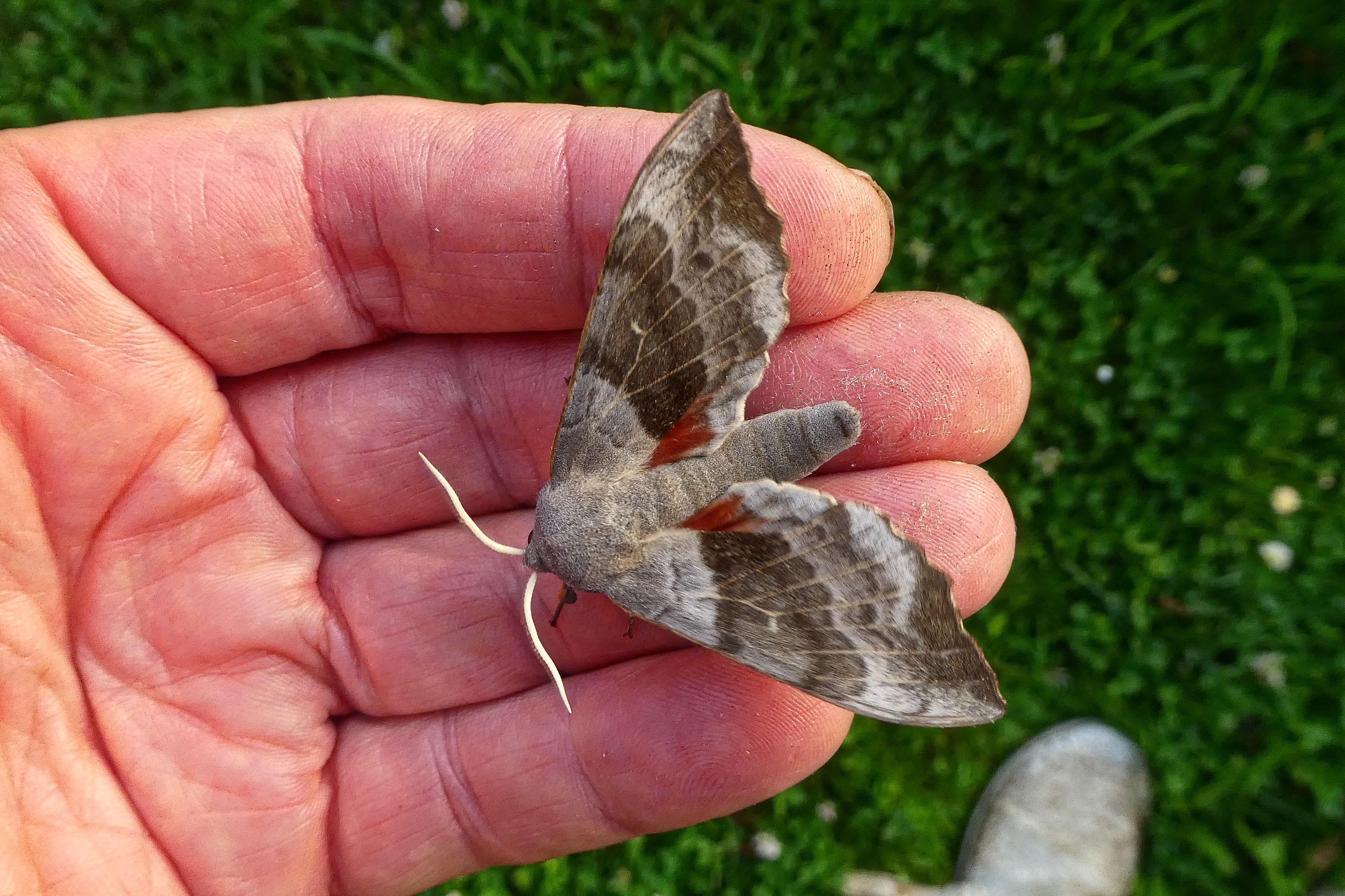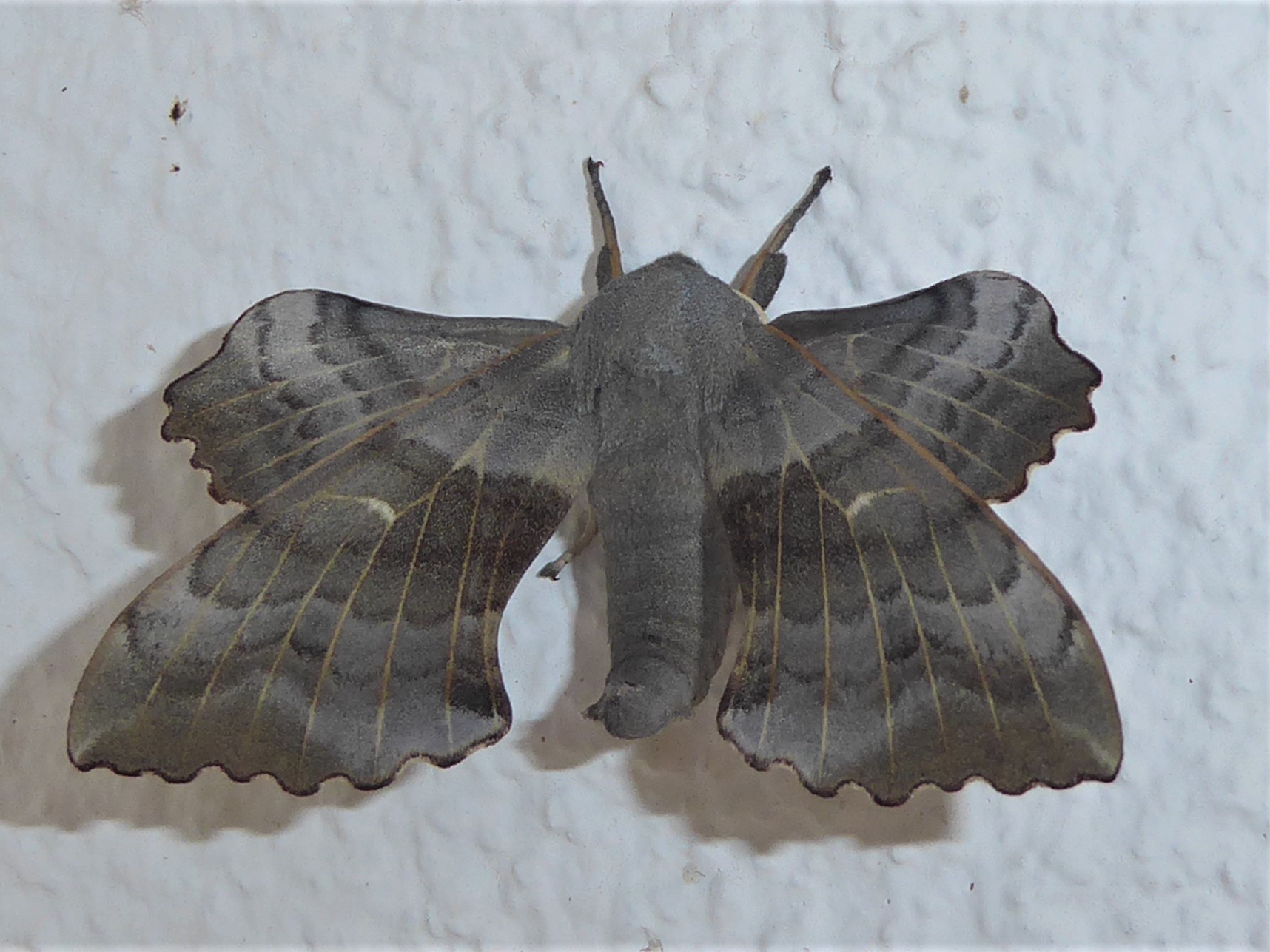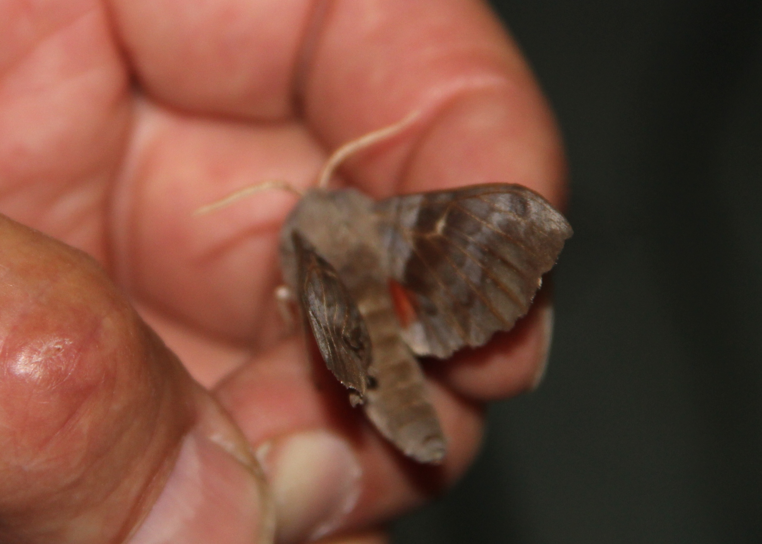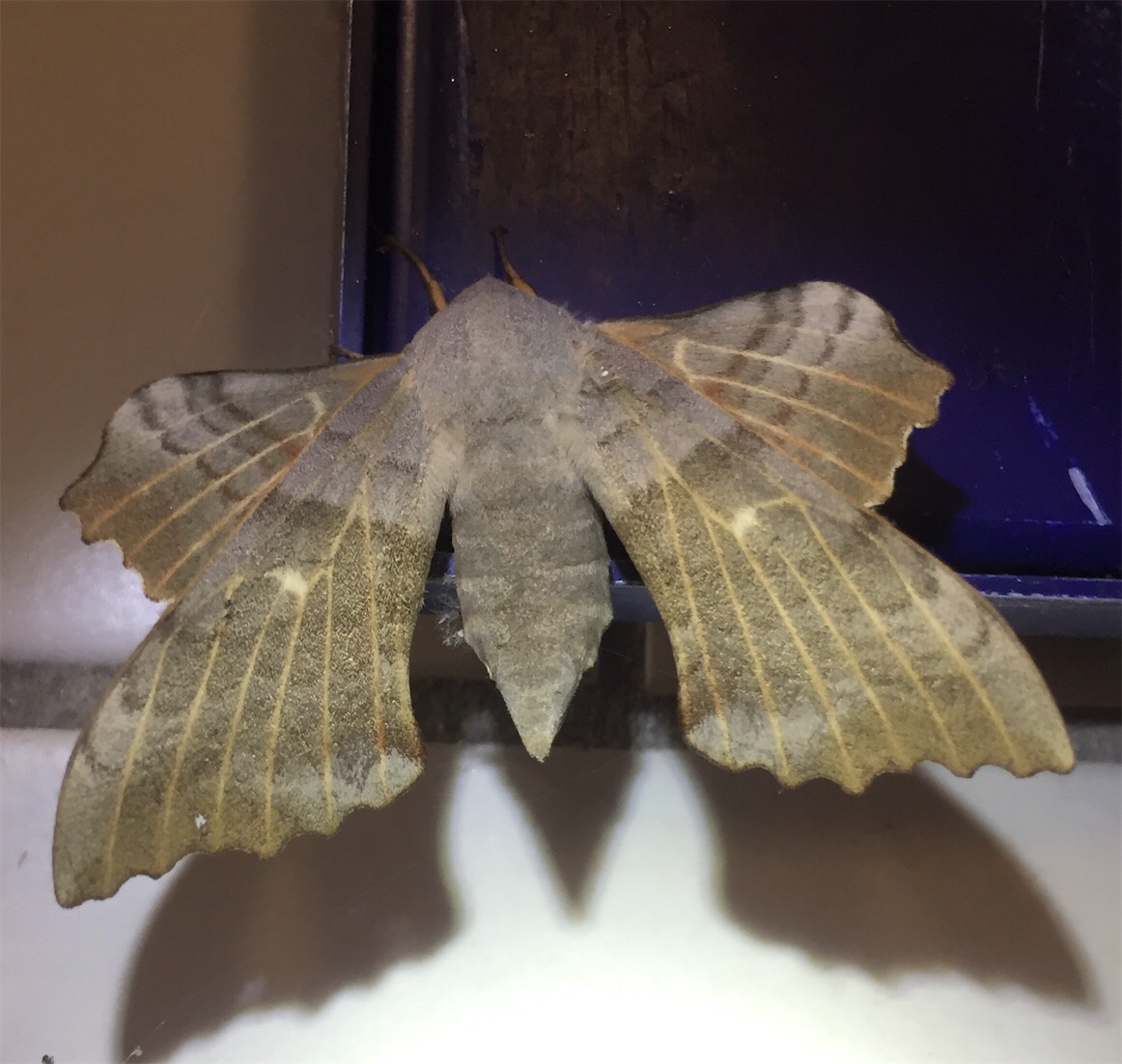Laothoe populi (Linnaeus, 1758), Pappelschwärmer, Chemnitz-Zeisigwald//Planitzwiese, Anfang August 2014.