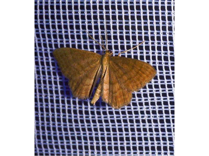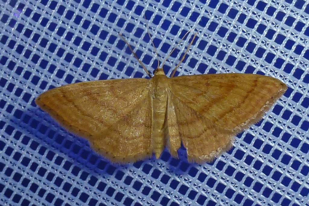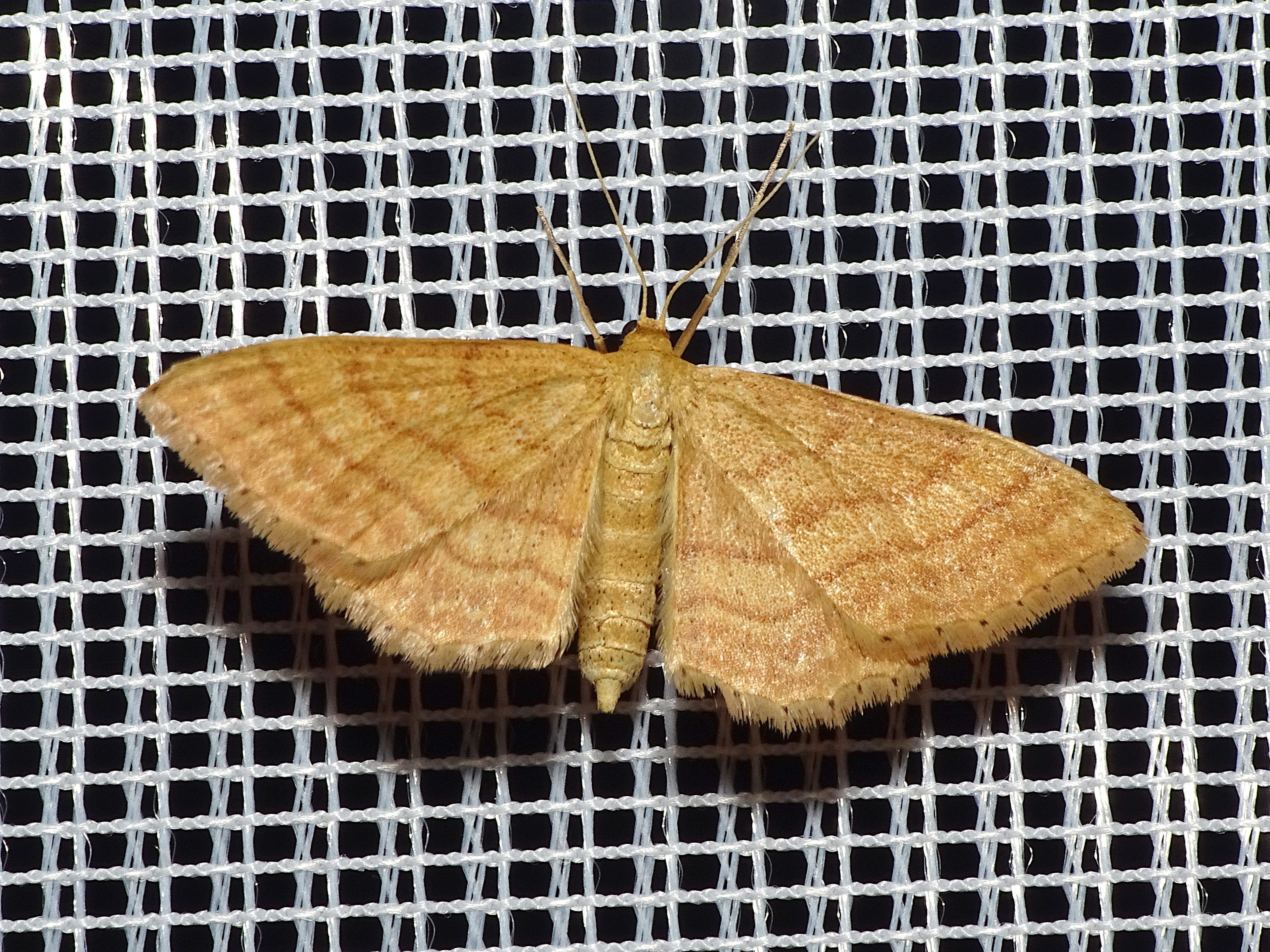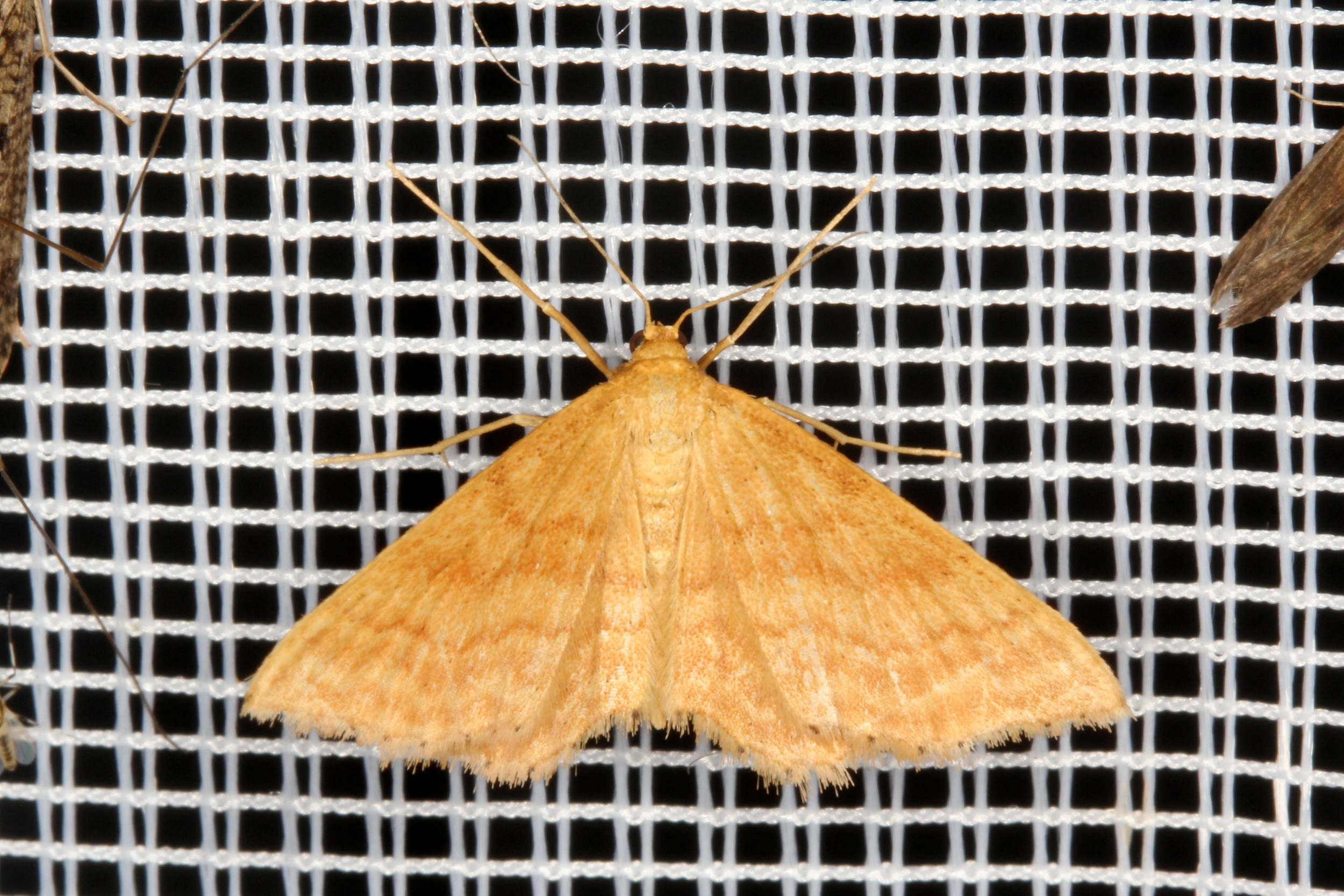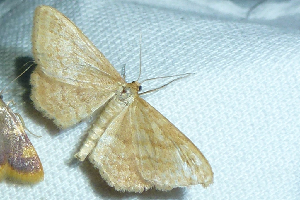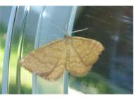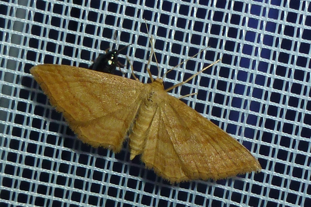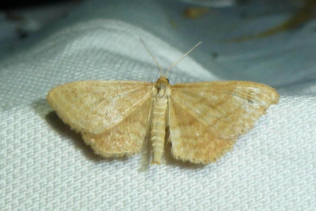 Ockerfarbiger Steppenheiden-Zwergspanner im Juni 2016 bei künstlichem Licht in Hohenprießnitz