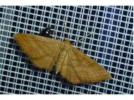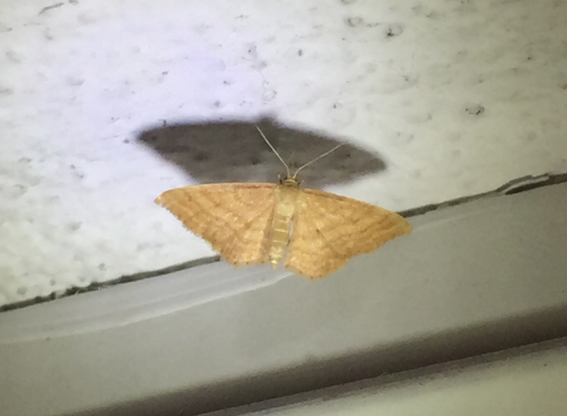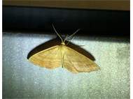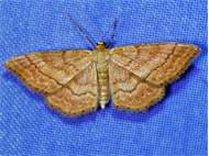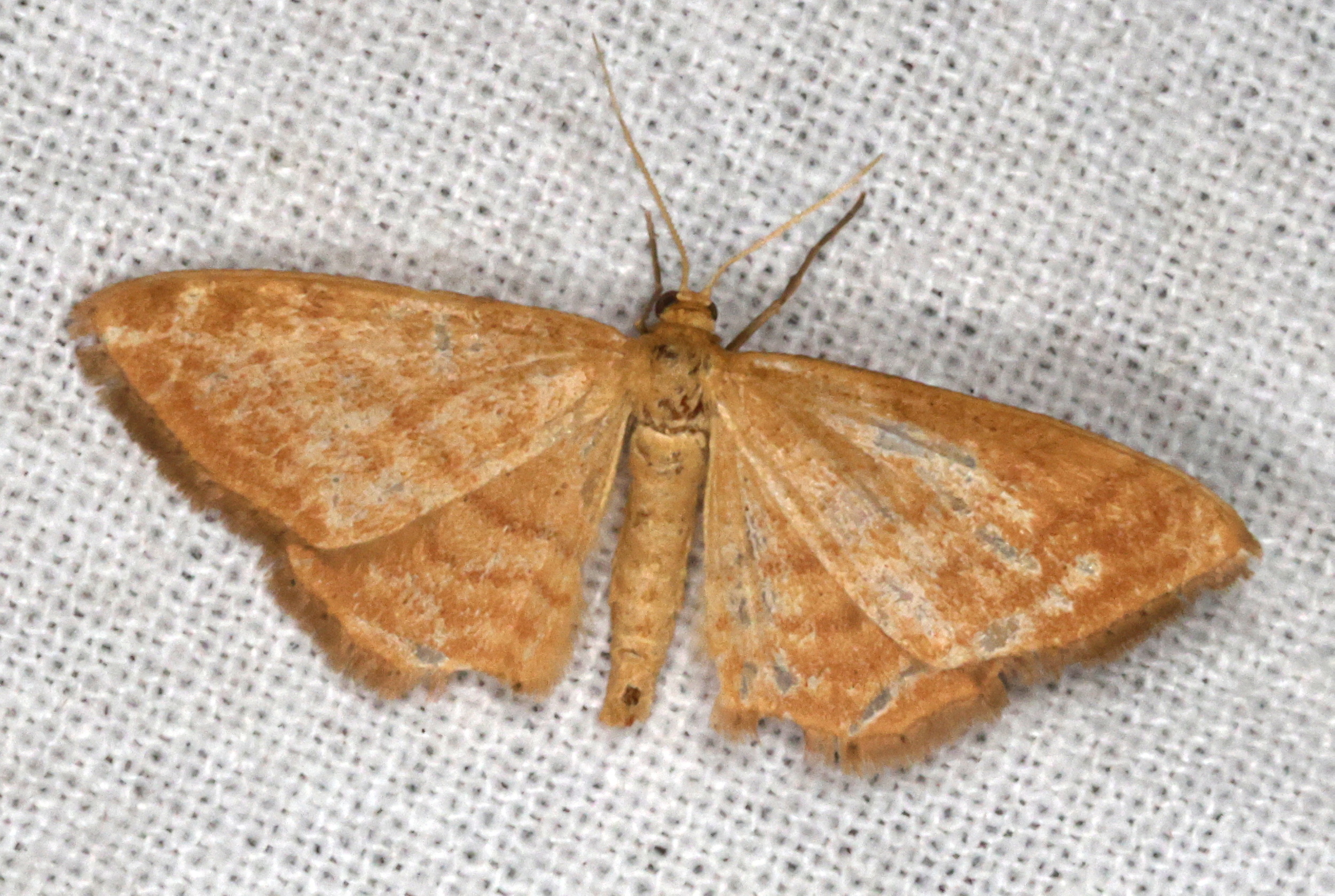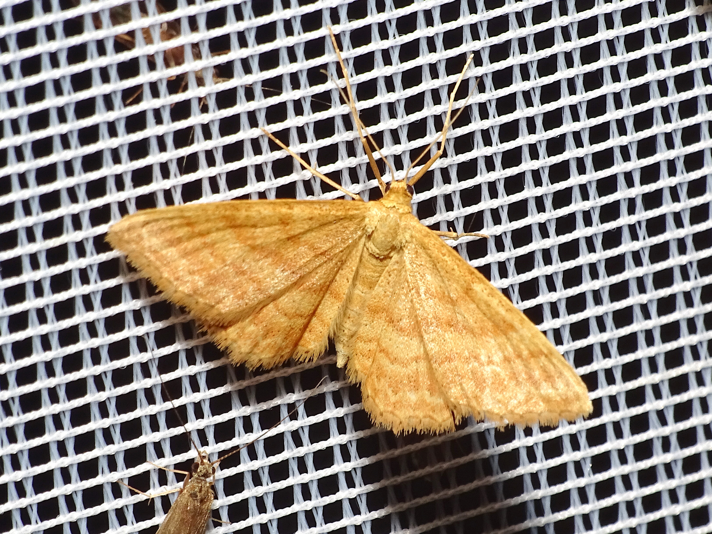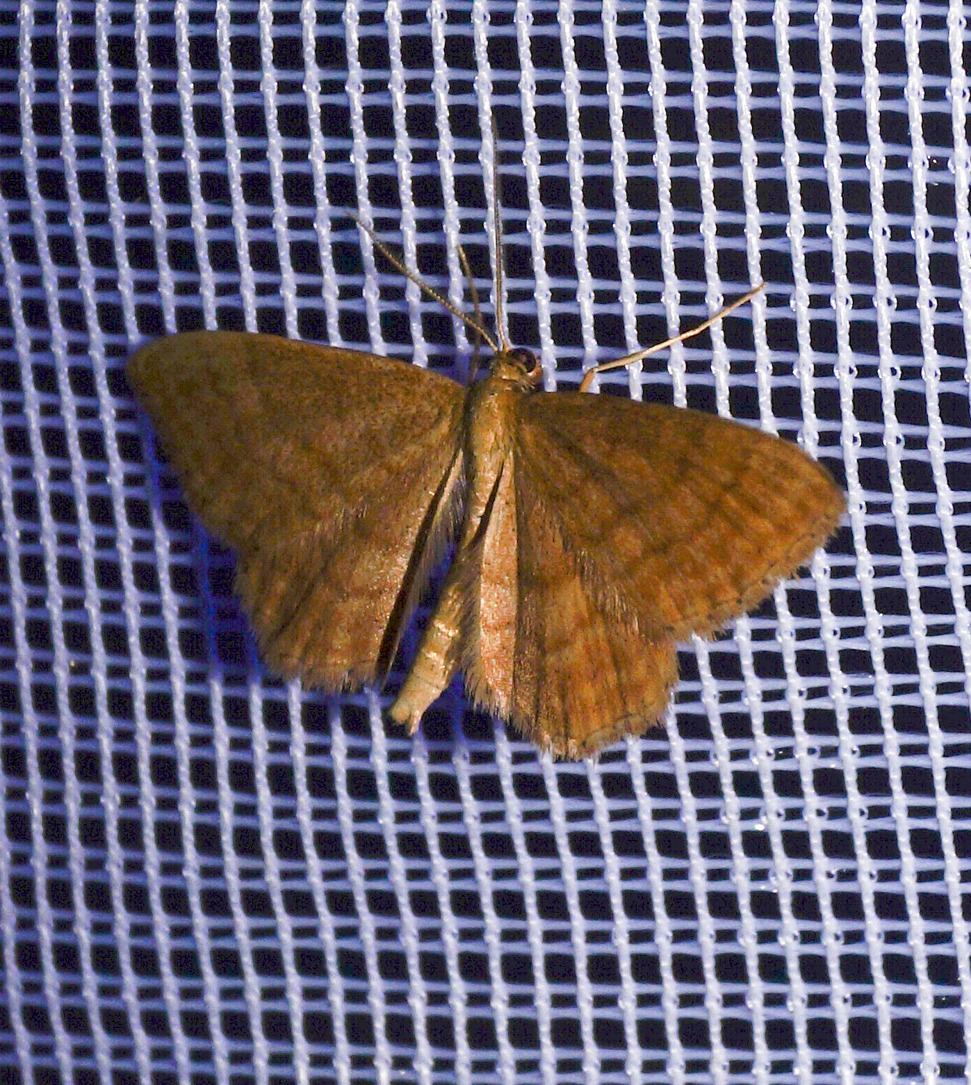 Ockerfarbiger Steppenheiden-Zwergspanner im Juni 2016 bei künstlichem Licht in Hohenprießnitz