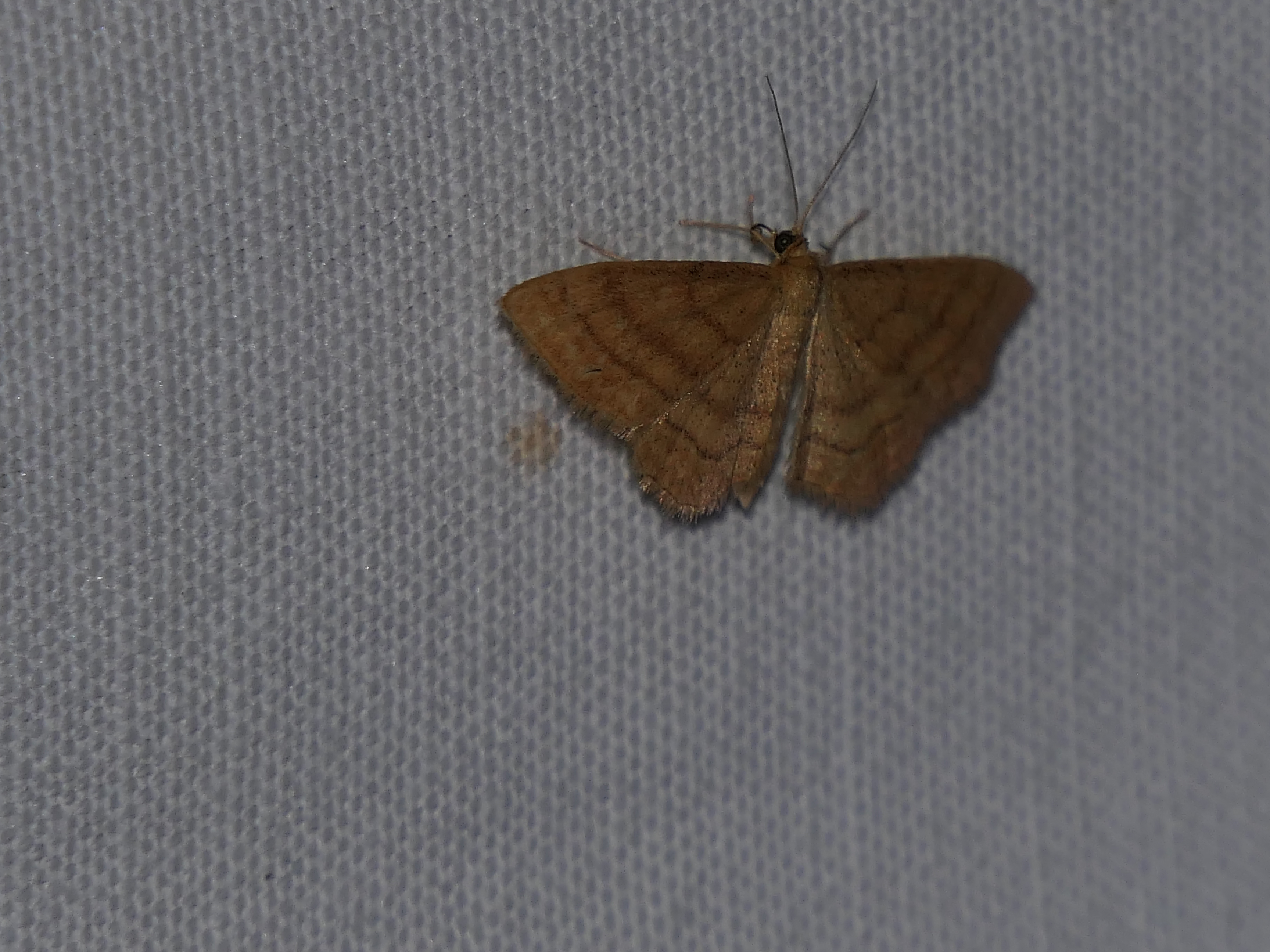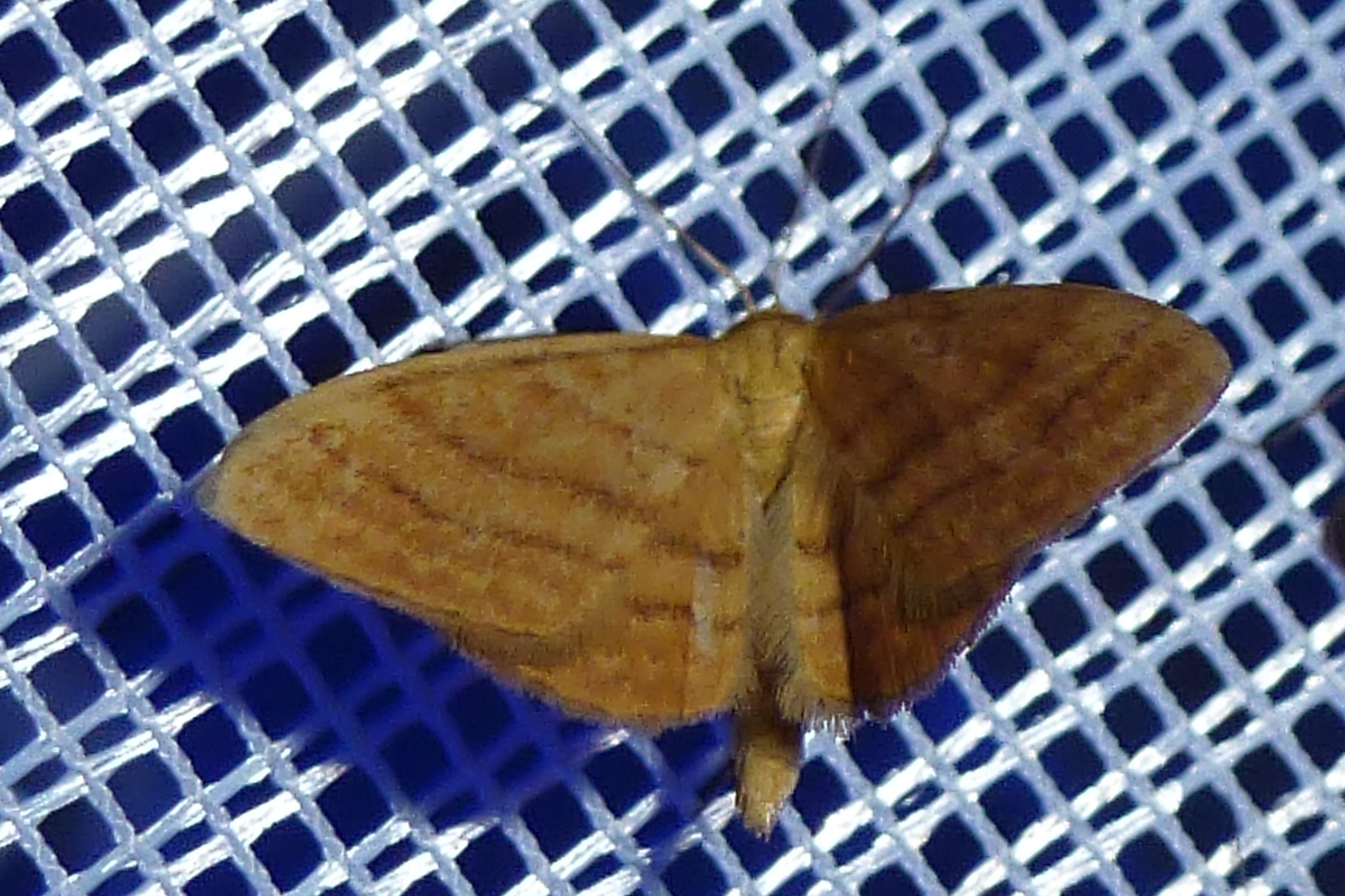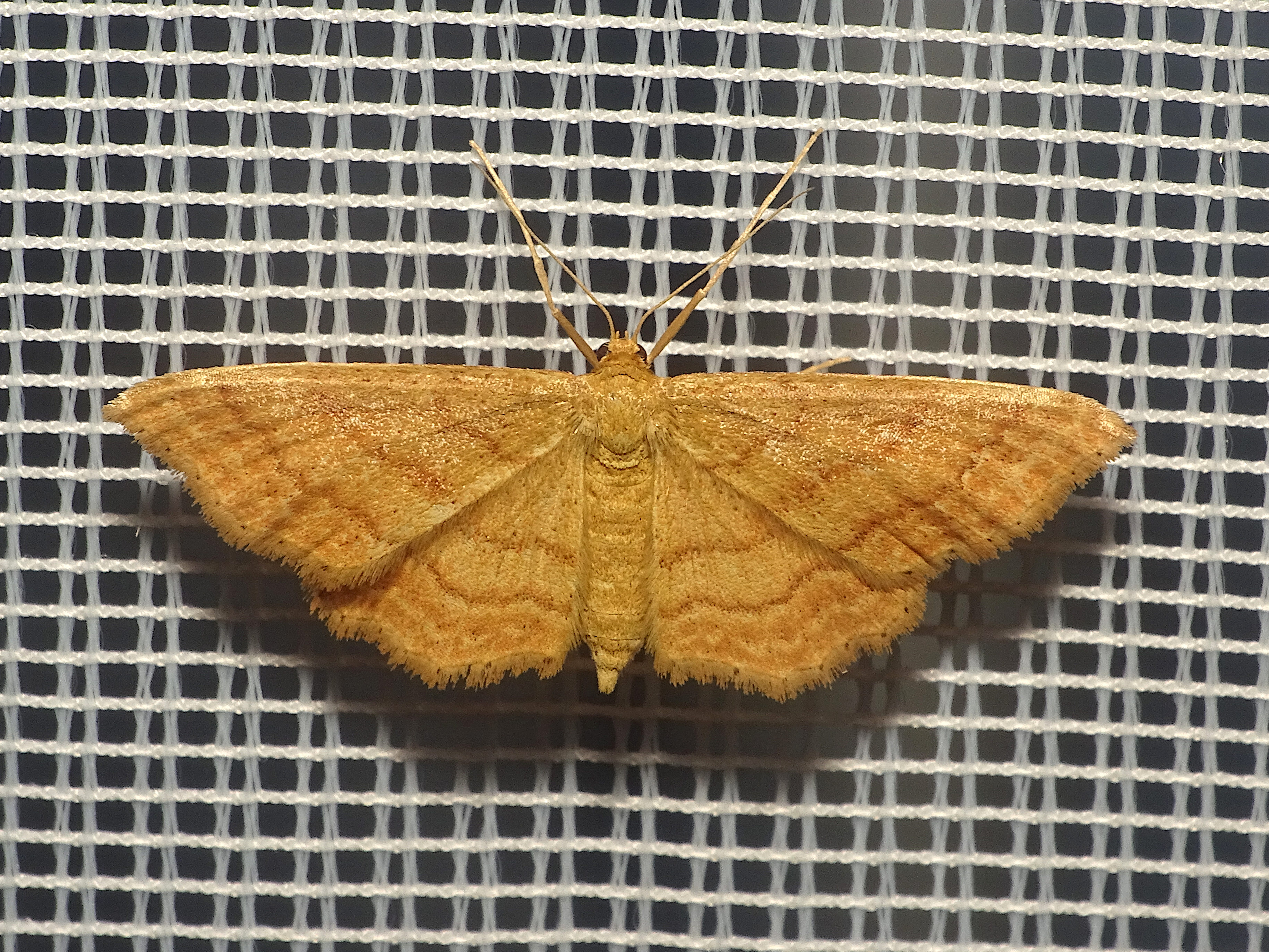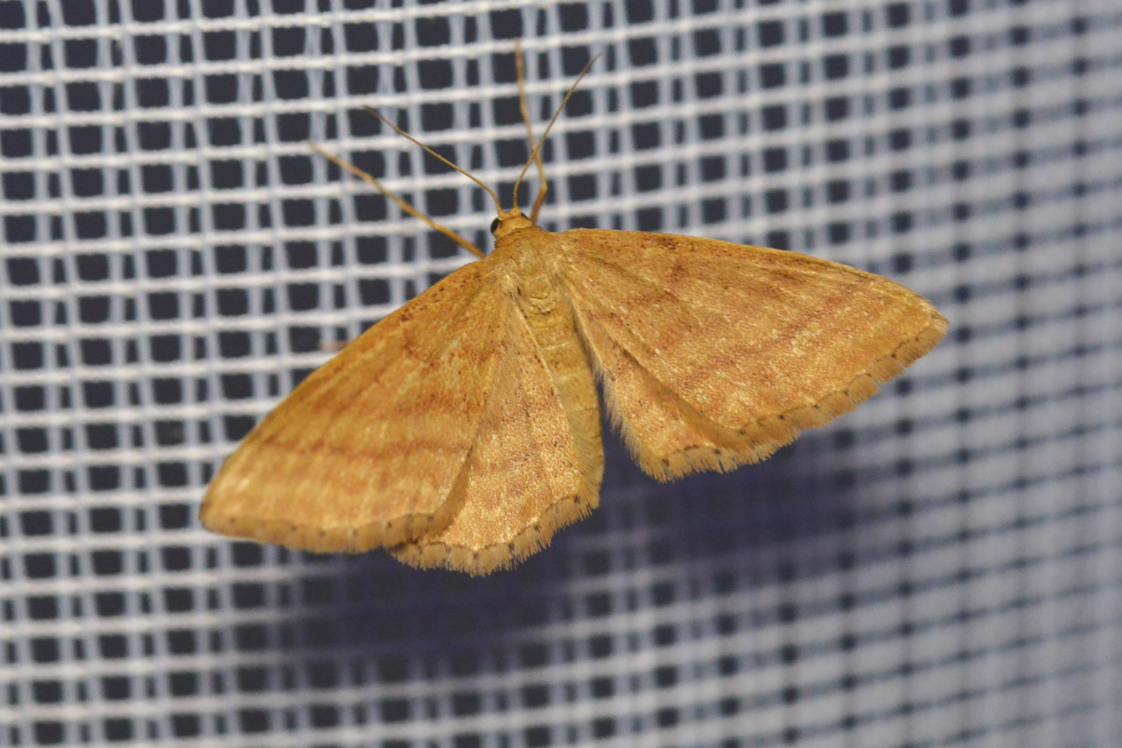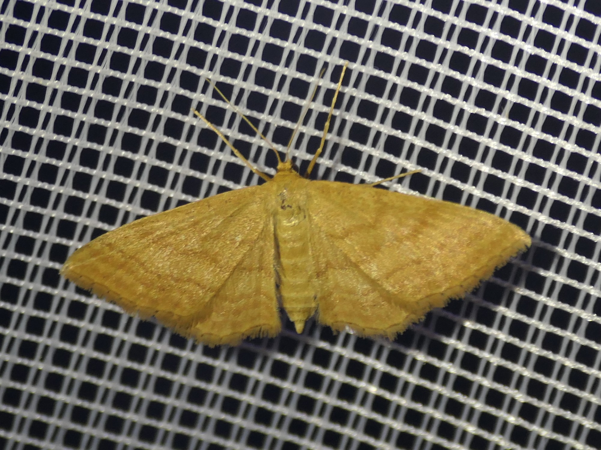 Ockerfarbiger Steppenheiden-Zwergspanner im Juni 2016 bei künstlichem Licht in Hohenprießnitz
