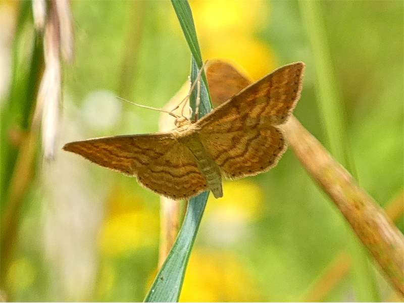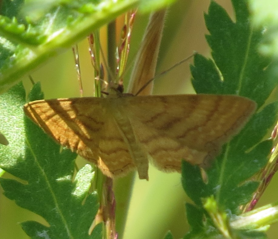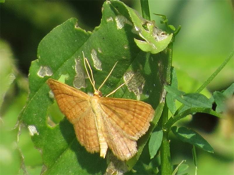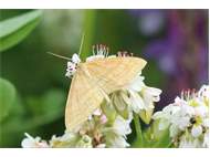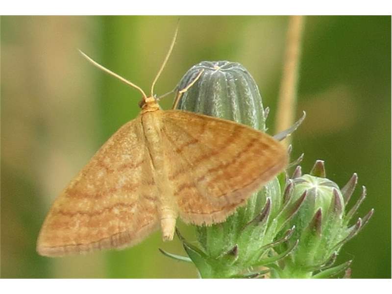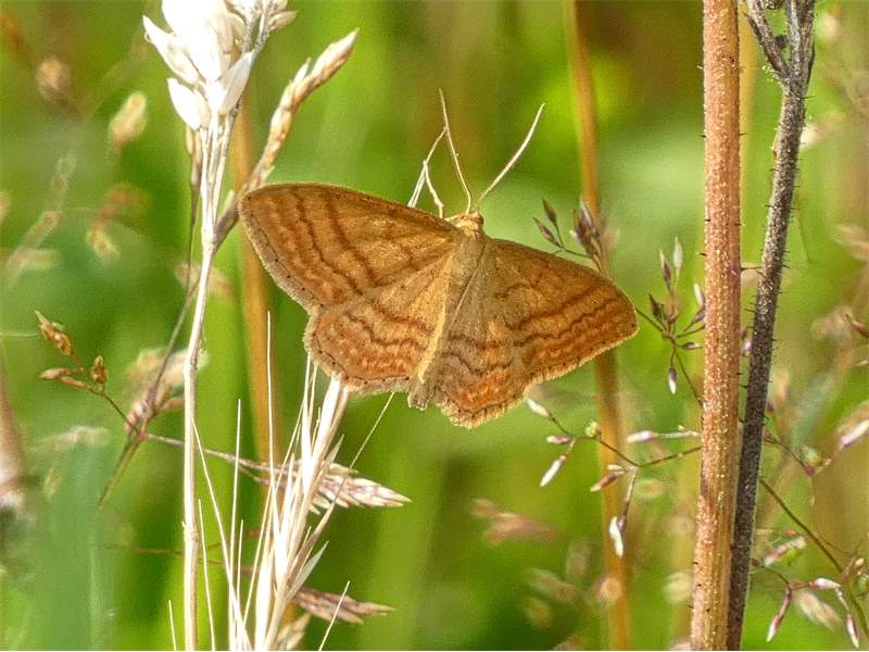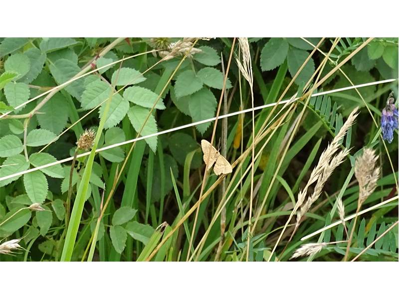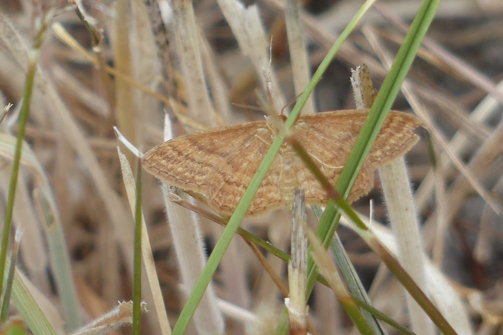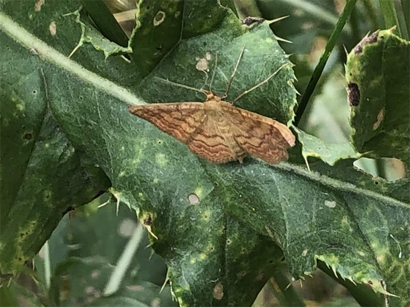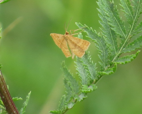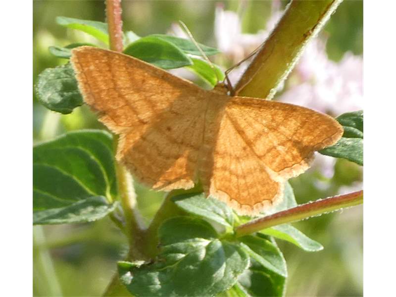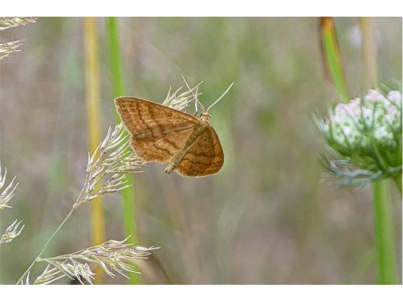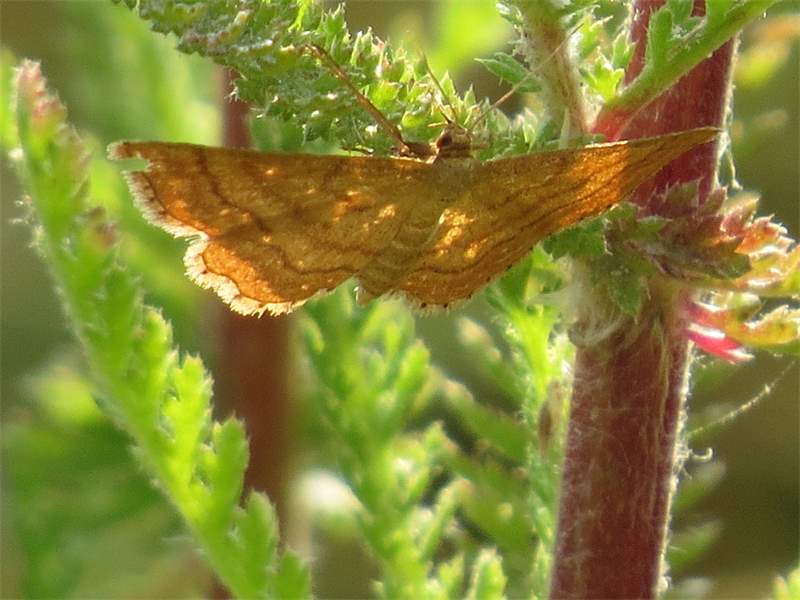 Ockerfarbiger Steppenheiden-Zwergspanner im Juli 2018 entlang Freiberger Mulde östlich Teichhaus