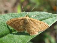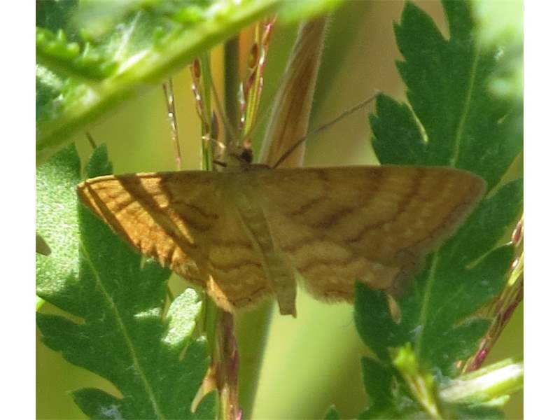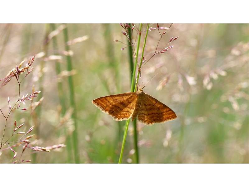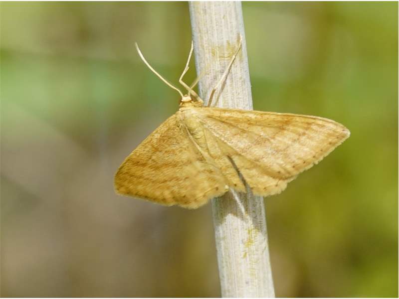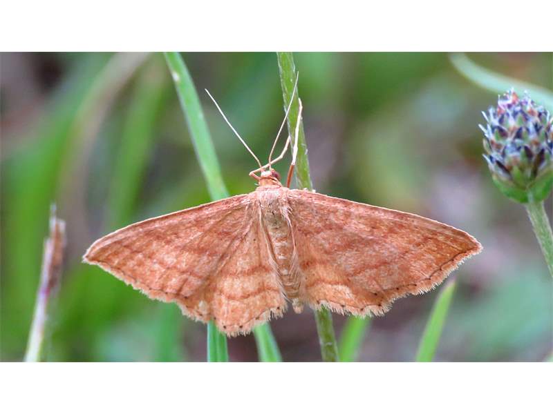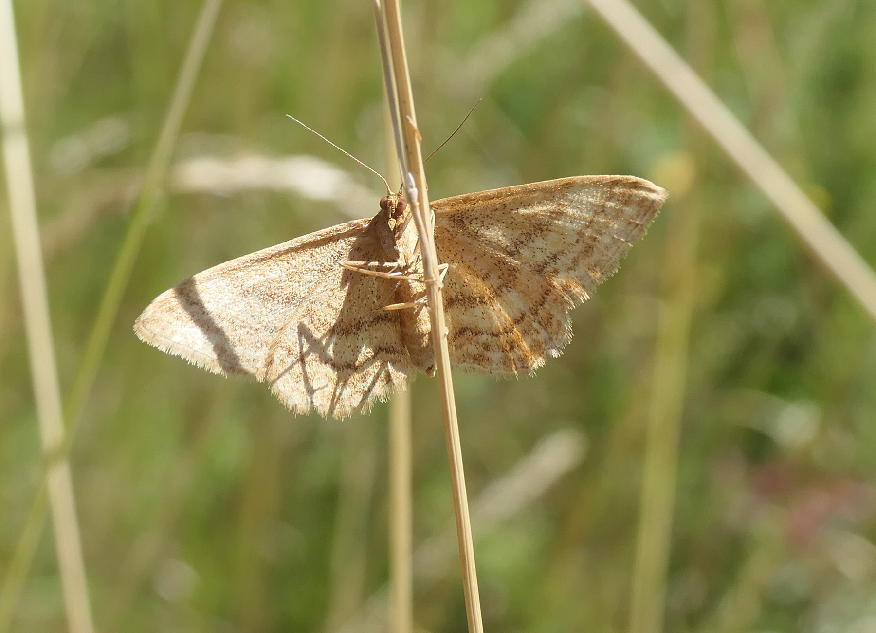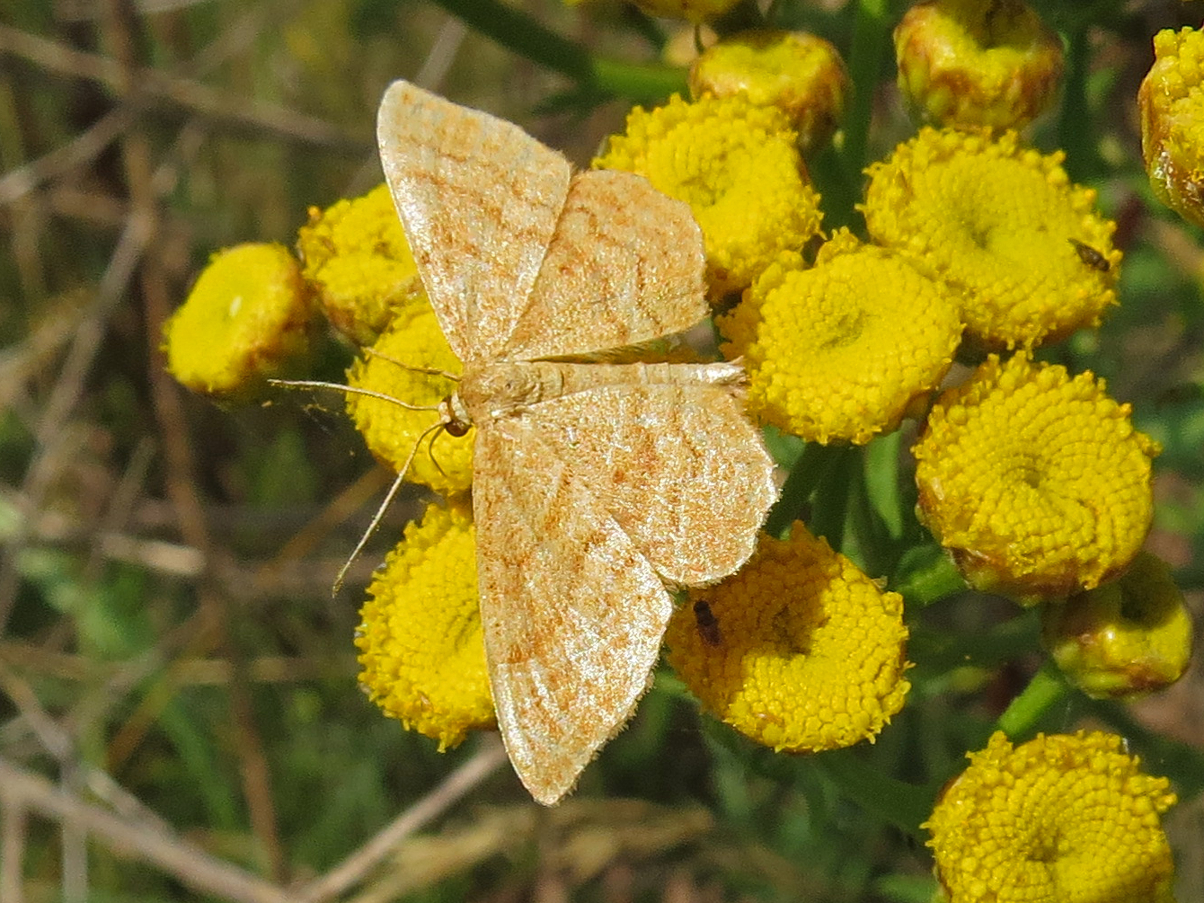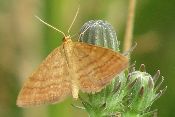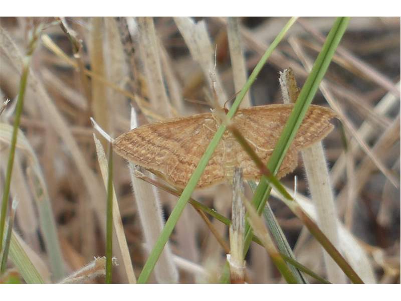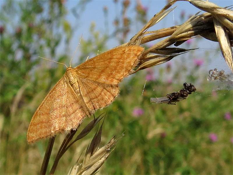 Ockerfarbiger Steppenheiden-Zwergspanner im Juli 2018 entlang Freiberger Mulde östlich Teichhaus