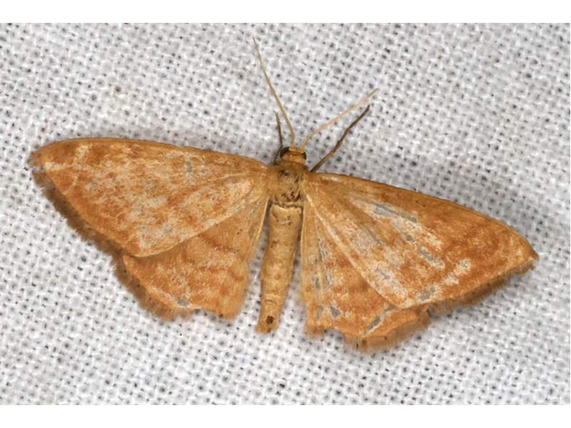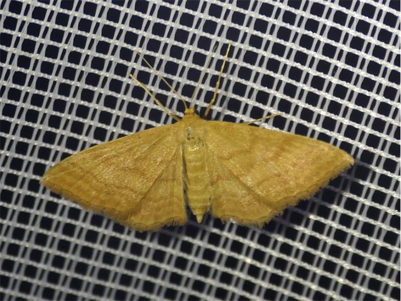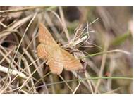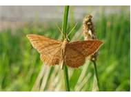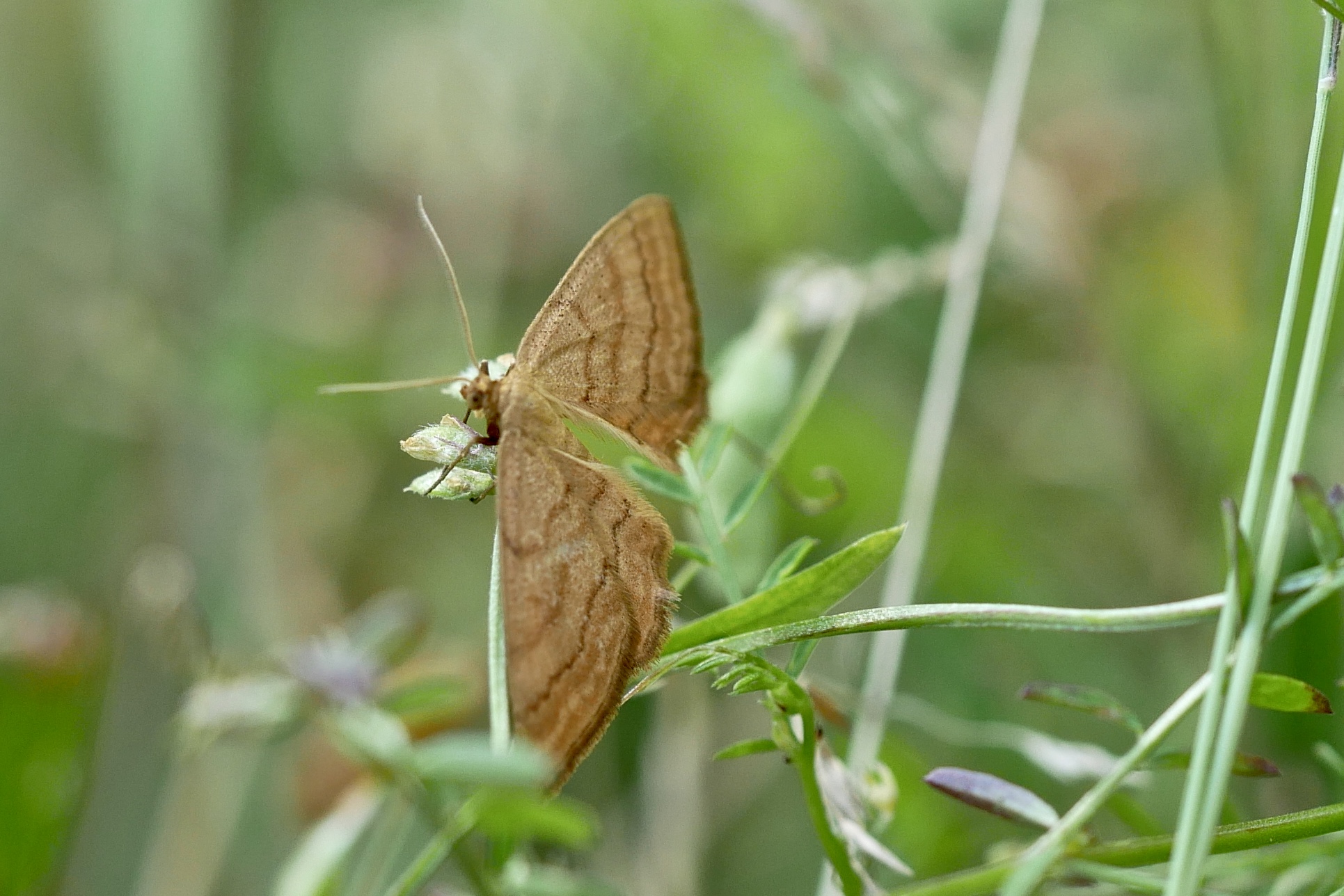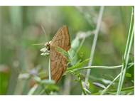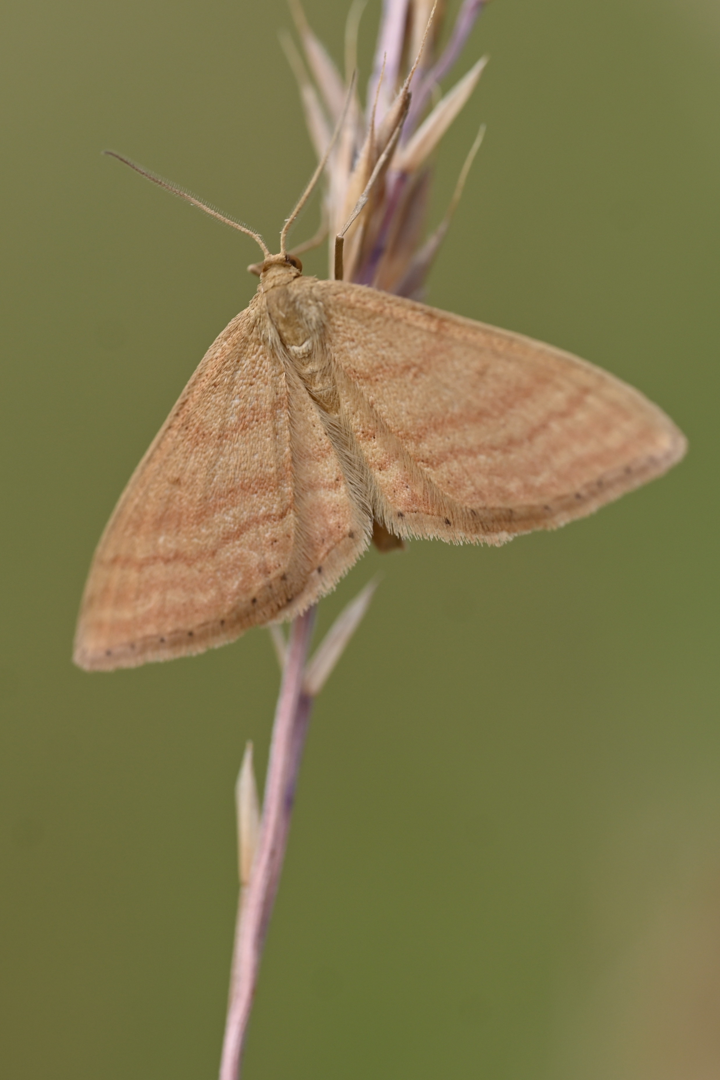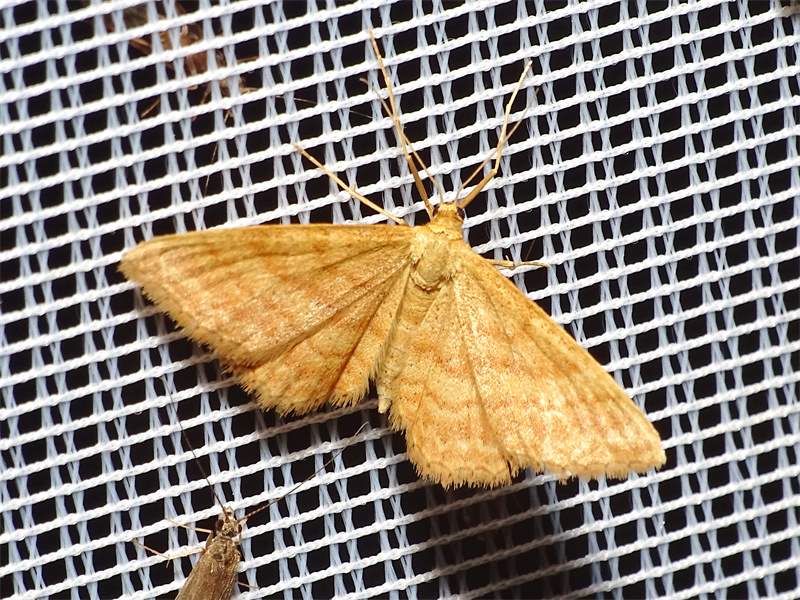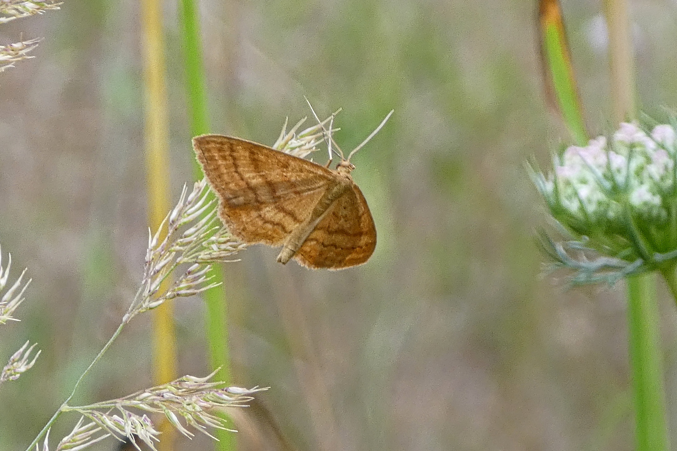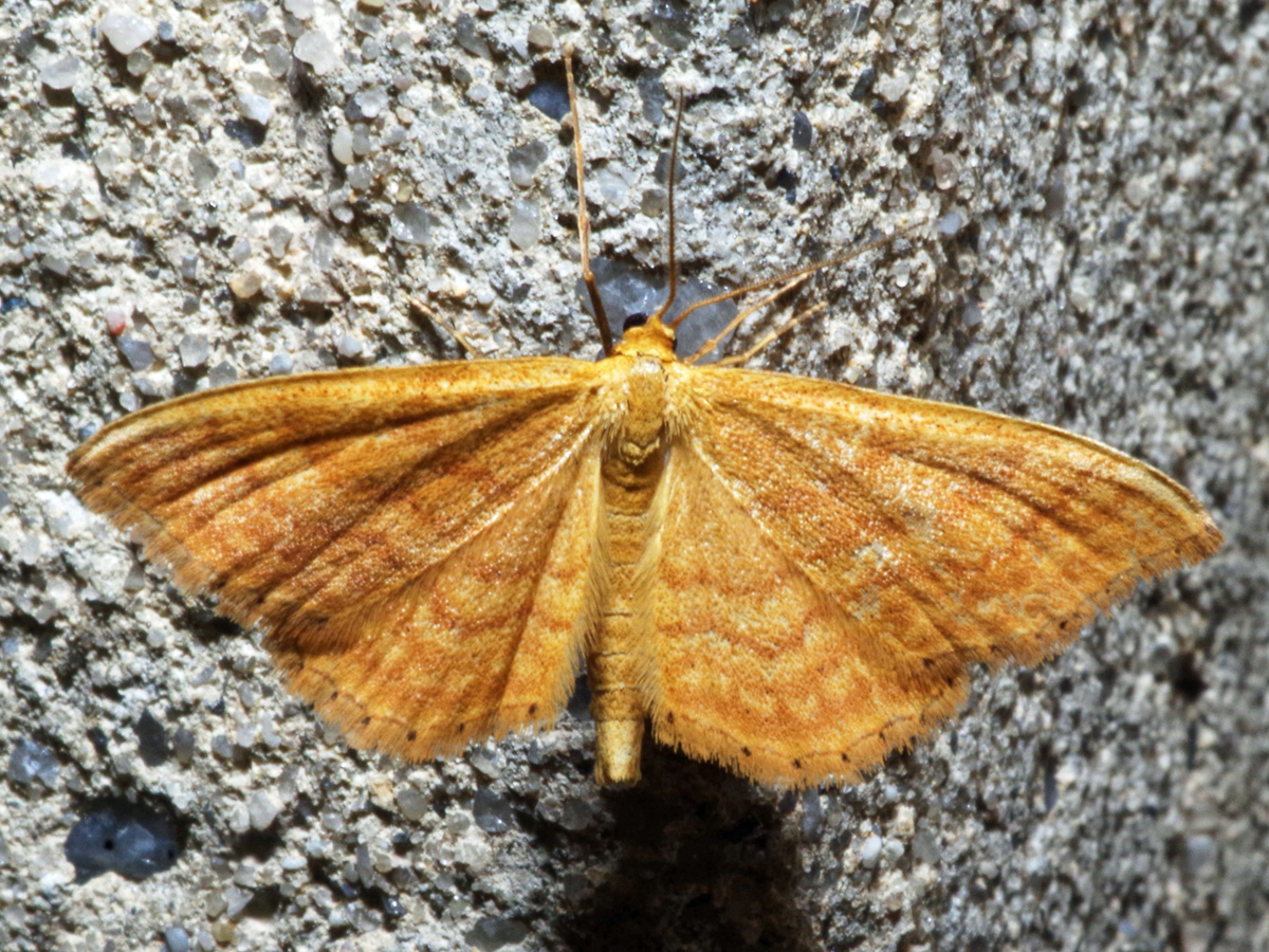 Ockerfarbiger Steppenheiden-Zwergspanner im Juli 2018 entlang Freiberger Mulde östlich Teichhaus