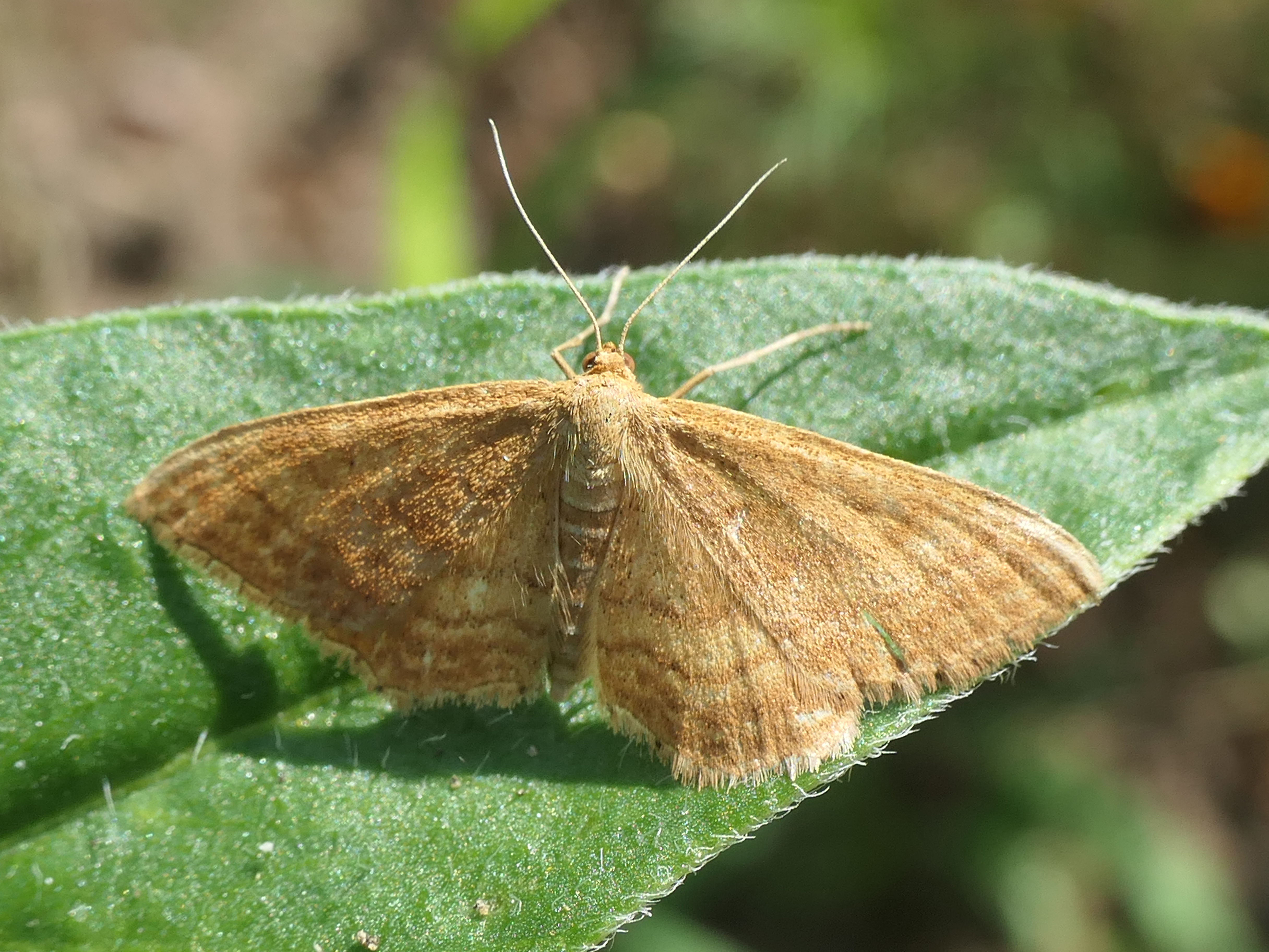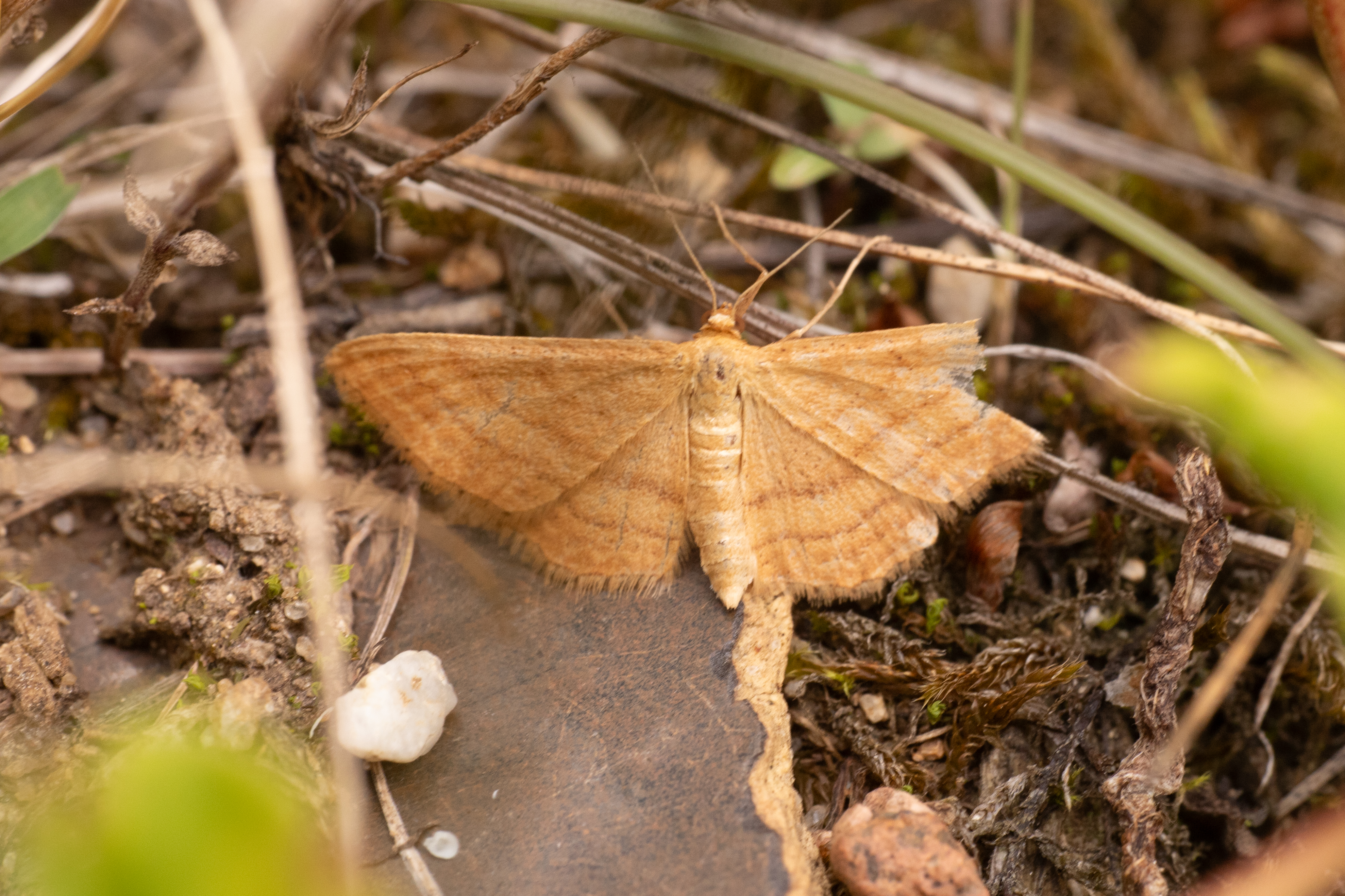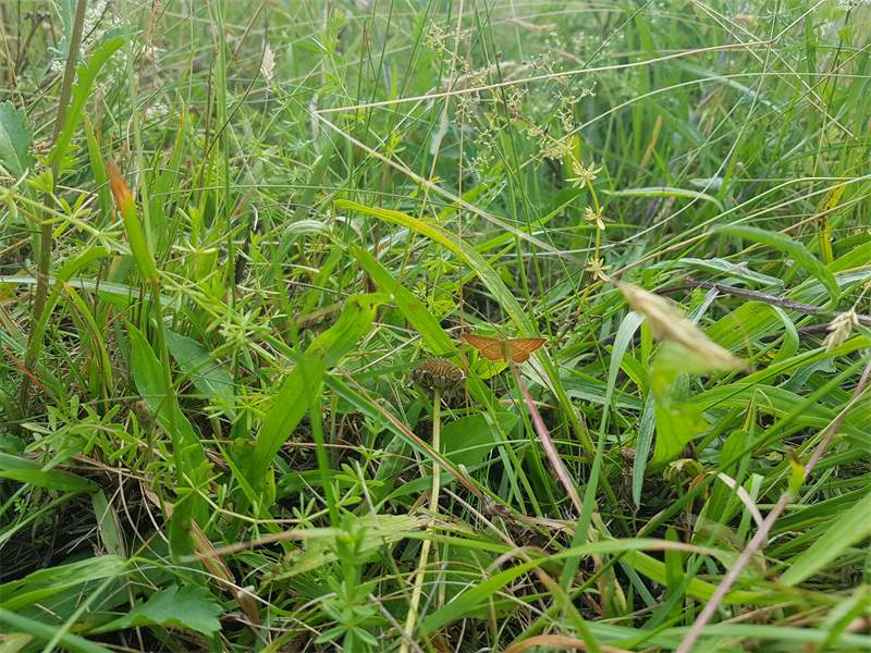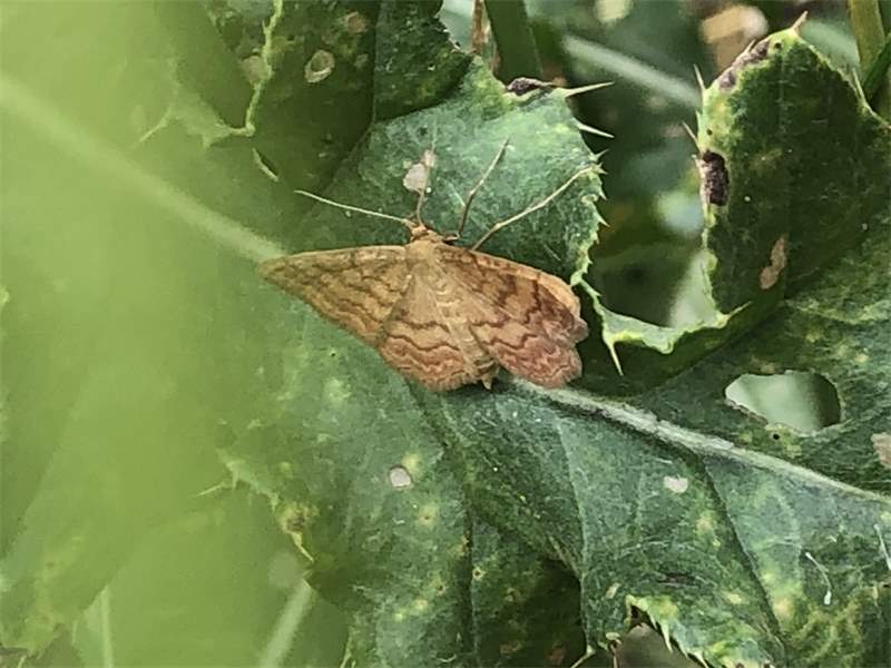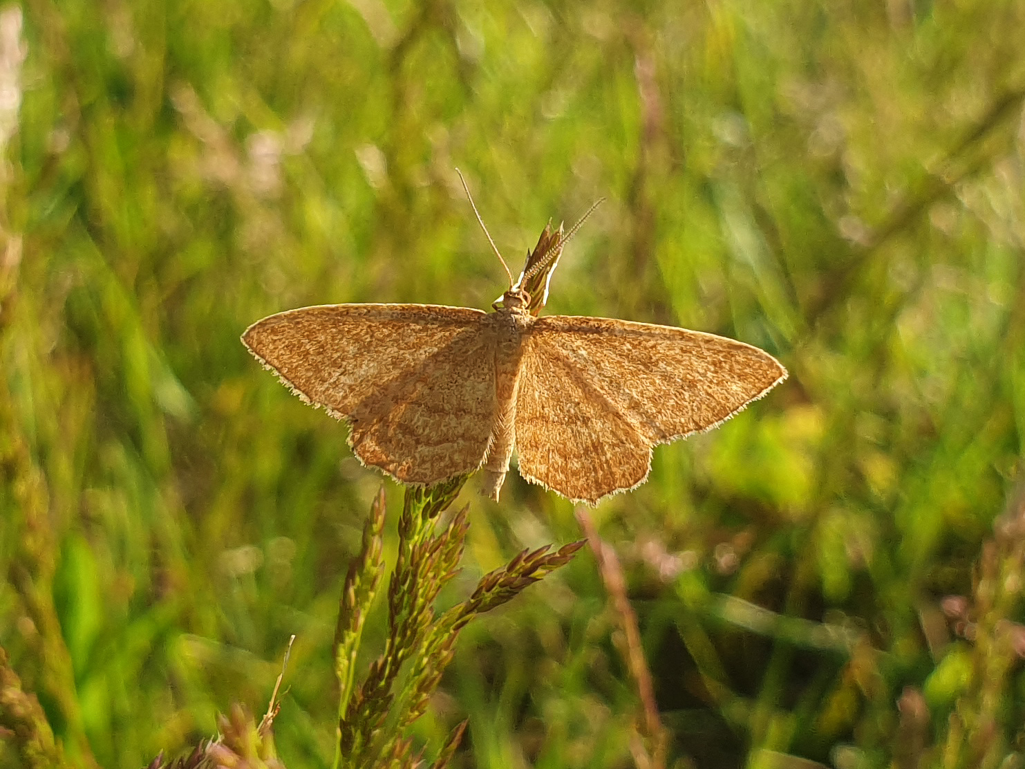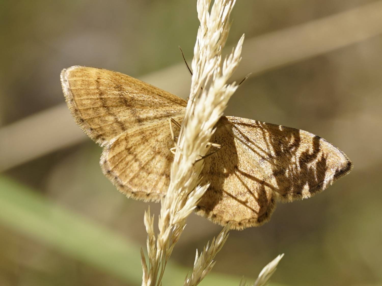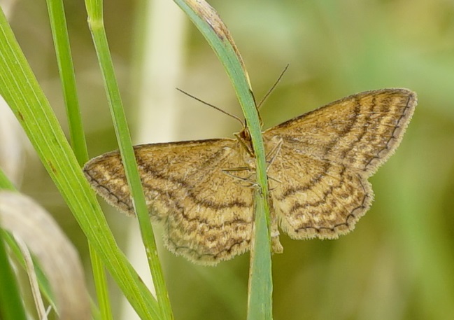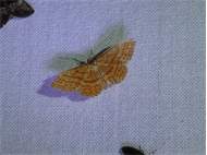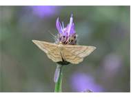 Ockerfarbiger Steppenheiden-Zwergspanner im Juli 2018 entlang Freiberger Mulde östlich Teichhaus