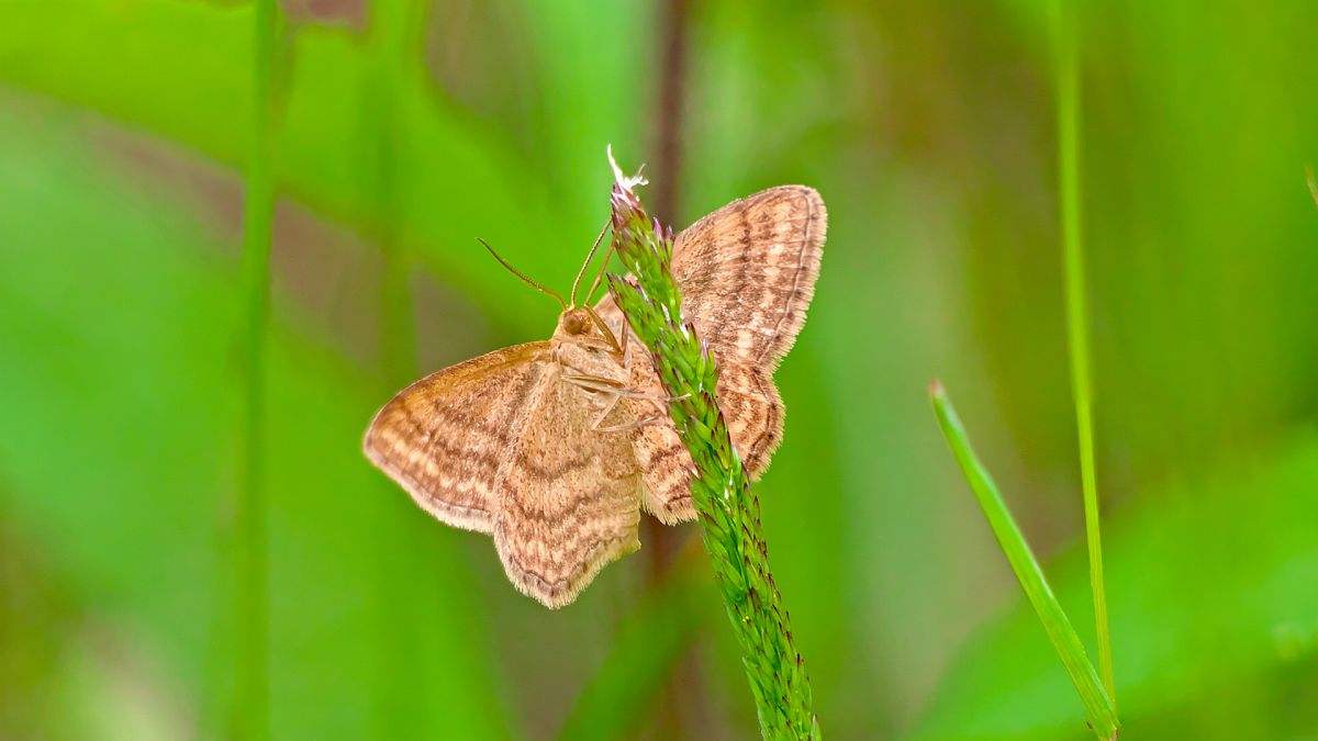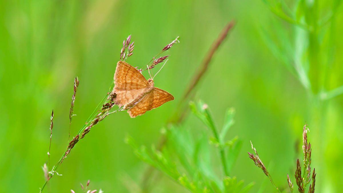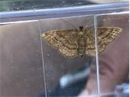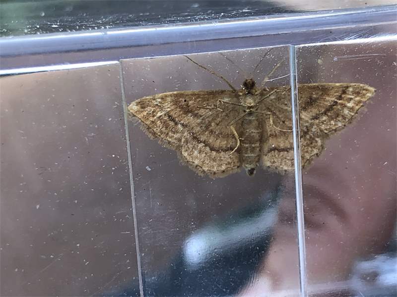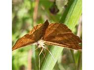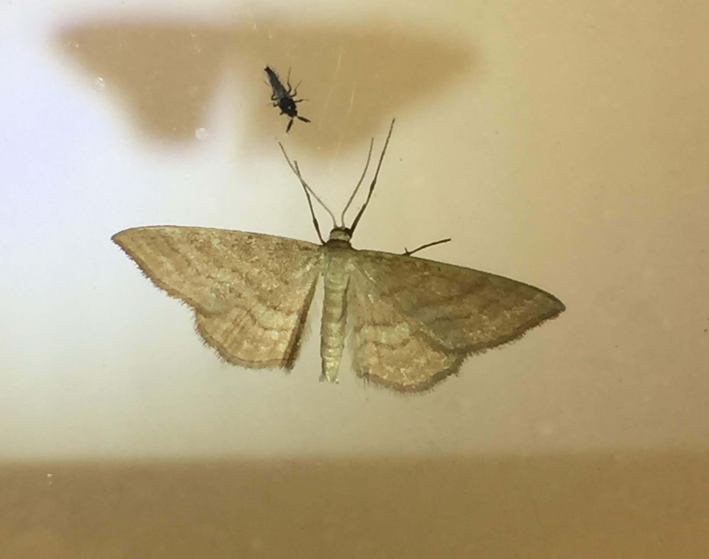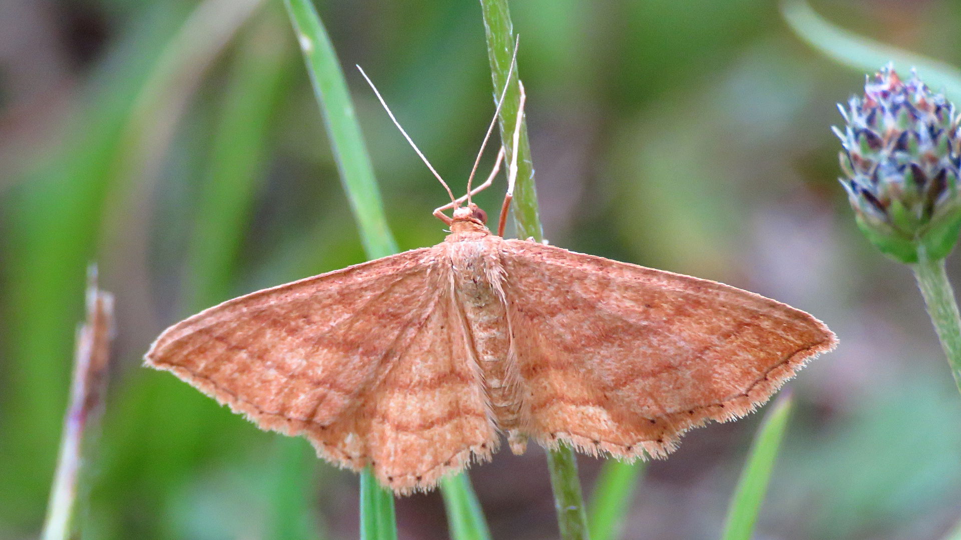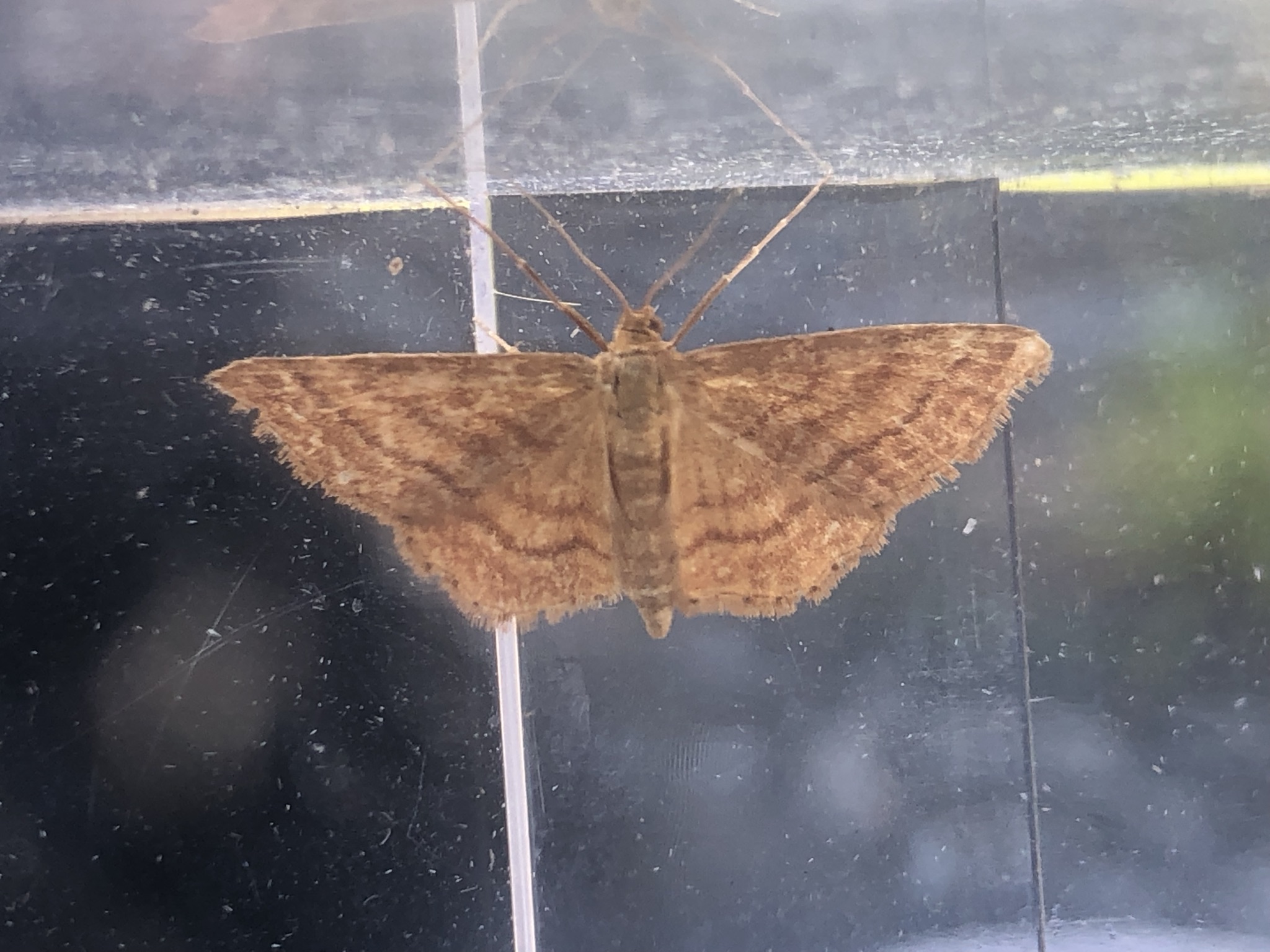 Ockerfarbiger Steppenheiden-Zwergspanner im Juli 2018 entlang Freiberger Mulde östlich Teichhaus