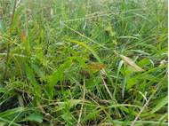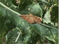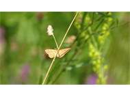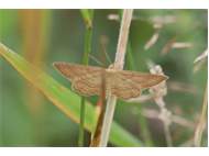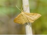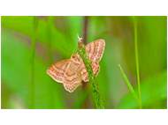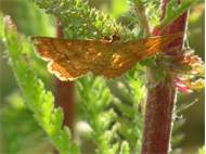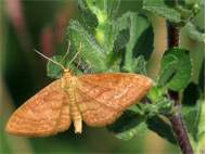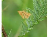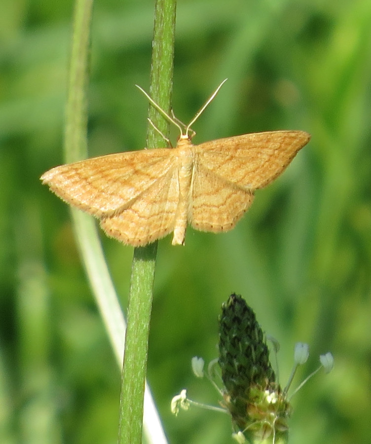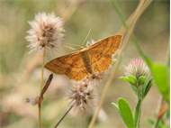 Ockerfarbiger Steppenheiden-Zwergspanner im Juni 2017 bei Heinersgrün