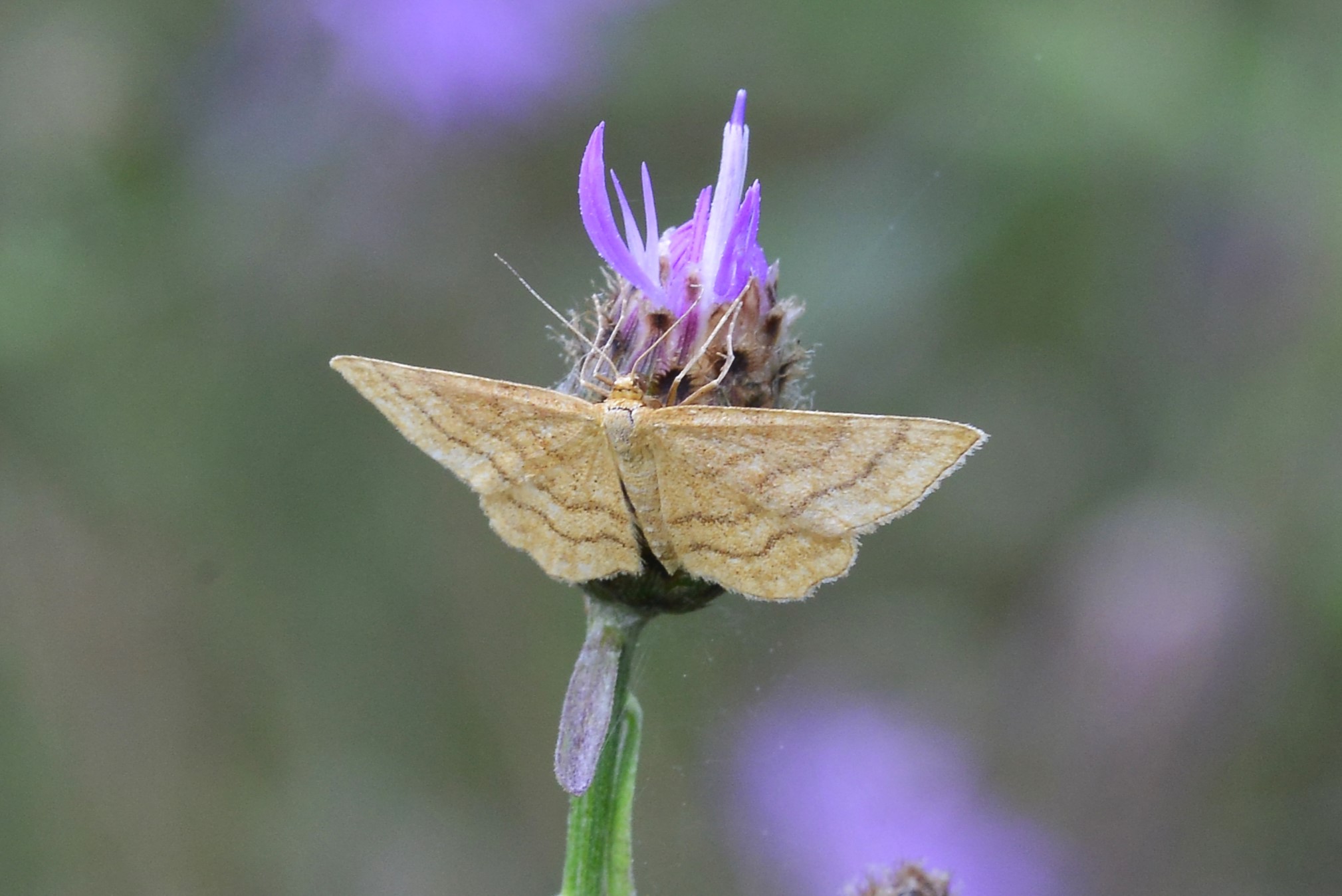 Idaea ochrata auf einer Waldlichtung, Bienitz bei Burghausen, Juli 2014