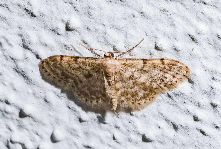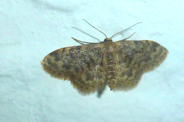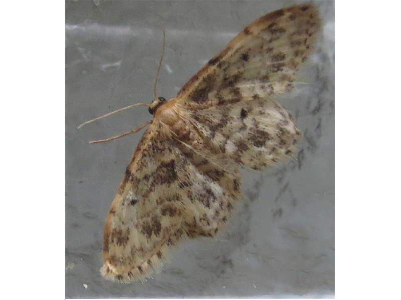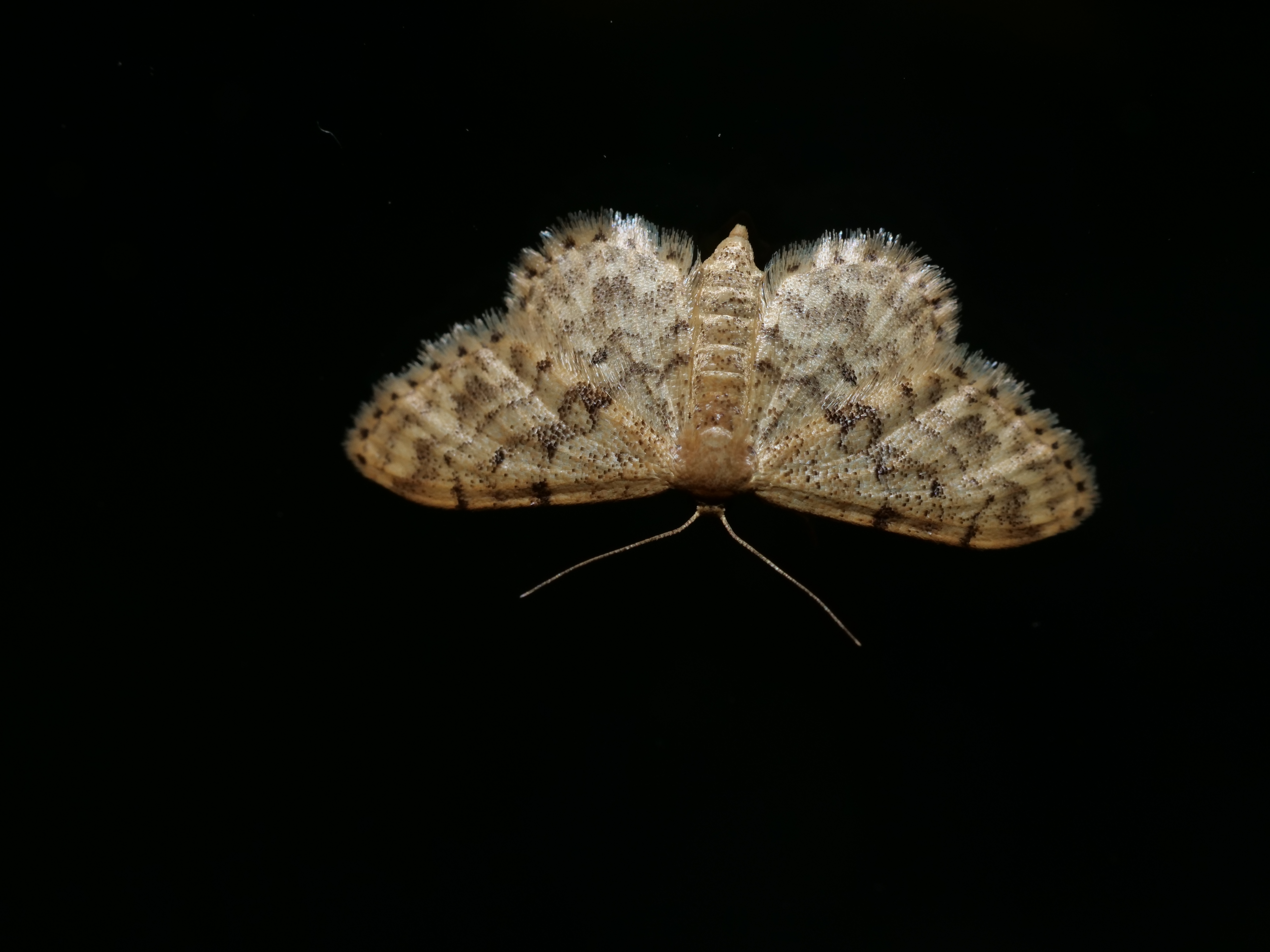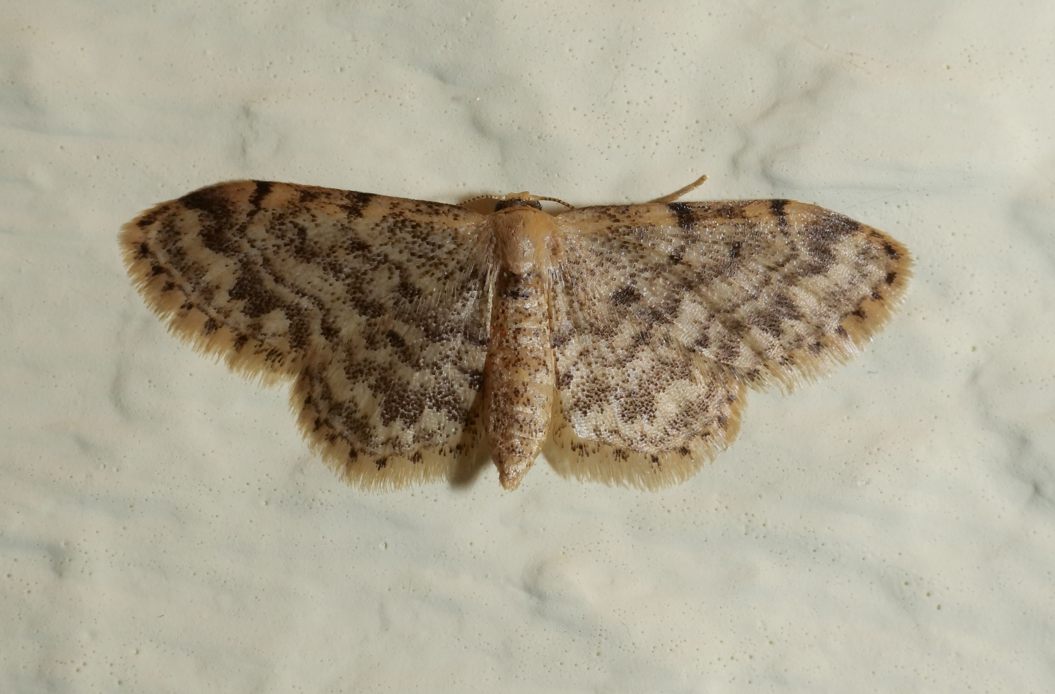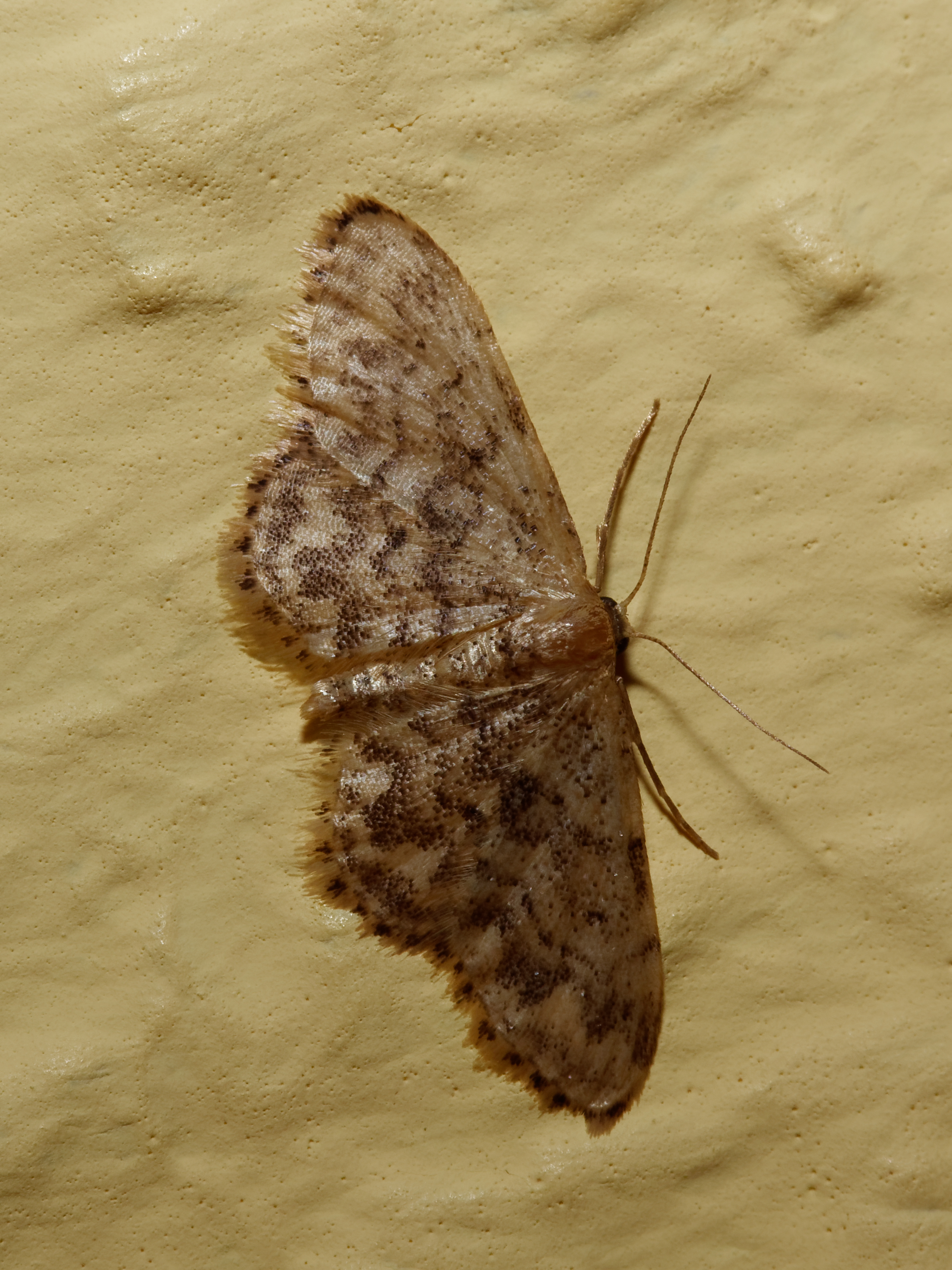 Idaea inquinata (Scopoli, 1763), an Hauswand sitzend, Wohngrundstück, 01896 Lichtenberg, Juni 2019.