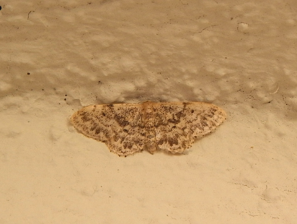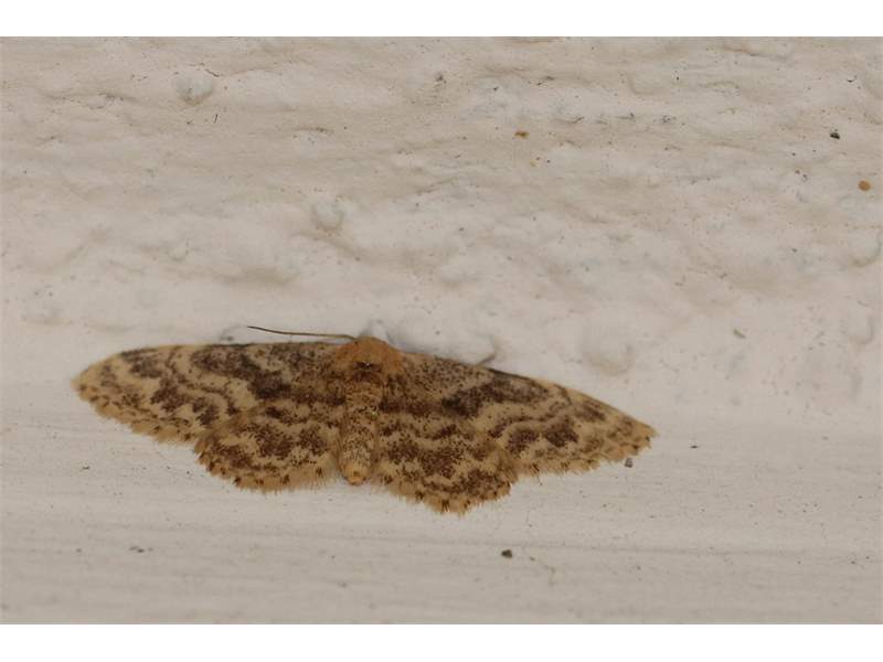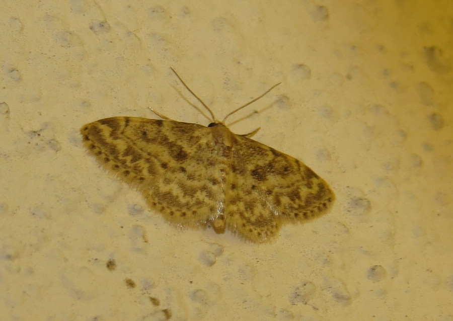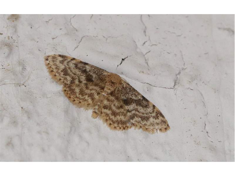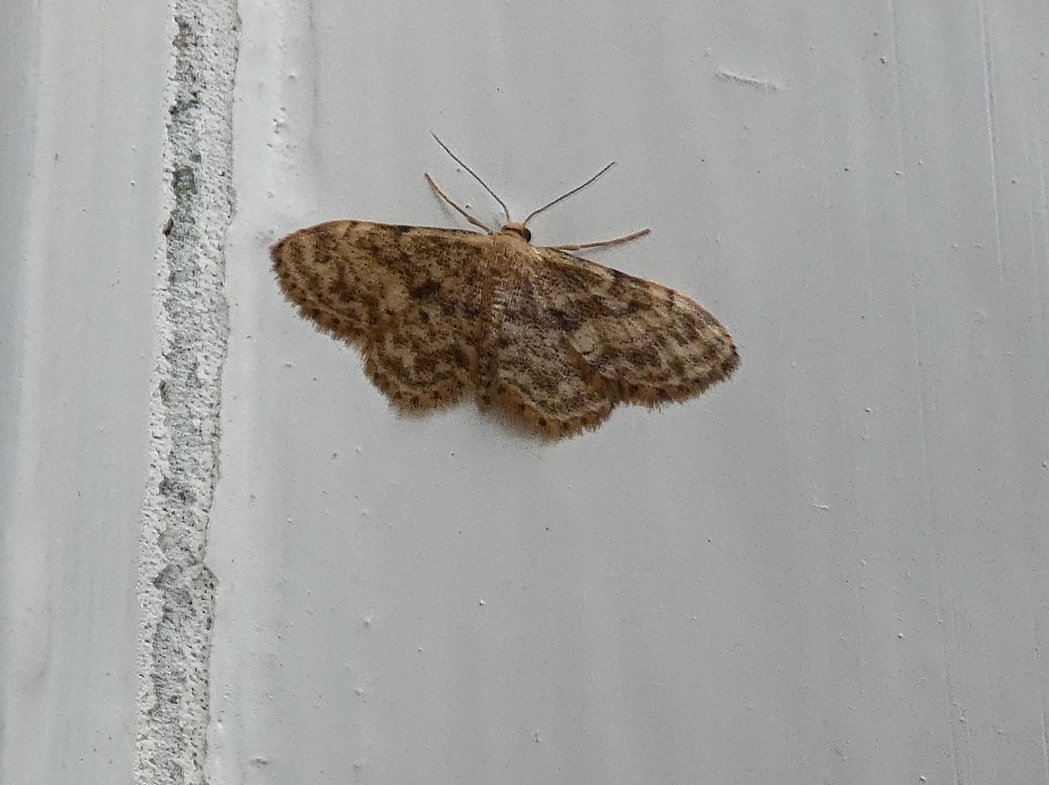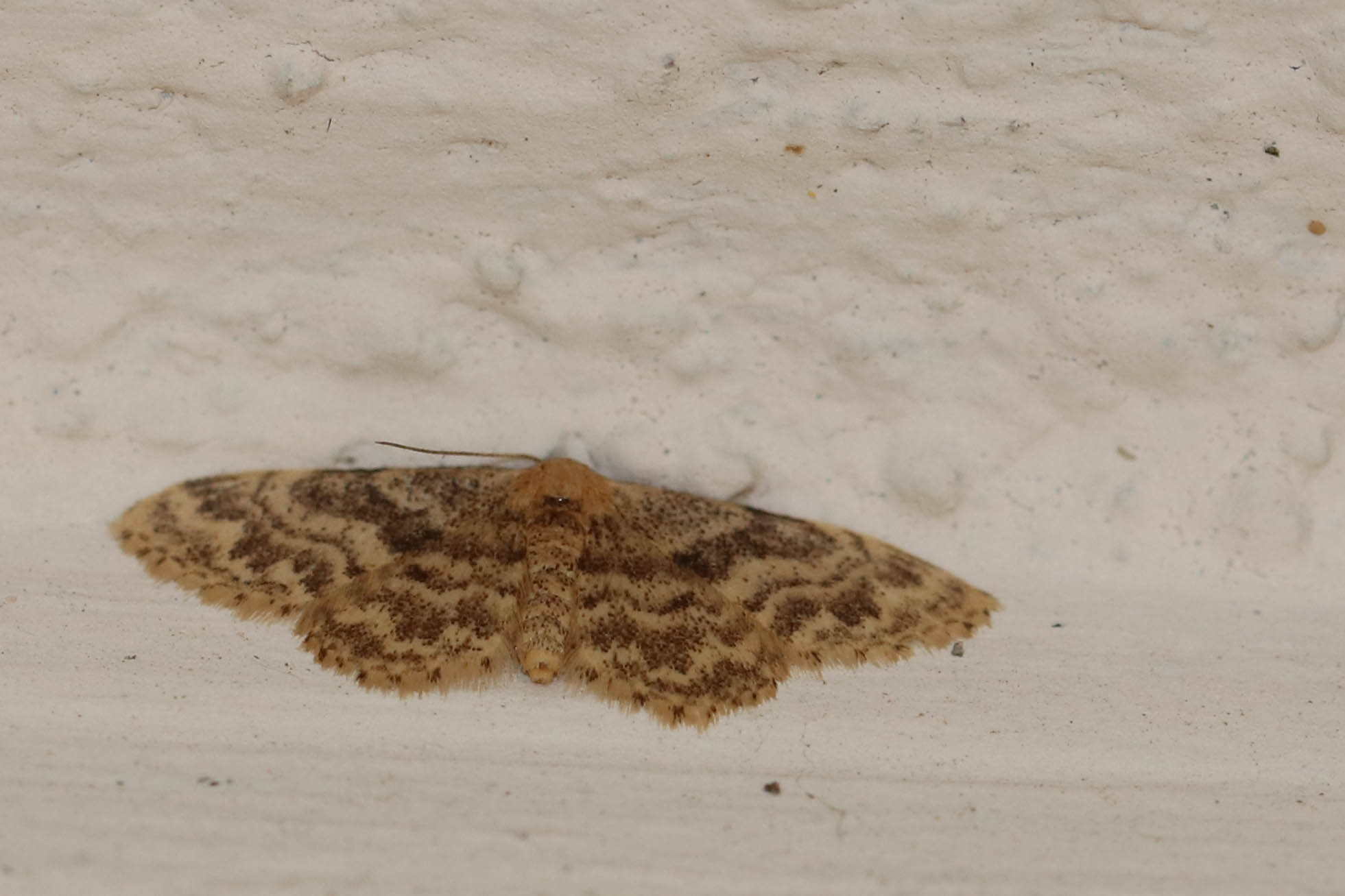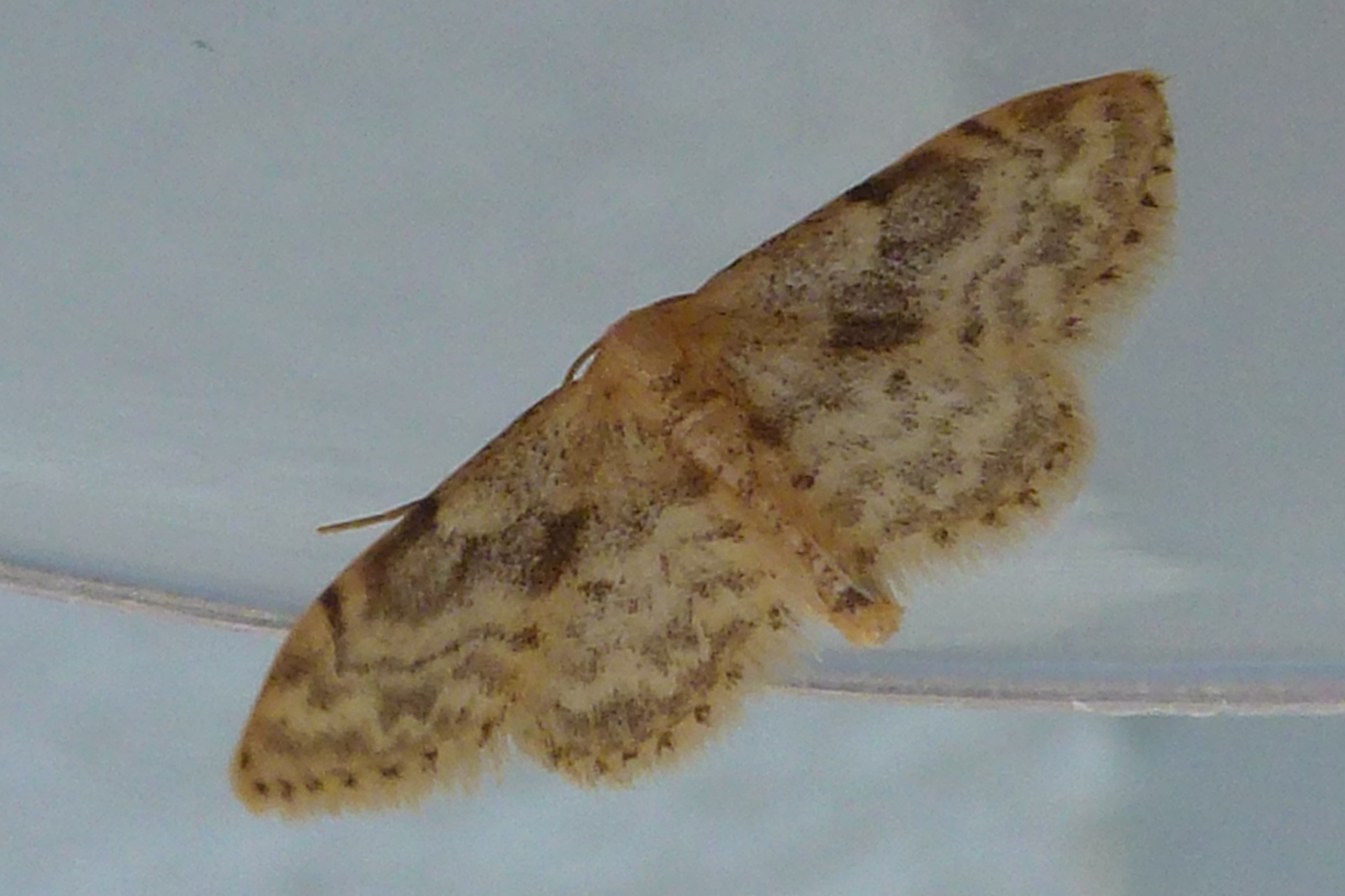 Idaea inquinata (Scopoli, 1763), an Hauswand sitzend, Wohngrundstück, 01896 Lichtenberg, Juni 2019.