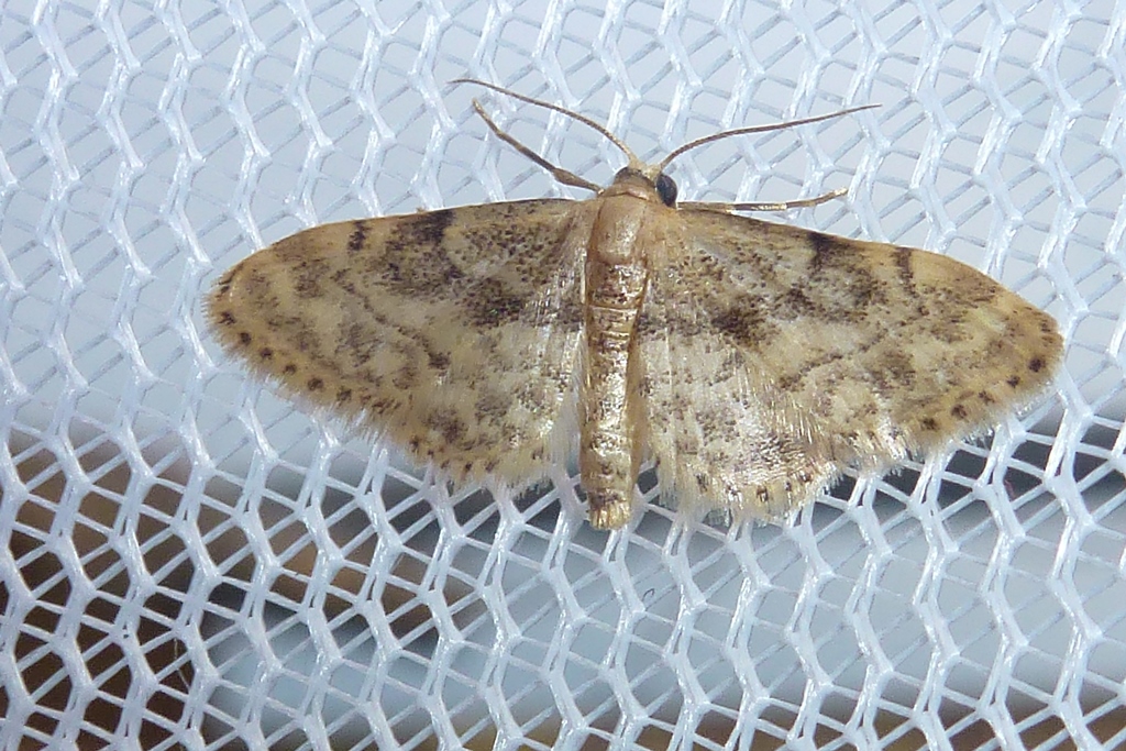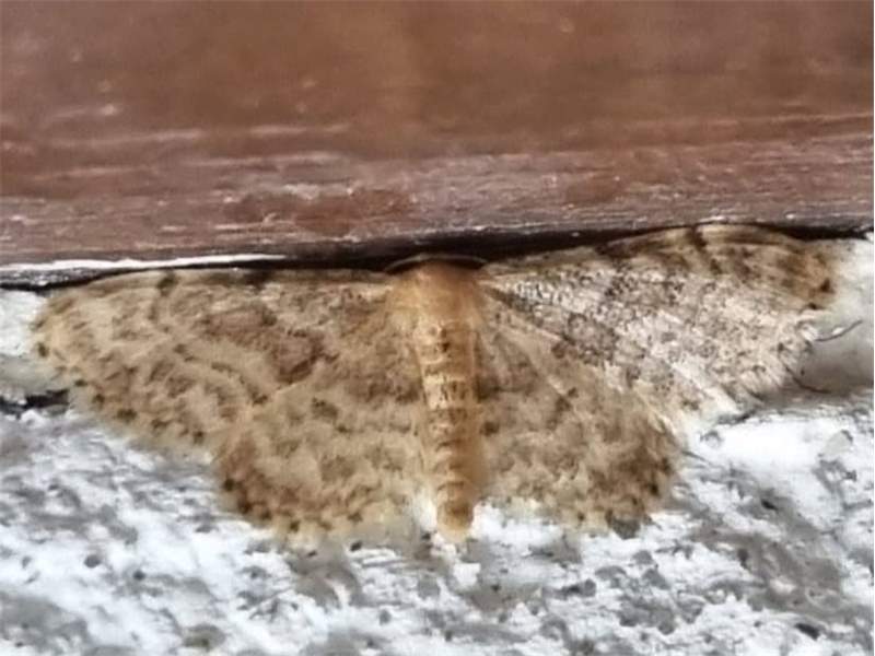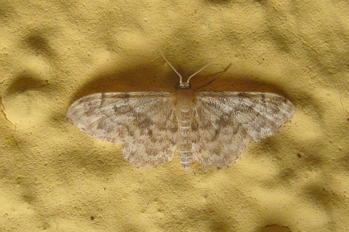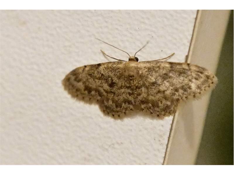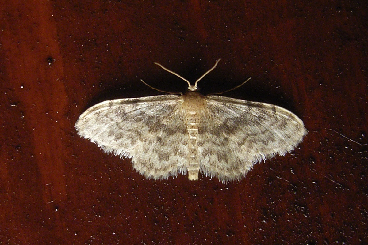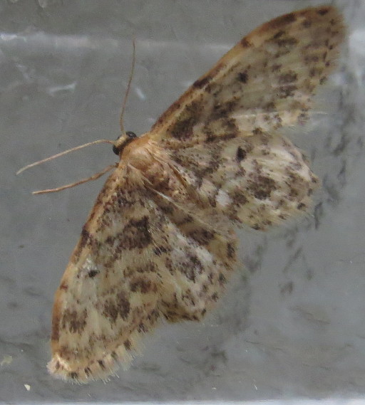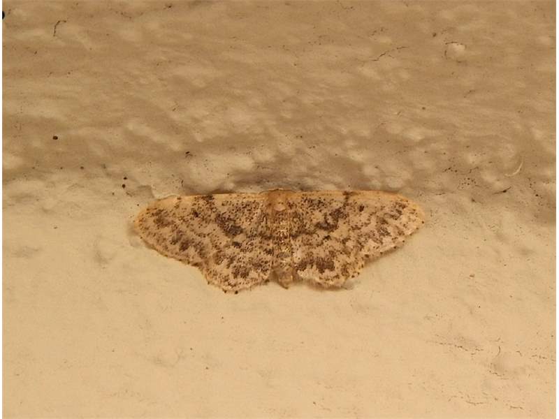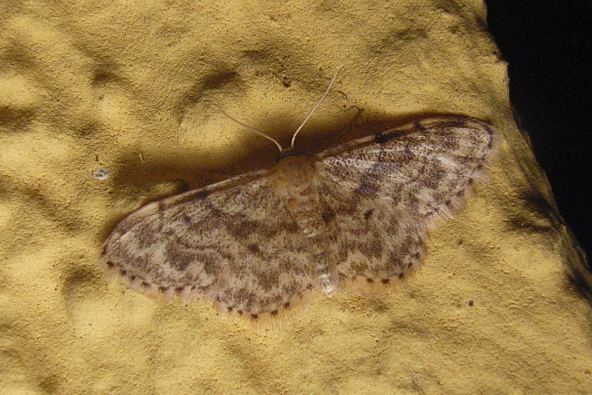 Idaea inquinata (Scopoli, 1763), an Hauswand sitzend, Wohngrundstück, 01896 Lichtenberg, Juni 2019.