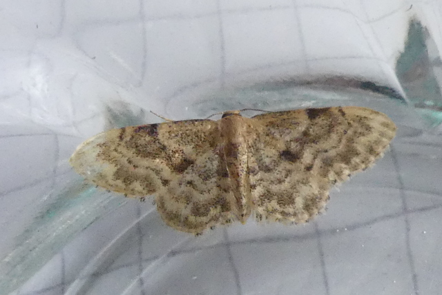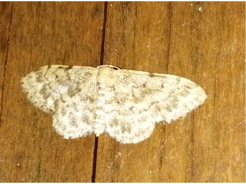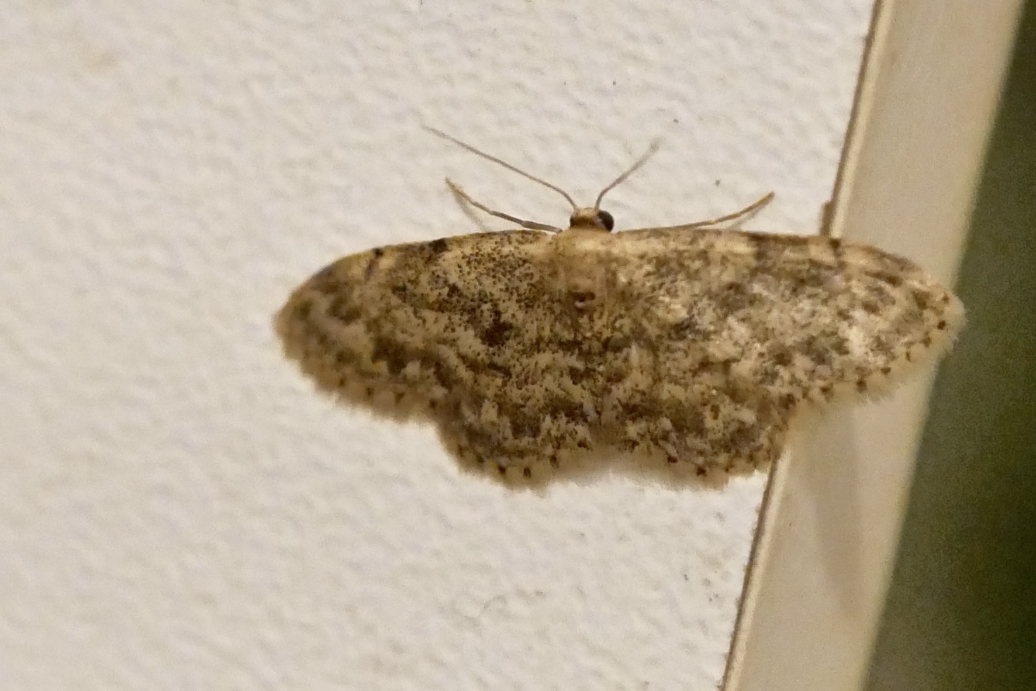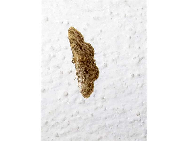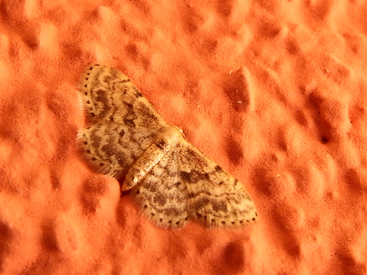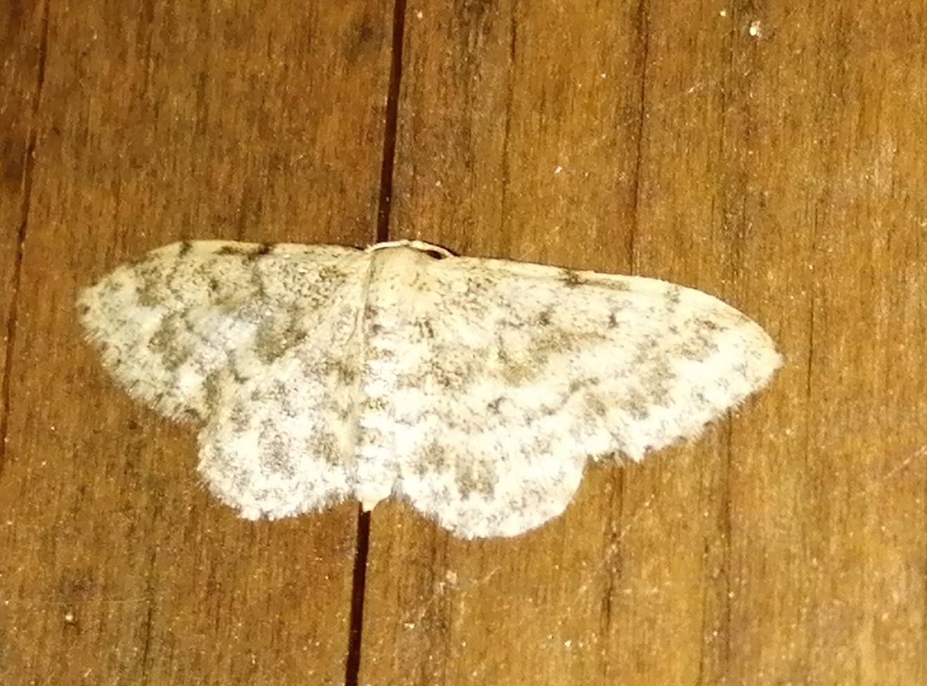 Idaea inquinata (Scopoli, 1763), an Hauswand sitzend, Wohngrundstück, 01896 Lichtenberg, Juni 2019.