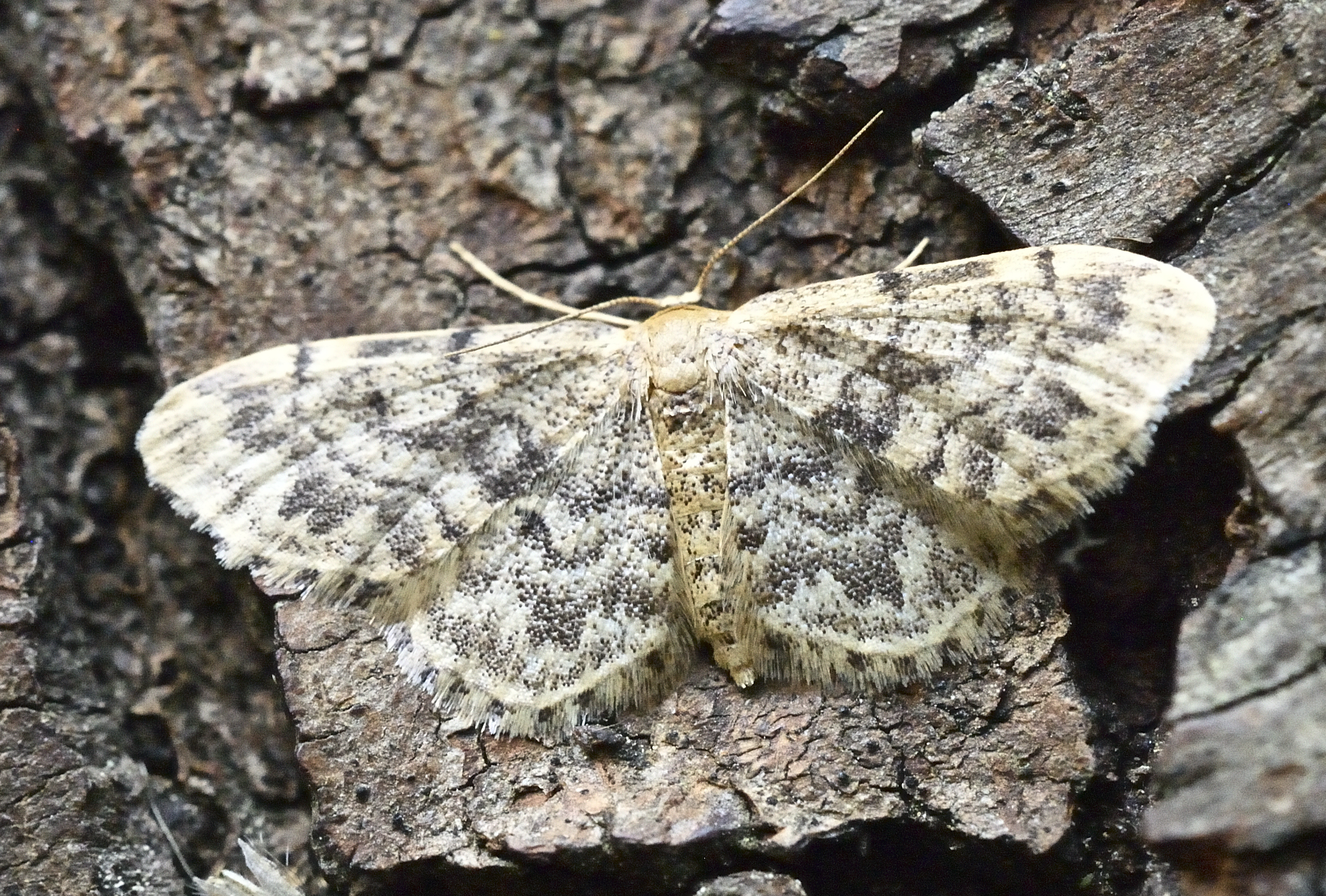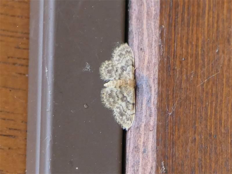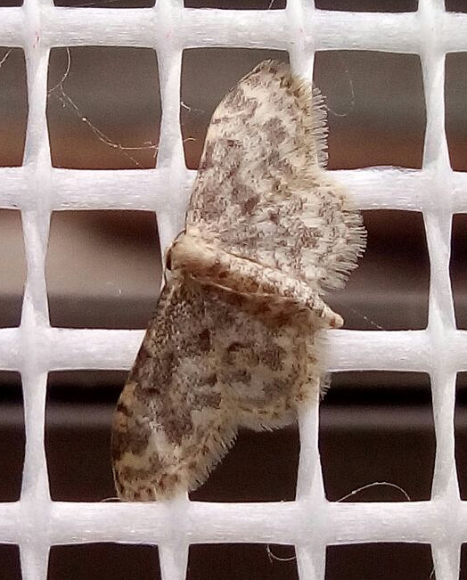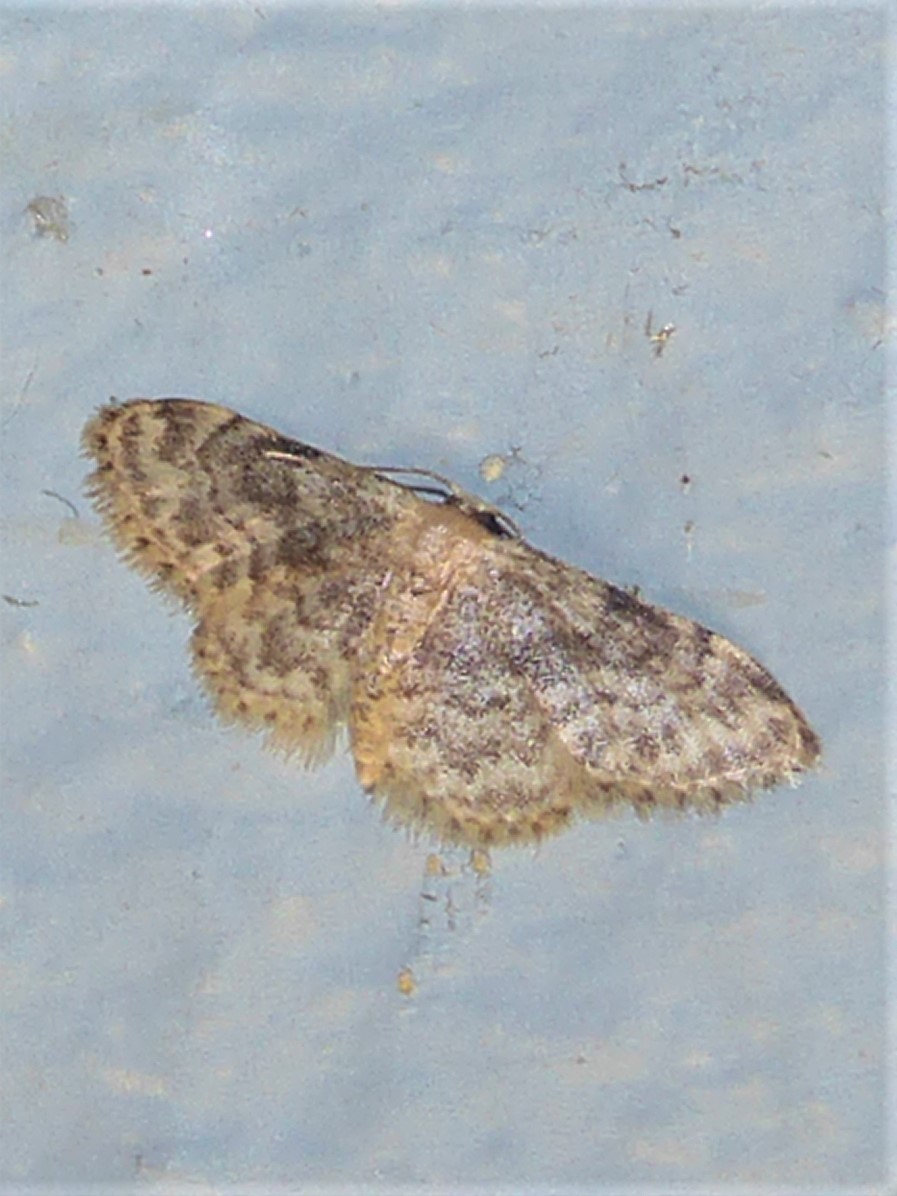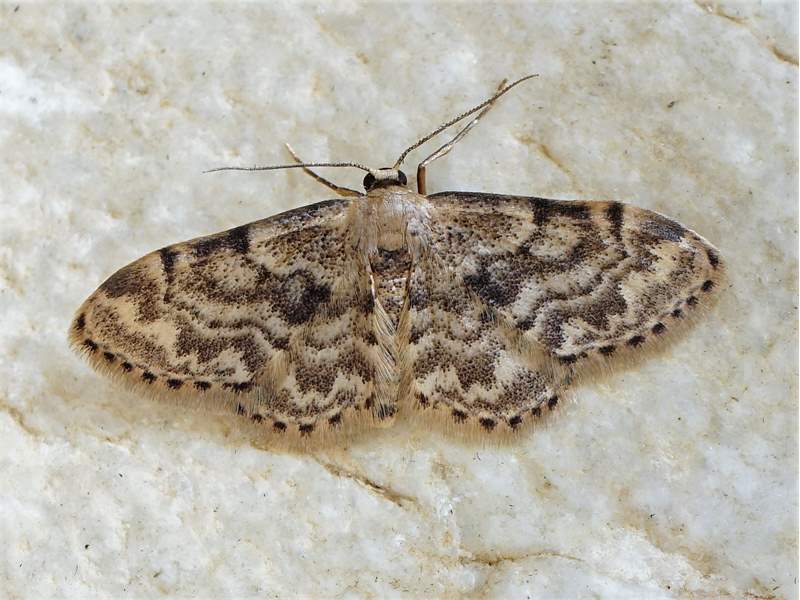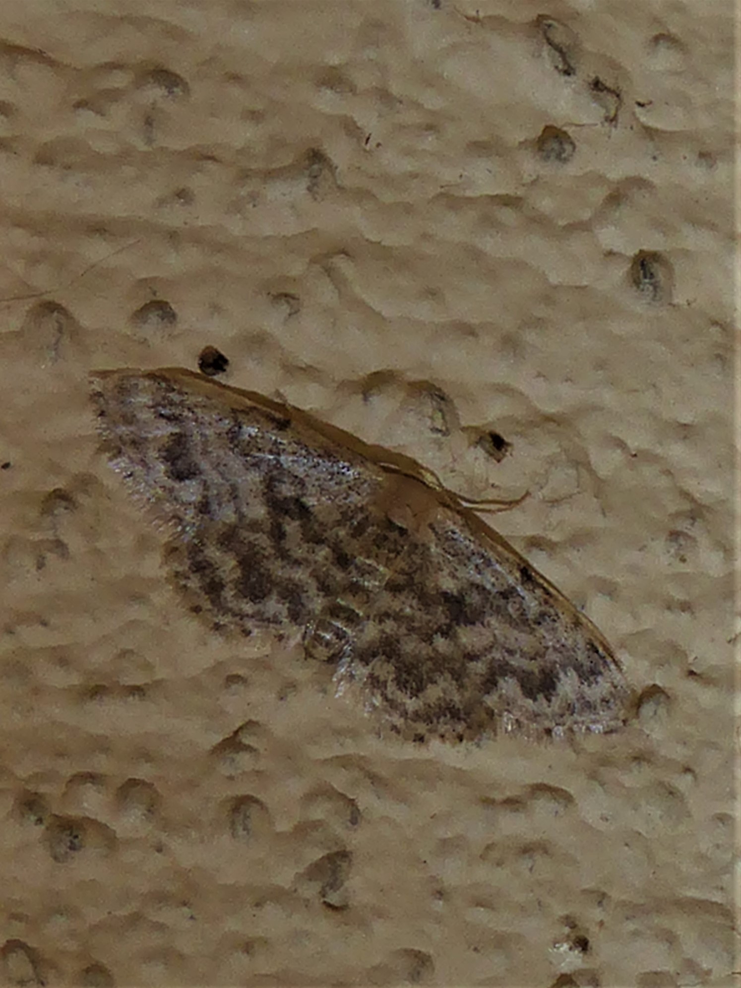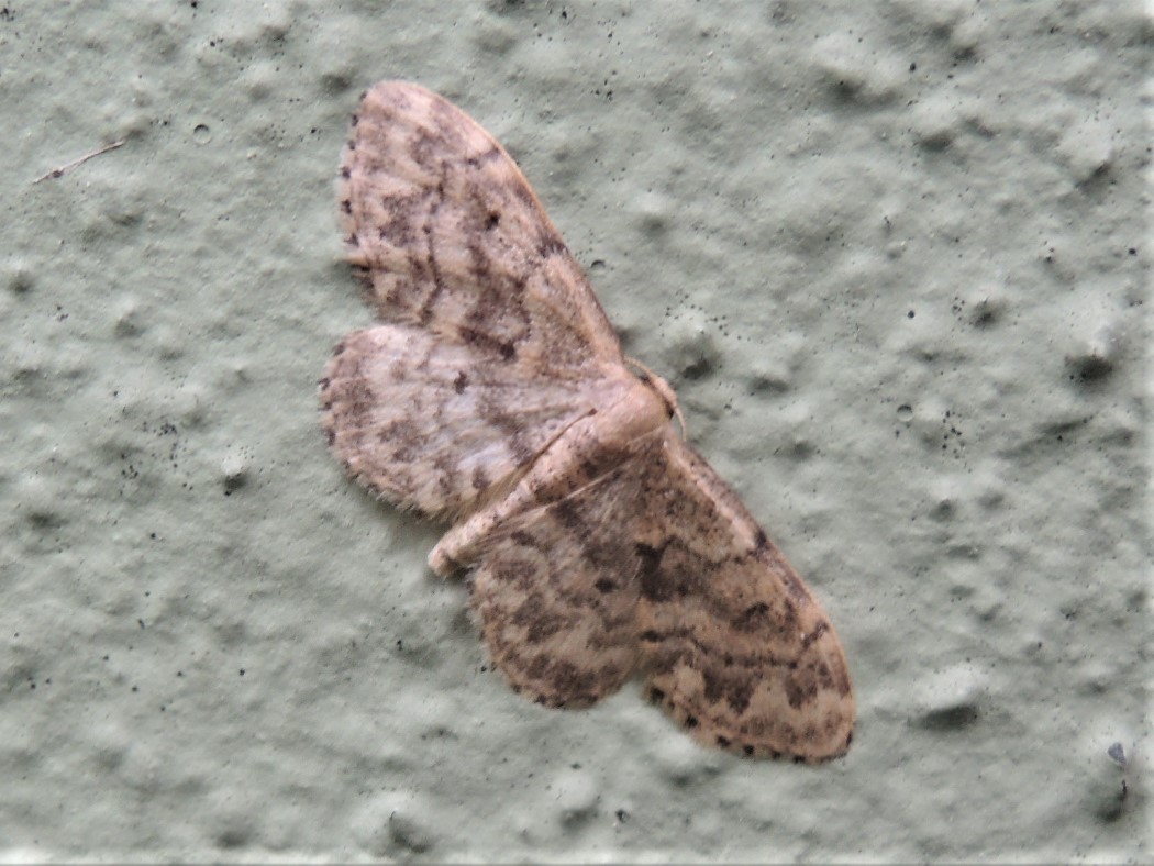 Idaea inquinata (Scopoli, 1763), an Hauswand sitzend, Wohngrundstück, 01896 Lichtenberg, Juni 2019.