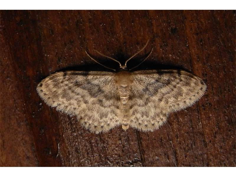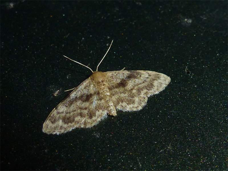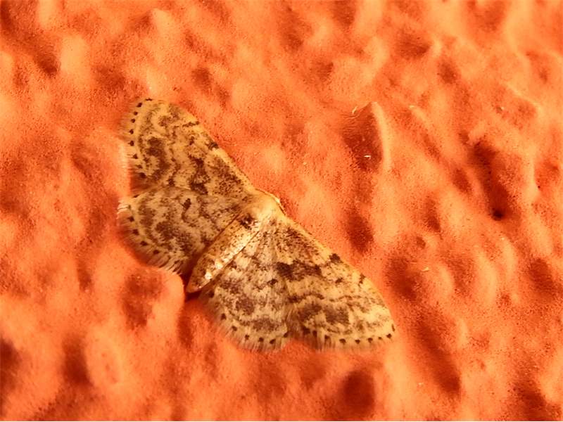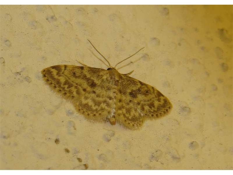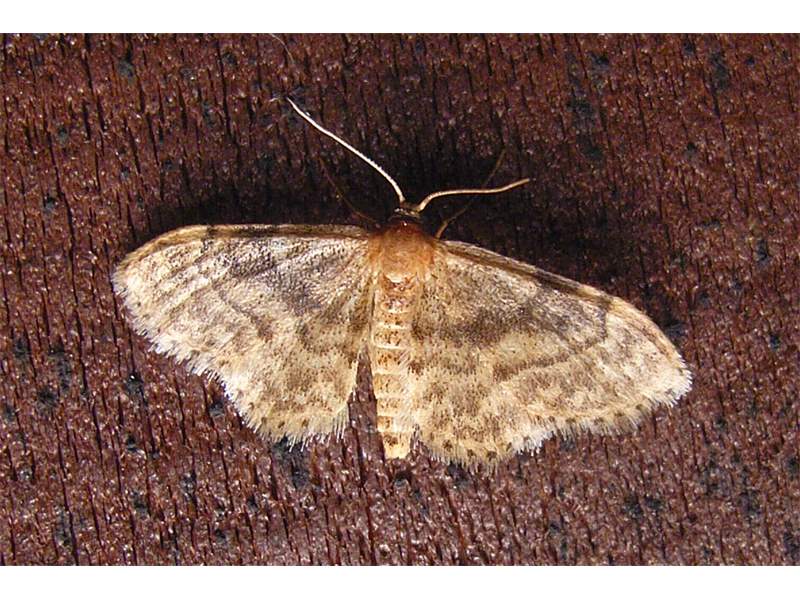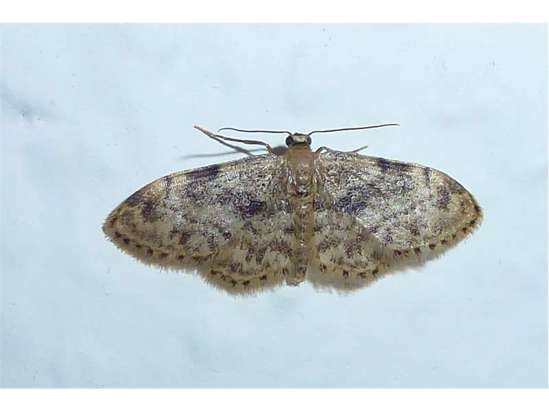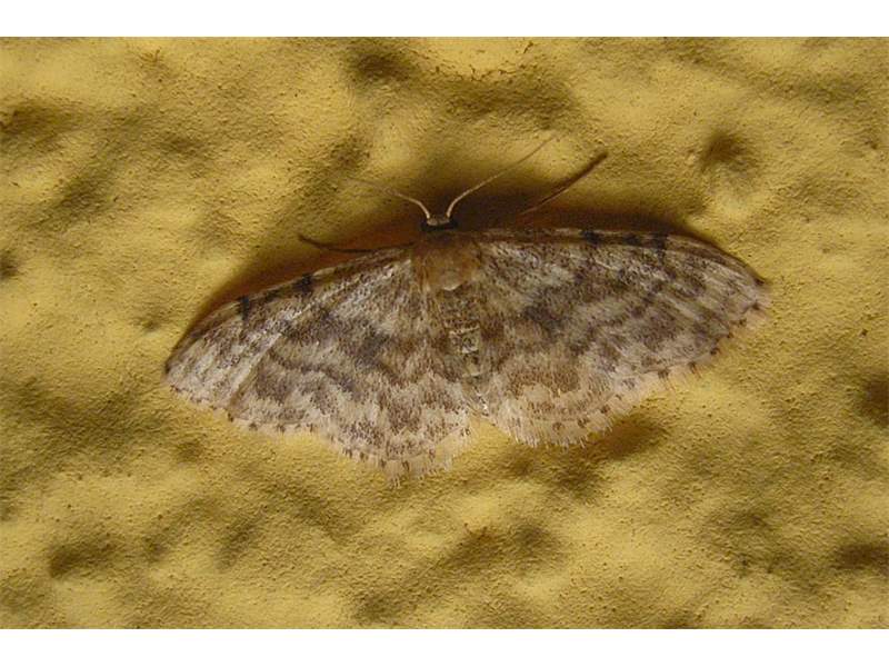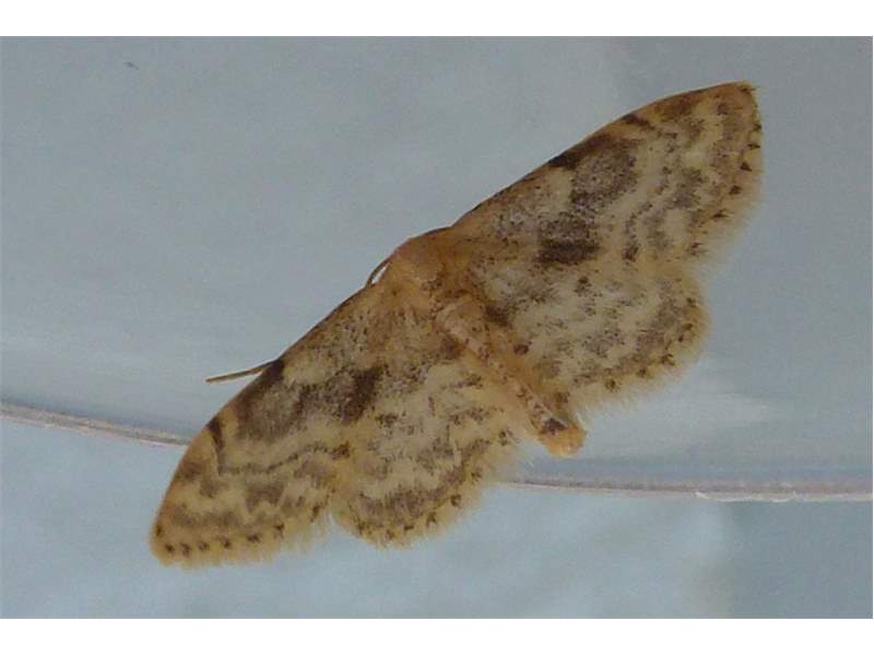 Idaea inquinata (Scopoli, 1763), an Hauswand sitzend, Wohngrundstück, 01896 Lichtenberg, Juni 2019. (© Uwe Schäfer)( Bild vergrößern)