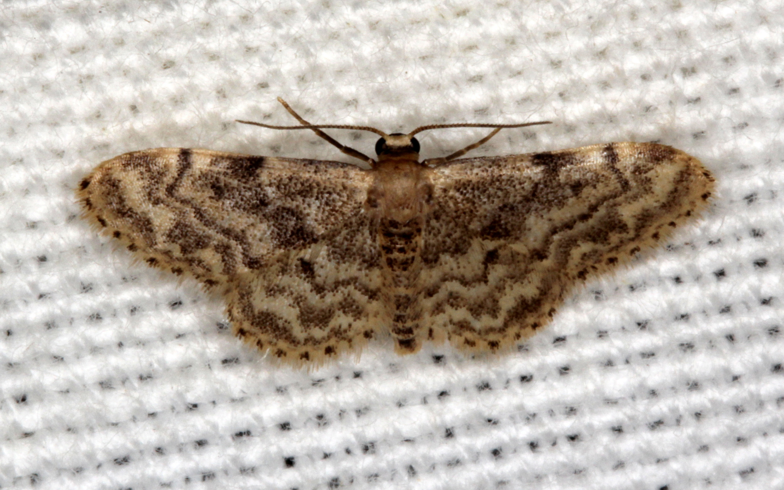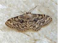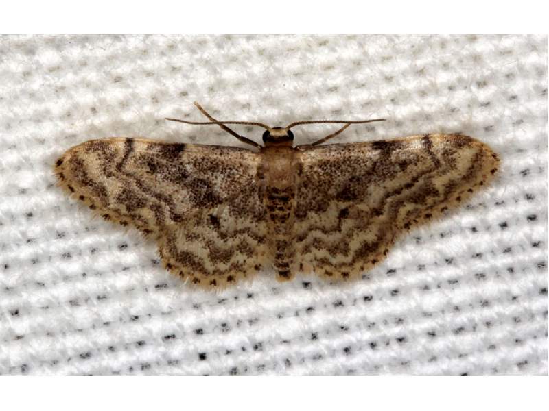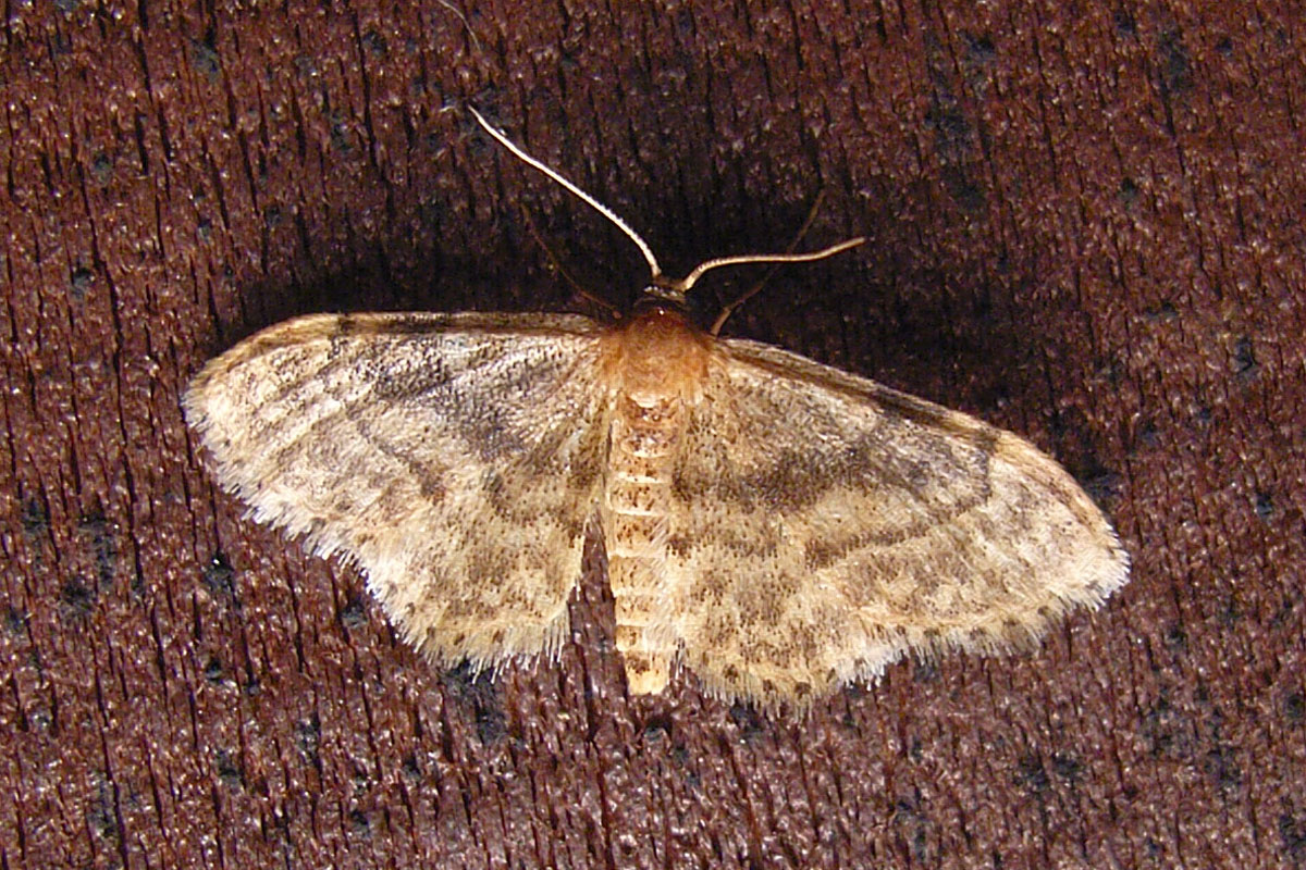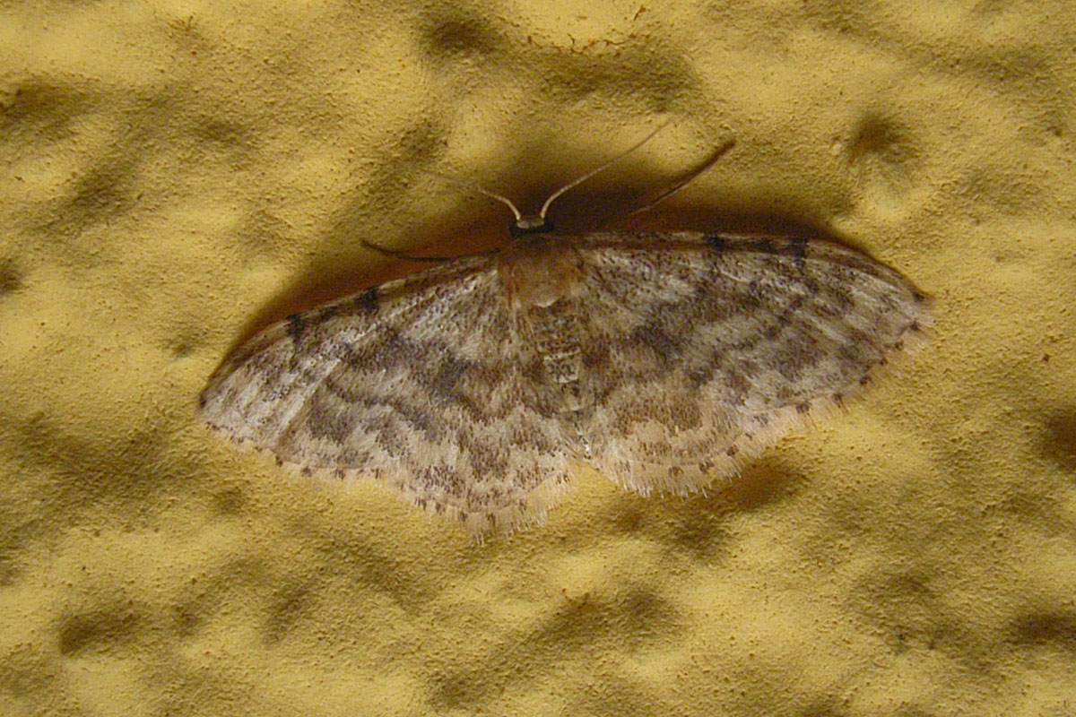 Idaea inquinata (Scopoli, 1763), an Hauswand sitzend, Wohngrundstück, 01896 Lichtenberg, Juni 2019. (© Uwe Schäfer)( Bild vergrößern)
