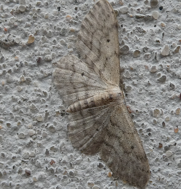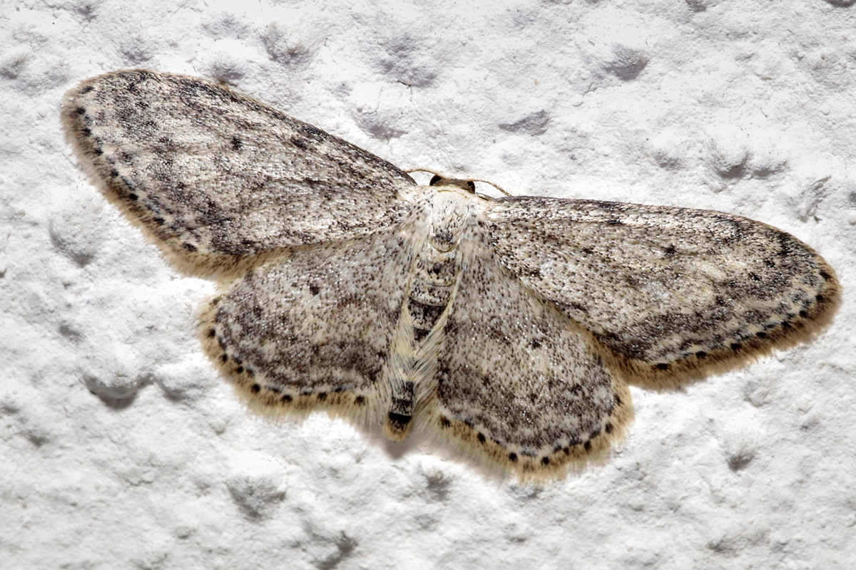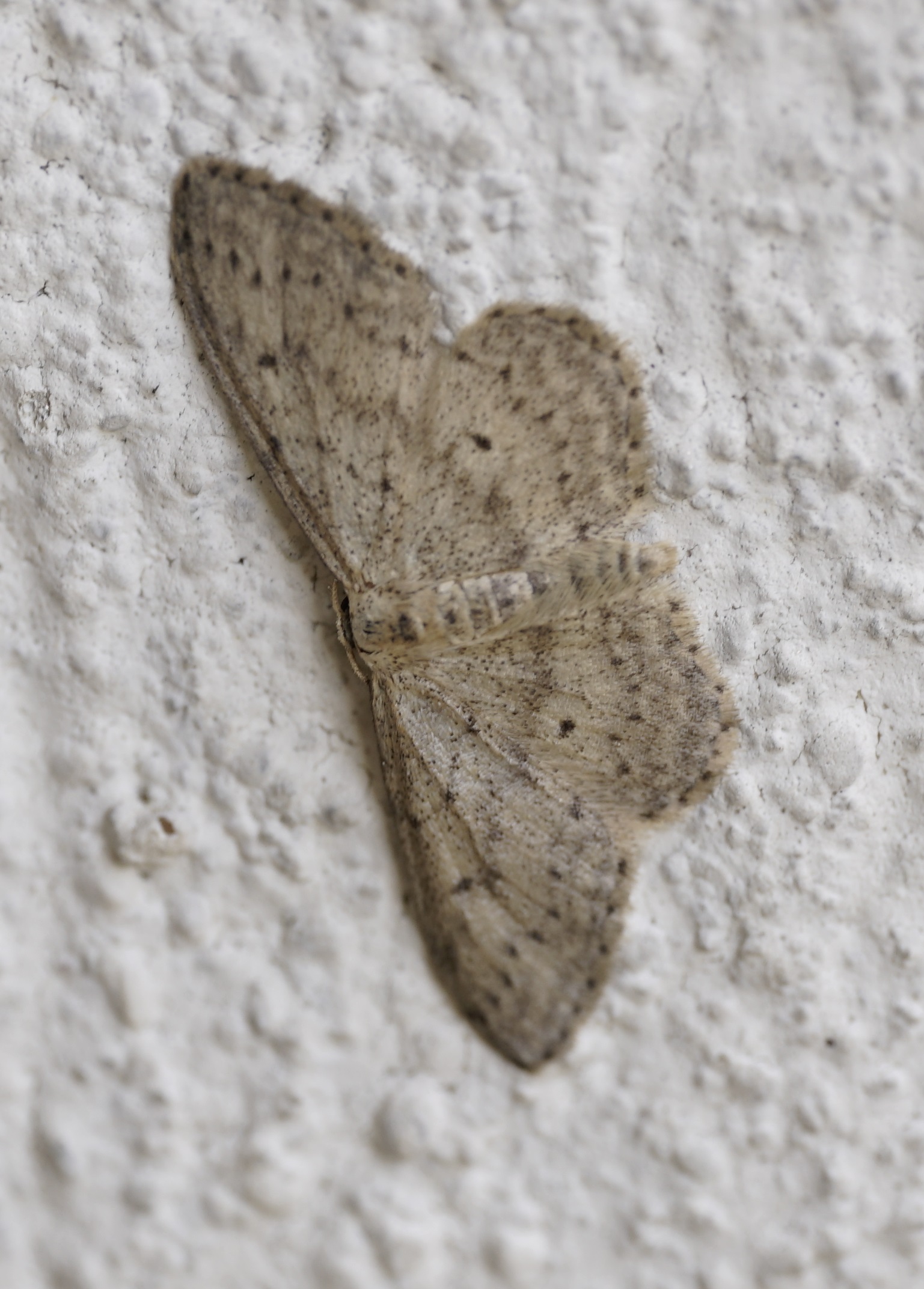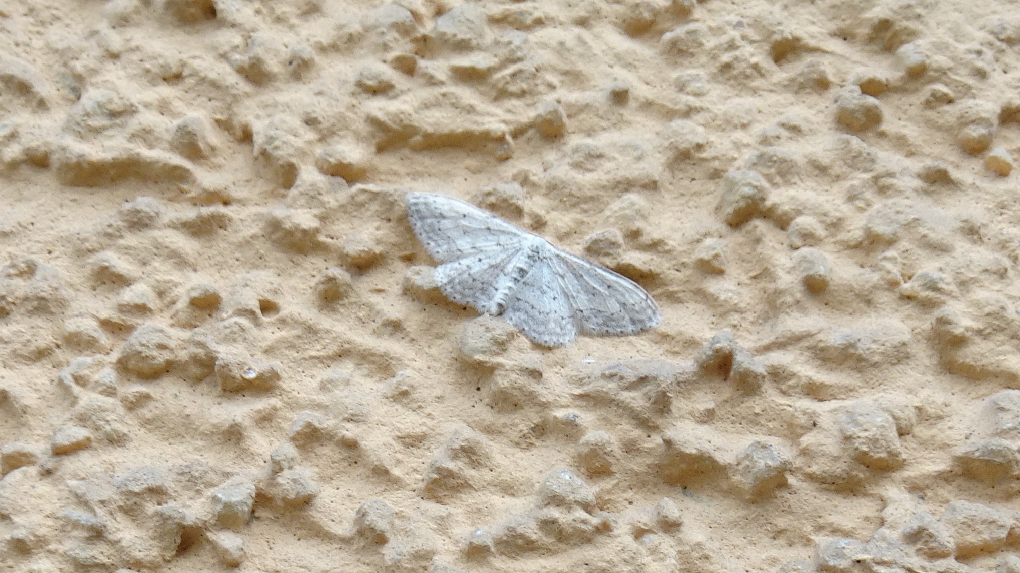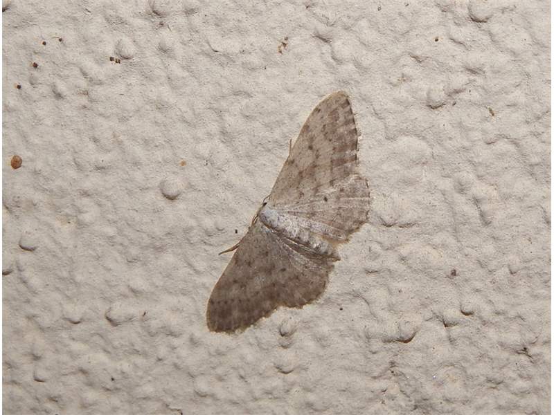 Grauer Zwergspanner Anfang Juni in Panitzsch an der Hauswand