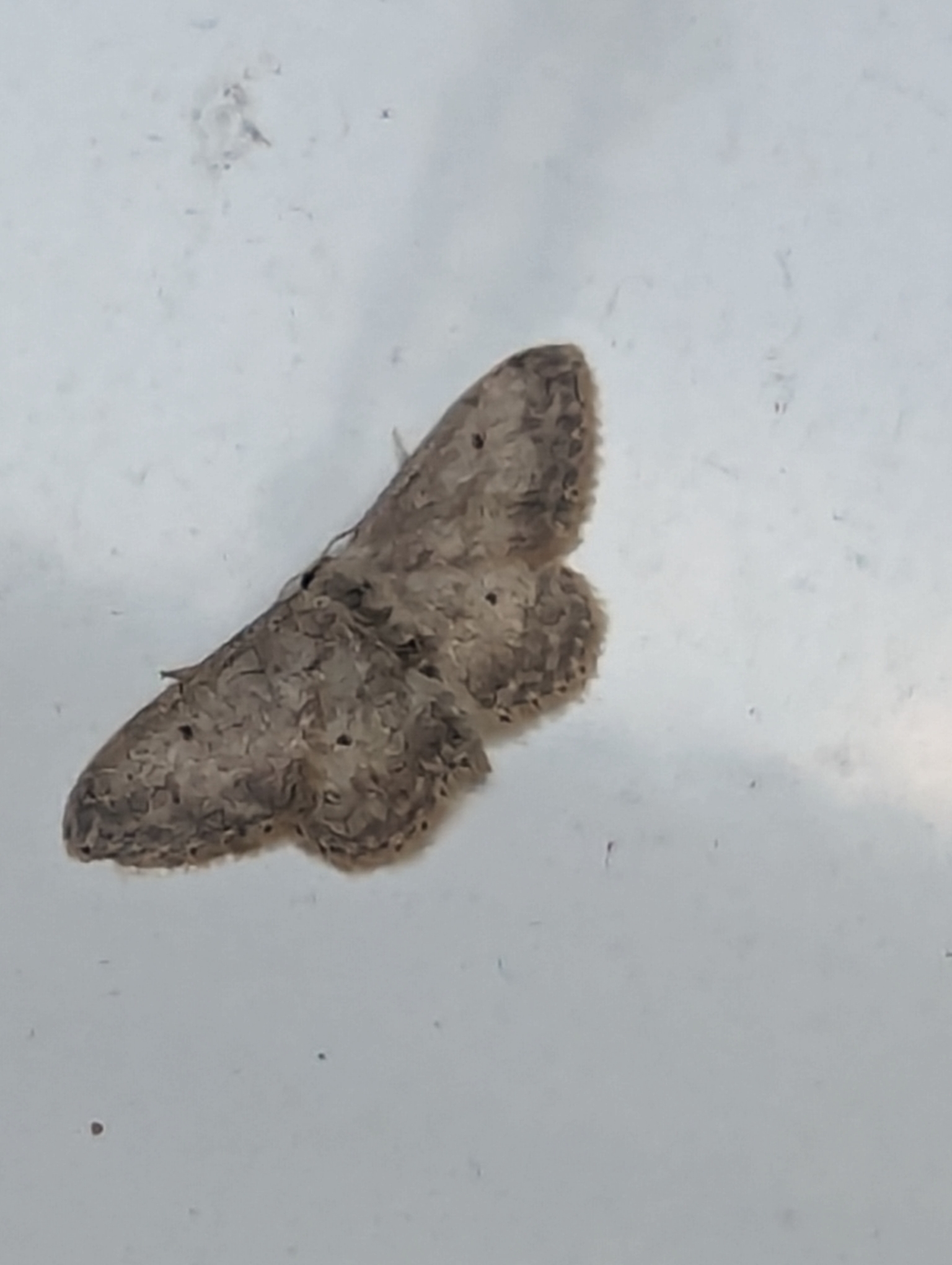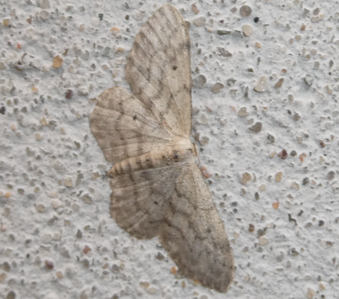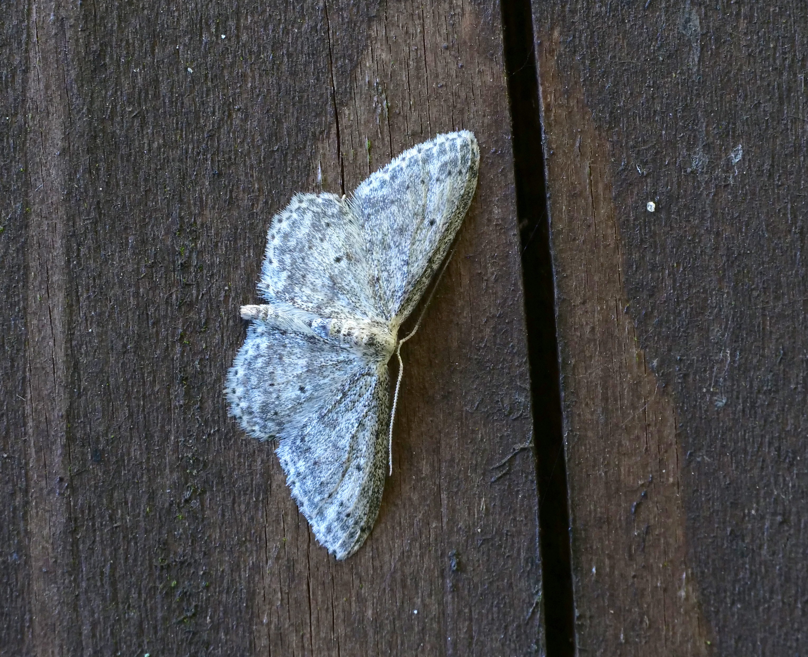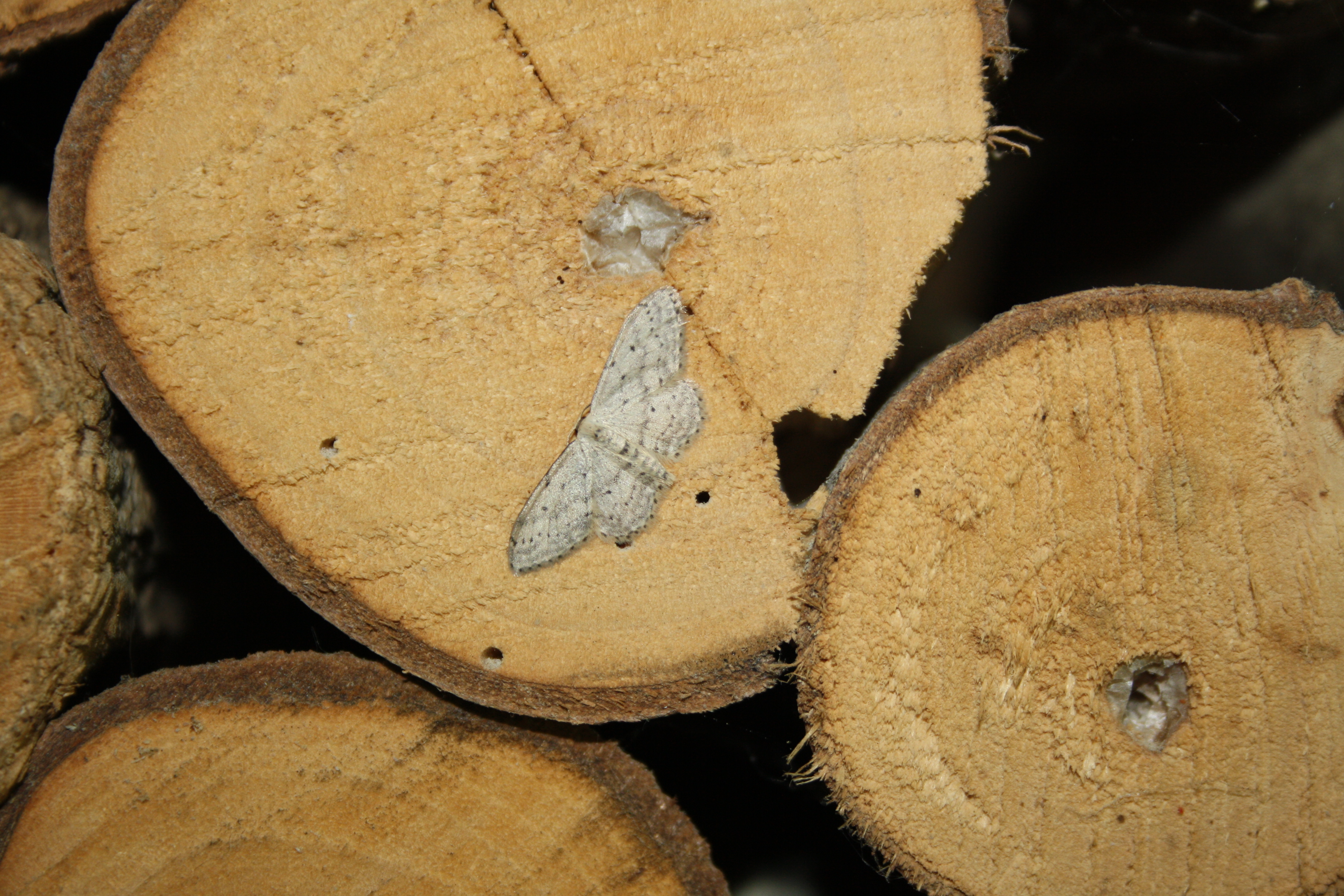 Grauer Zwergspanner Anfang Juni in Panitzsch an der Hauswand