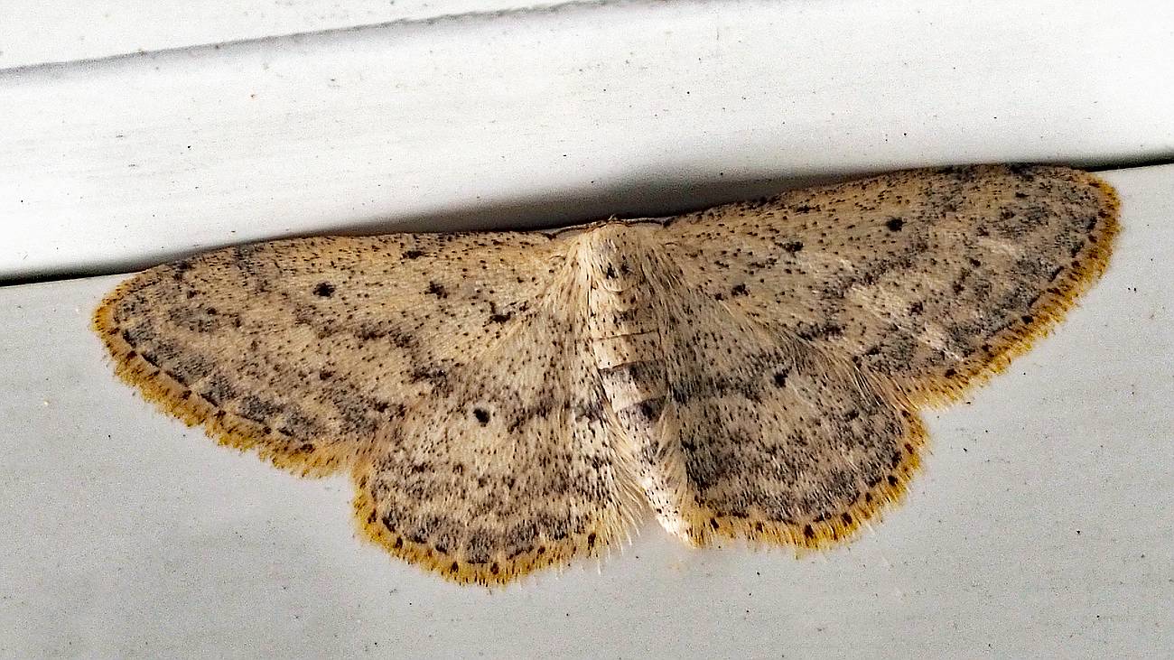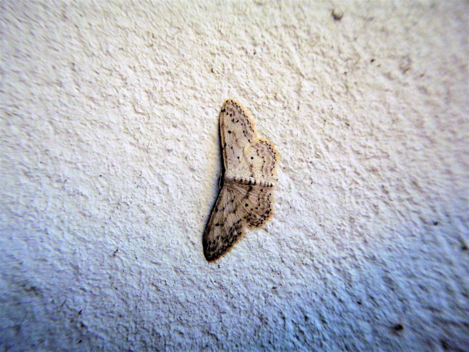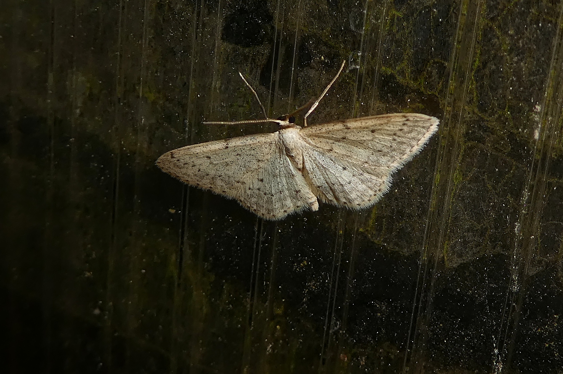 Idaea seriata (Schrank, 1802), im Hauseingang in 01896 Lichtenberg, September 2018.