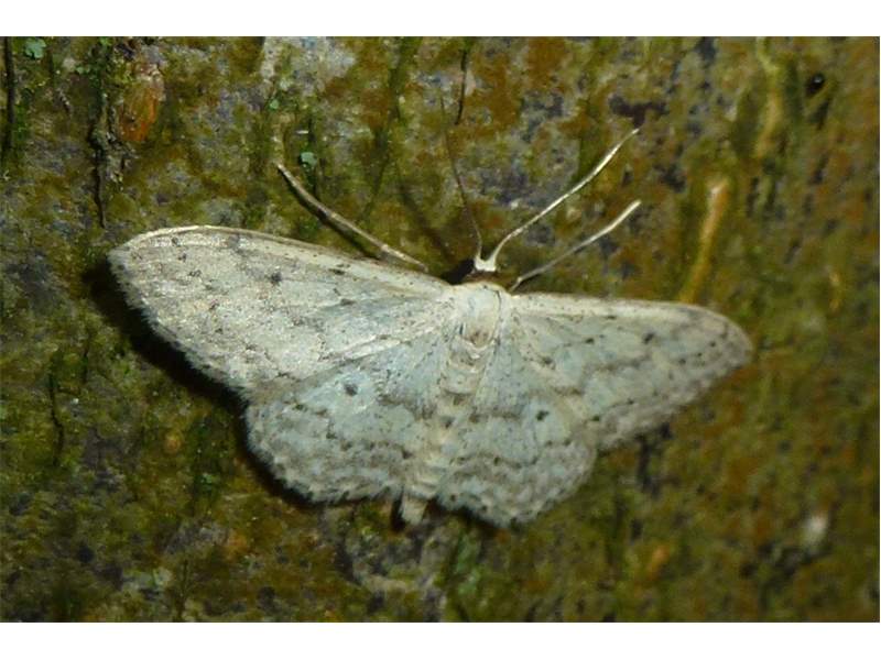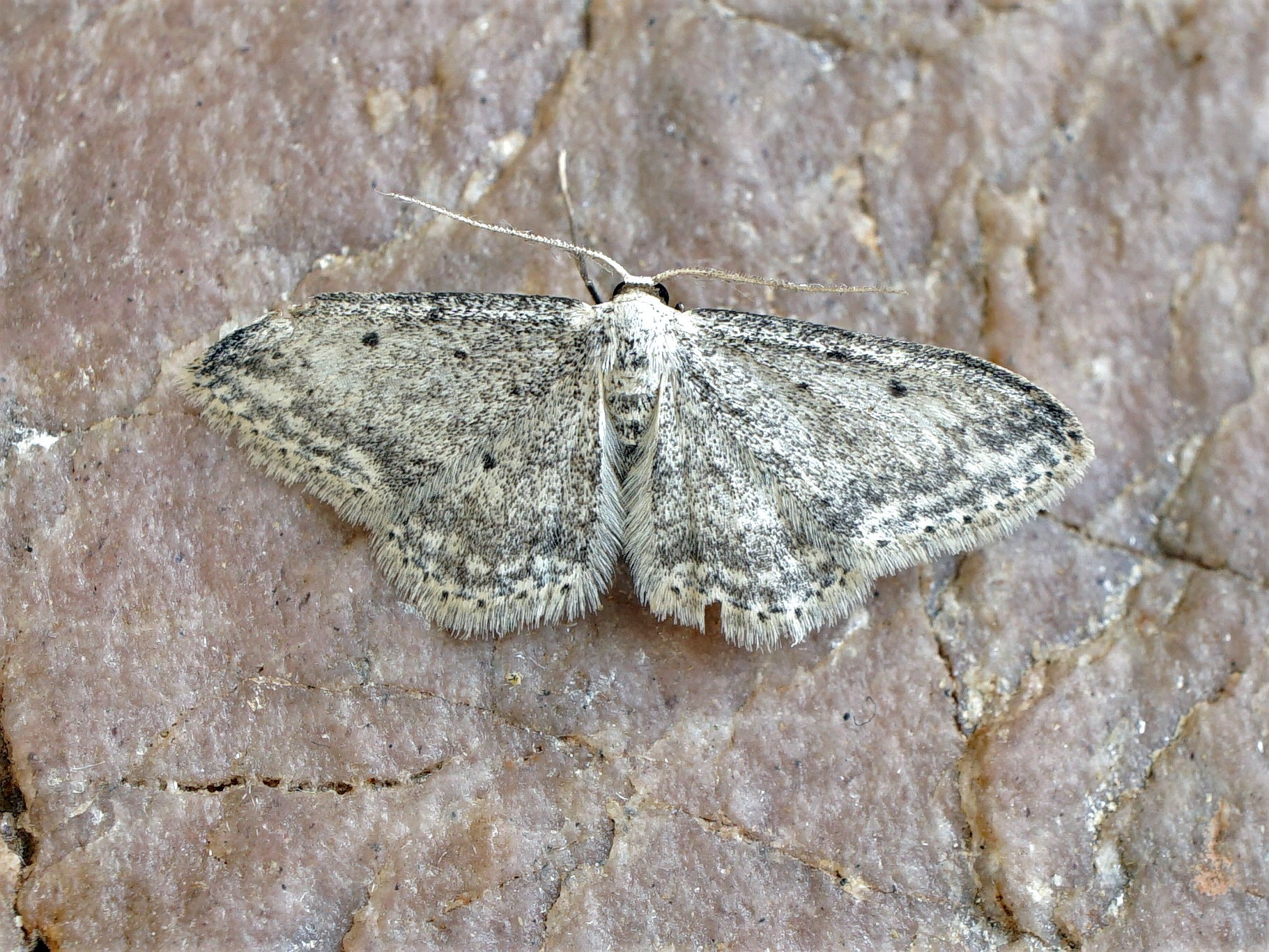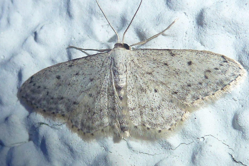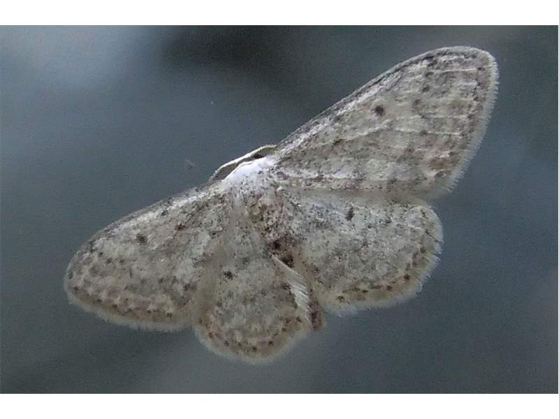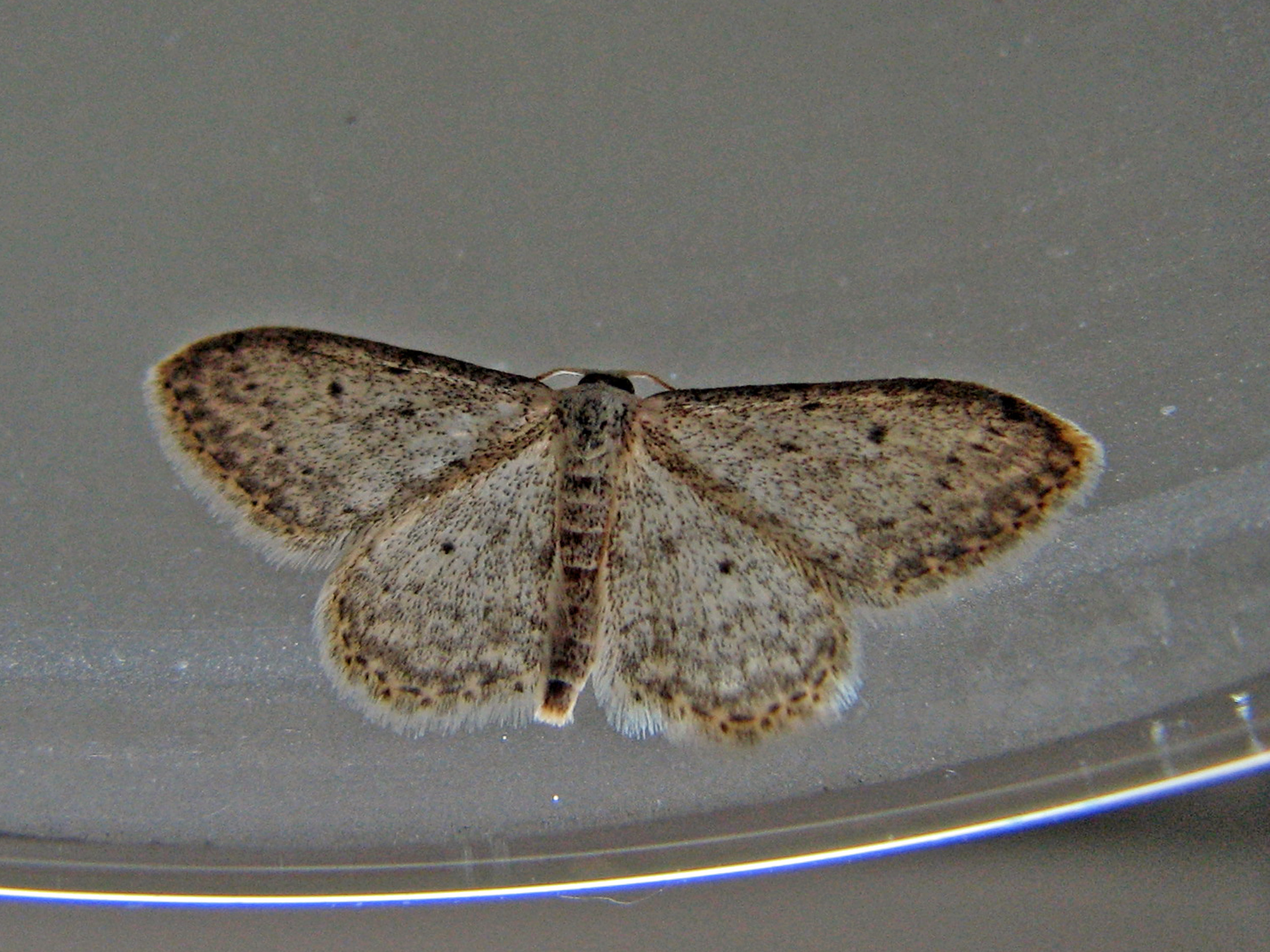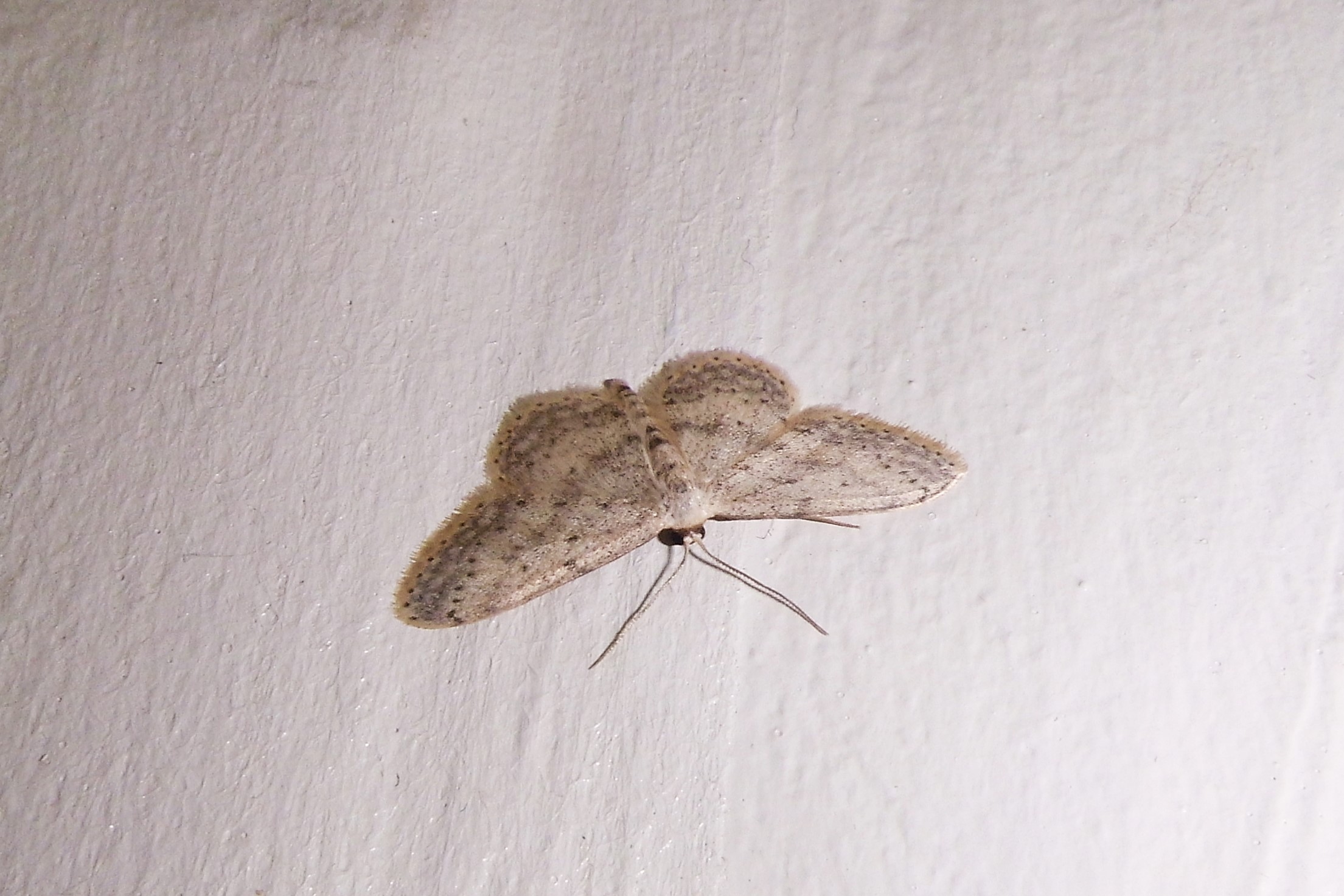 Idaea seriata Diesen Grauen Zwergspanner fanden wir am 19.05.2014 an unserem Hauseingang im Wohngebiet Dresden Gorbitz