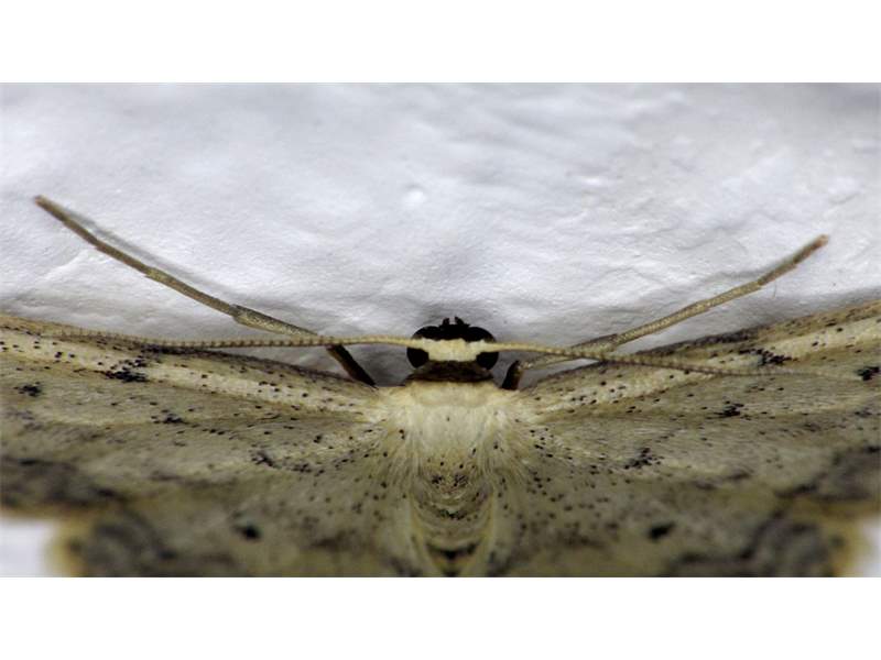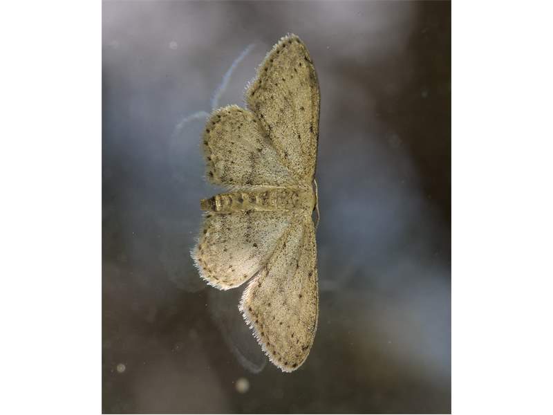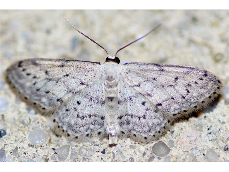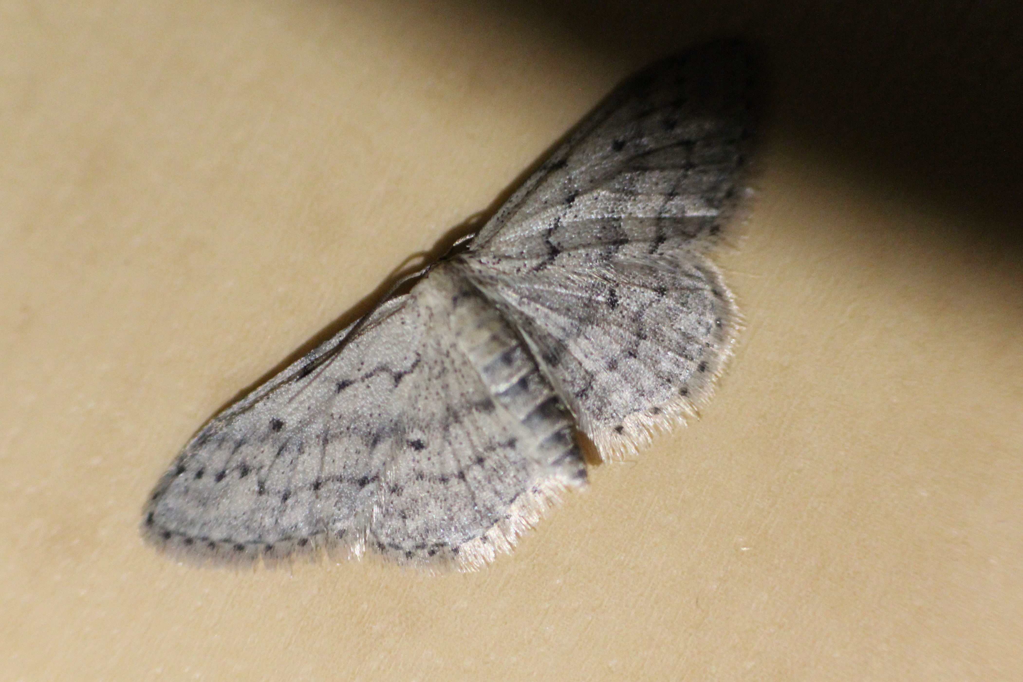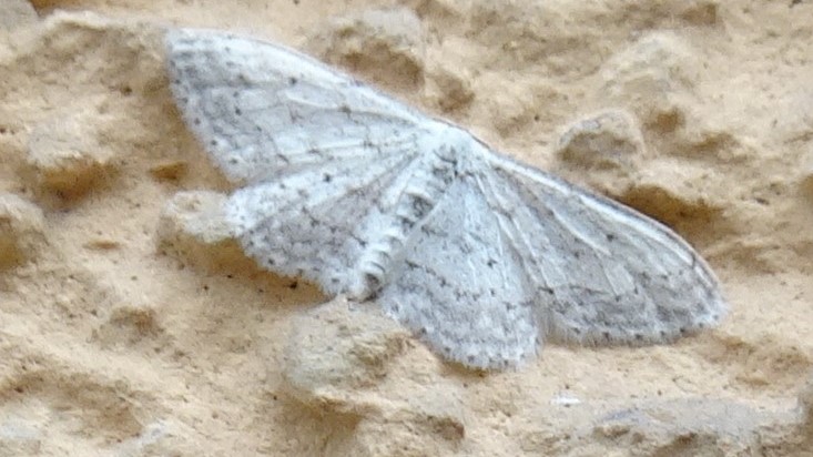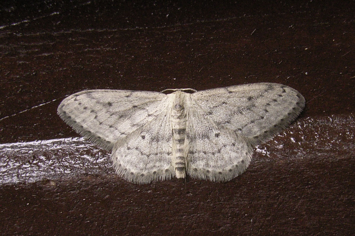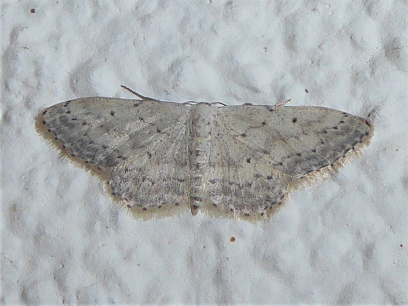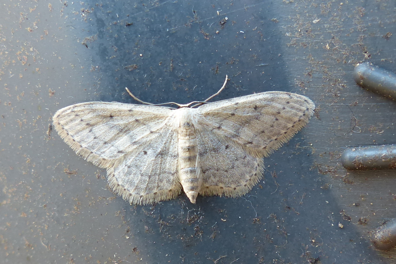 Idaea seriata Diesen Grauen Zwergspanner fanden wir am 19.05.2014 an unserem Hauseingang im Wohngebiet Dresden Gorbitz