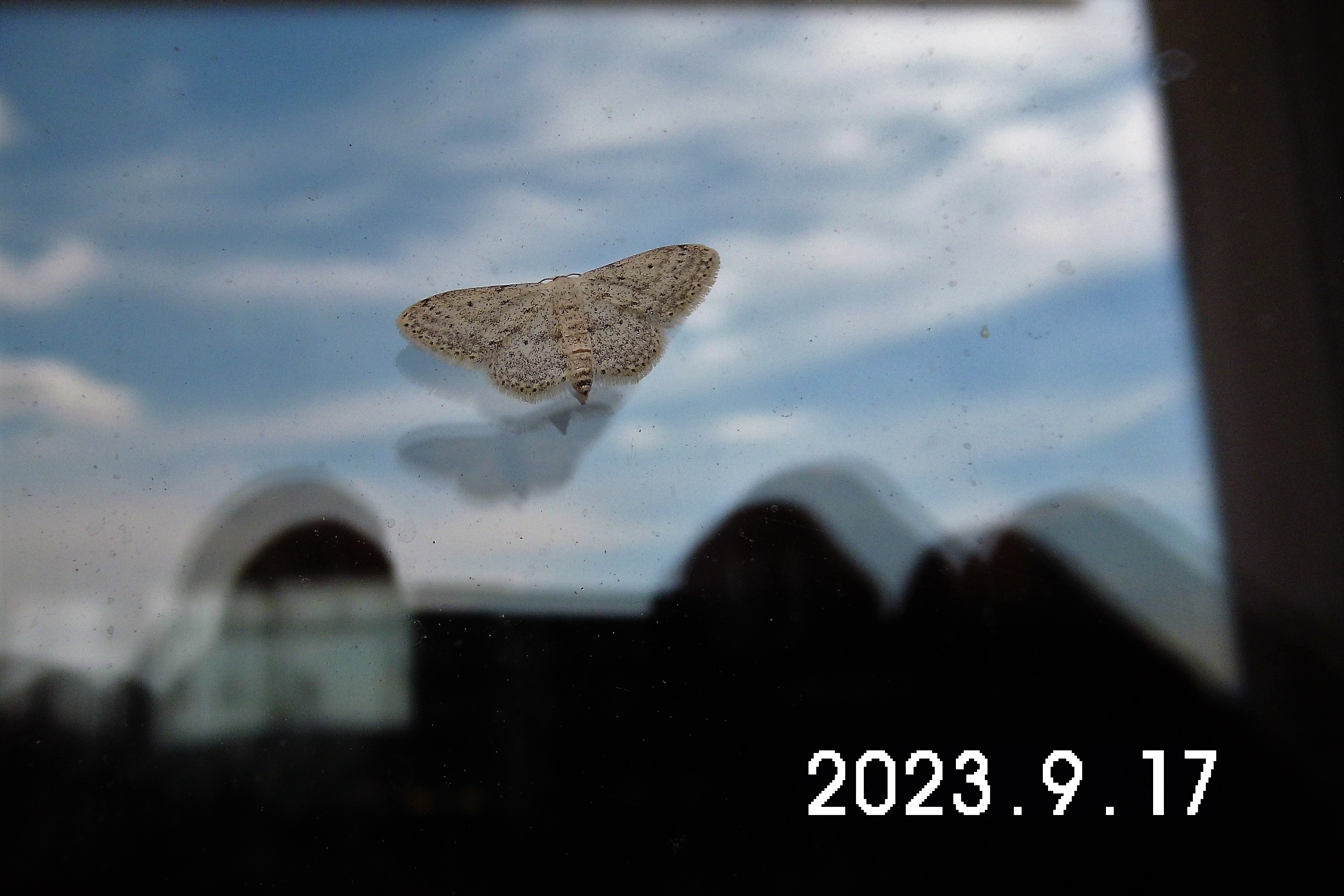 Idaea seriata an einem Fenster des Wohnhauses in Leipzig-Grünau, August 2007