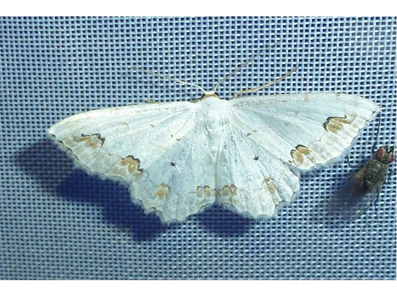 Scopula ornata (Scopoli, 1763), Tagfund an Laterne im Schloßpark Machern am 3.9.18