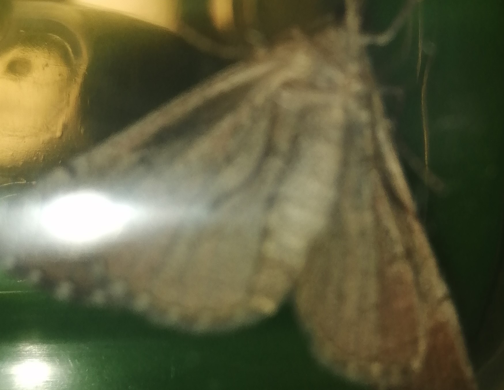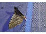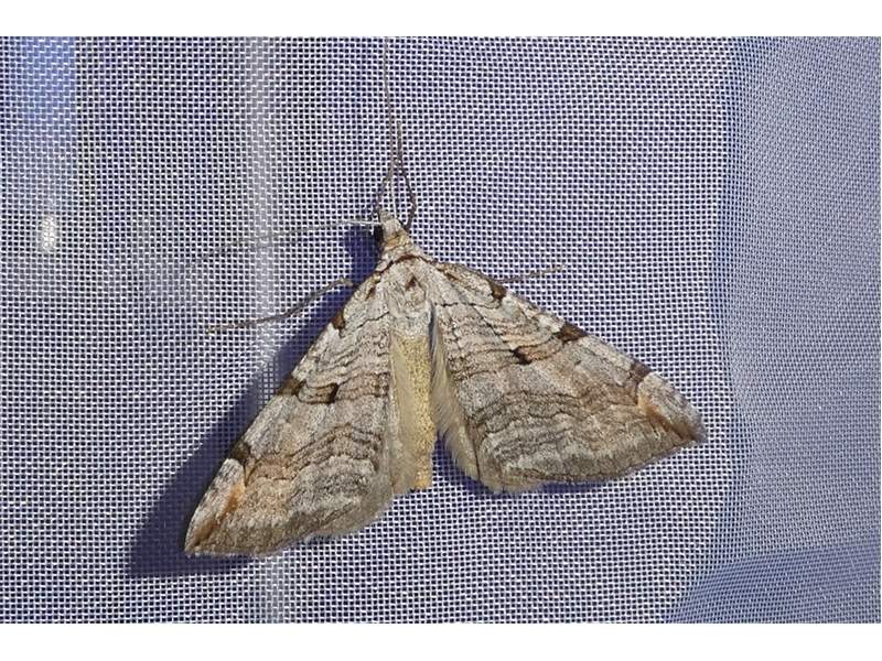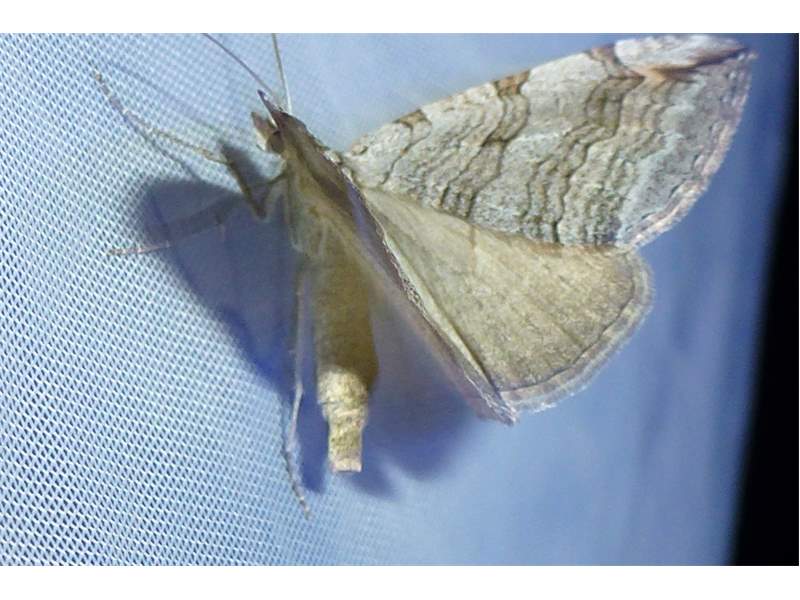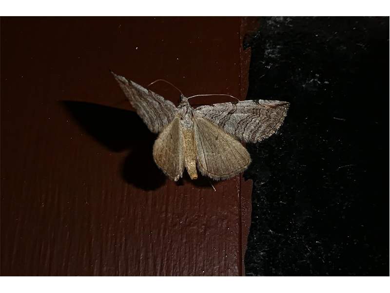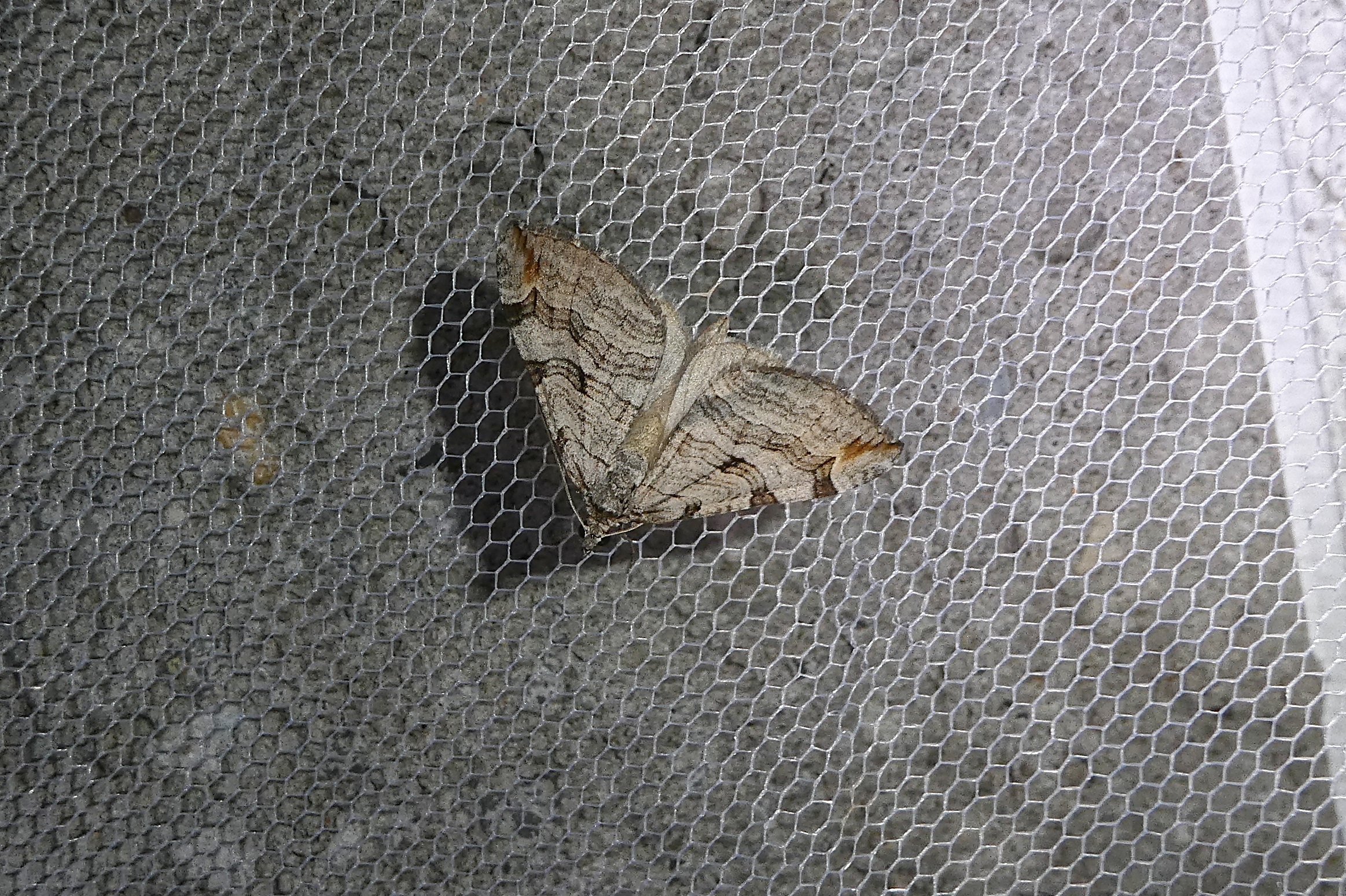 Großer Johanniskrautspanner, Unterseite des Nachtfalters, Hausterrasse 04157 Leipzig-Gohlis 31. August 2023