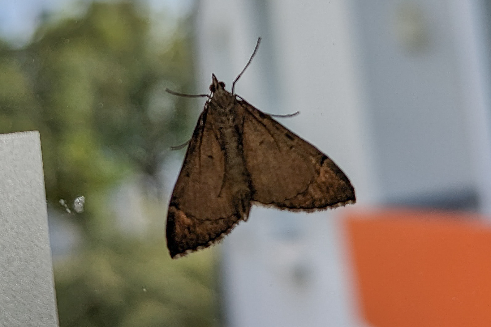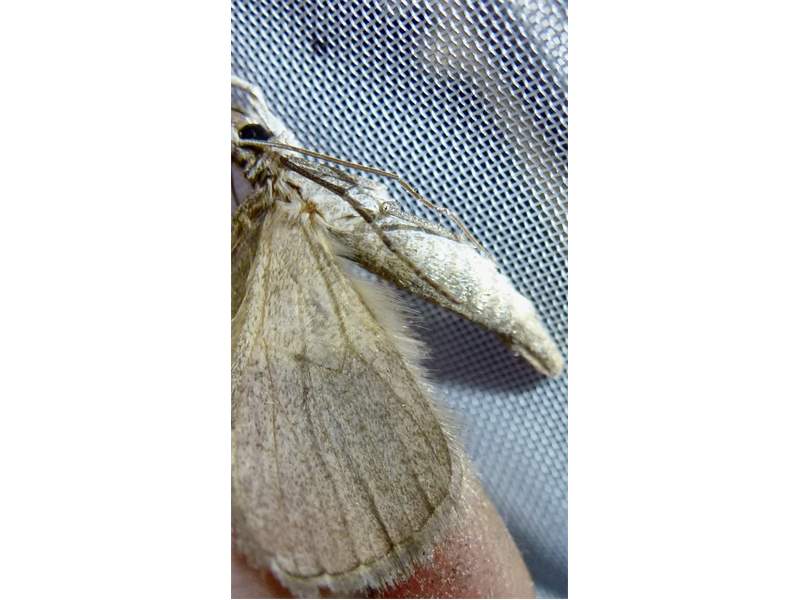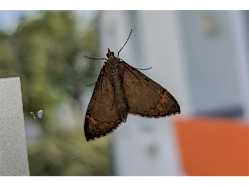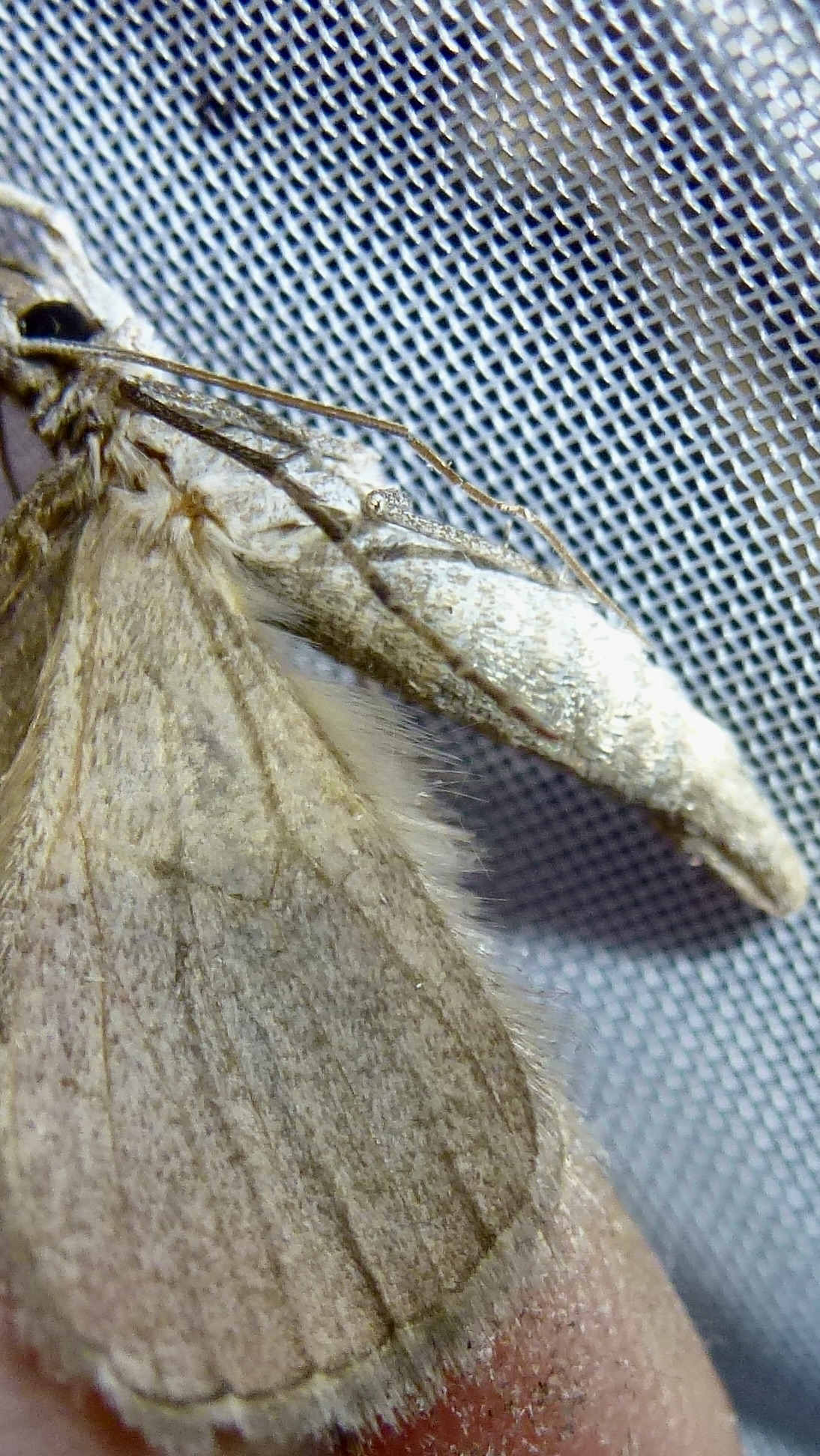 Großer Johanniskrautspanner, Unterseite des Nachtfalters, Hausterrasse 04157 Leipzig-Gohlis 31. August 2023