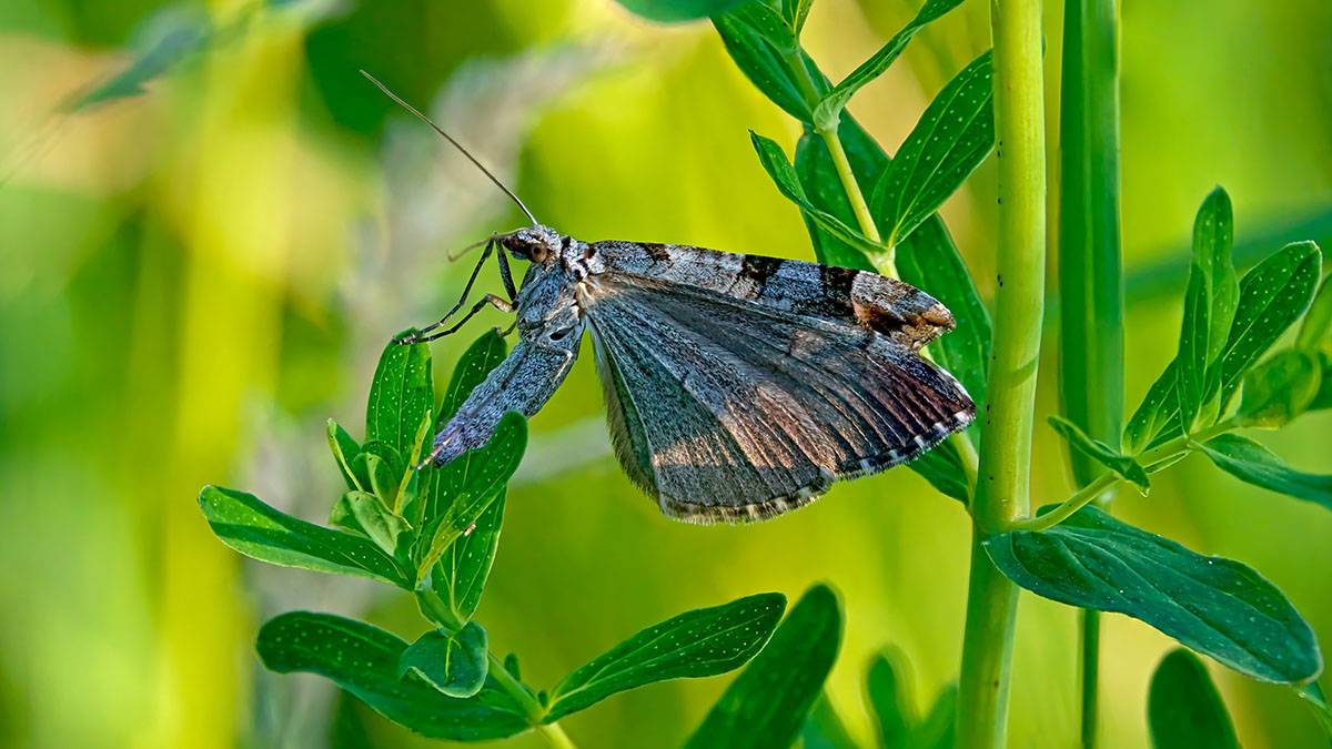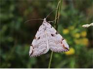 Aplocera plagiata an einem Waldweg auf der Hochhalde Trages bei Espenhain, August 2014