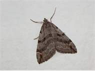 Aplocera plagiata, Gartengrundstück bei Bad Düben, am Rande der Dübener Heide, bei Licht an der Fassade, am 15.09.2019