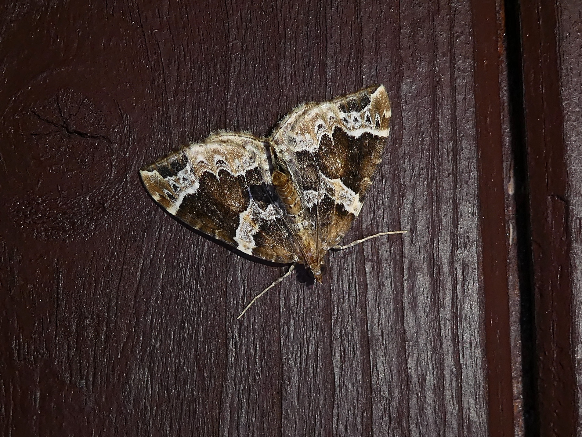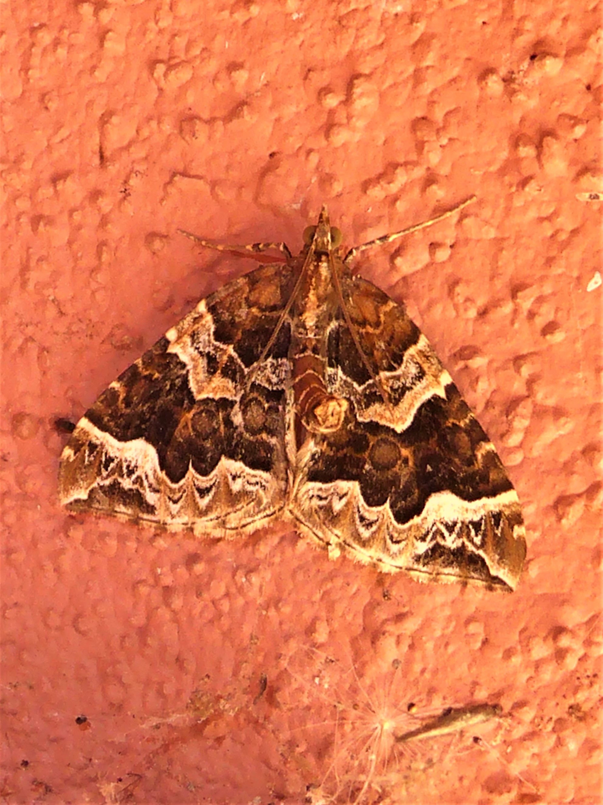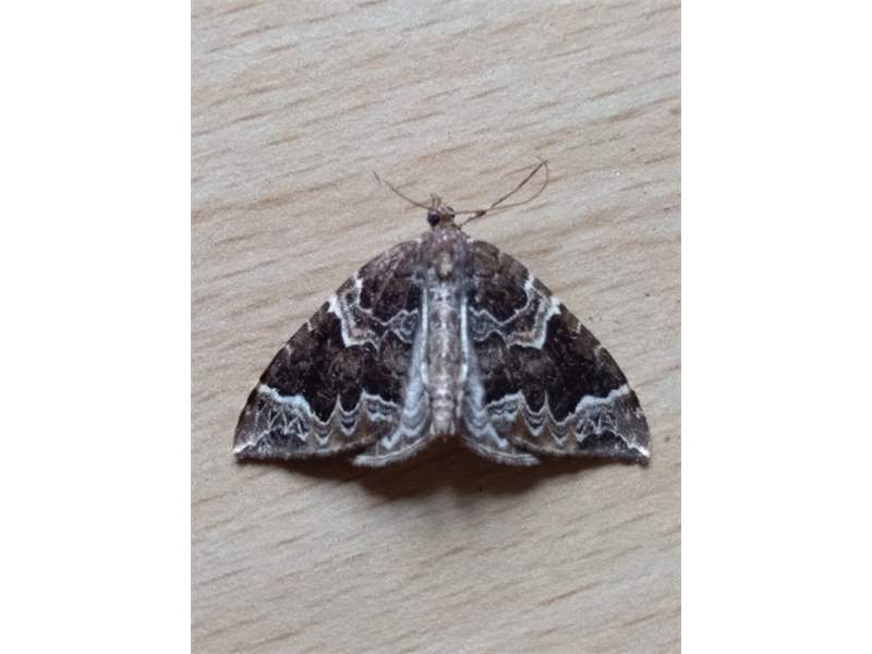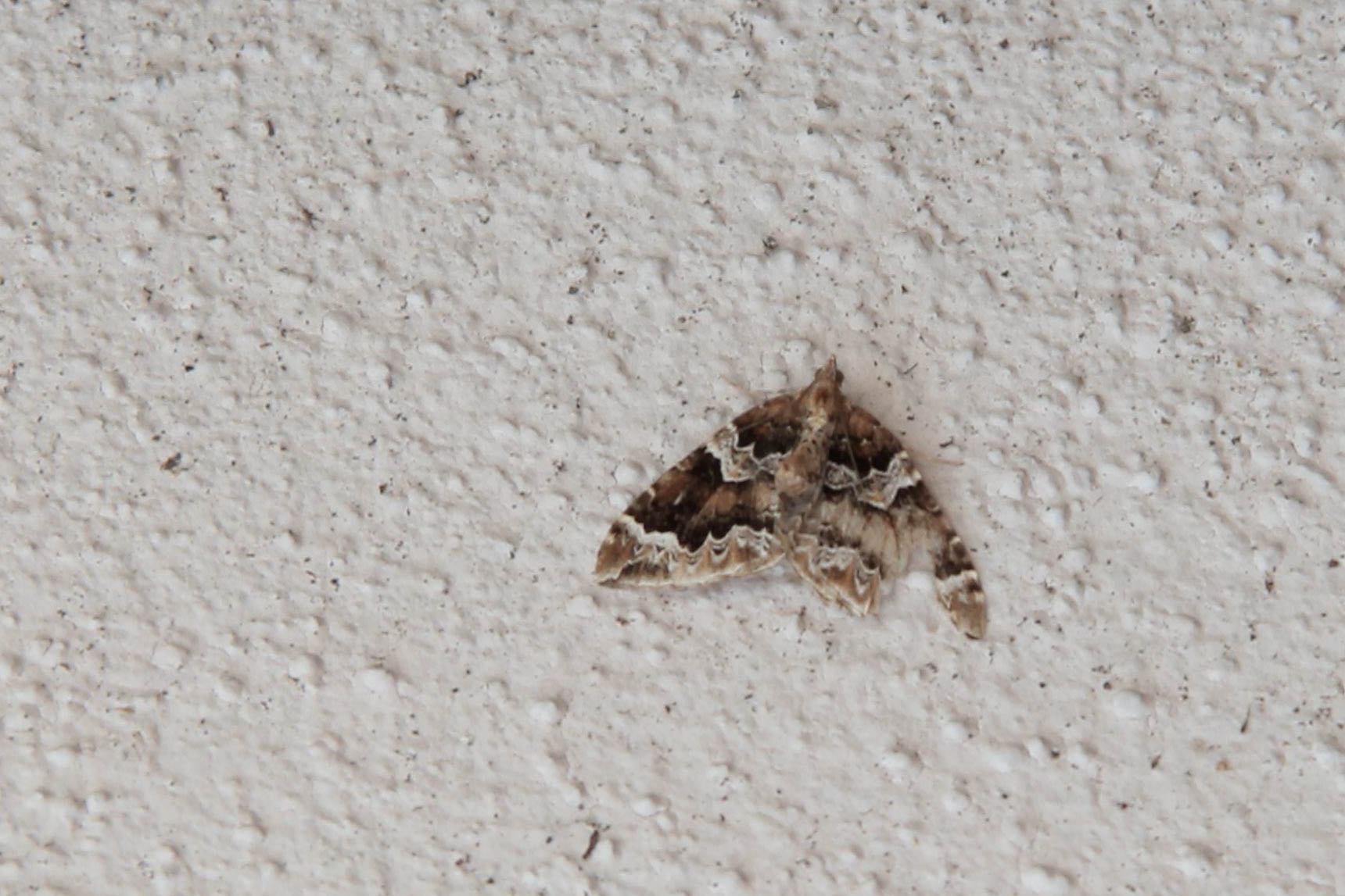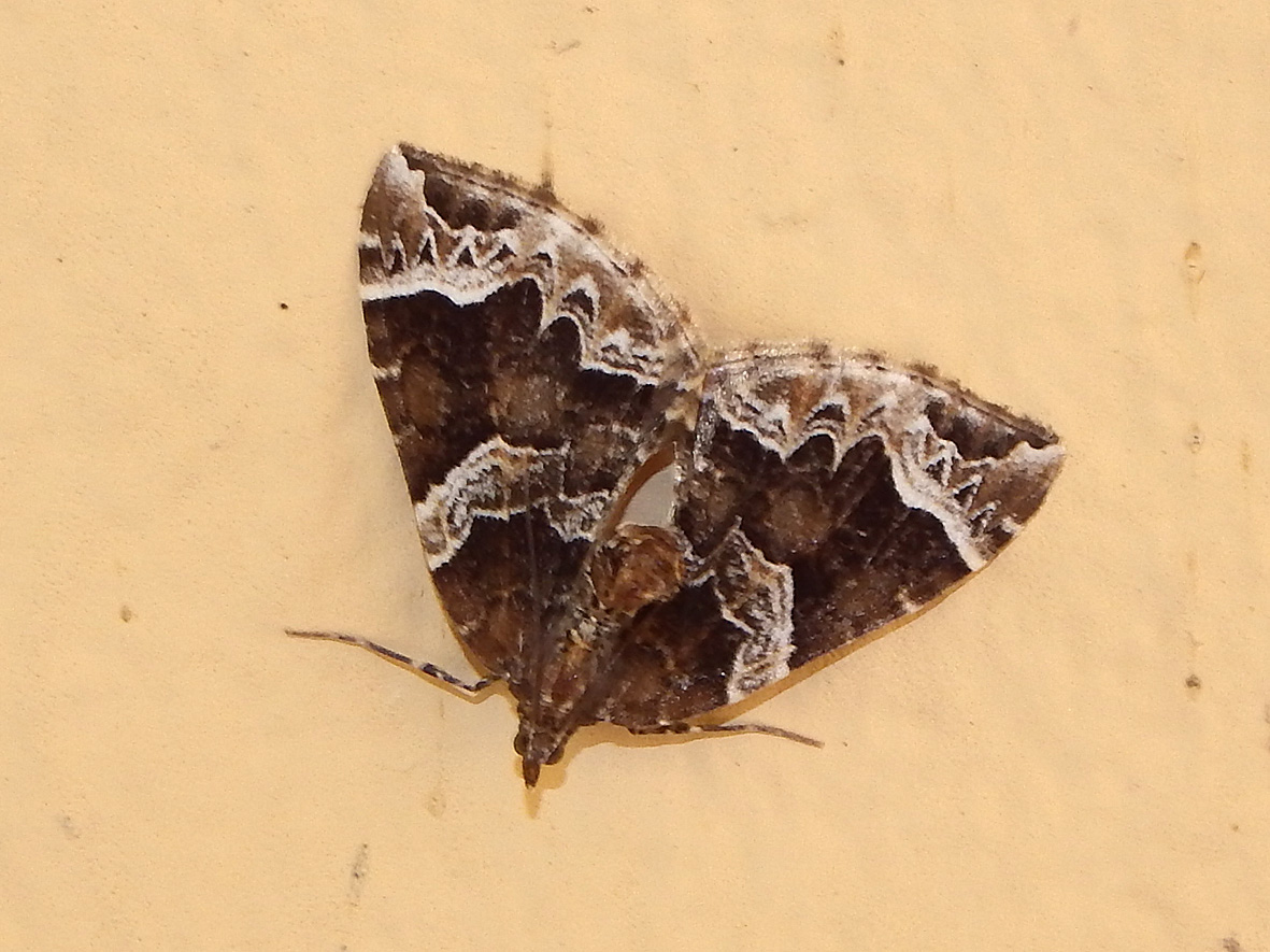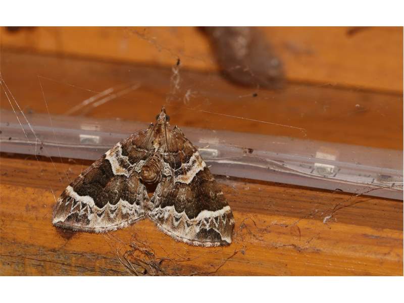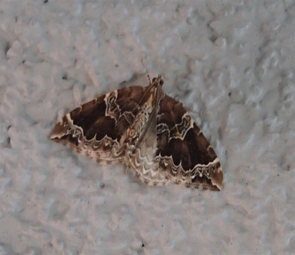 Eulithis prunata, fotografische Abbildung des Nachtfalters auf der Hausterrasse in 04157 Leipzig-Gohlis Kleiststrasse 33 am 20. Juni 2023