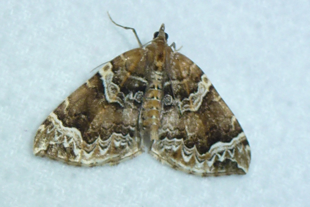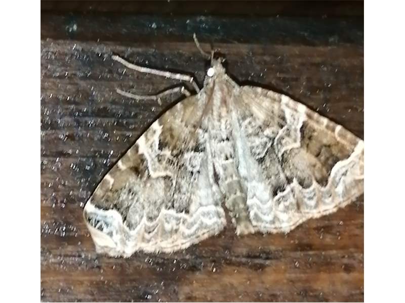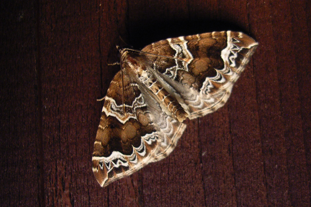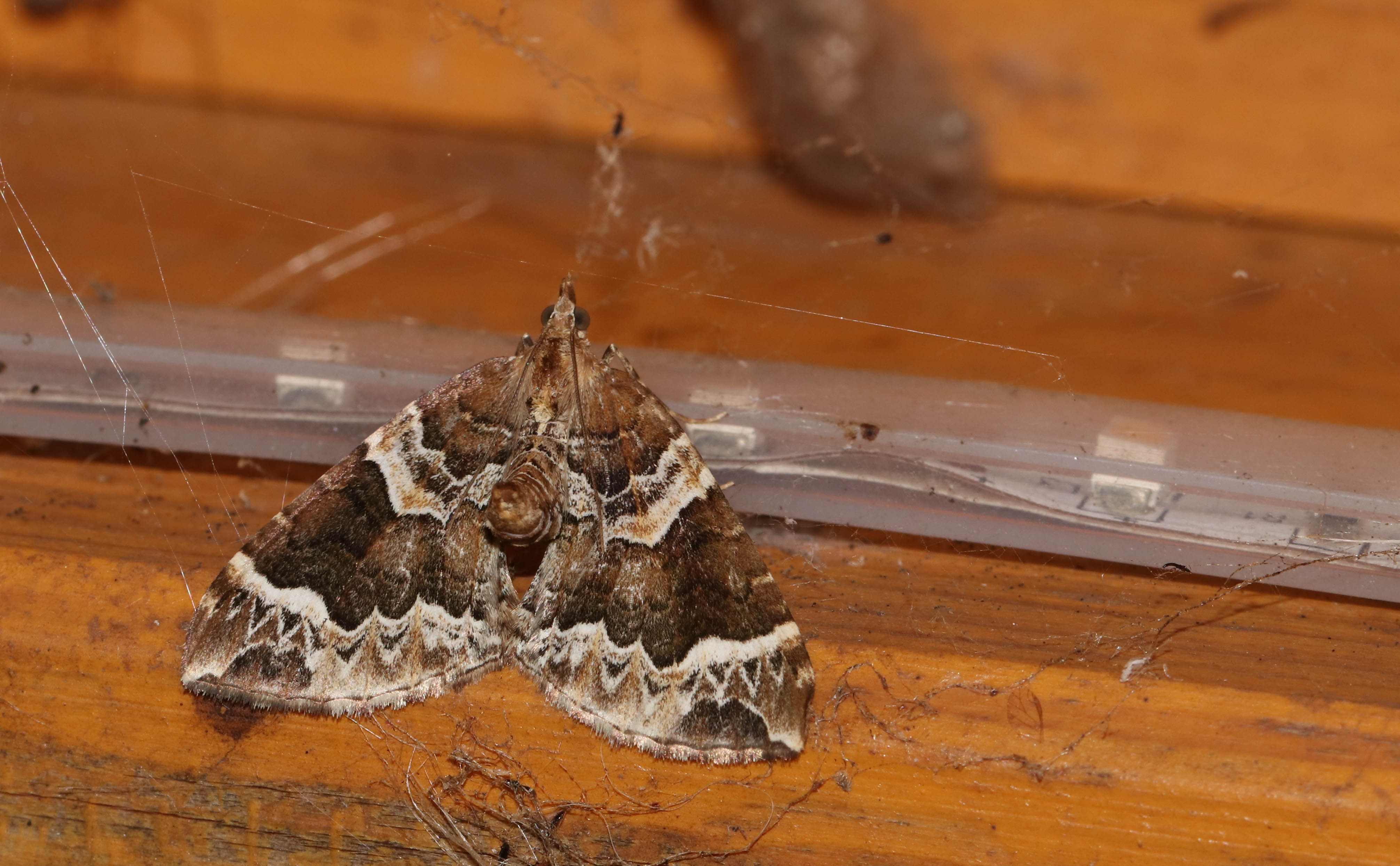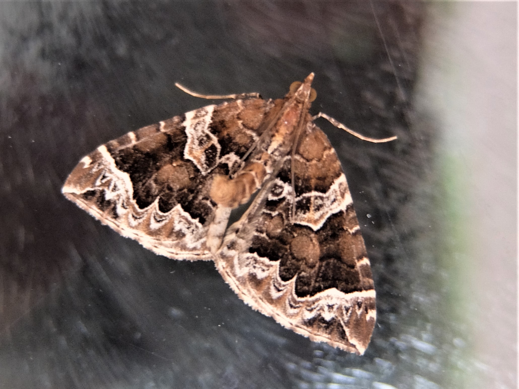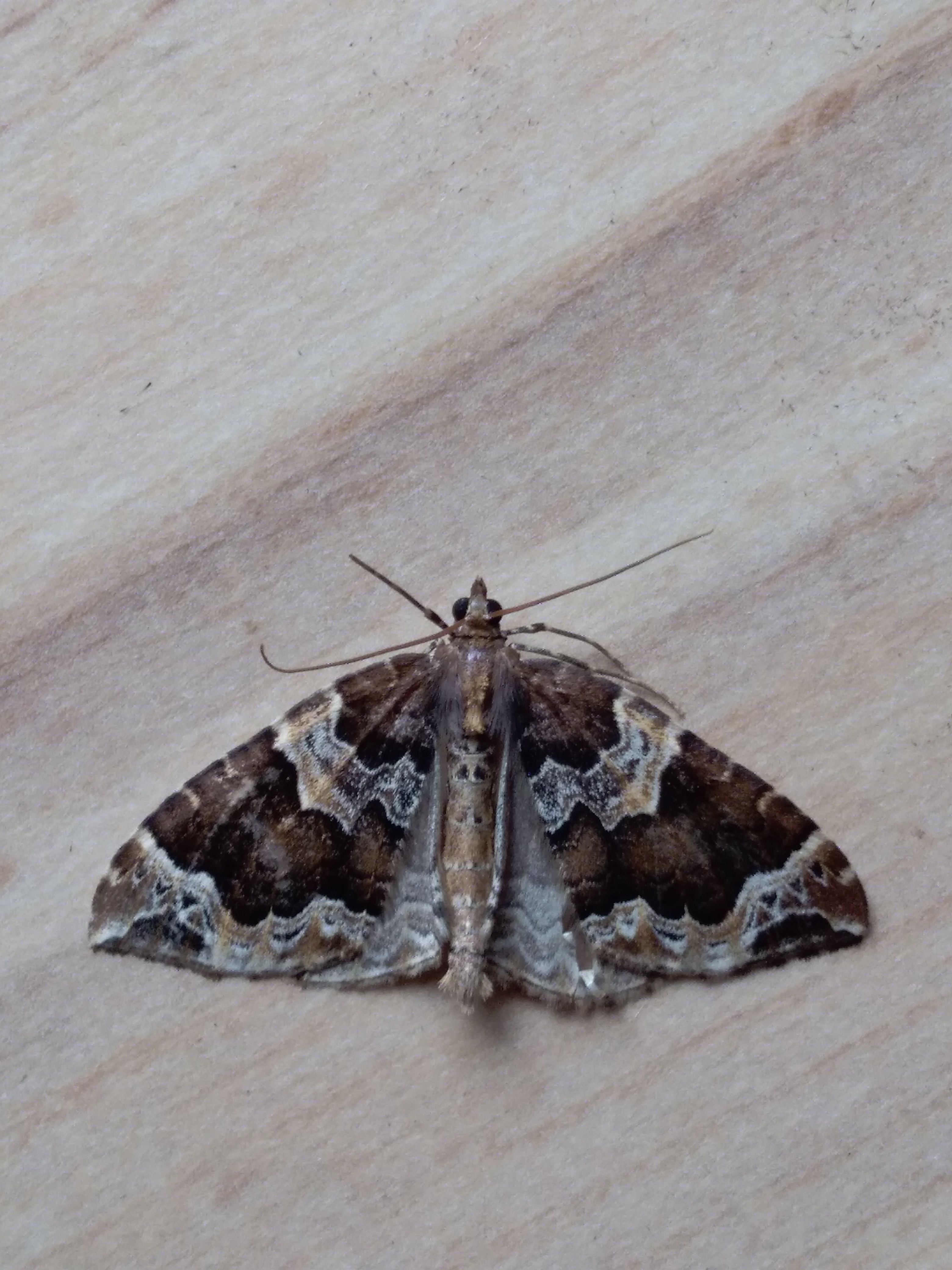 Eulithis prunata, fotografische Abbildung des Nachtfalters auf der Hausterrasse in 04157 Leipzig-Gohlis Kleiststrasse 33 am 20. Juni 2023