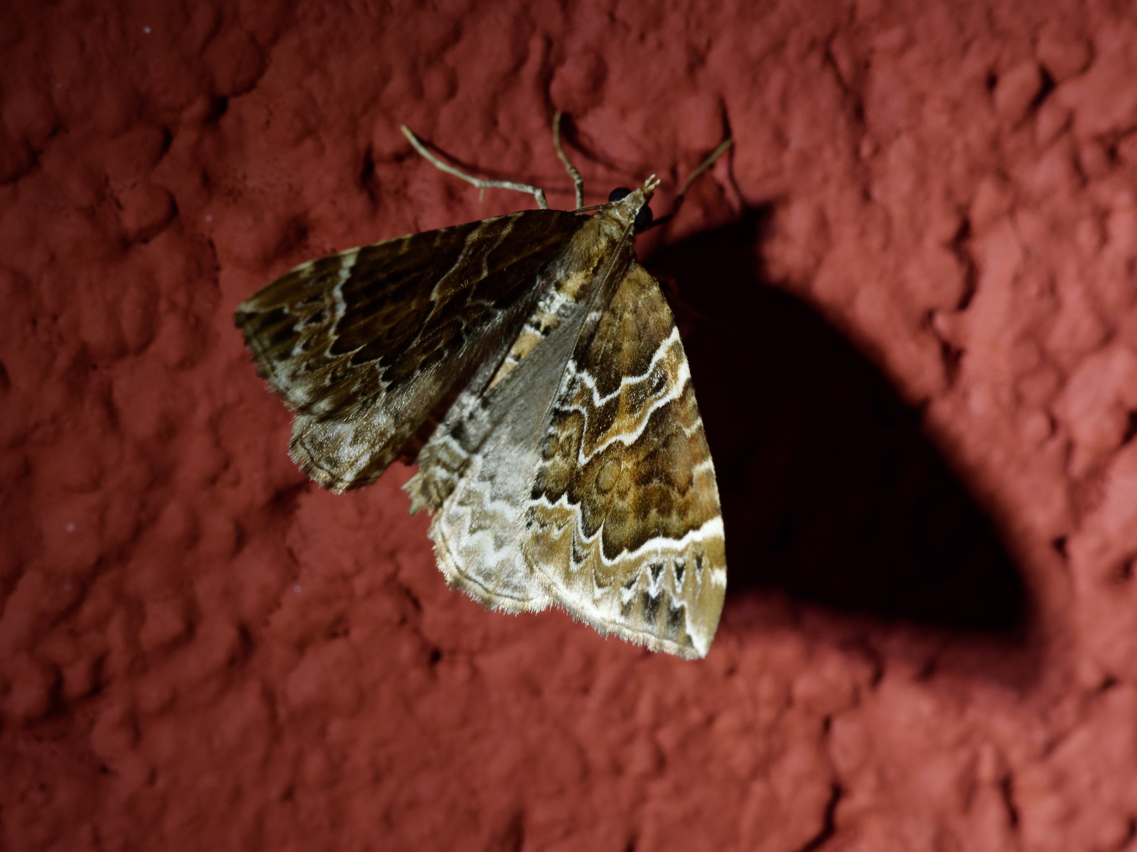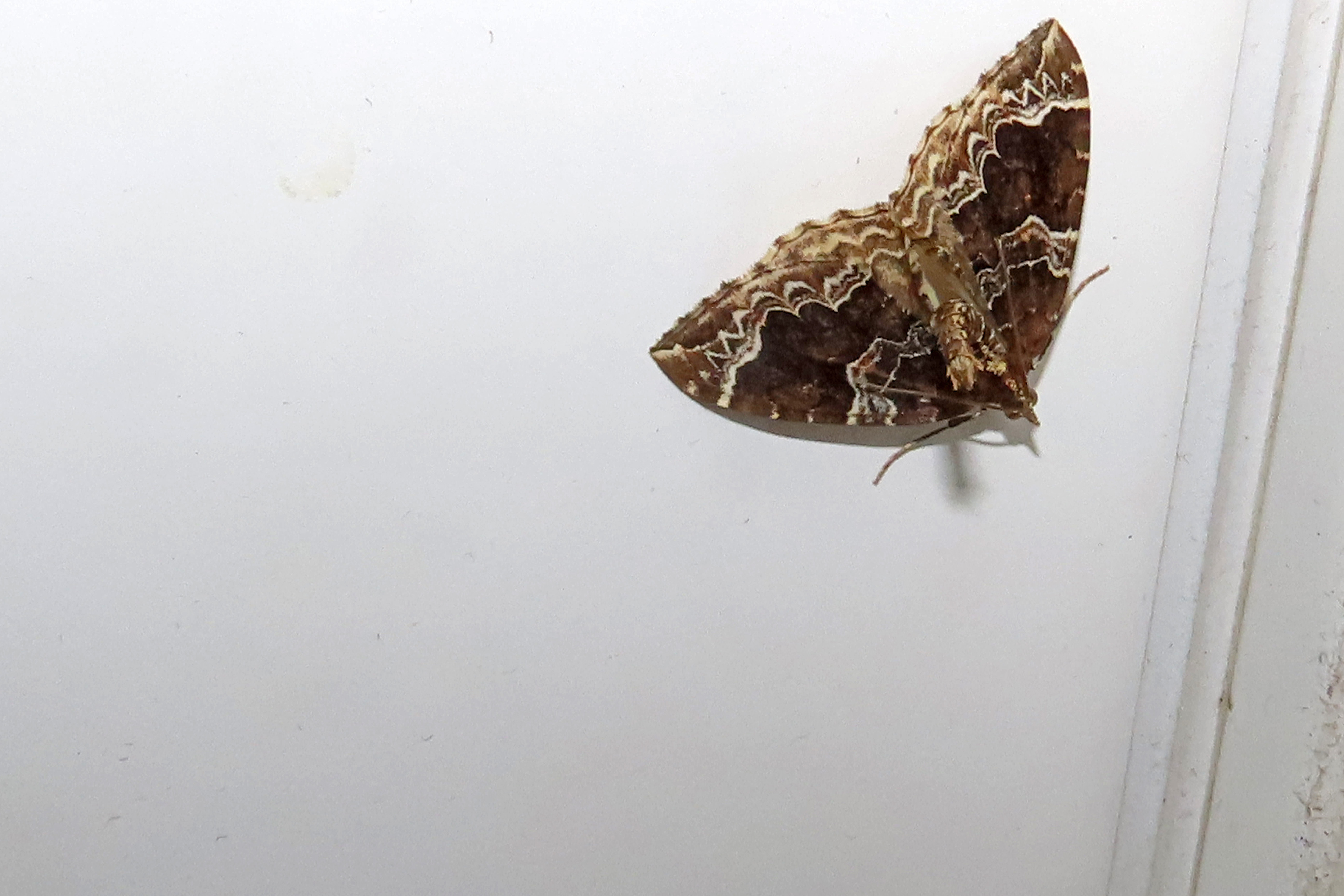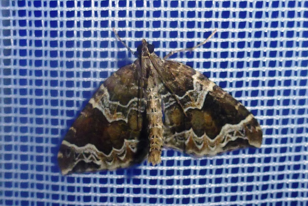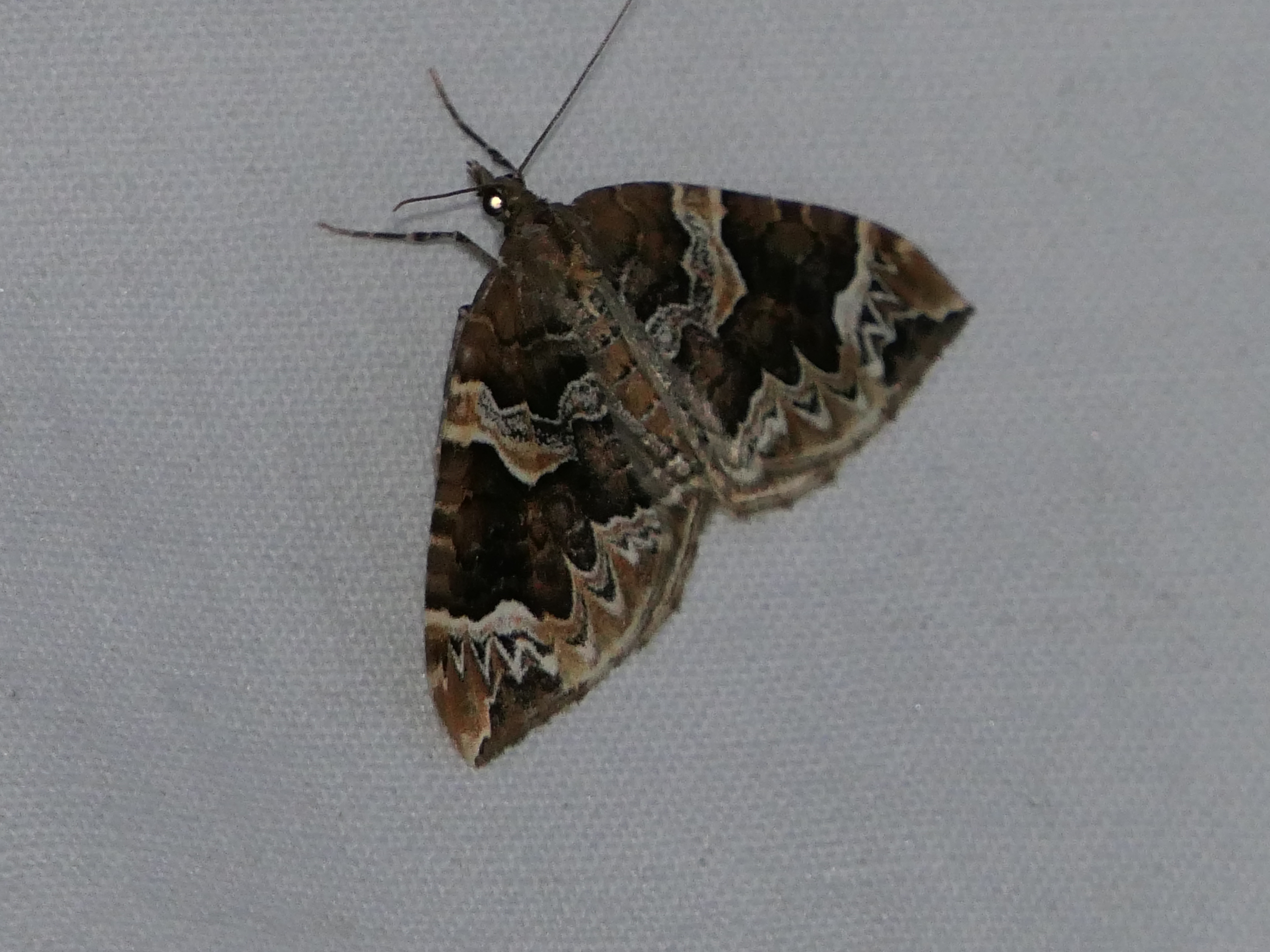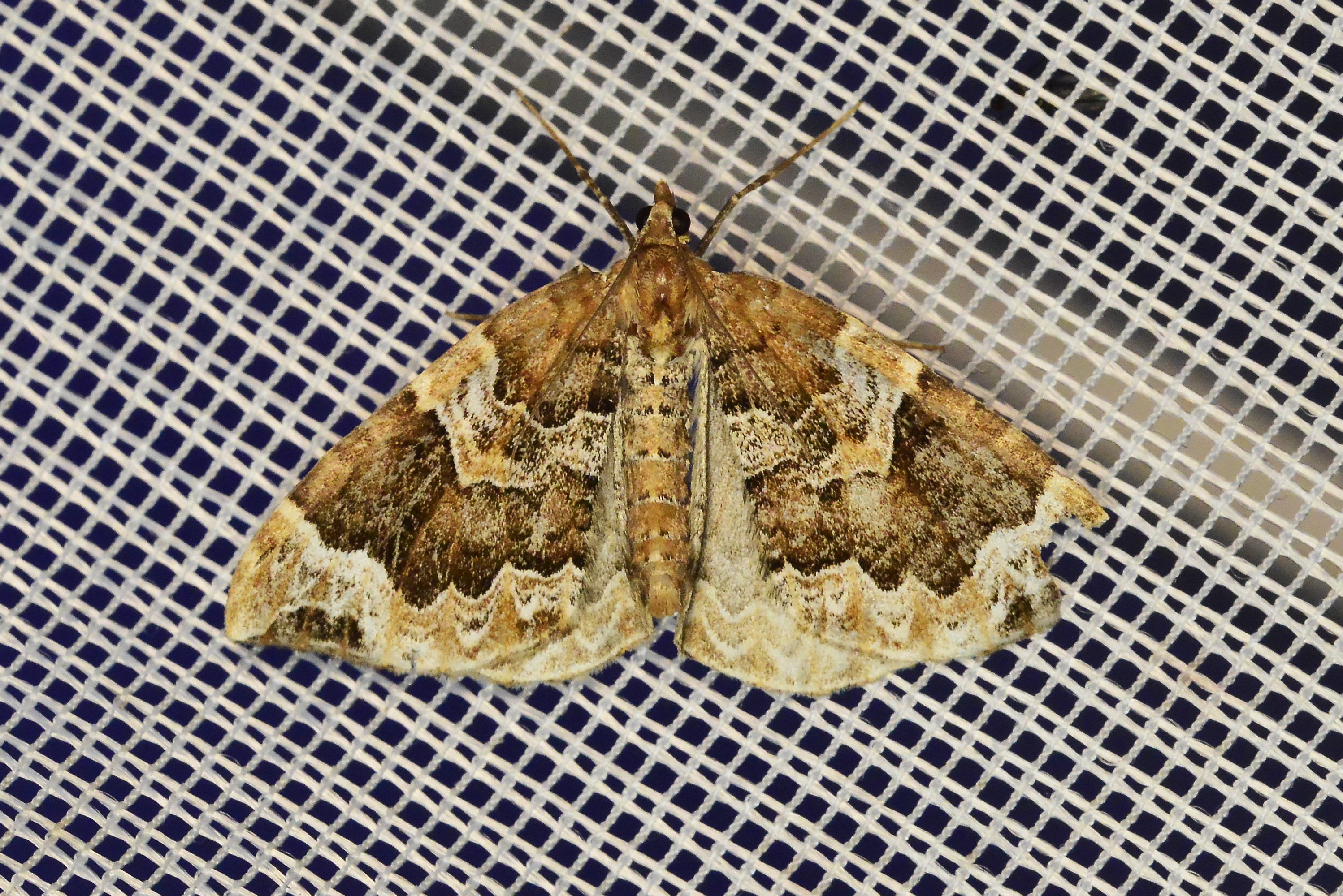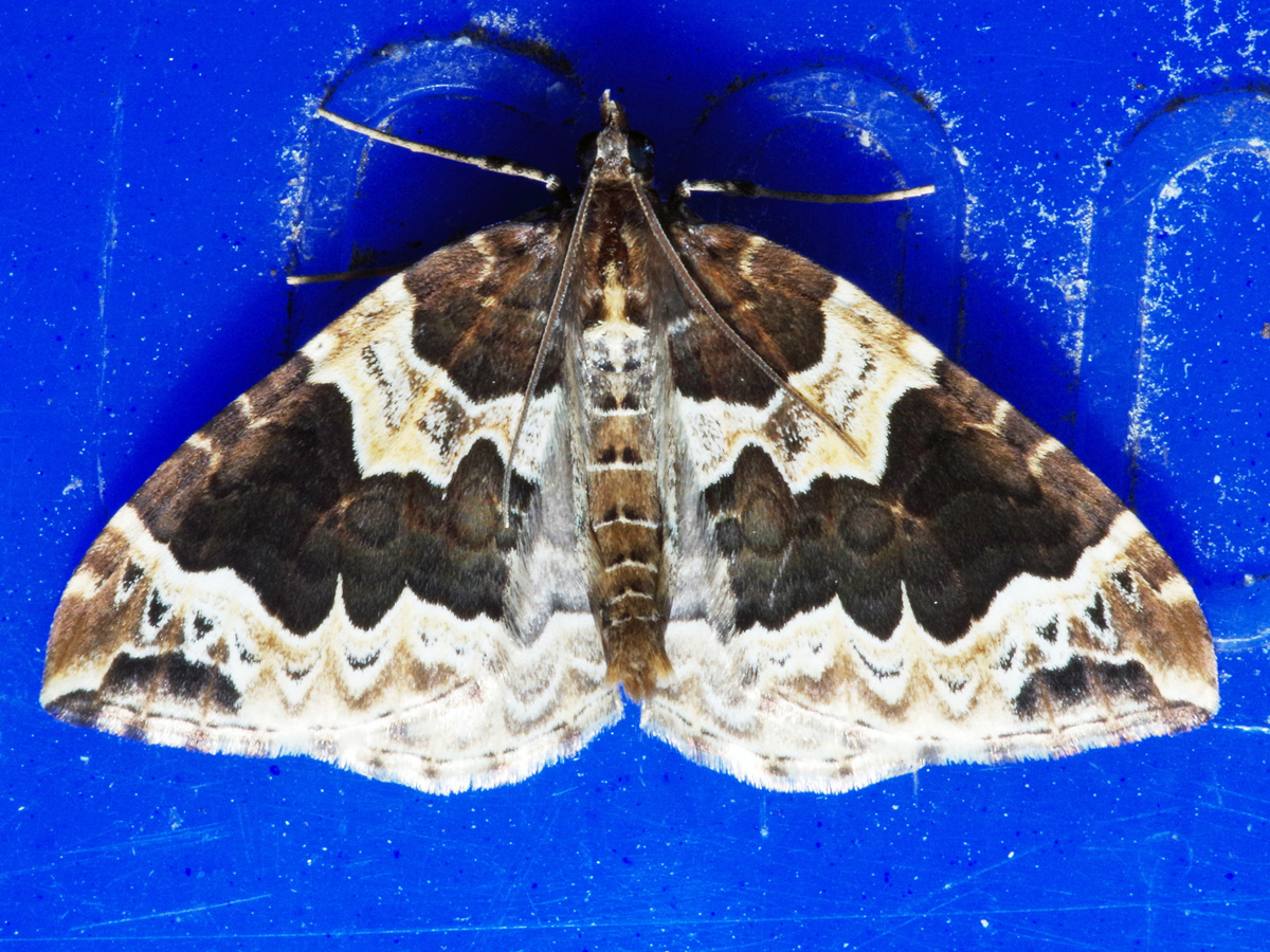 Eulithis prunata, fotografische Abbildung des Nachtfalters auf der Hausterrasse in 04157 Leipzig-Gohlis Kleiststrasse 33 am 20. Juni 2023