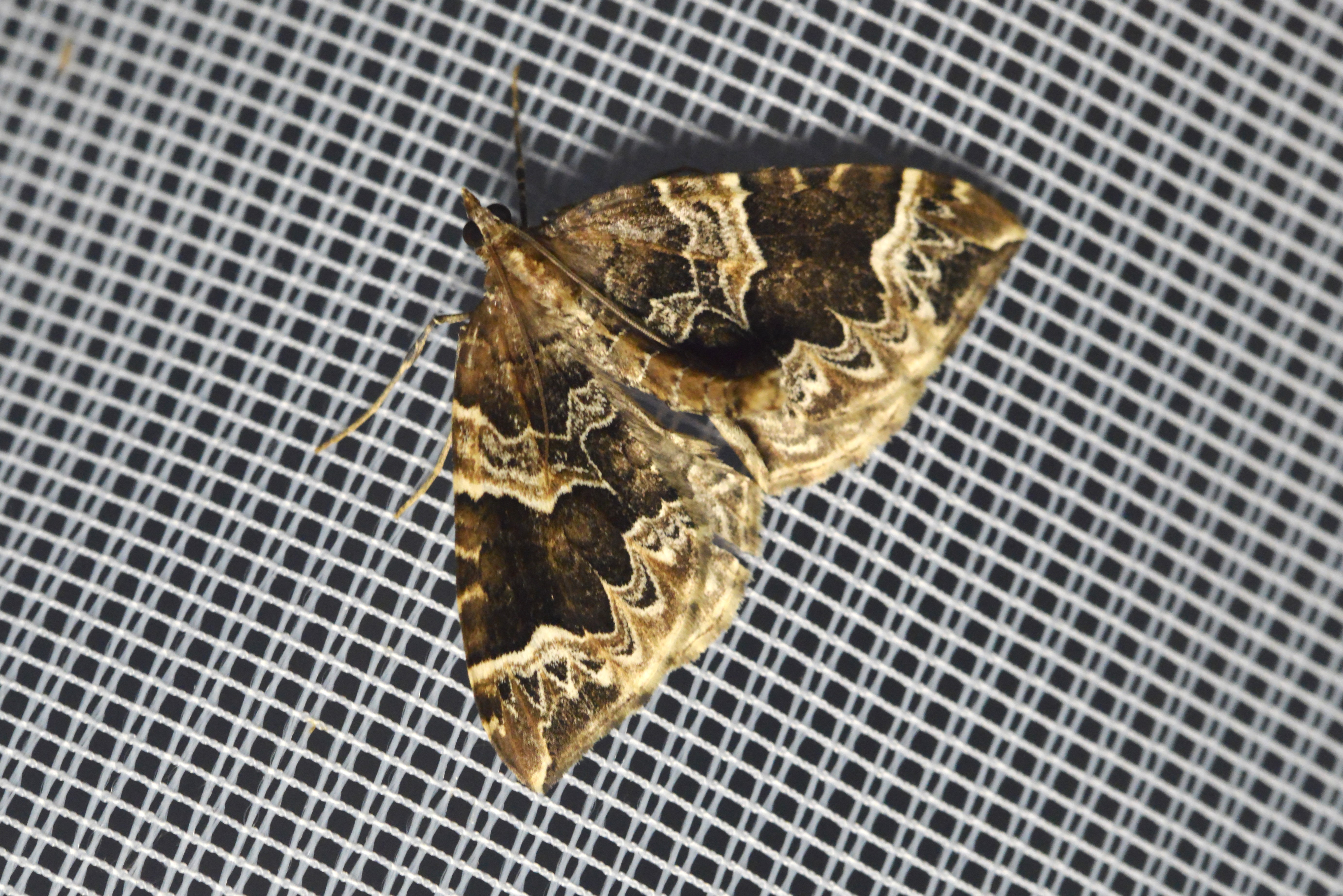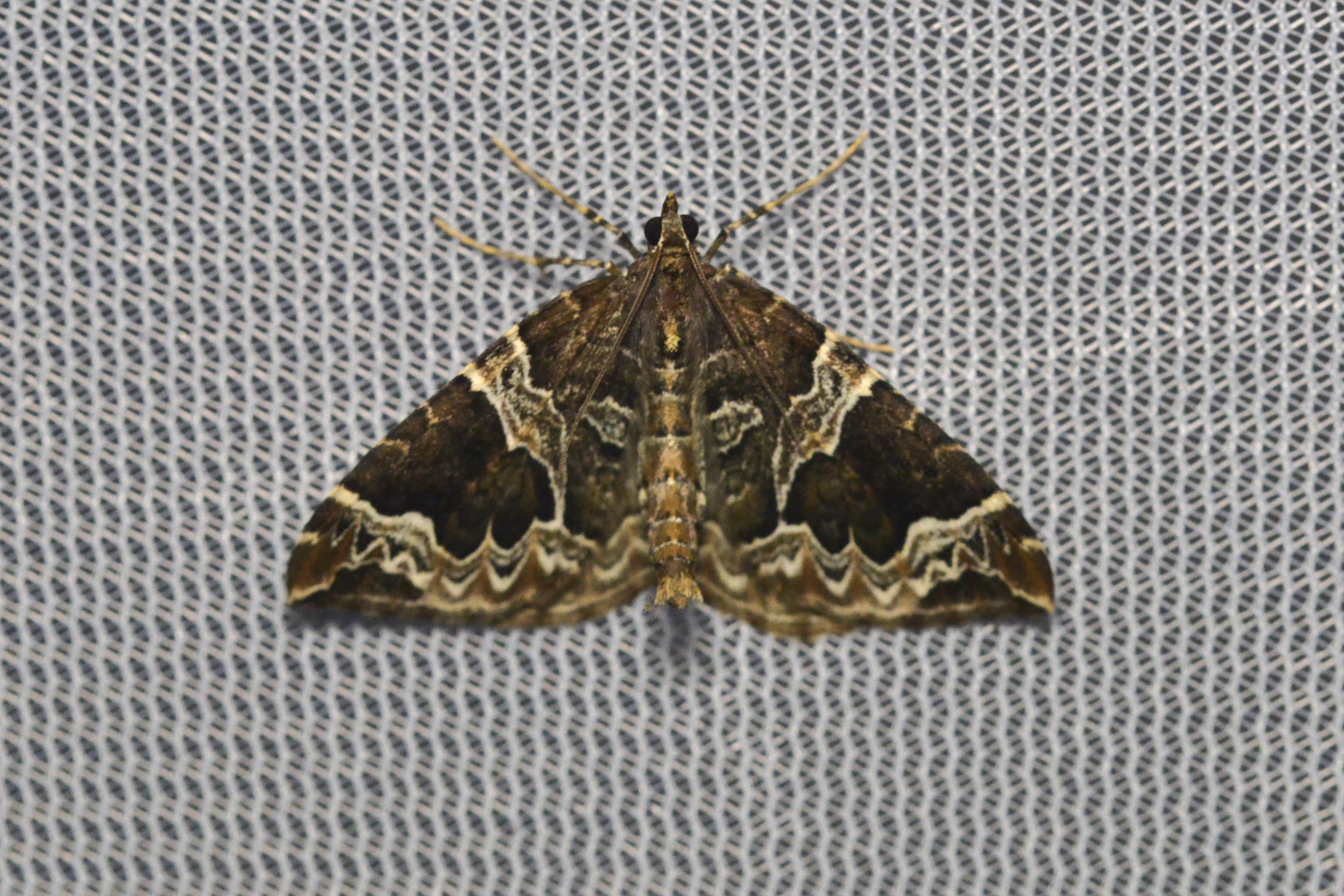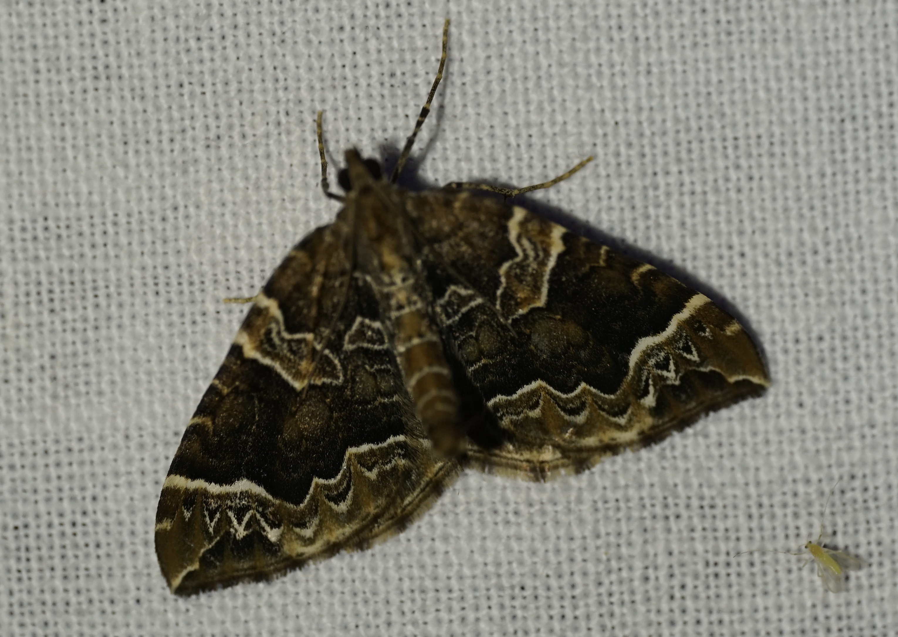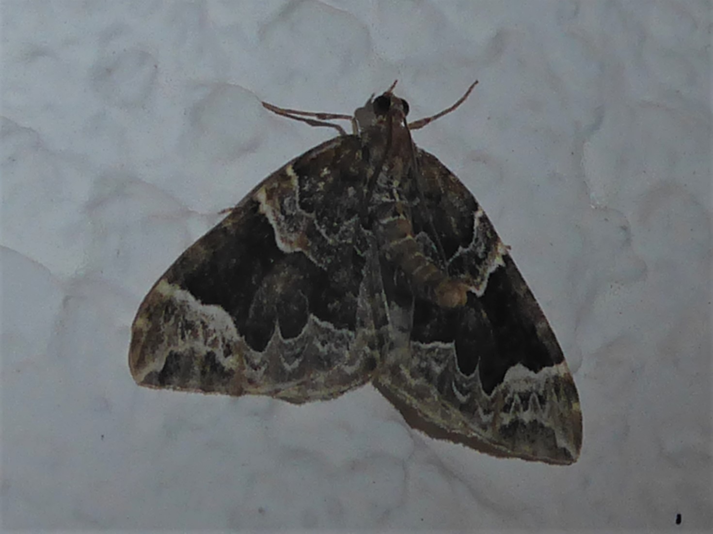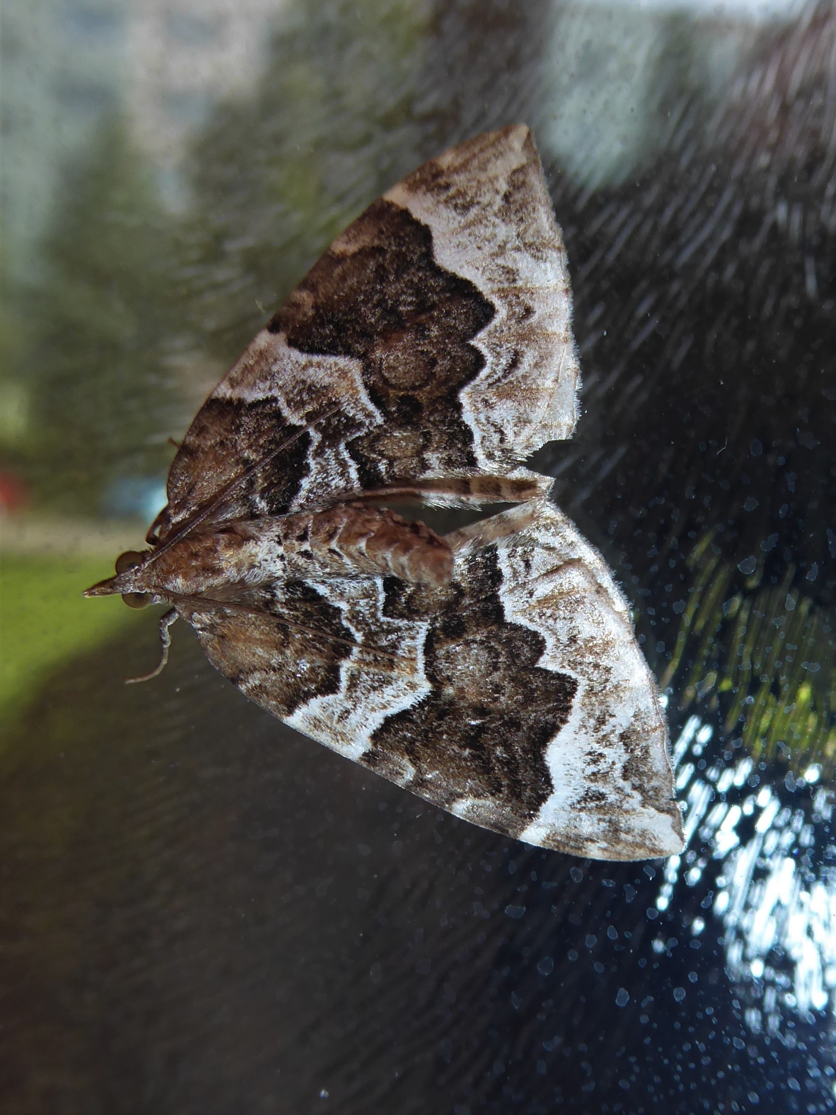Eulithis prunata, fotografische Abbildung des Nachtfalters auf der Hausterrasse in 04157 Leipzig-Gohlis Kleiststrasse 33 am 20. Juni 2023