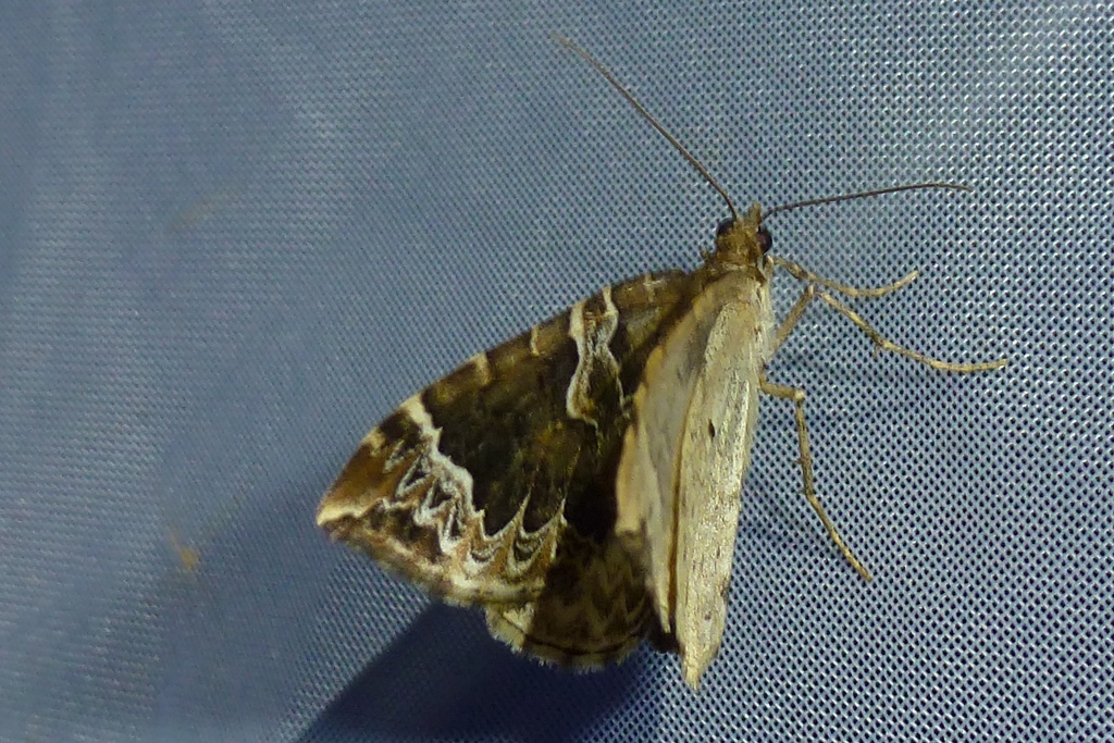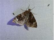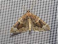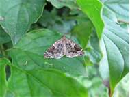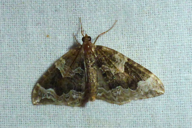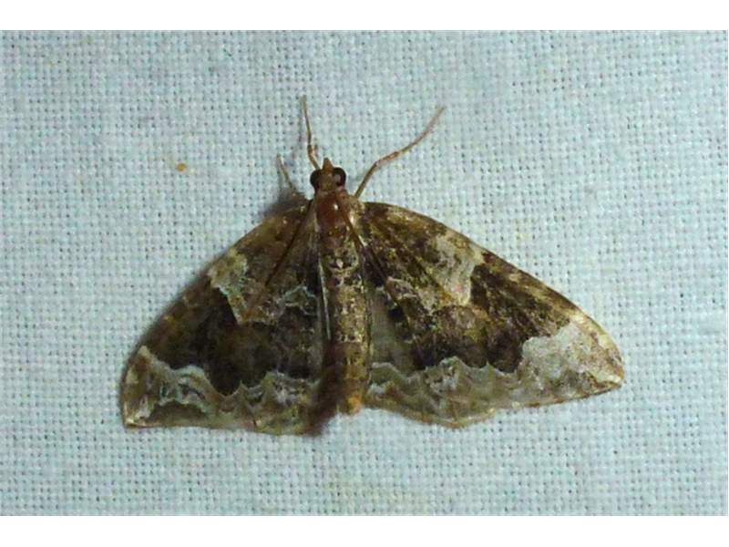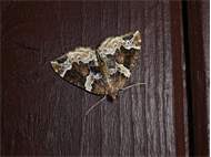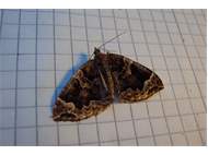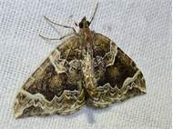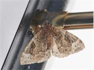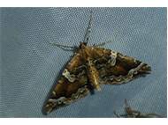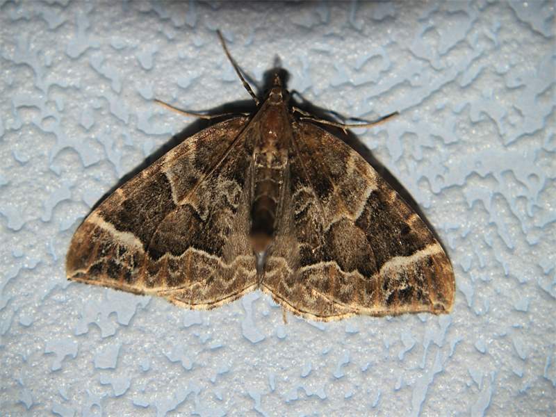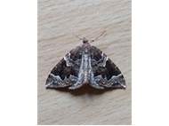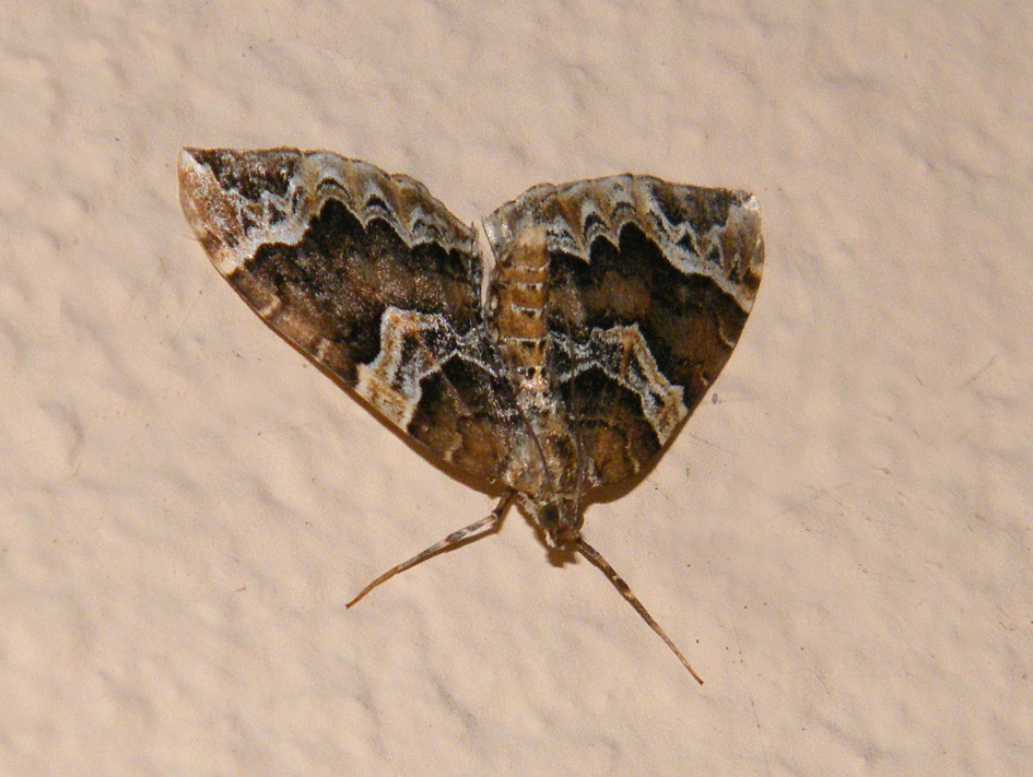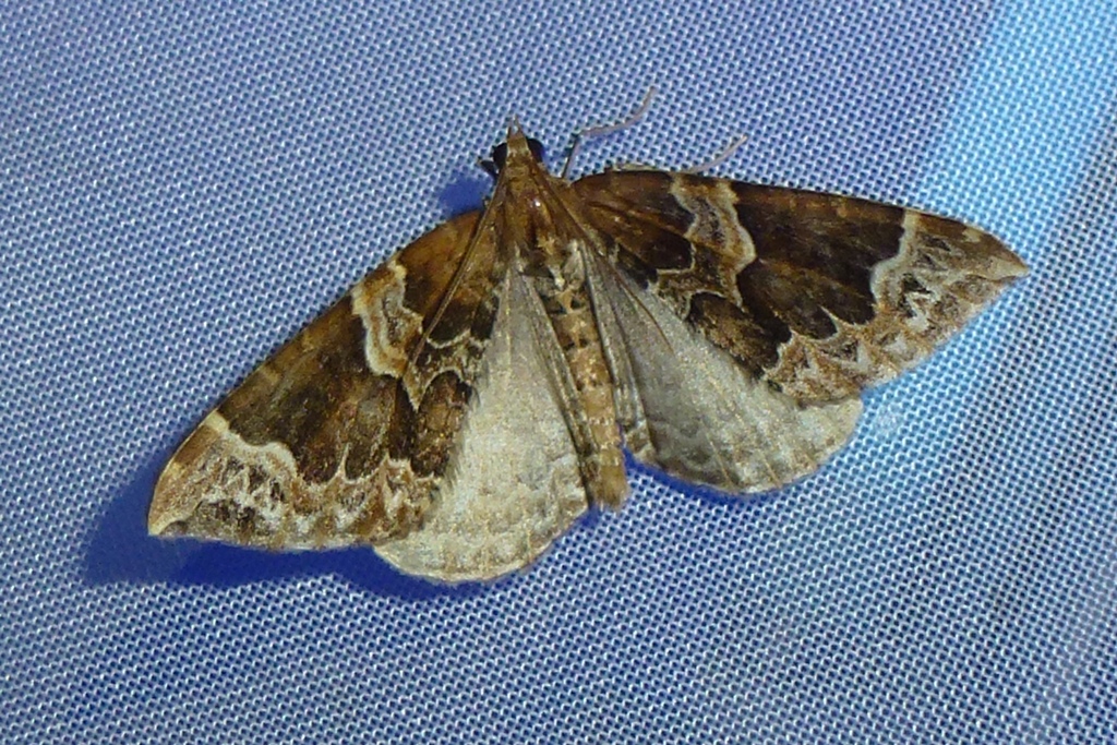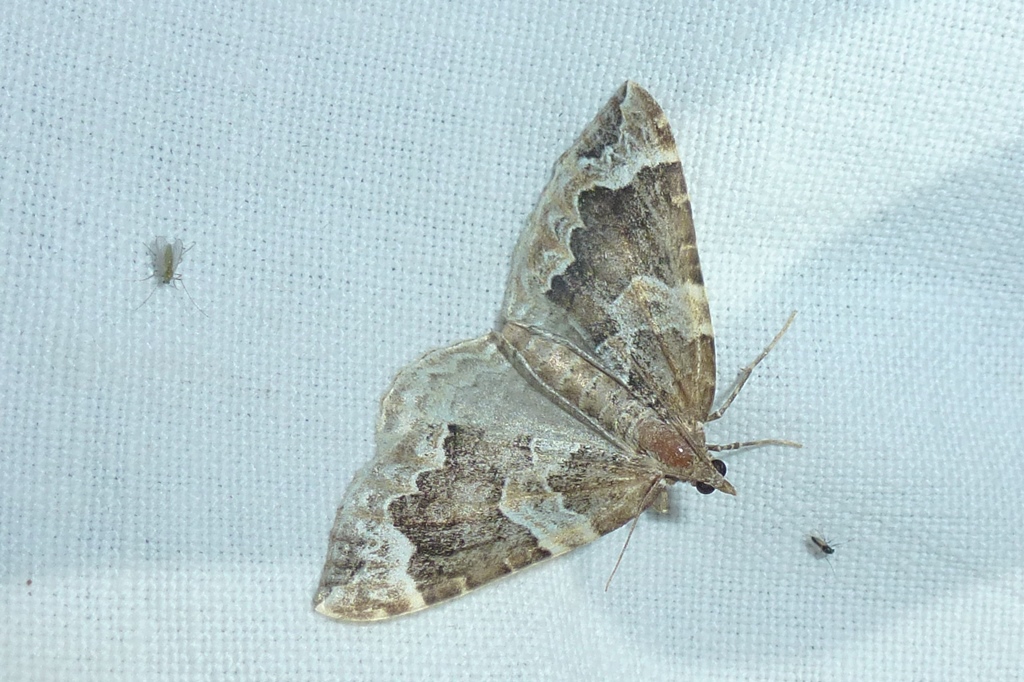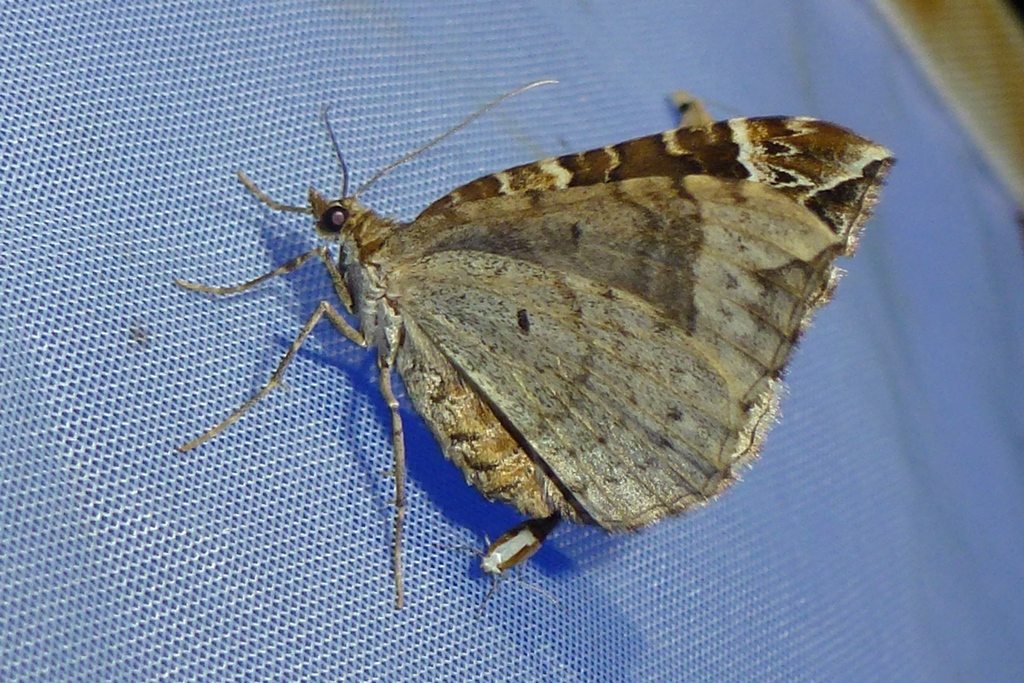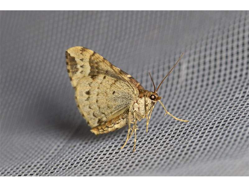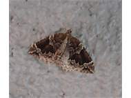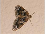 Eulithis prunata (Dunkelbrauner Haarbüschelspanner) am Licht in Leppersdorf, Juli 2016.