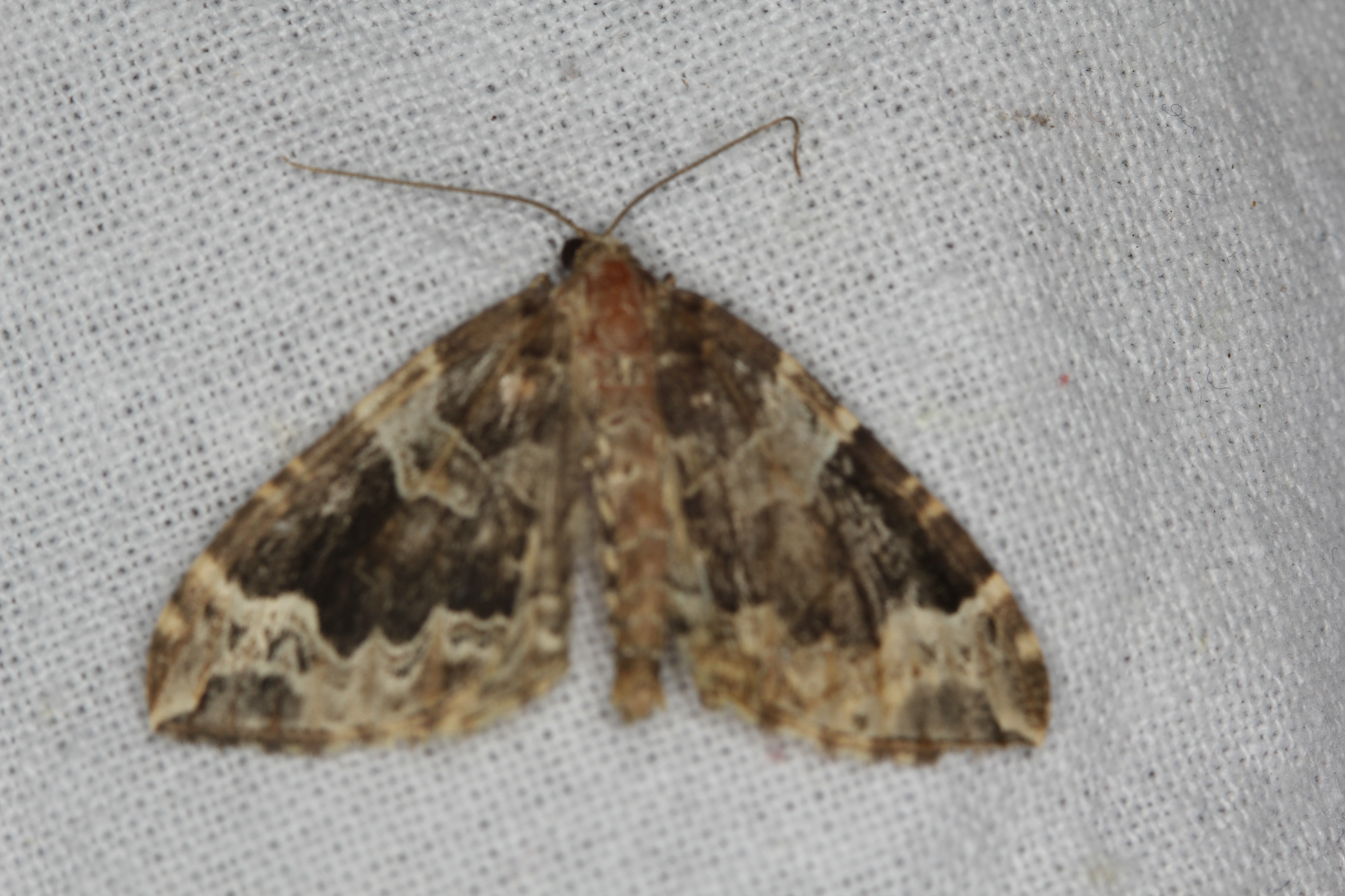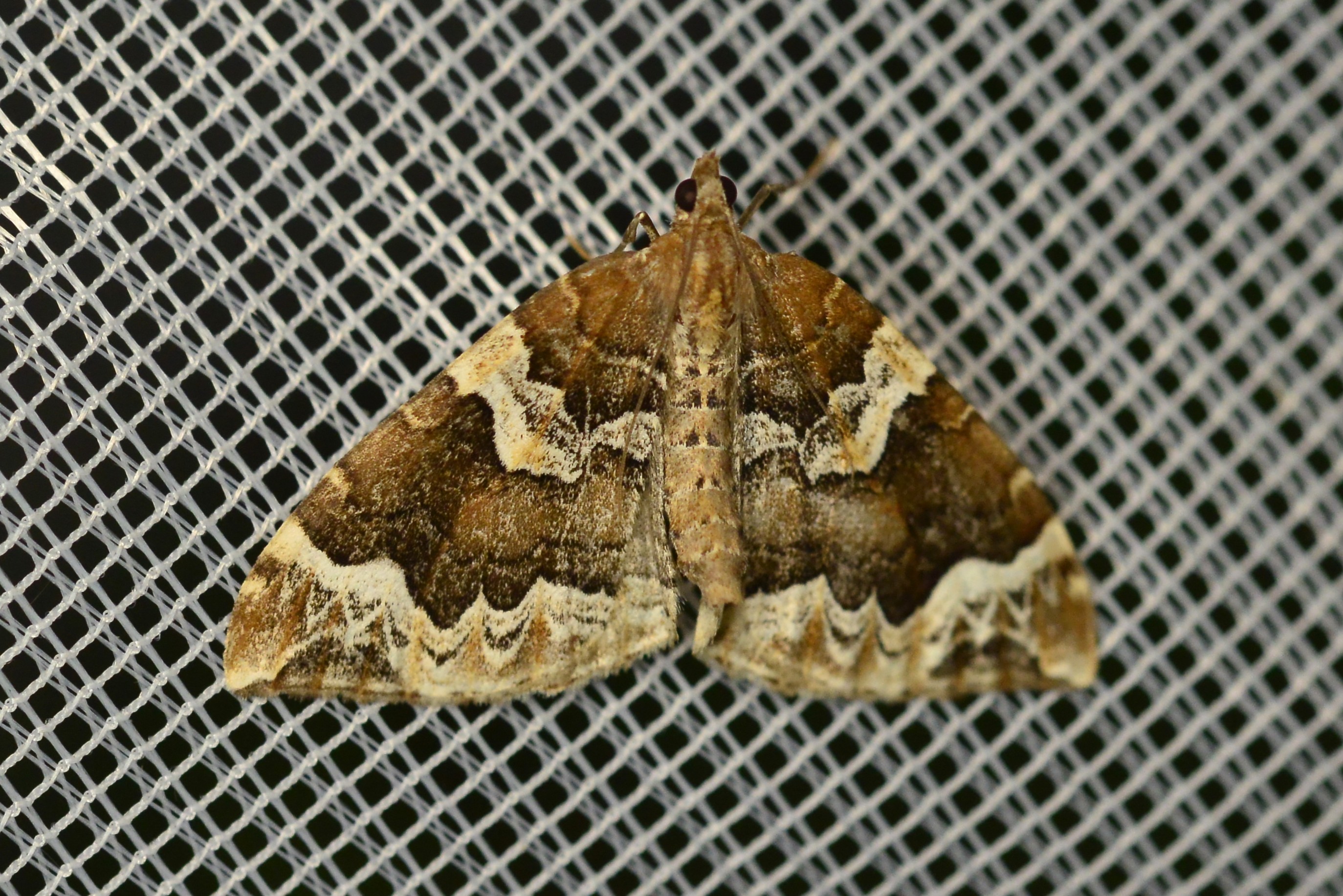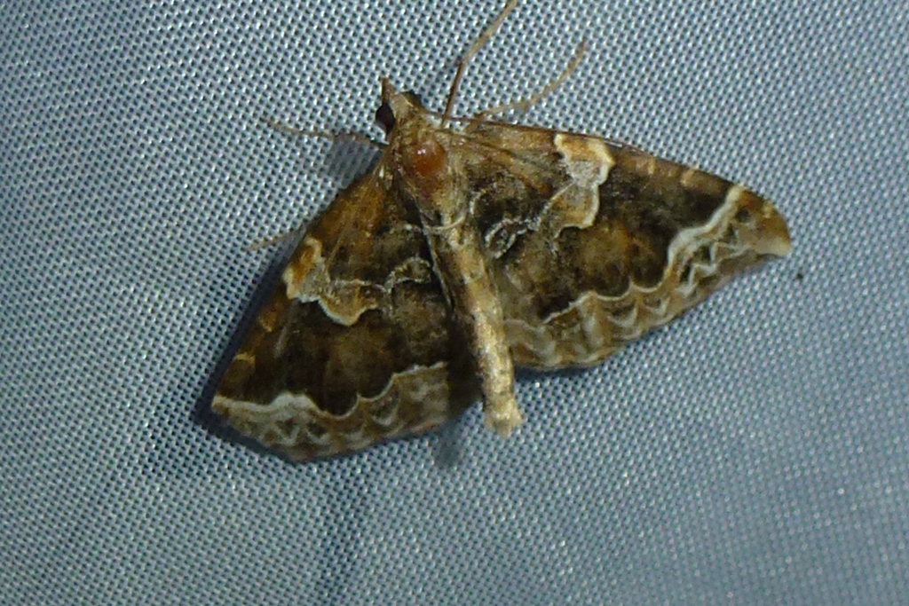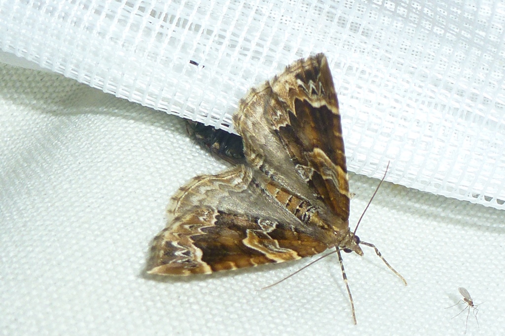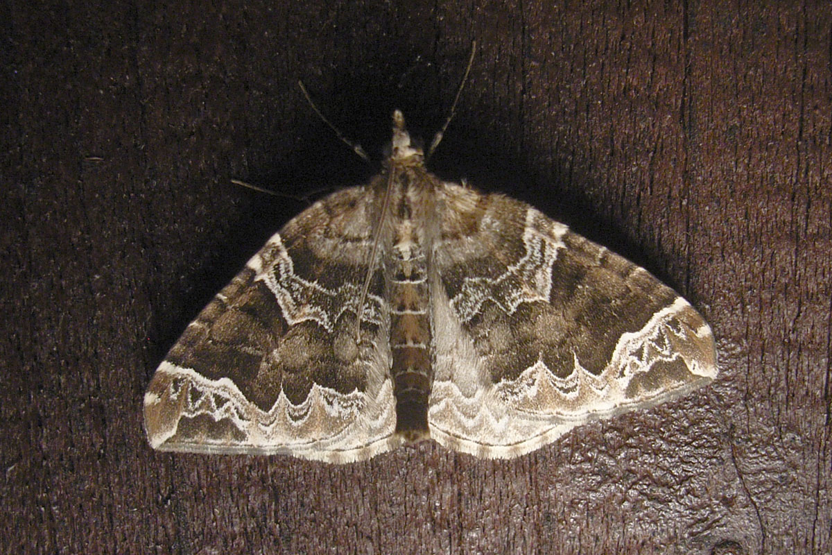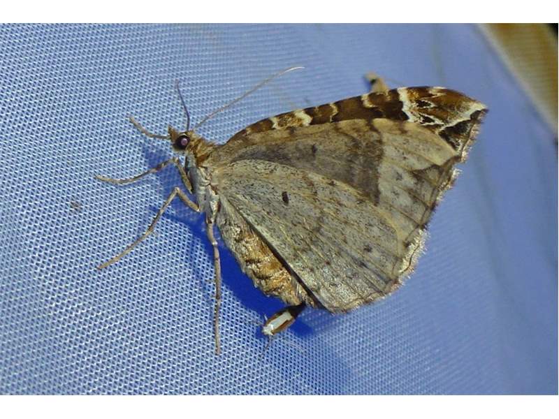Eulithis prunata (Dunkelbrauner Haarbüschelspanner) am Licht in Leppersdorf, Juli 2016.