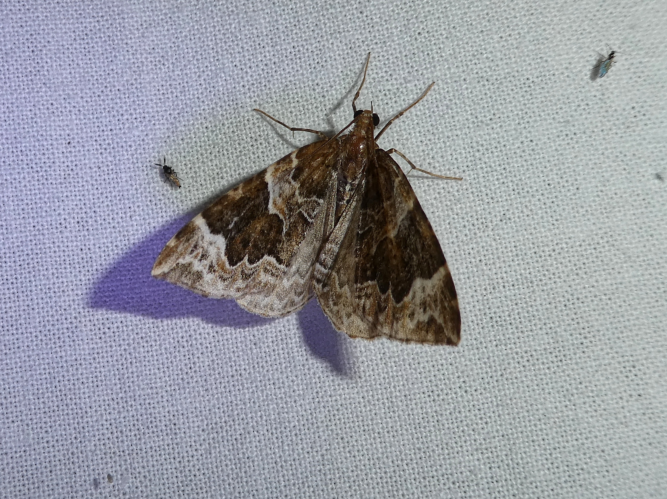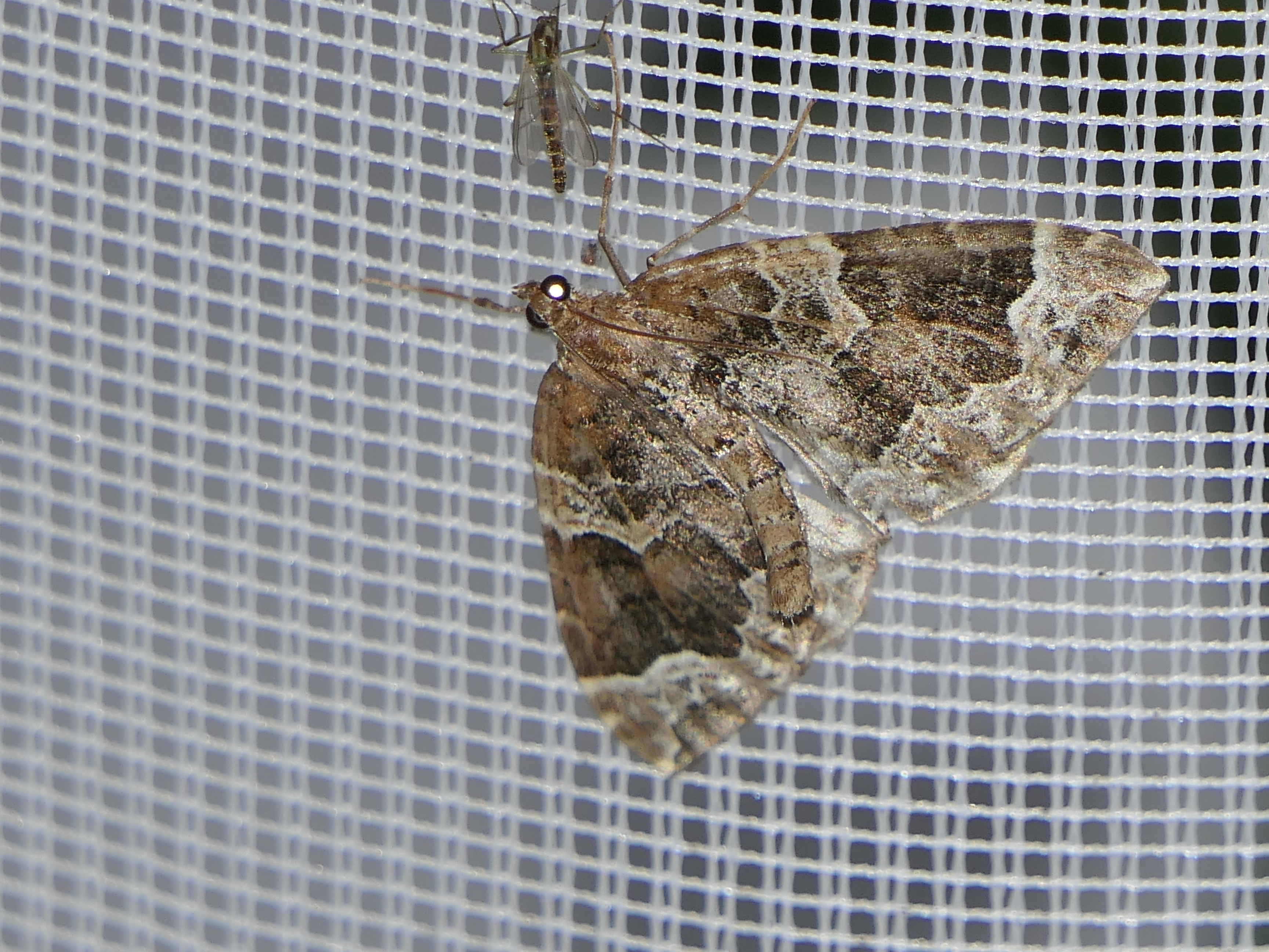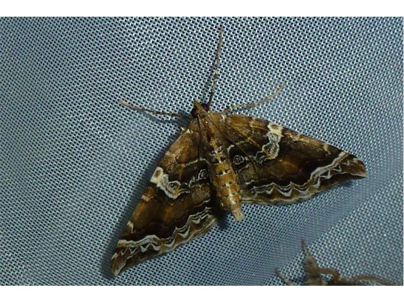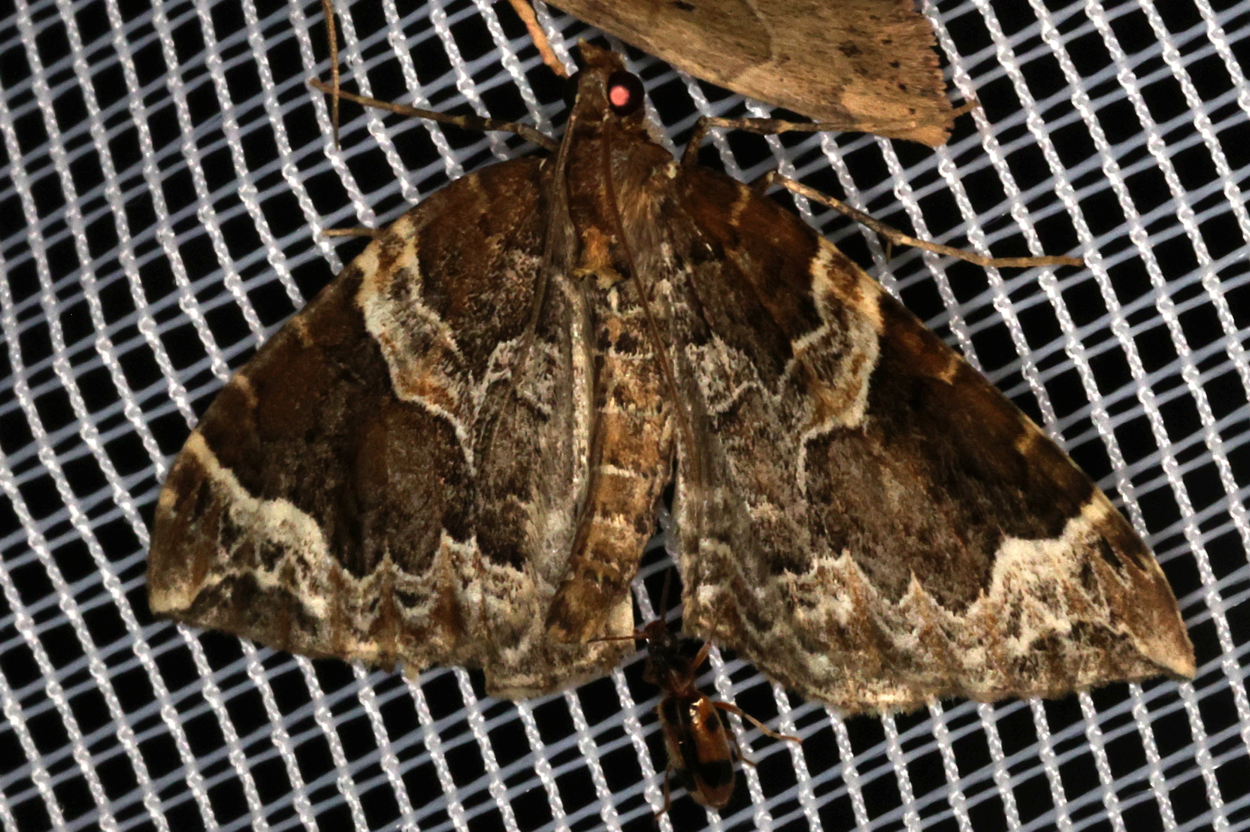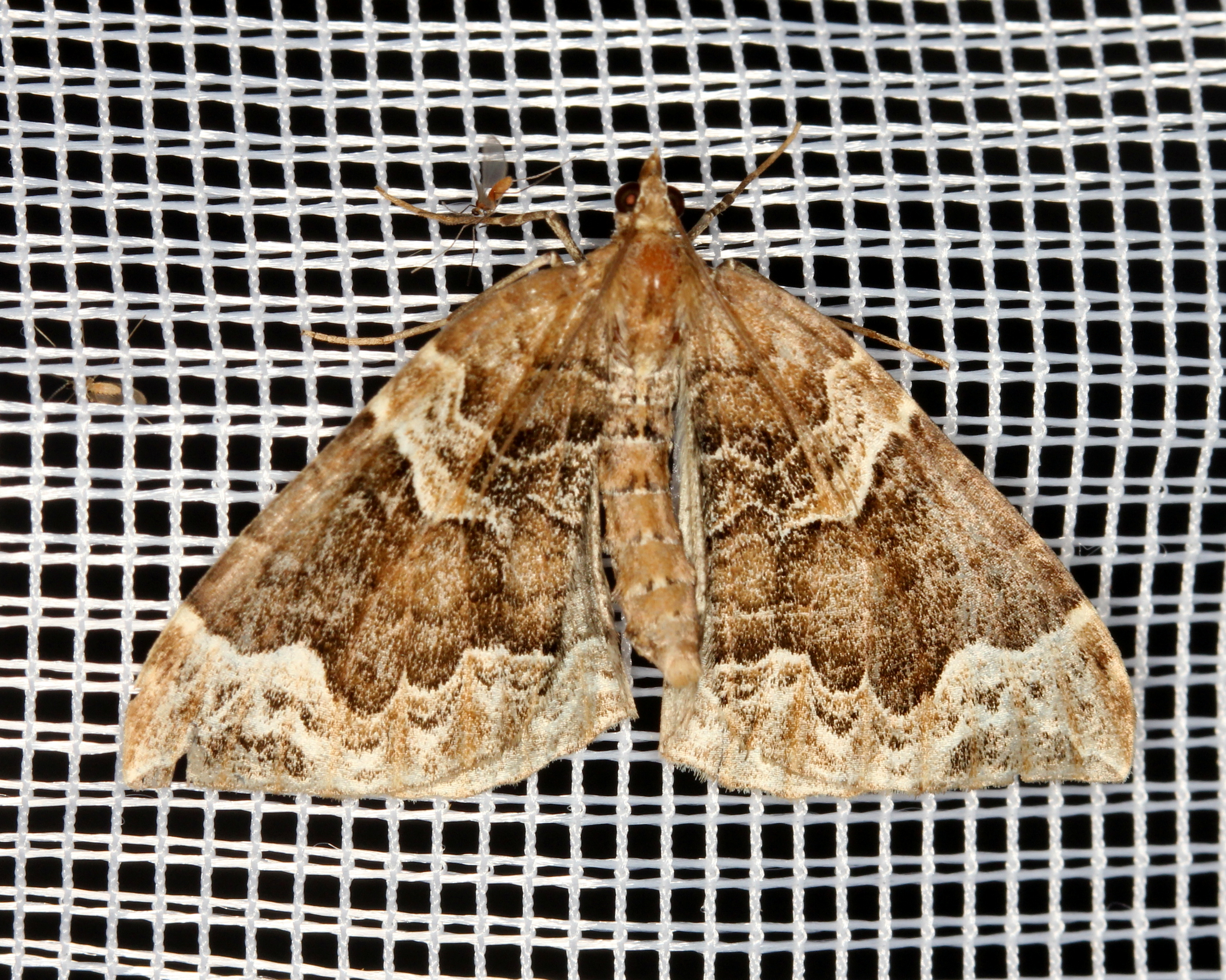 Eulithis prunata (Dunkelbrauner Haarbüschelspanner) am Licht in Leppersdorf, Juli 2016.