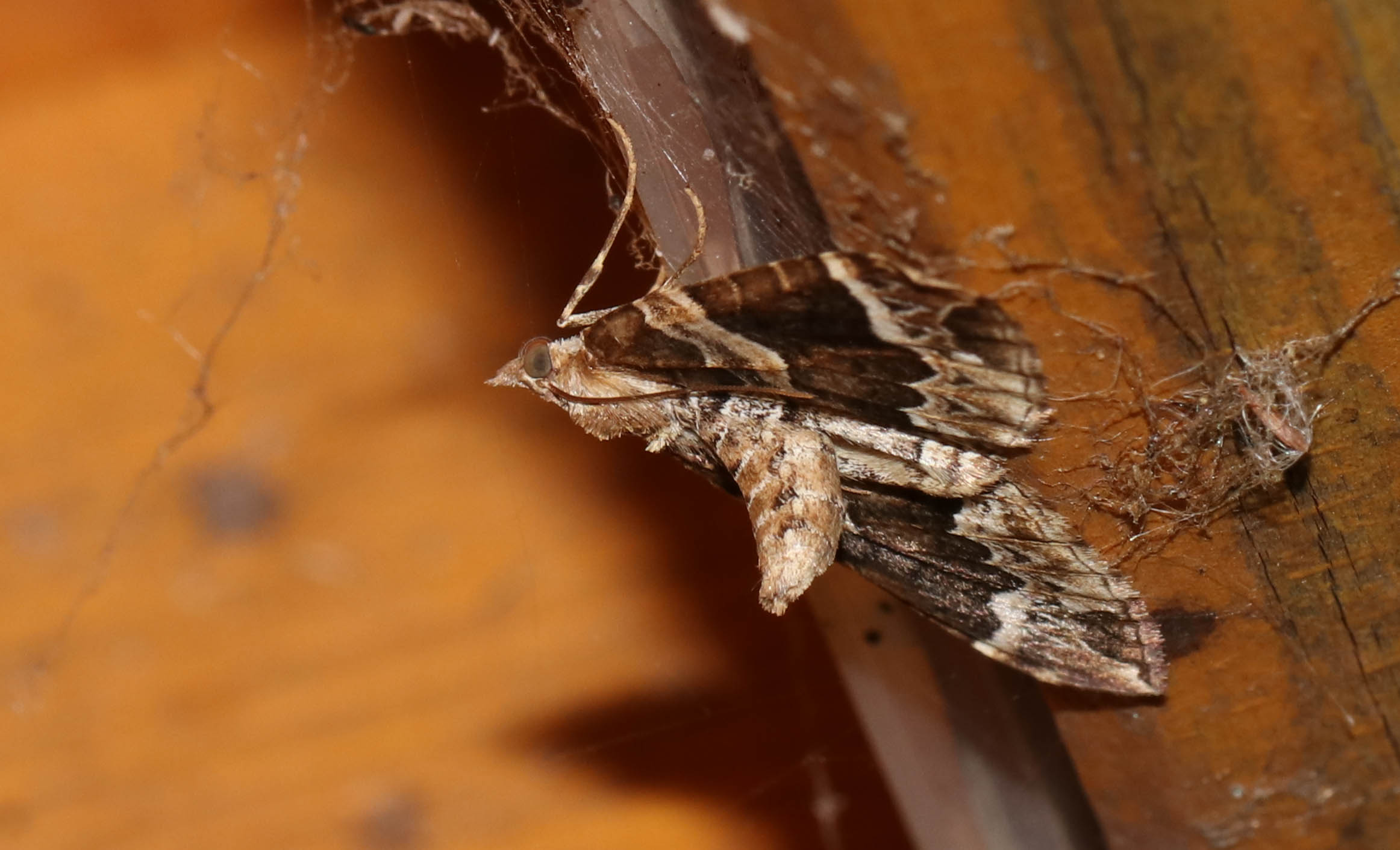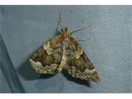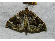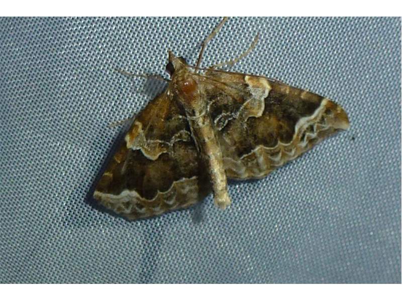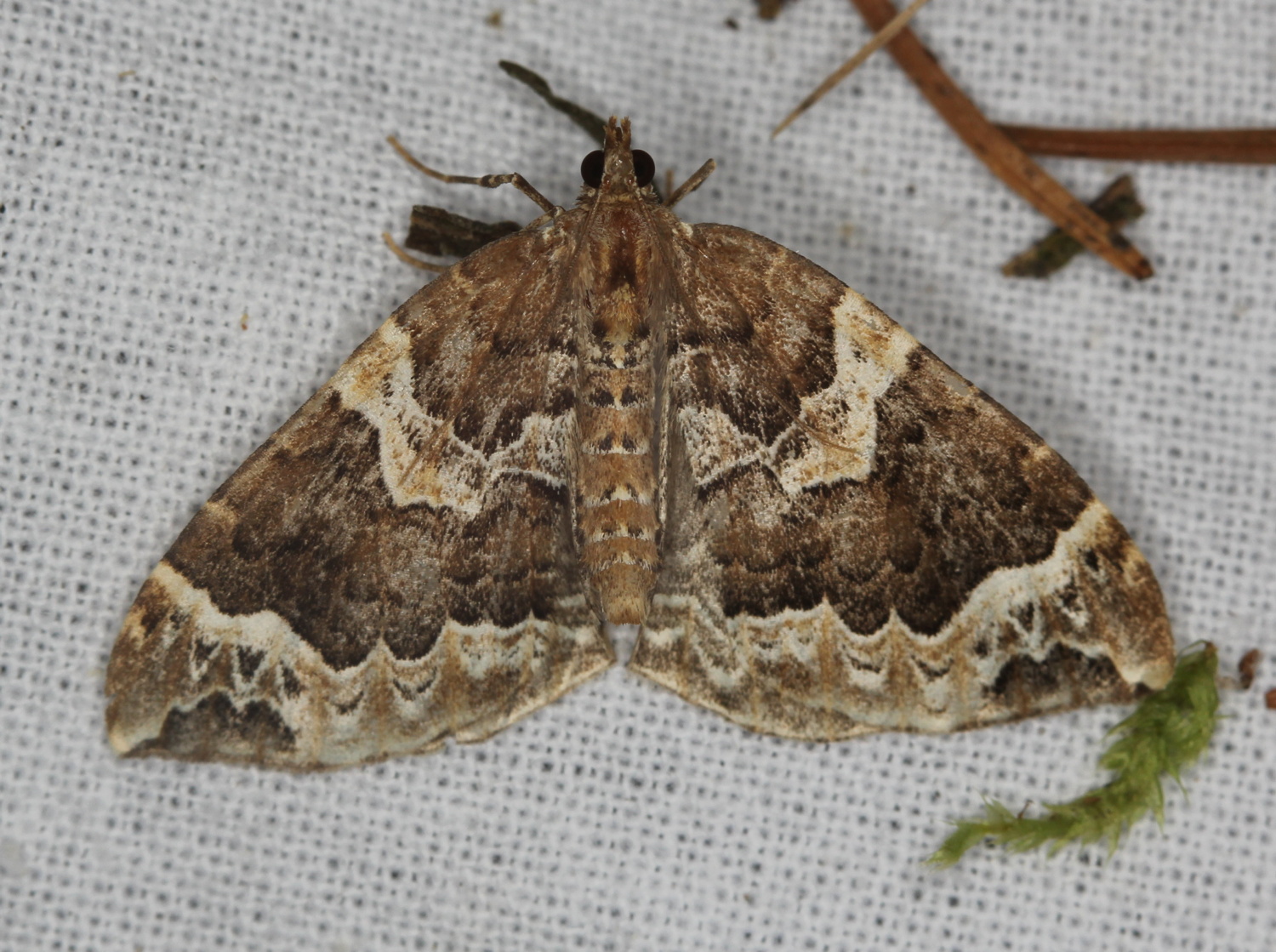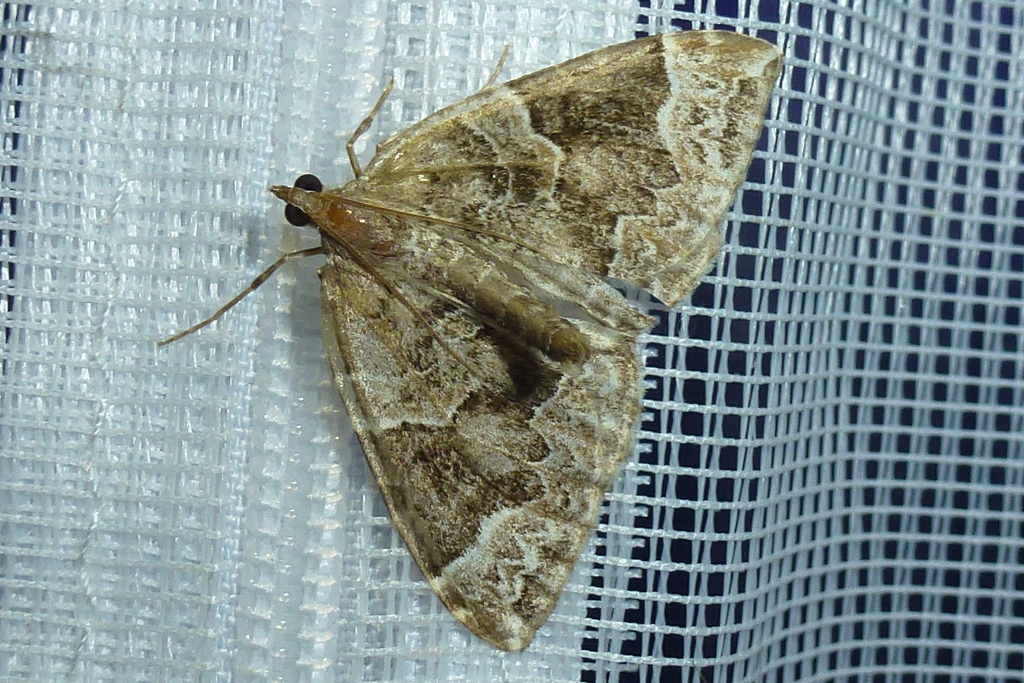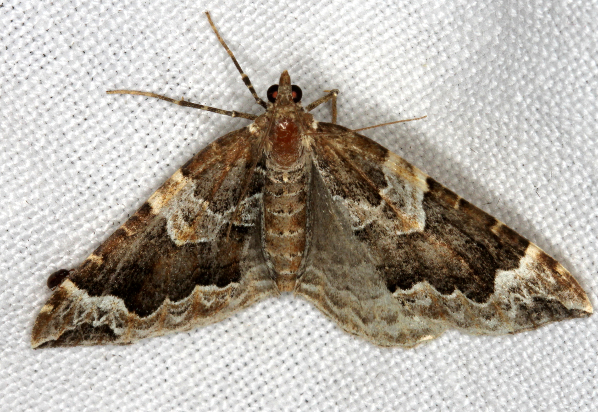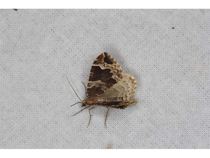 Eulithis prunata (Dunkelbrauner Haarbüschelspanner) am Licht in Leppersdorf, Juli 2016.