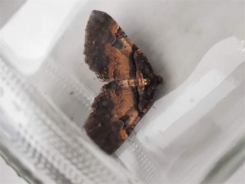 Violettbrauner Rosen-Blattspanner, Hausgarten in Niederwürschnitz, 10.06.2023