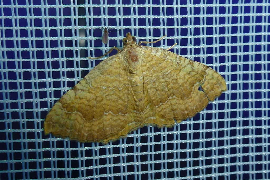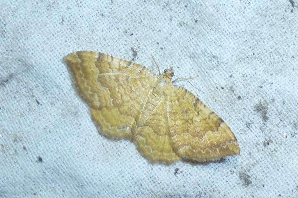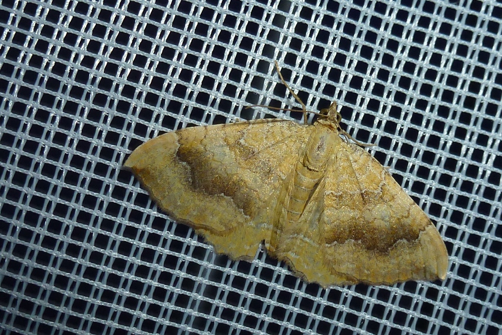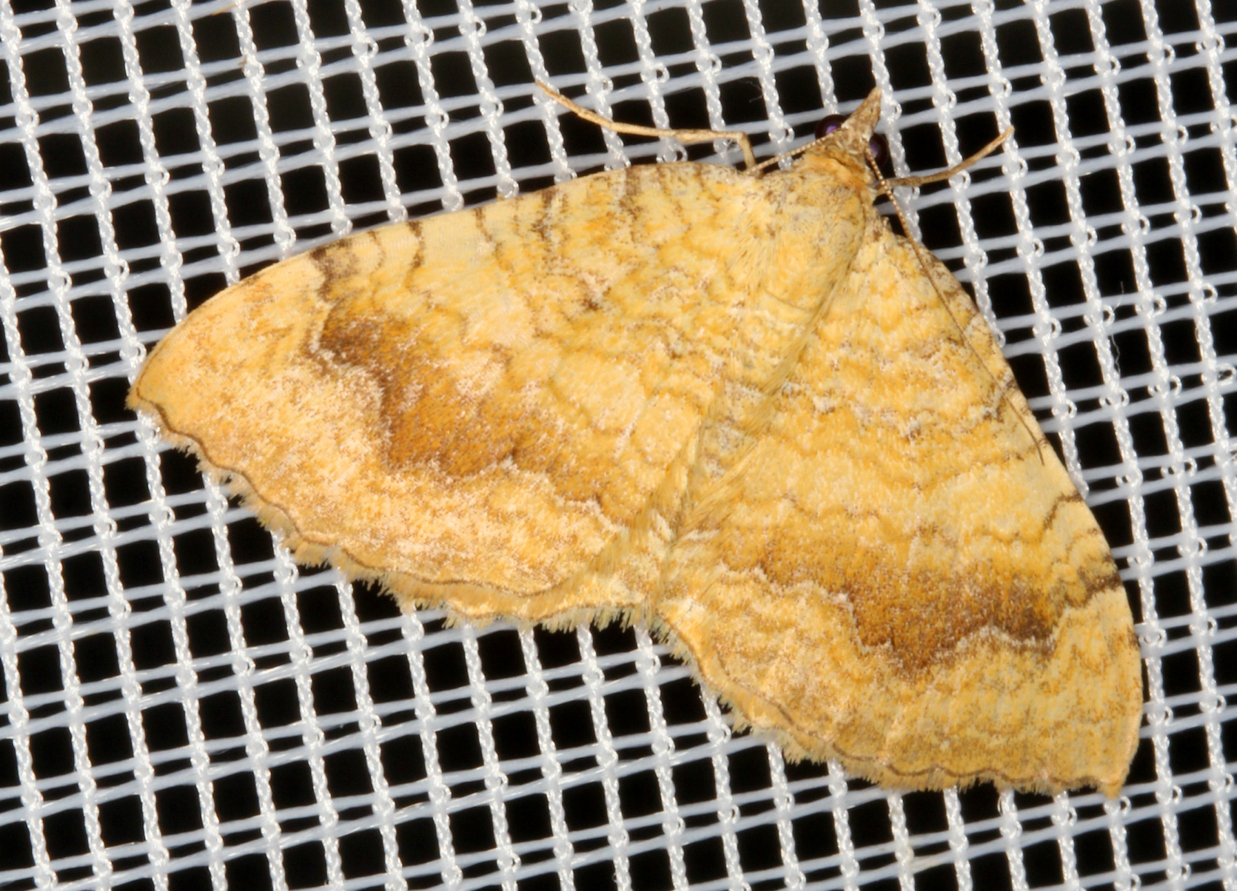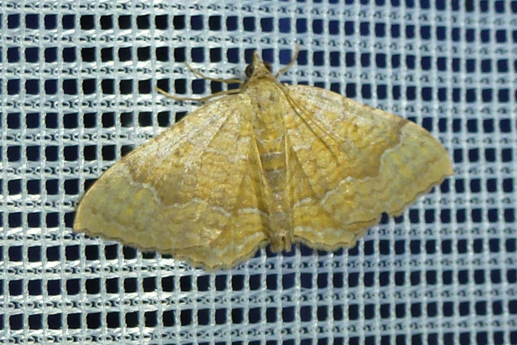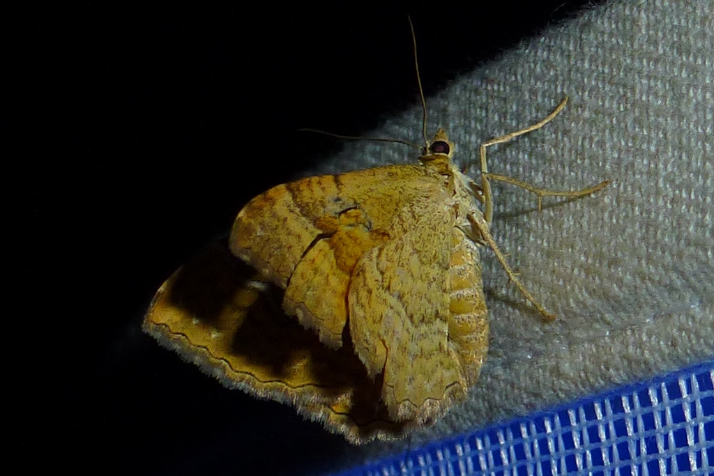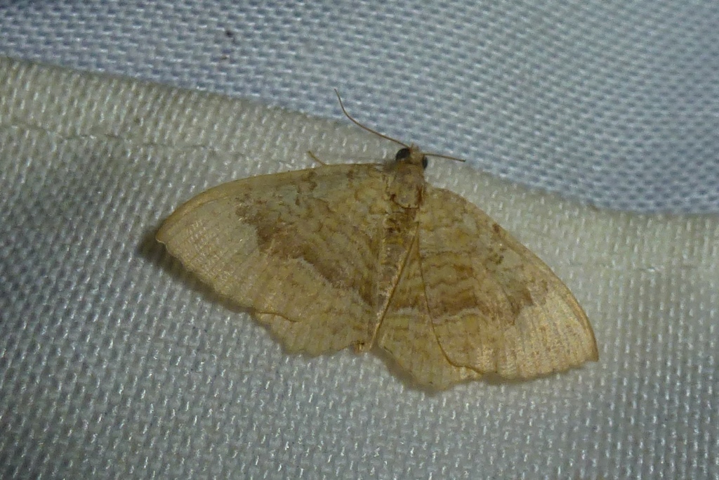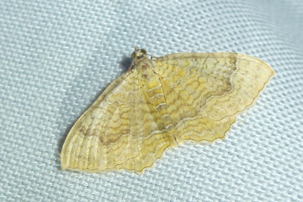 Ockergelbe Blattspanner, oder Löwenzahnspanner oder Brennnesselspanner (Camptogramma bilineata (Linnaeus, 1758)), am Licht, Radeberg, August 2013.