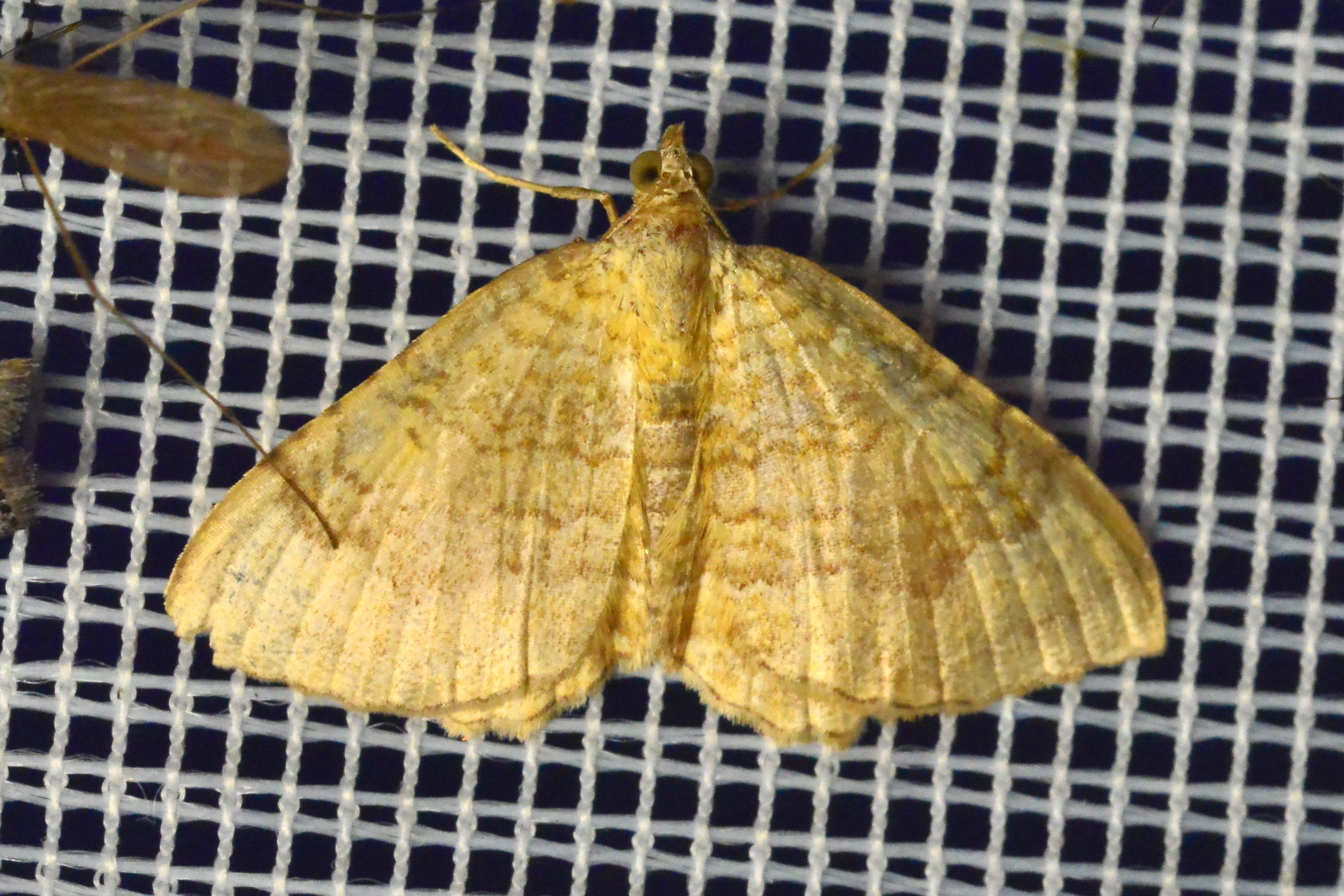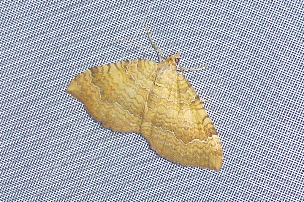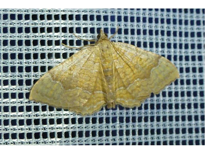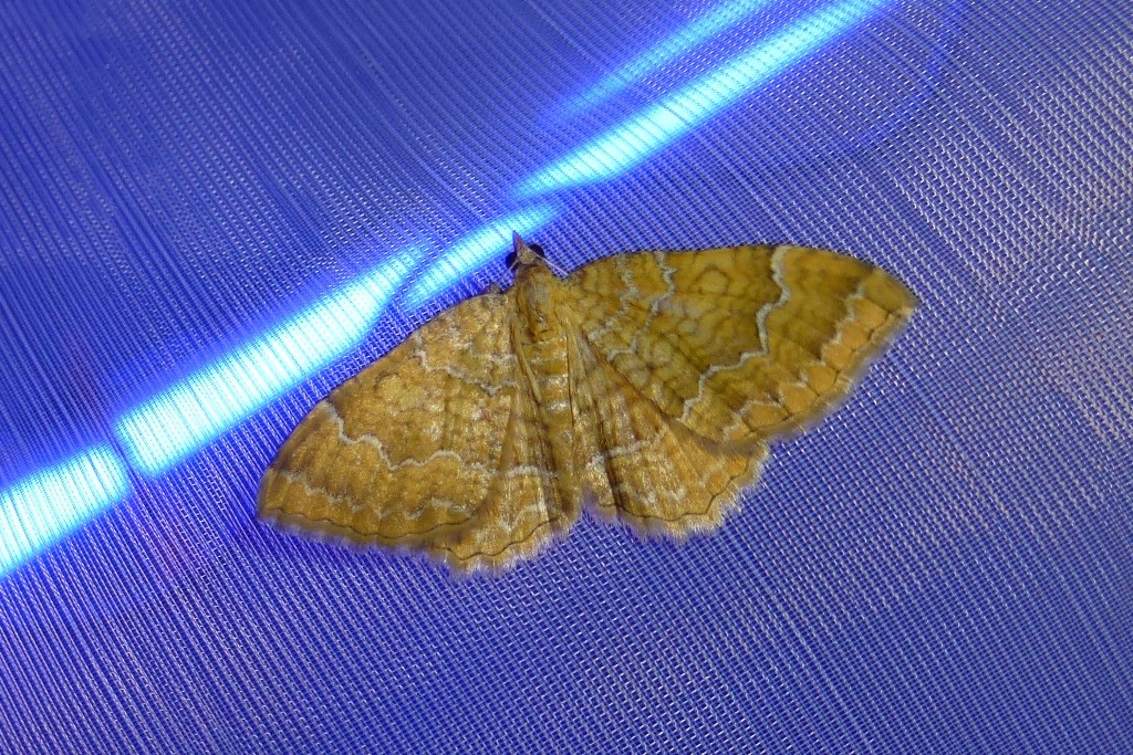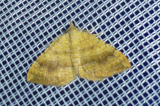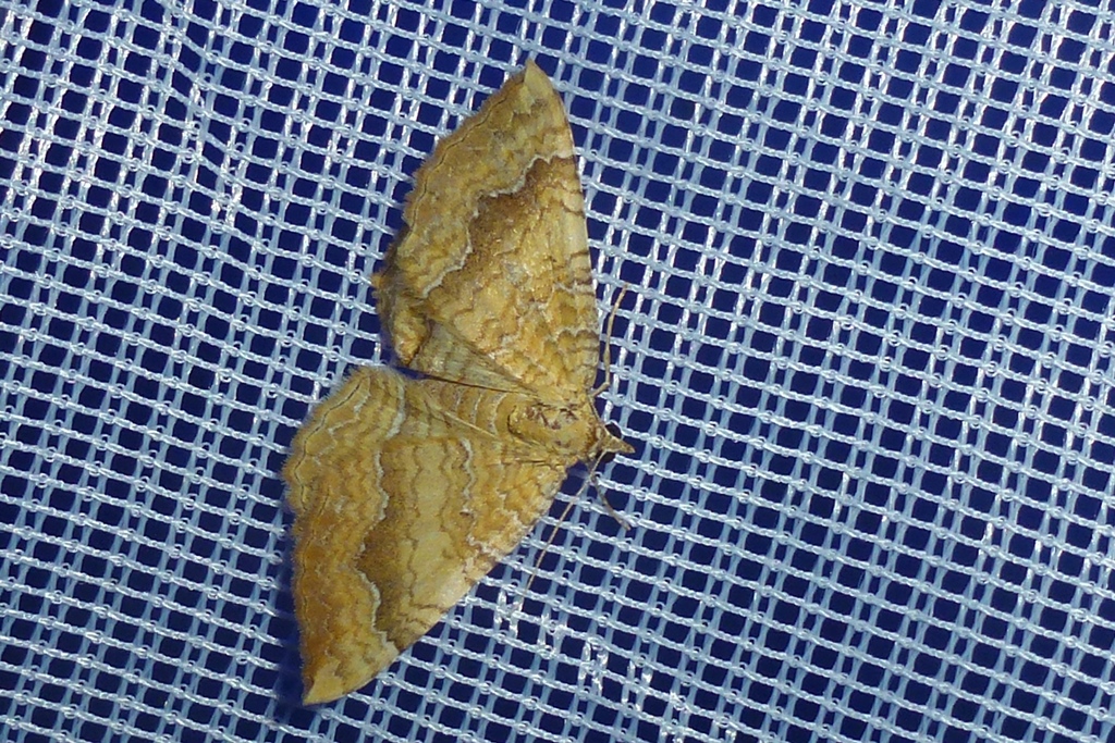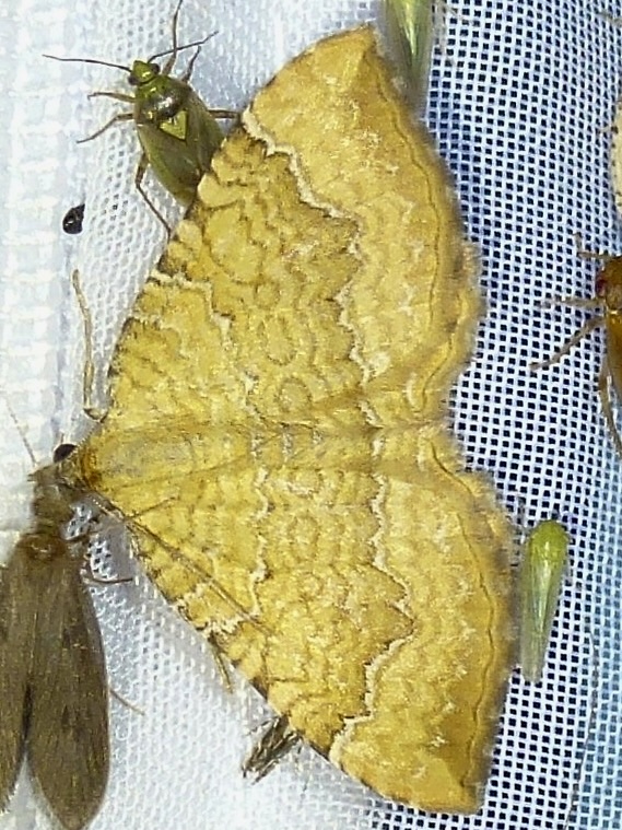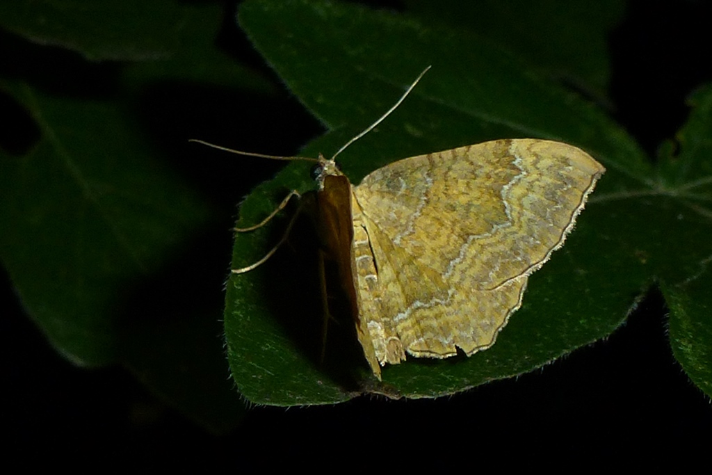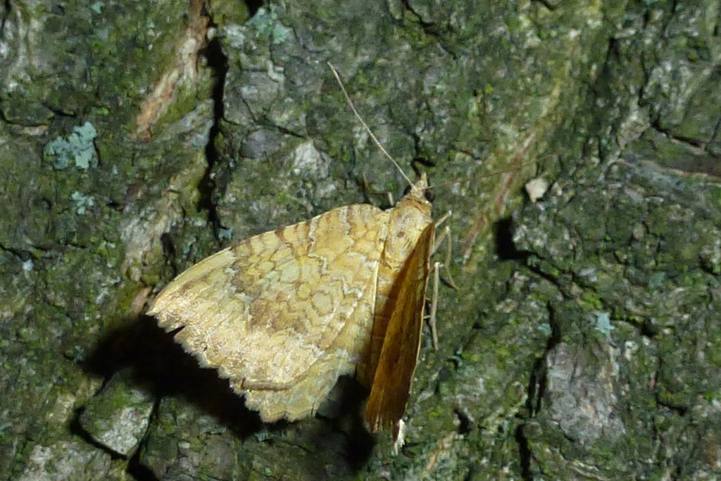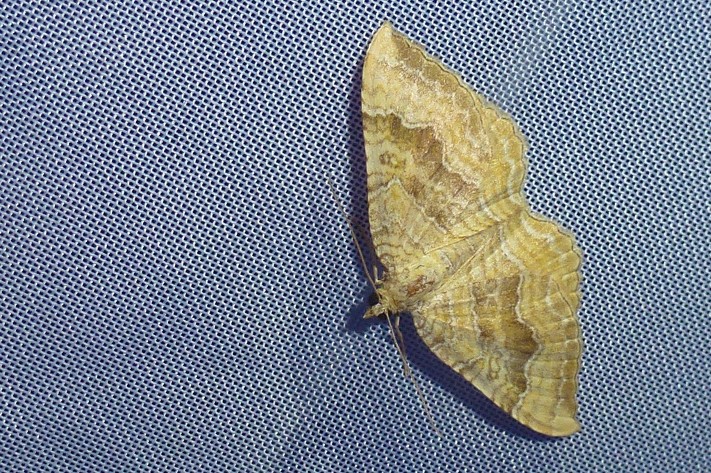 Ockergelbe Blattspanner, oder Löwenzahnspanner oder Brennnesselspanner (Camptogramma bilineata (Linnaeus, 1758)), am Licht, Radeberg, August 2013.