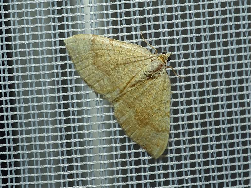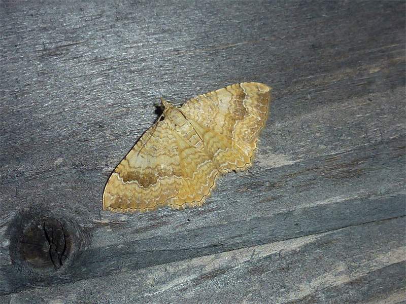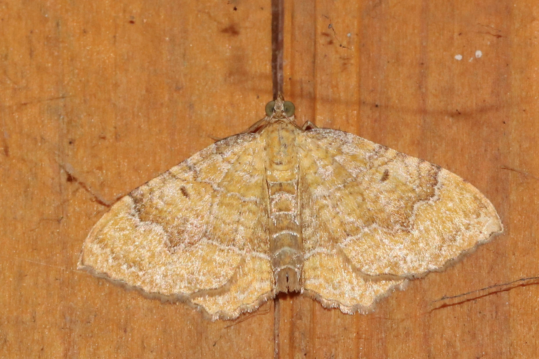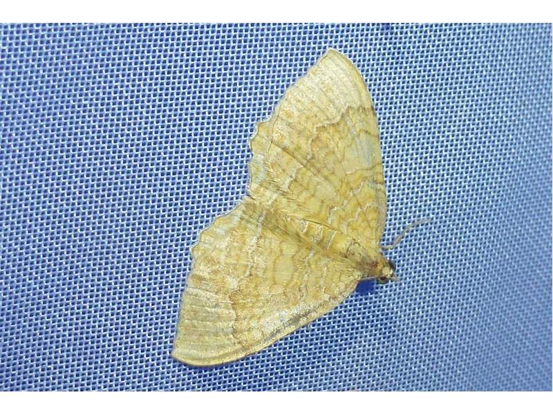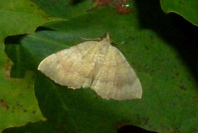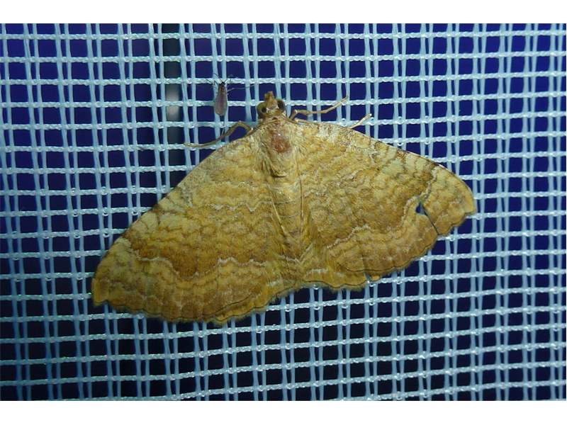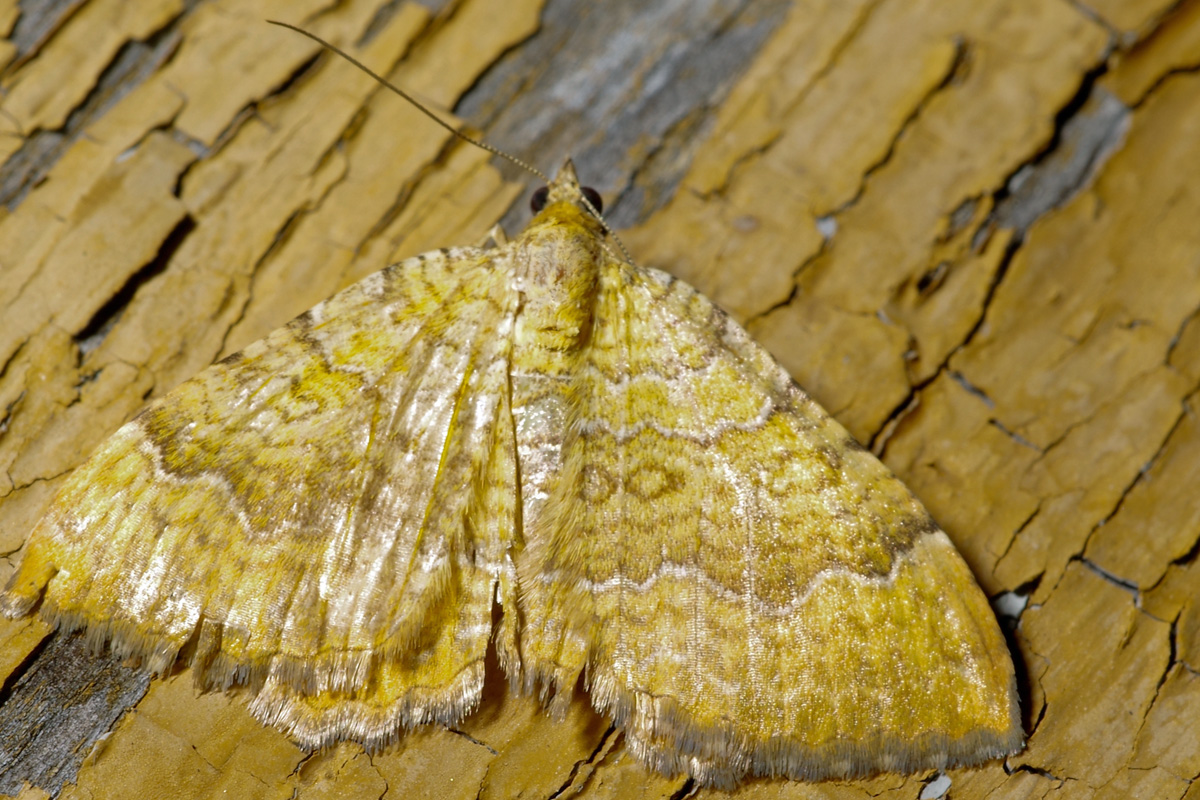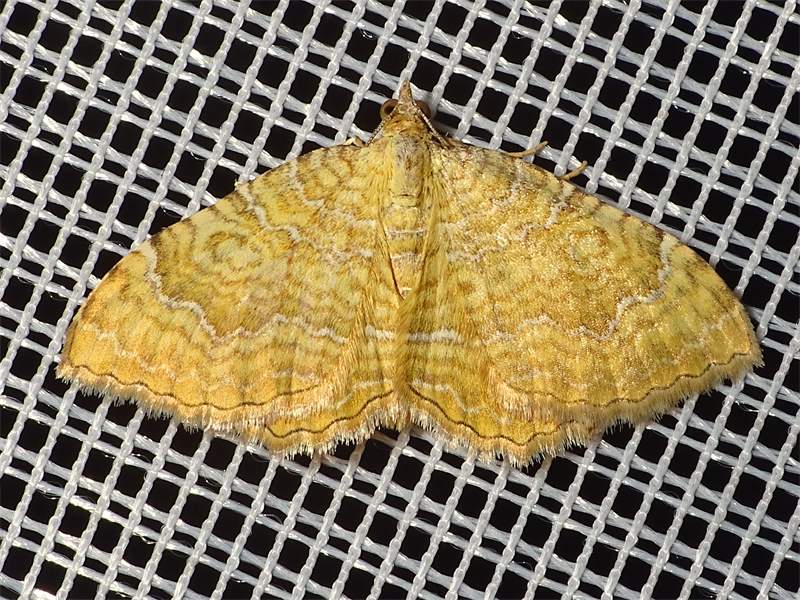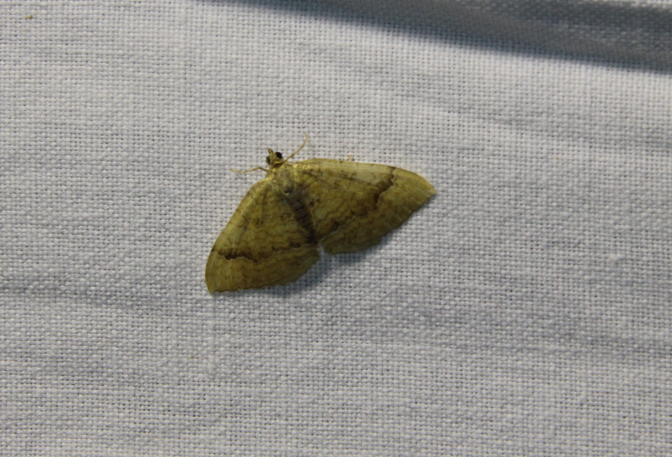 Ockergelbe Blattspanner, oder Löwenzahnspanner oder Brennnesselspanner (Camptogramma bilineata (Linnaeus, 1758)), am Licht, Radeberg, August 2013.