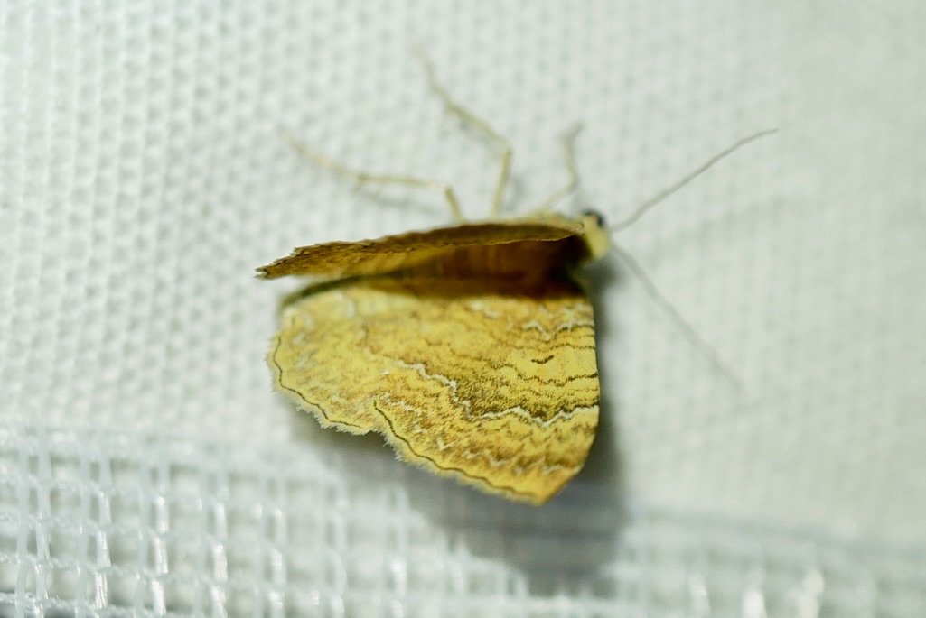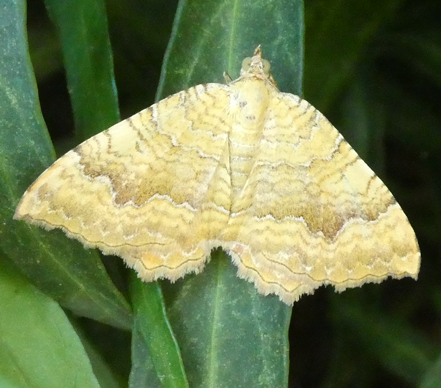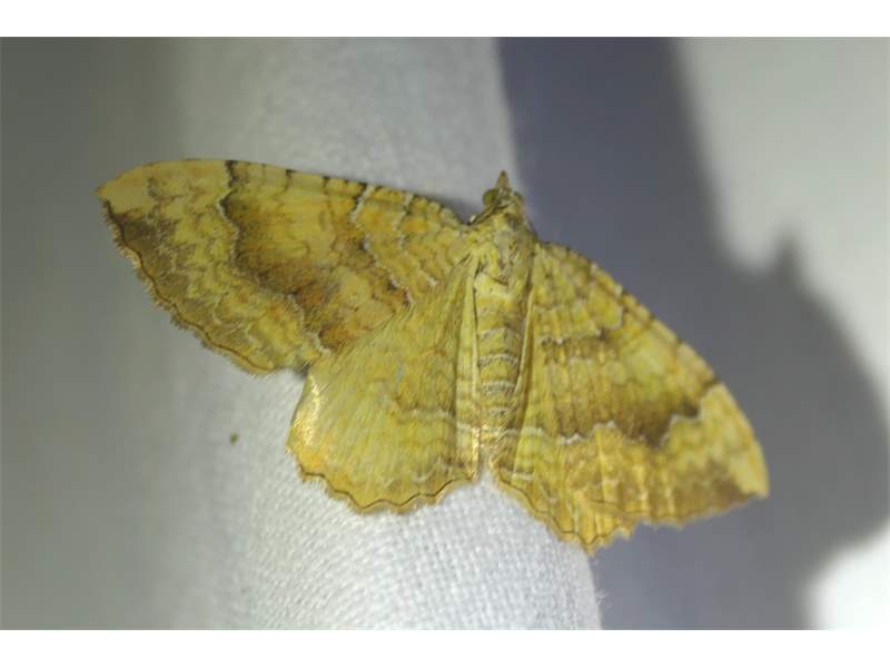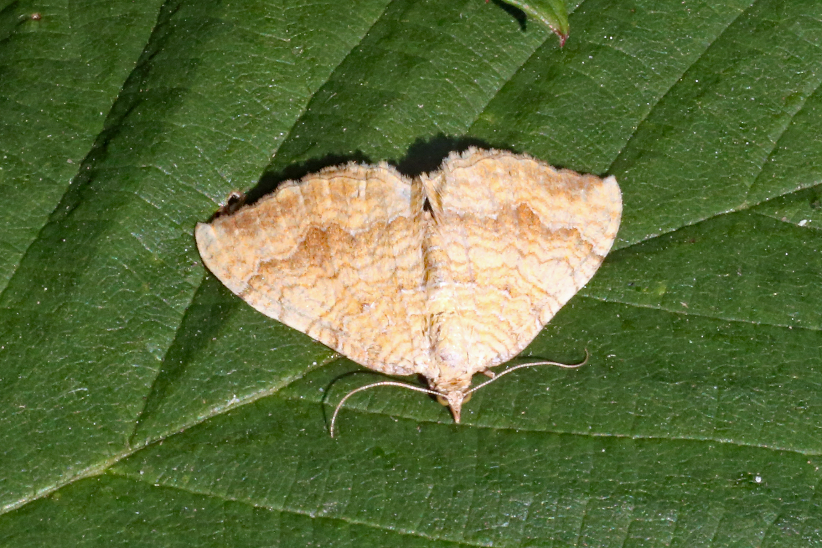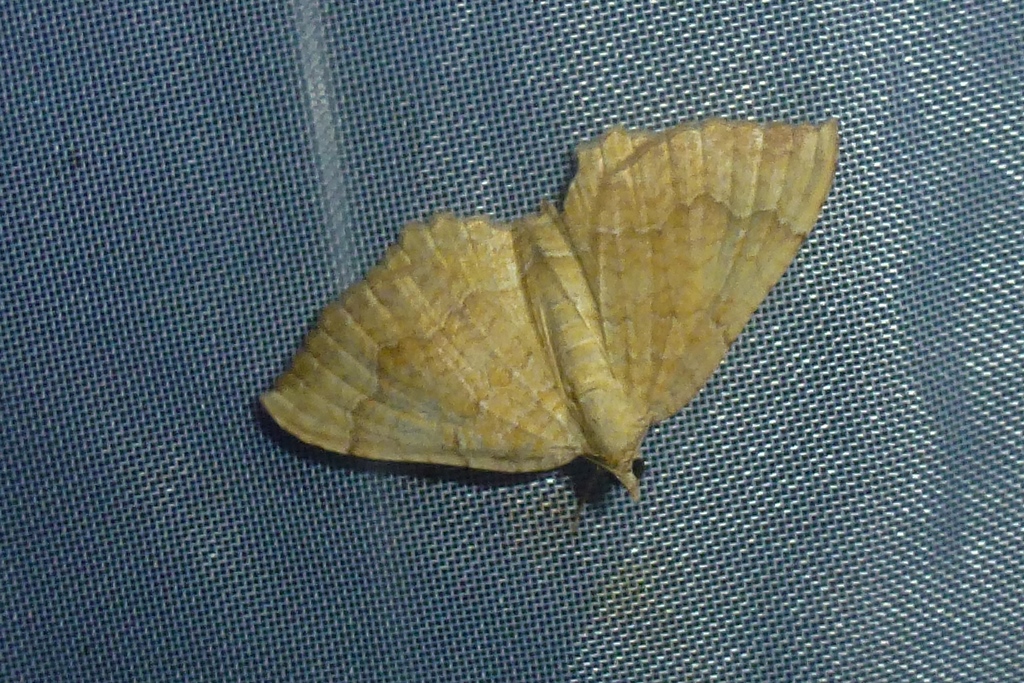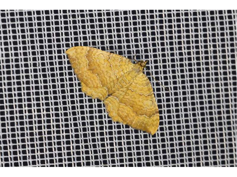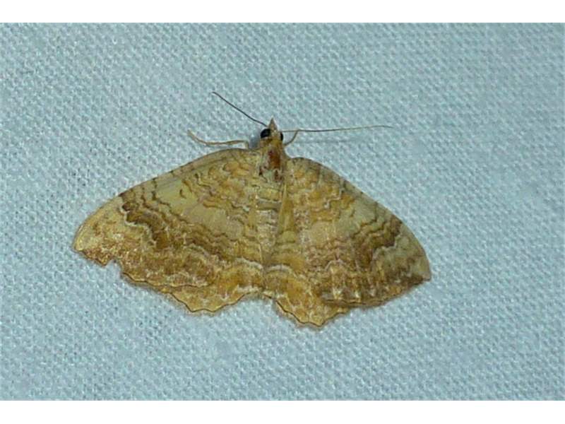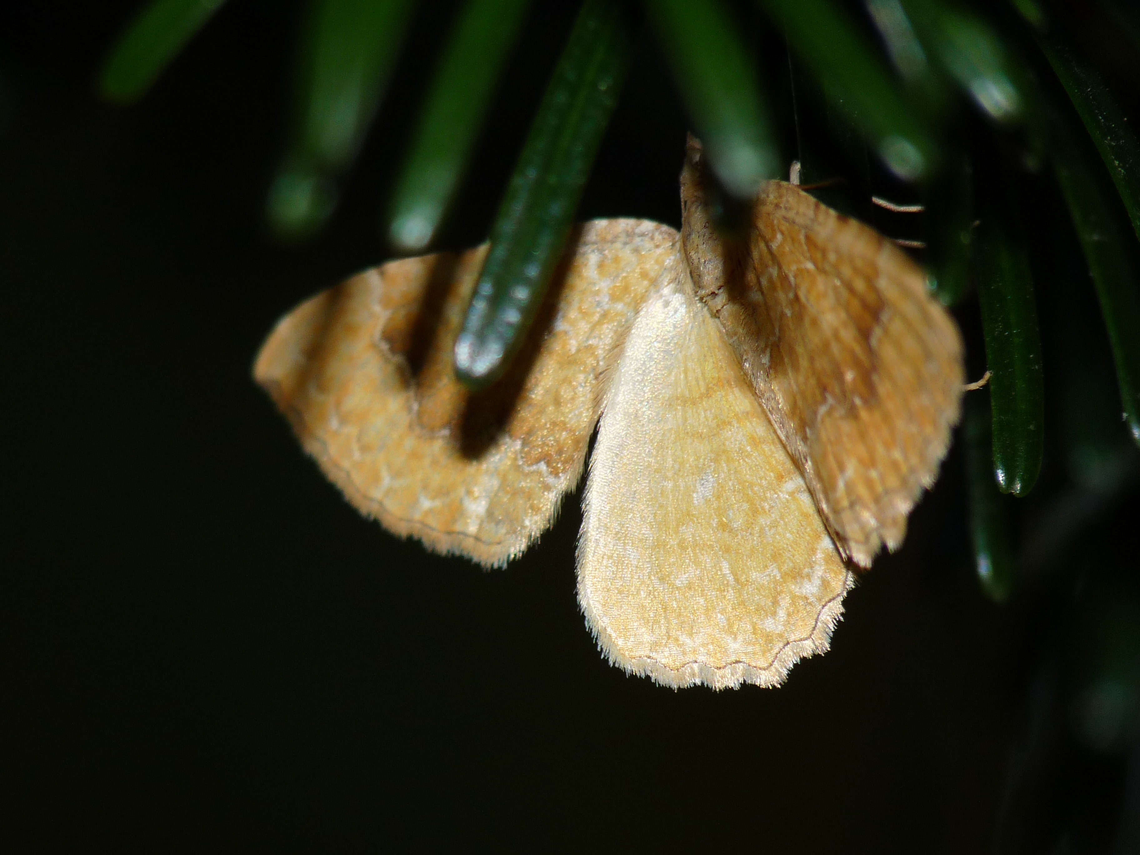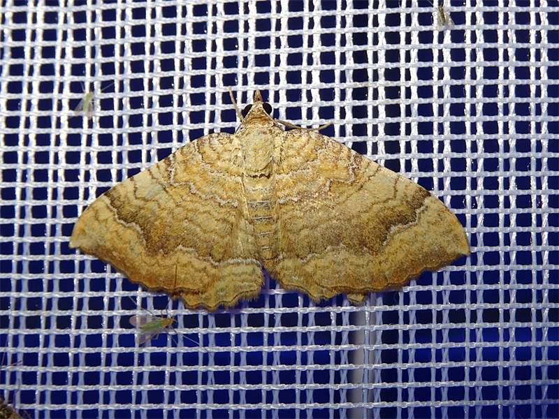 Ockergelbe Blattspanner, oder Löwenzahnspanner oder Brennnesselspanner (Camptogramma bilineata (Linnaeus, 1758)), am Licht, Radeberg, August 2013.