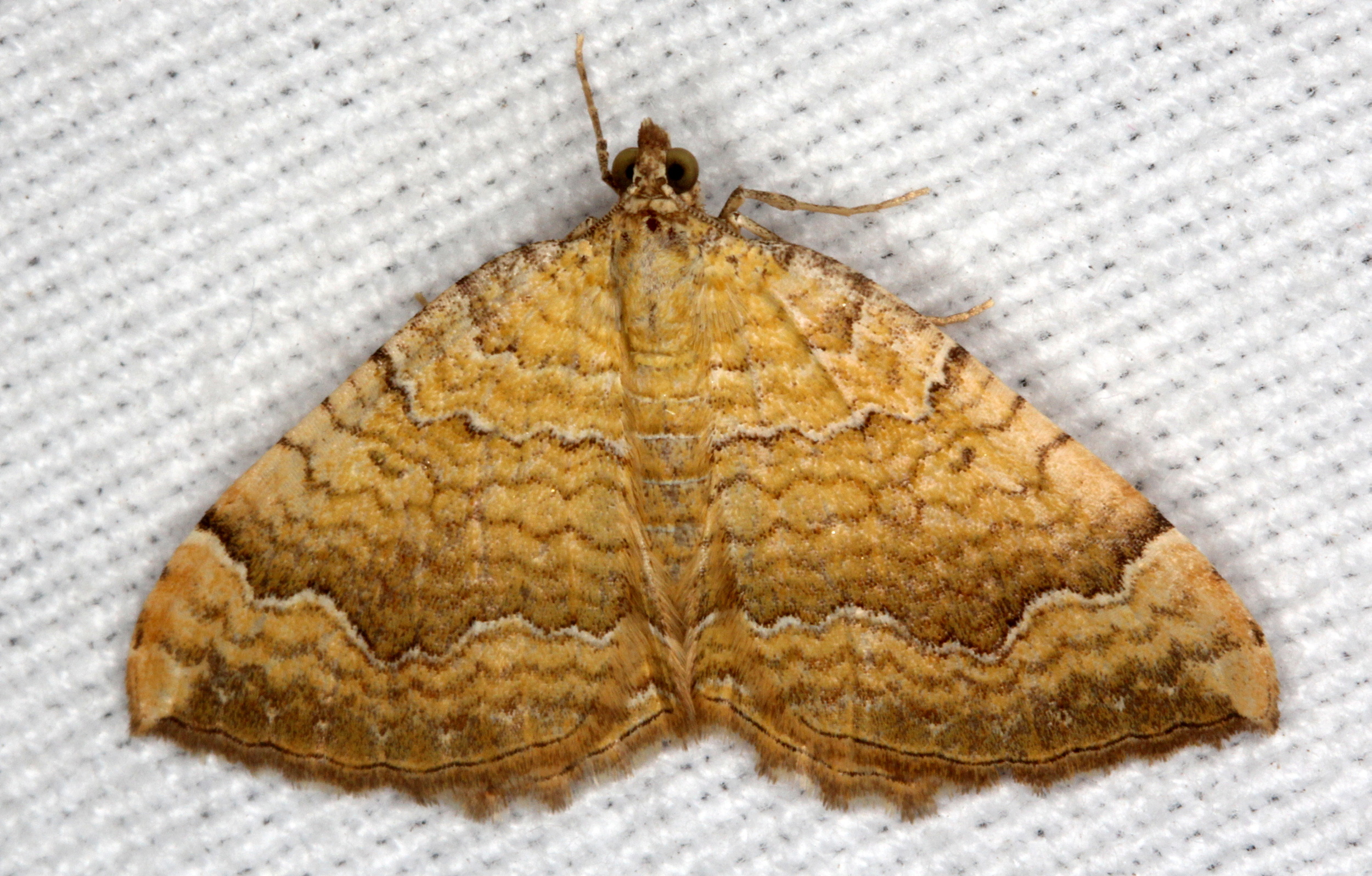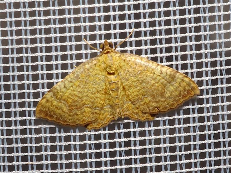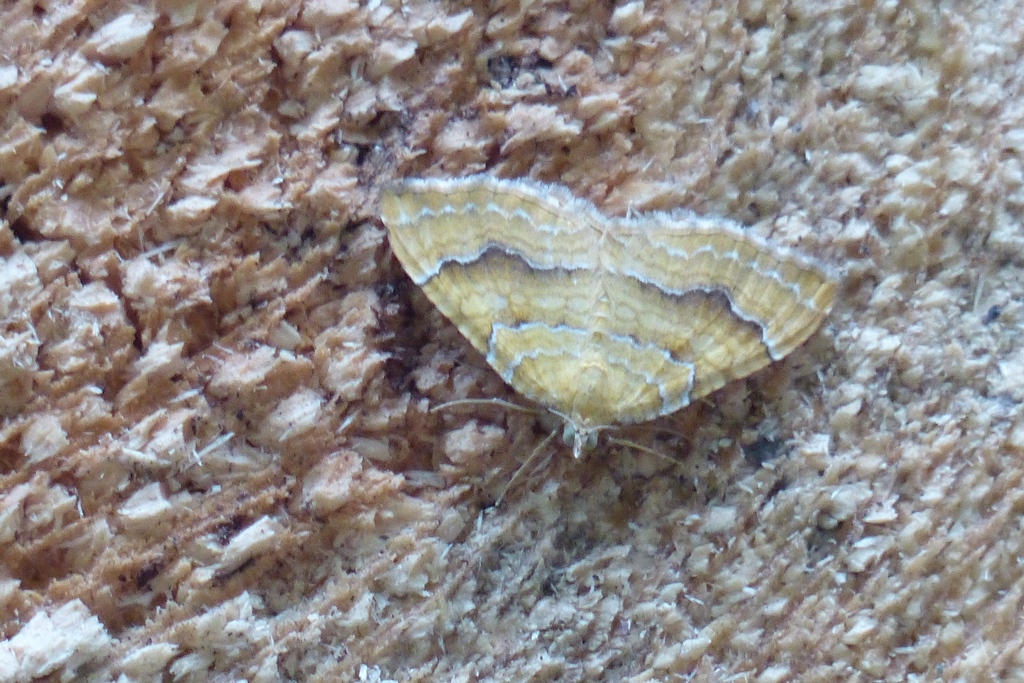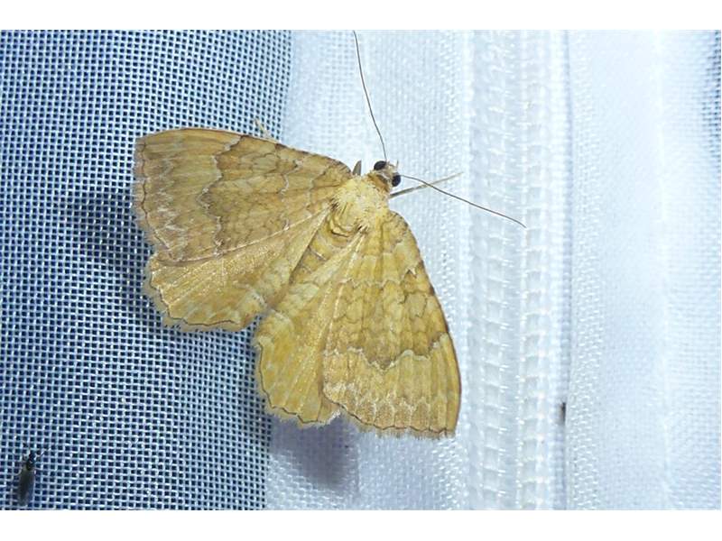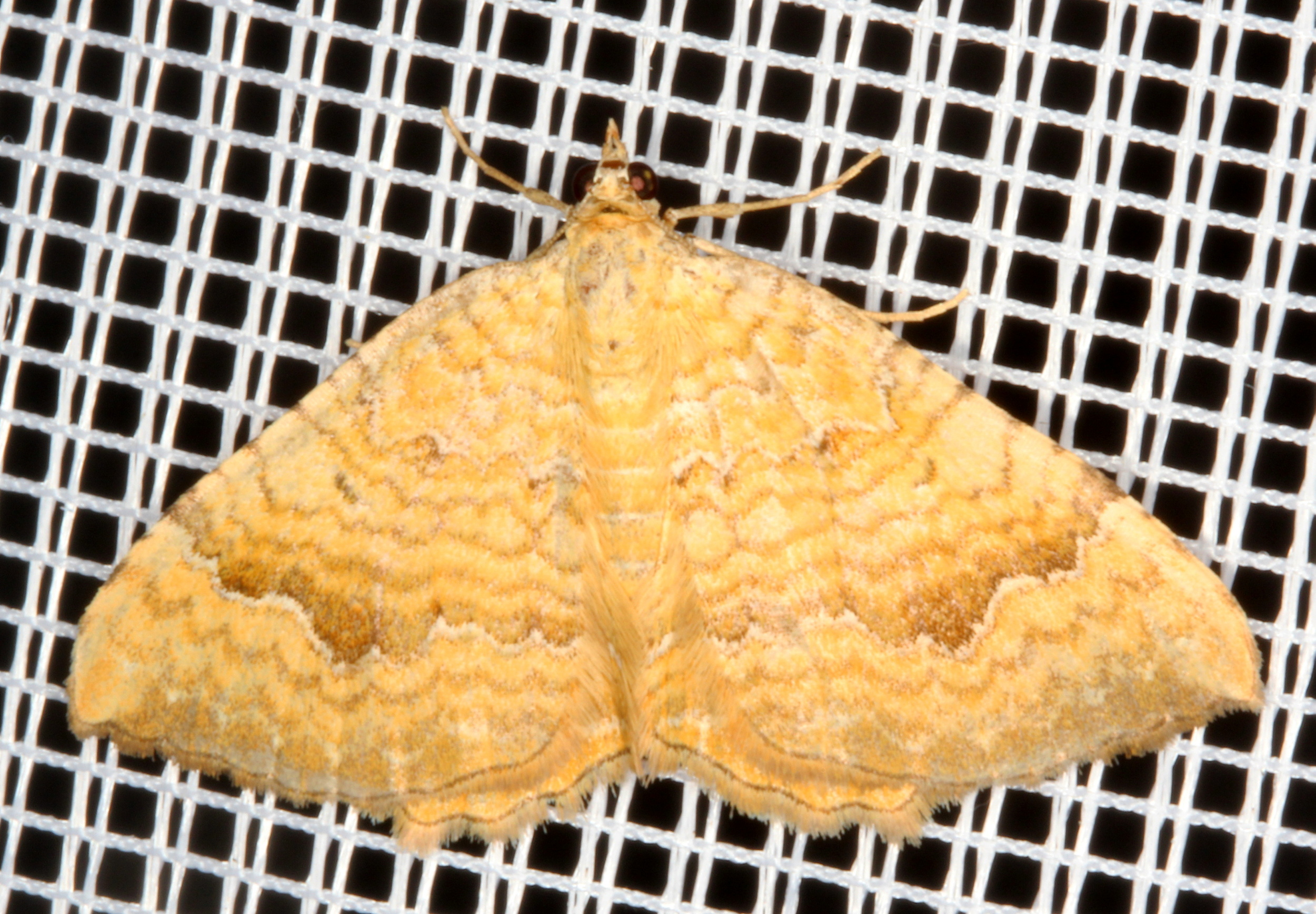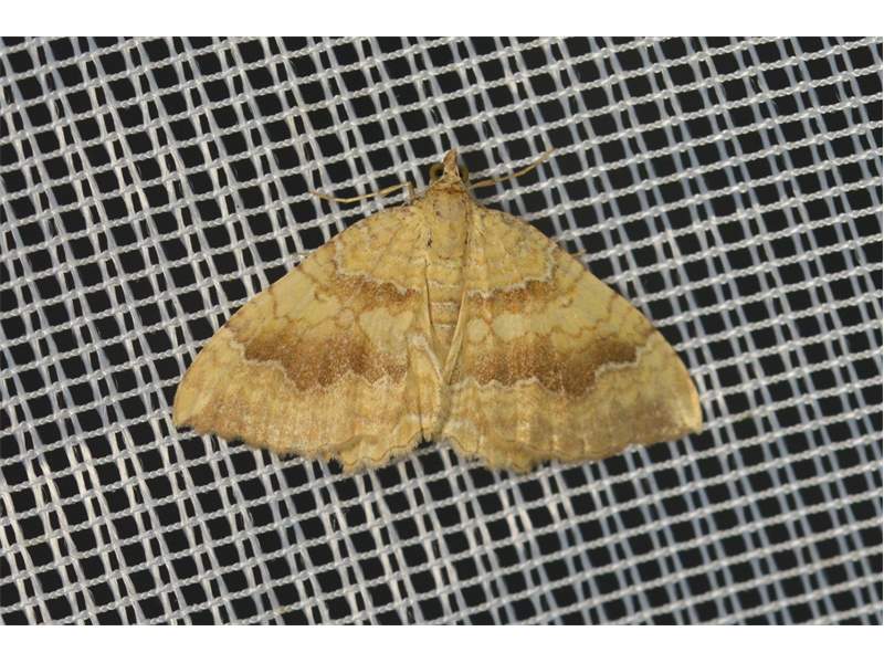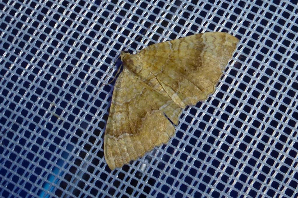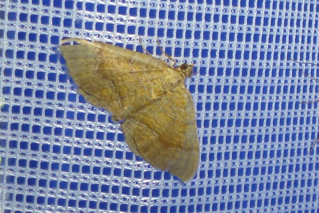 Ockergelbe Blattspanner, oder Löwenzahnspanner oder Brennnesselspanner (Camptogramma bilineata (Linnaeus, 1758)), am Licht, Radeberg, August 2013.