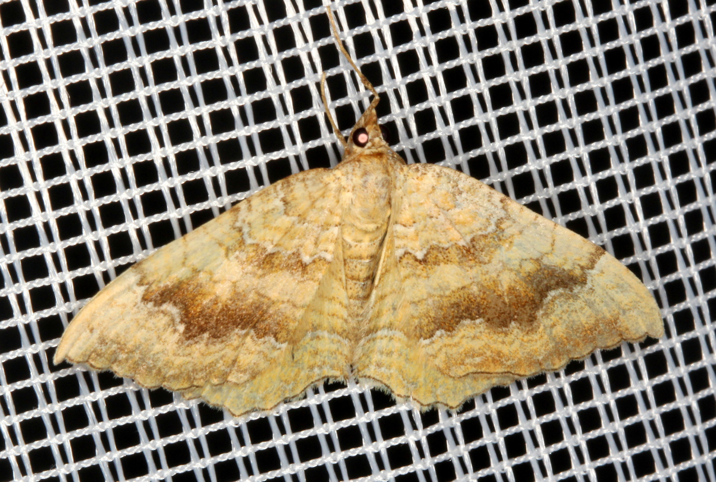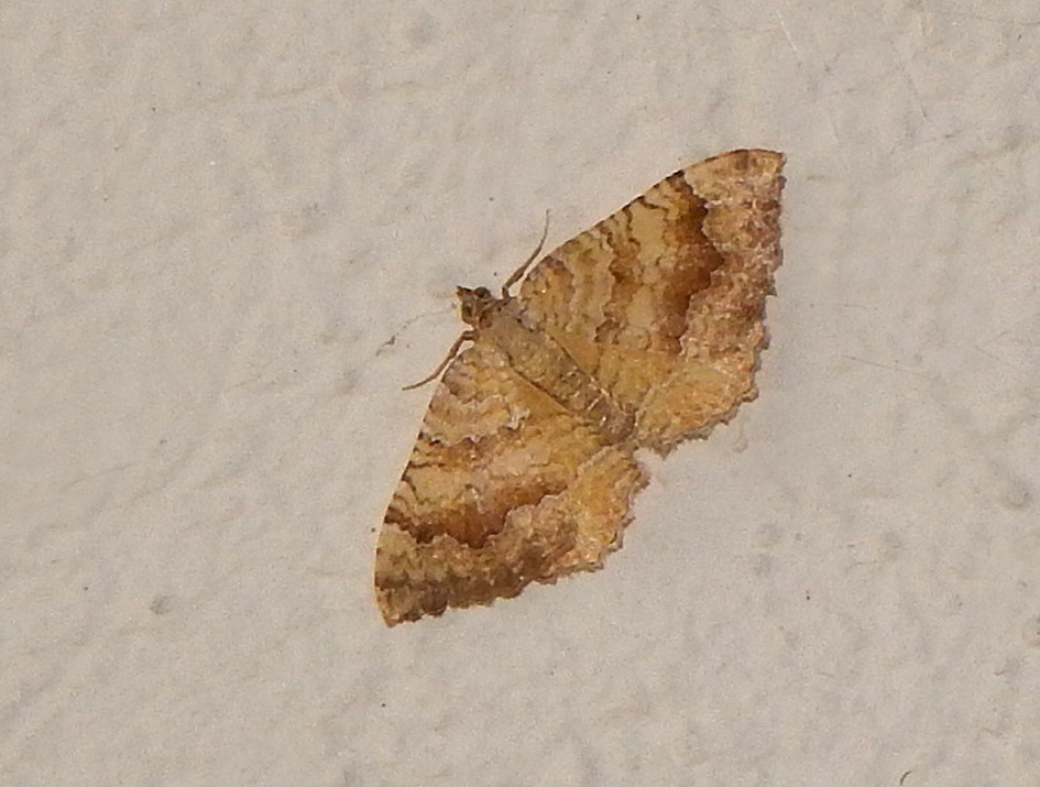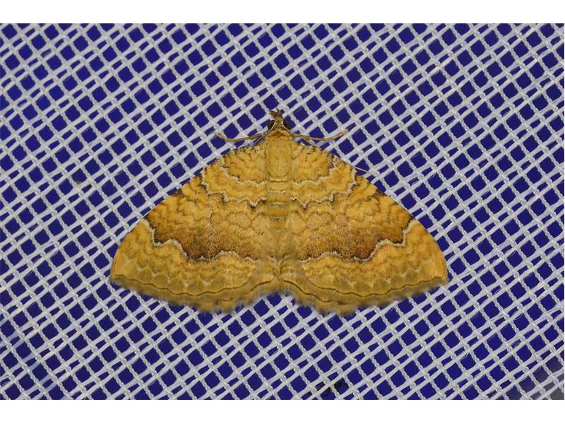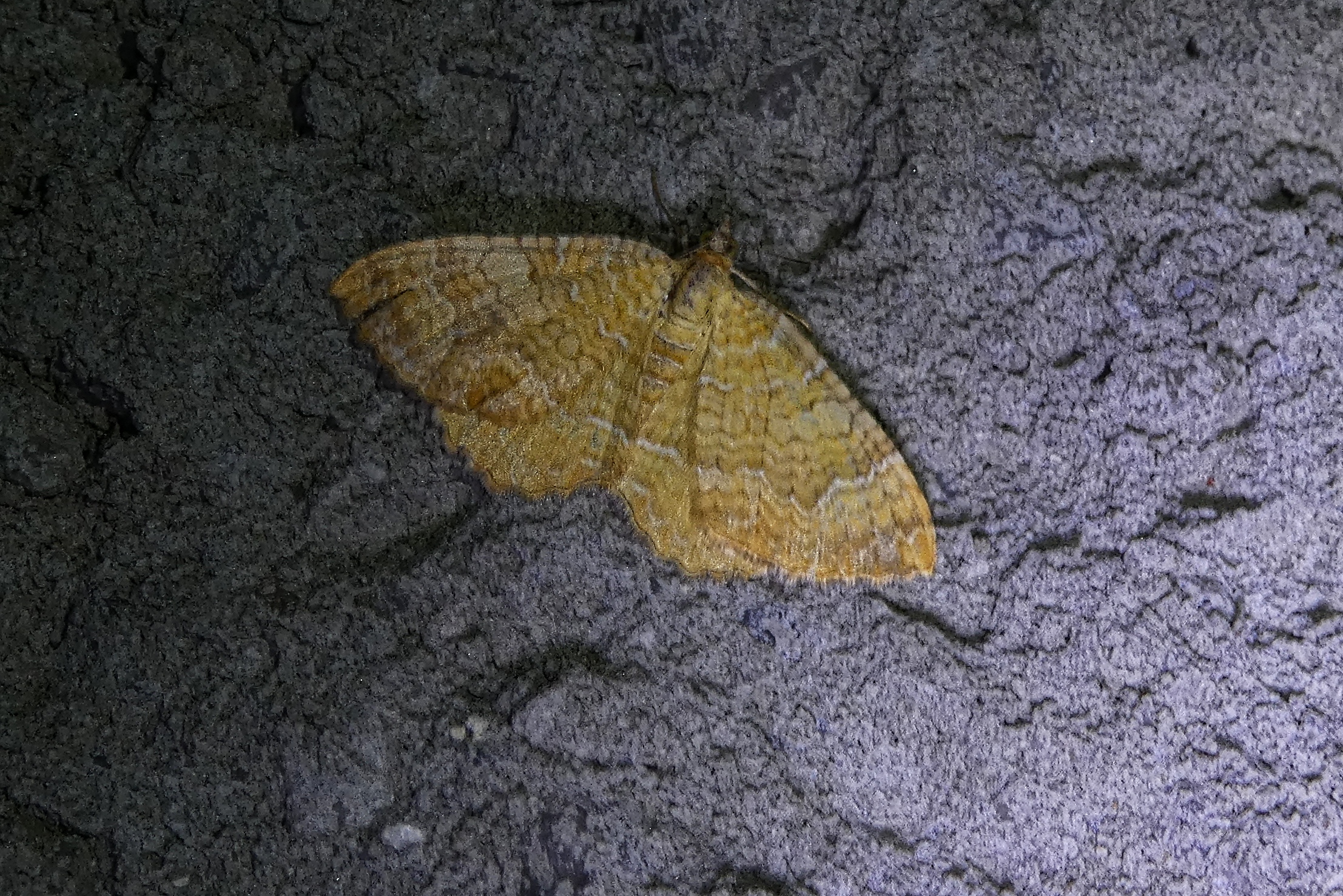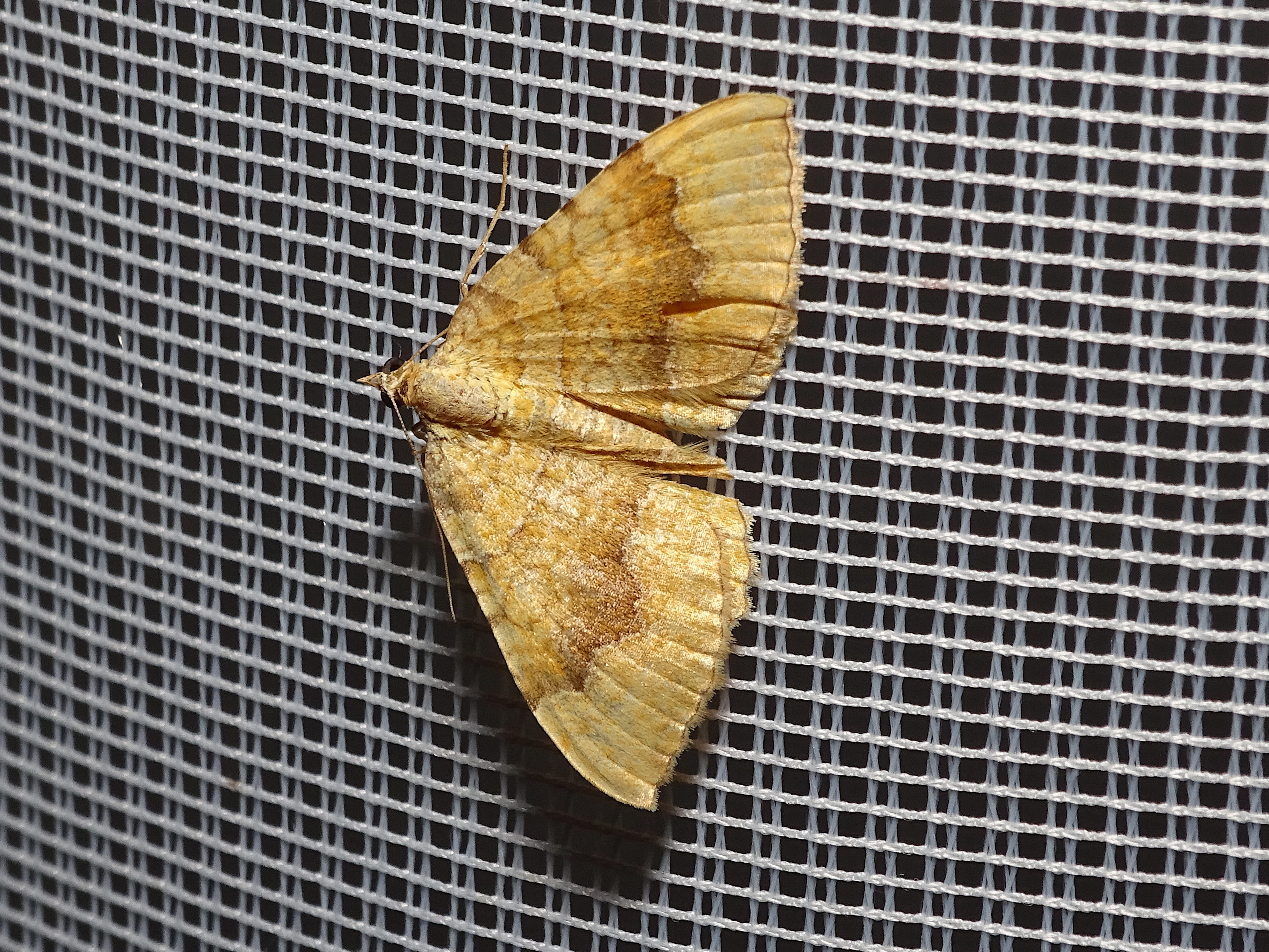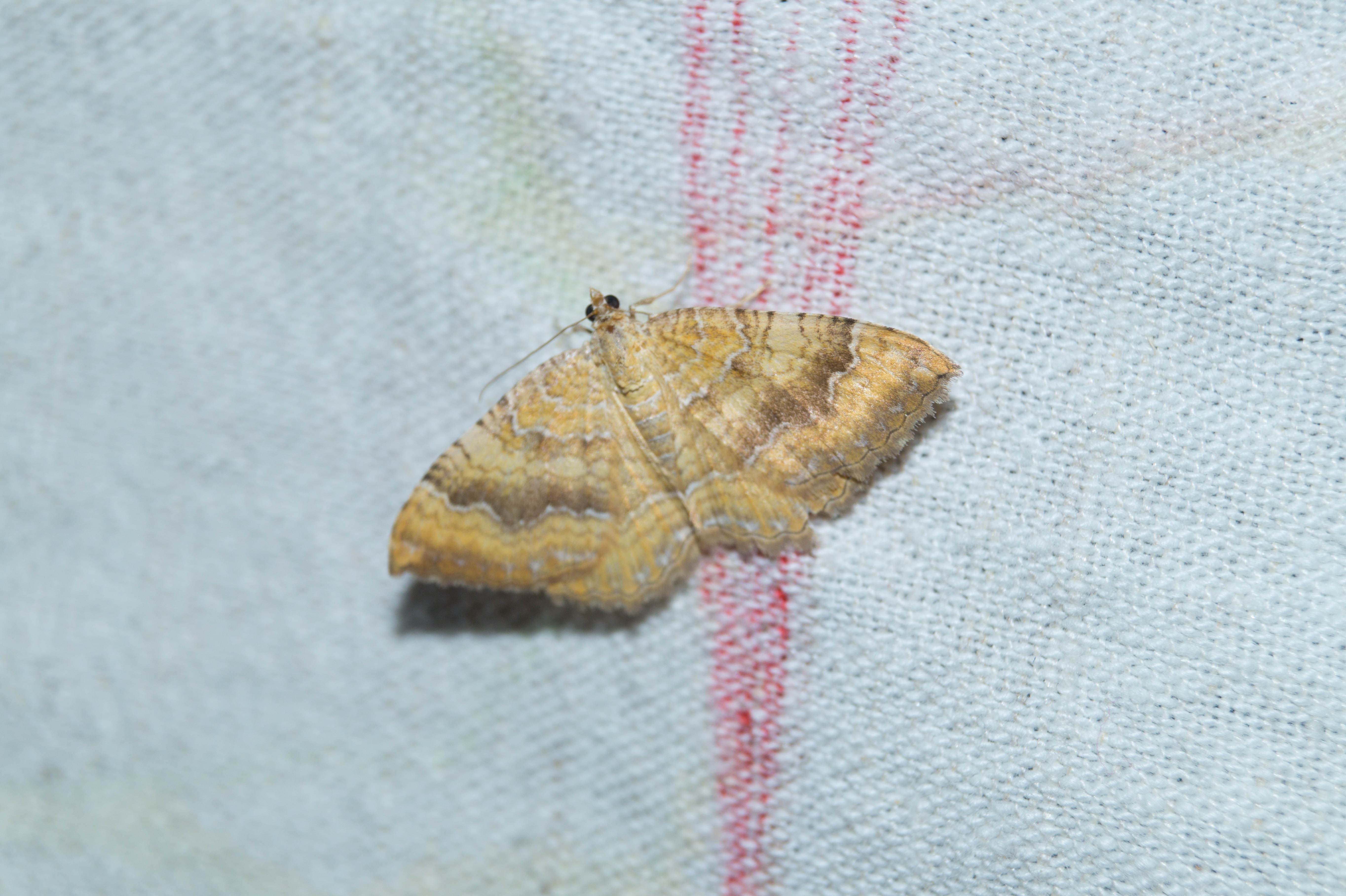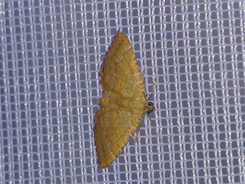 Ockergelbe Blattspanner, oder Löwenzahnspanner oder Brennnesselspanner (Camptogramma bilineata (Linnaeus, 1758)), am Licht, Radeberg, August 2013.