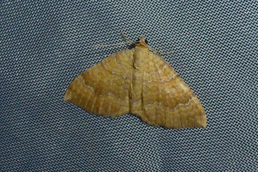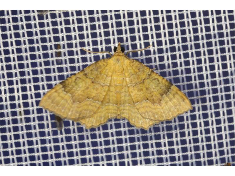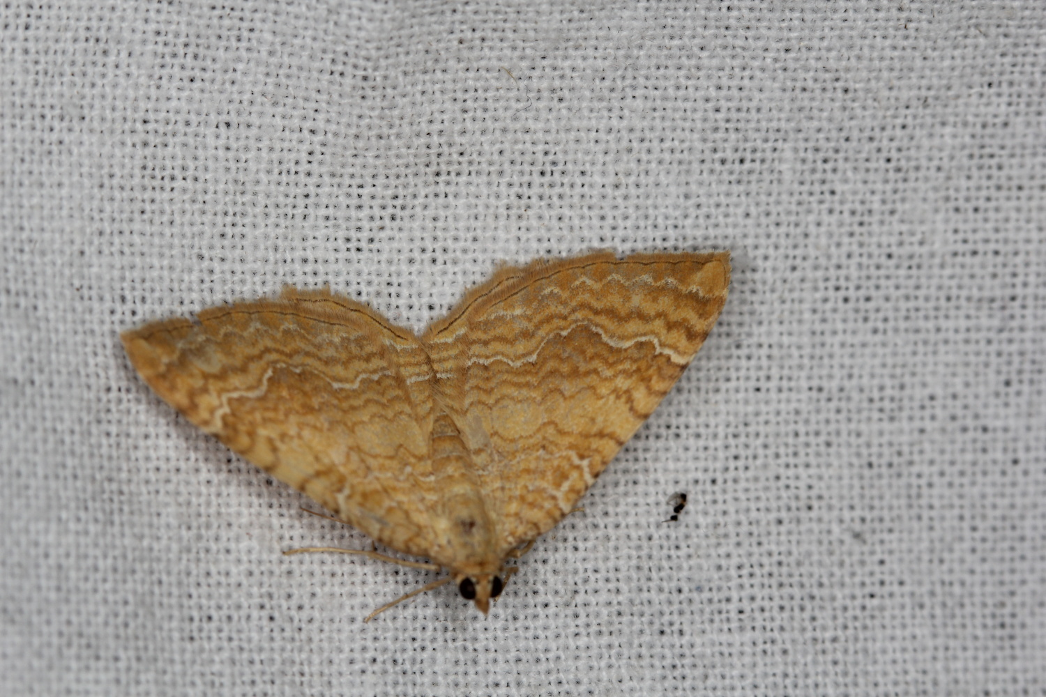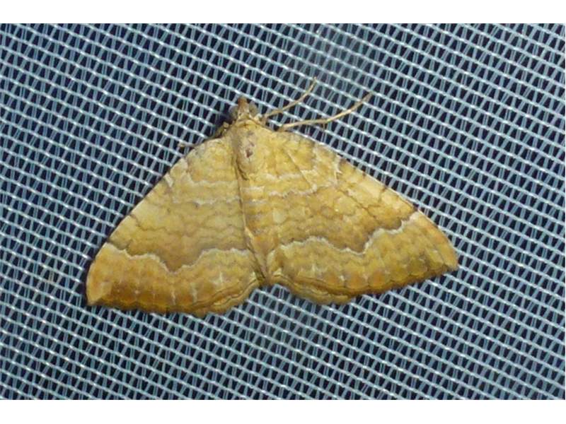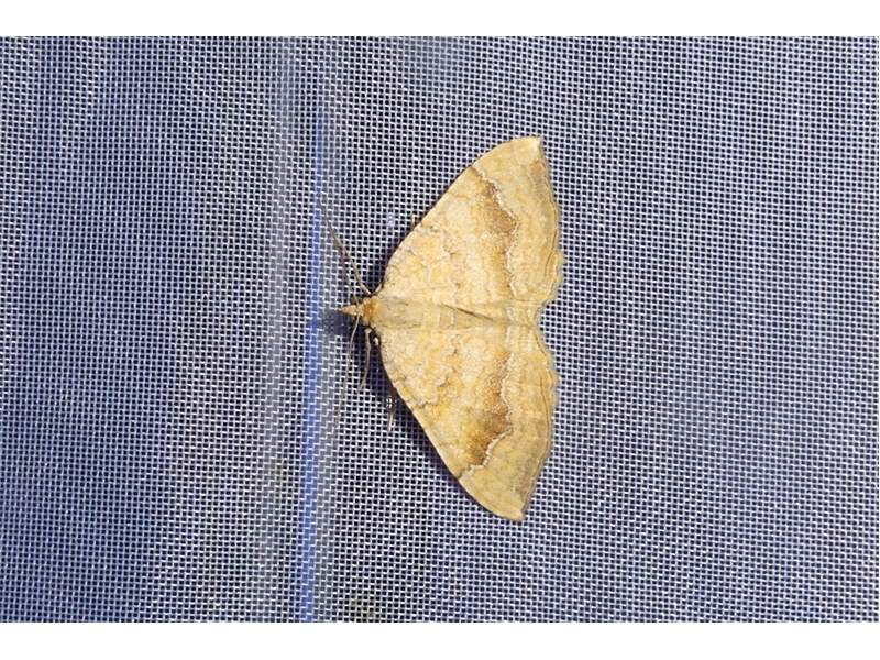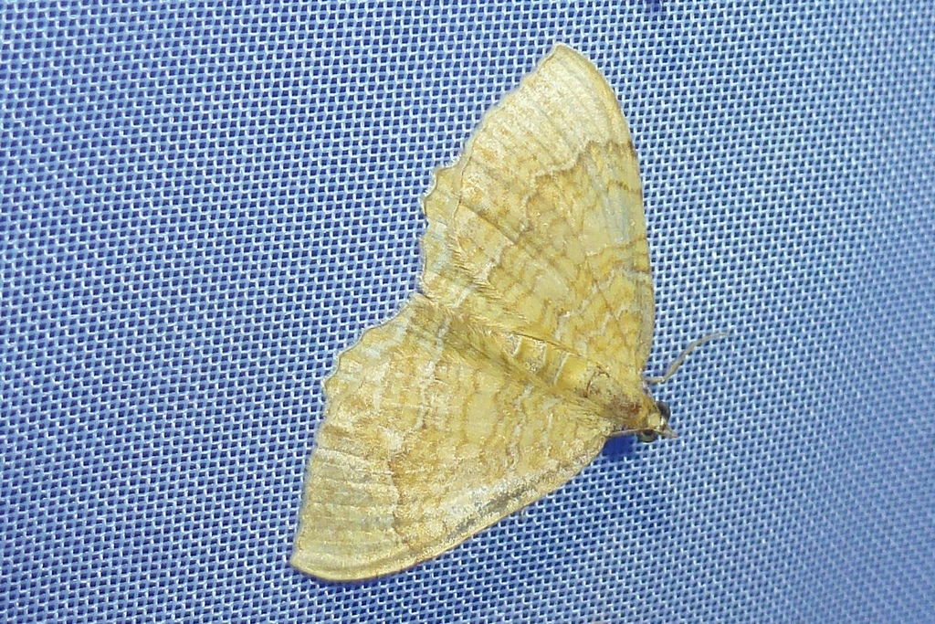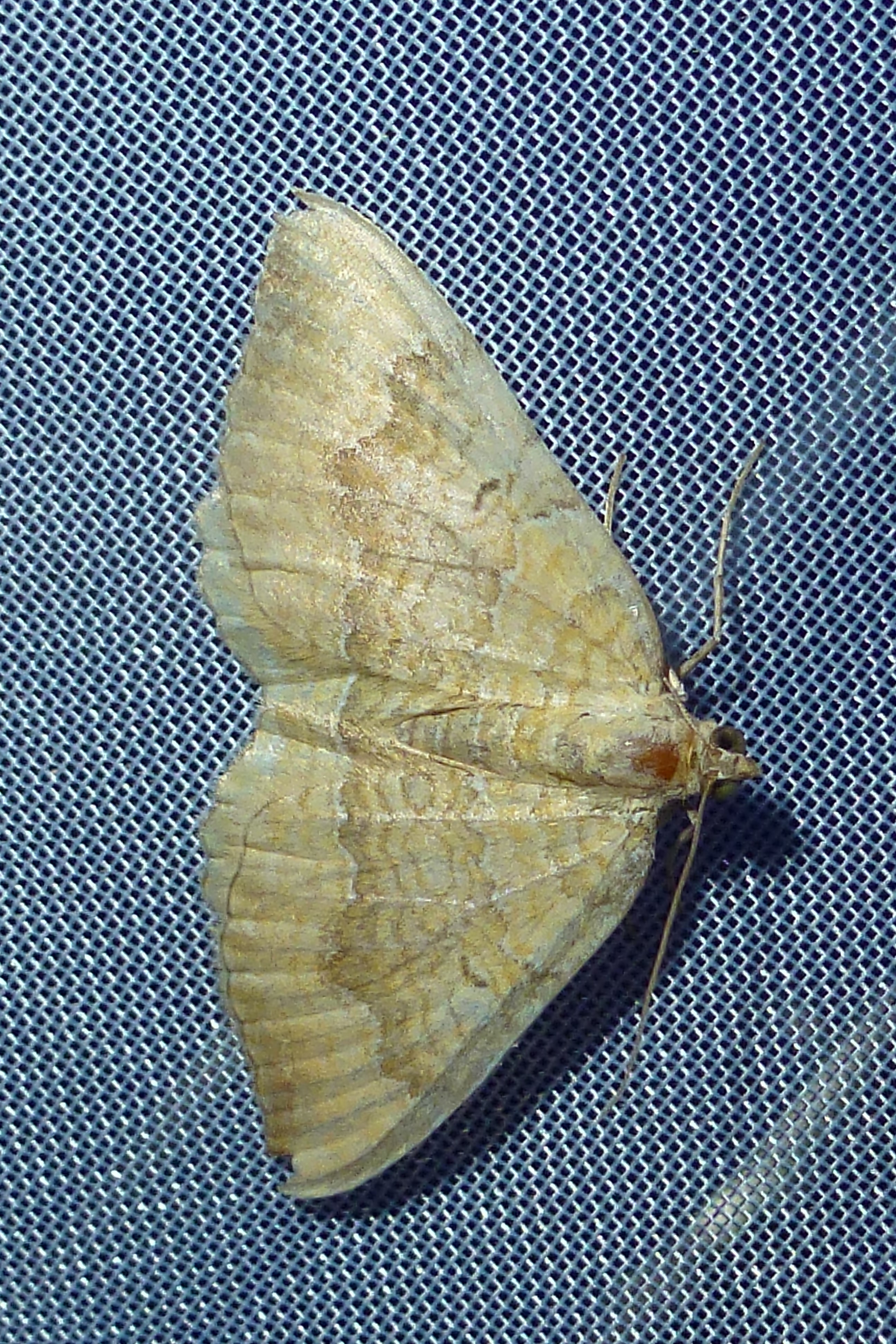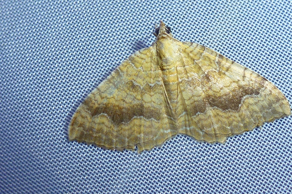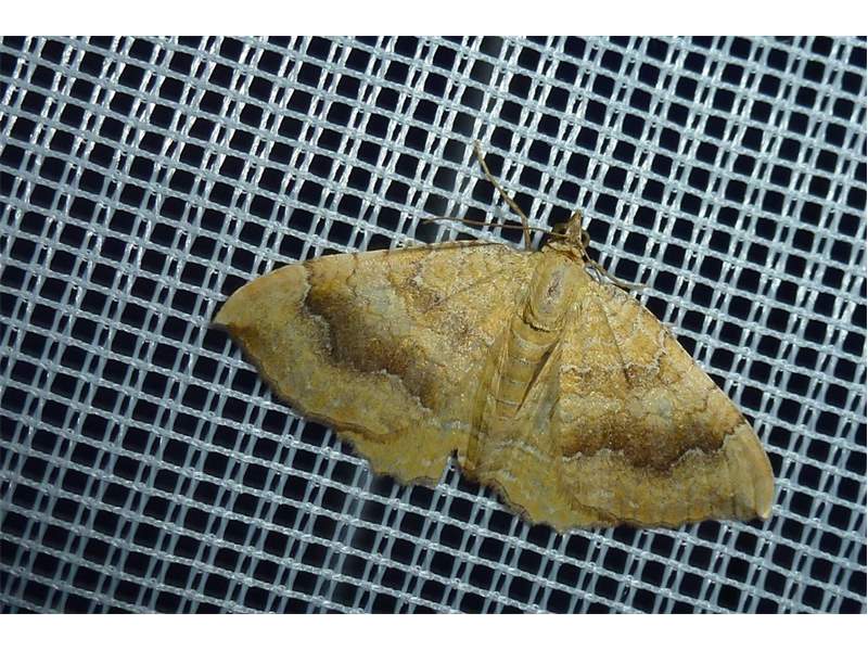 Ockergelbe Blattspanner, oder Löwenzahnspanner oder Brennnesselspanner (Camptogramma bilineata (Linnaeus, 1758)), am Licht, Radeberg, August 2013.