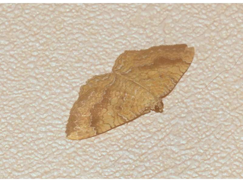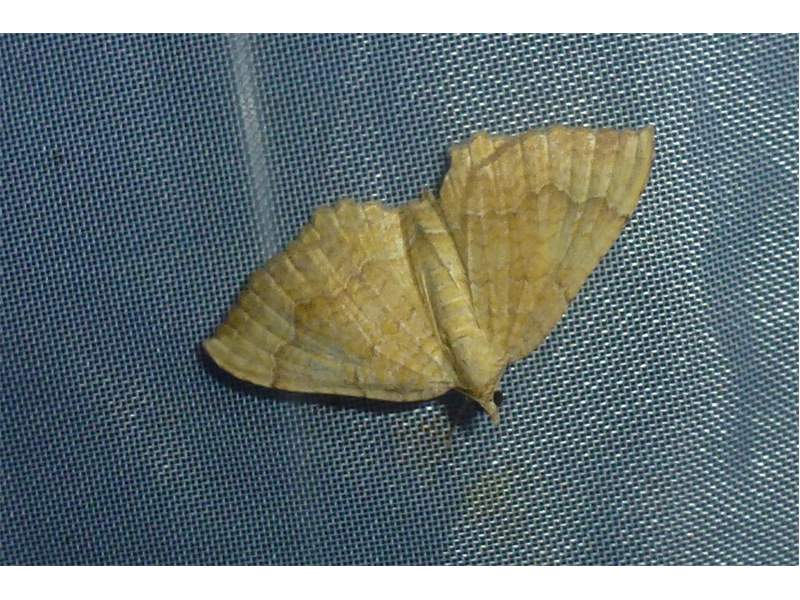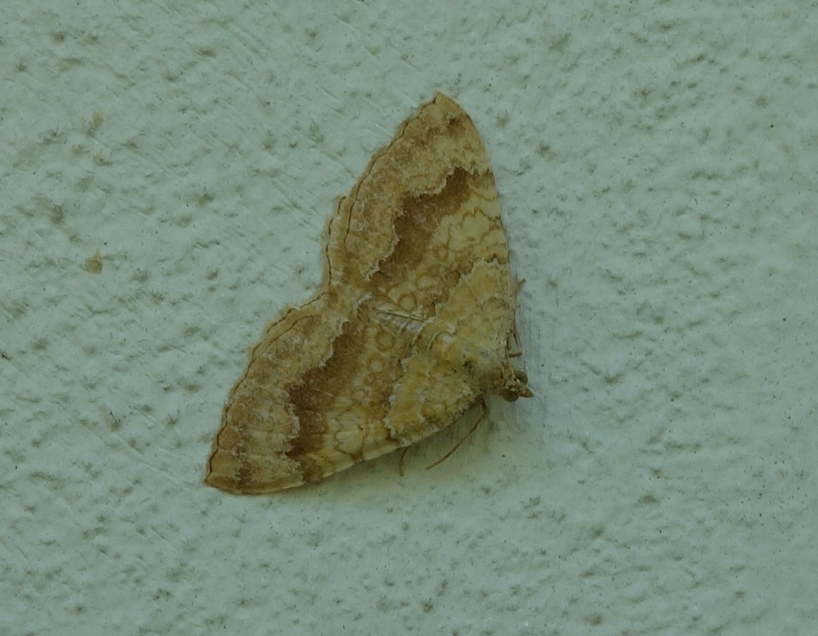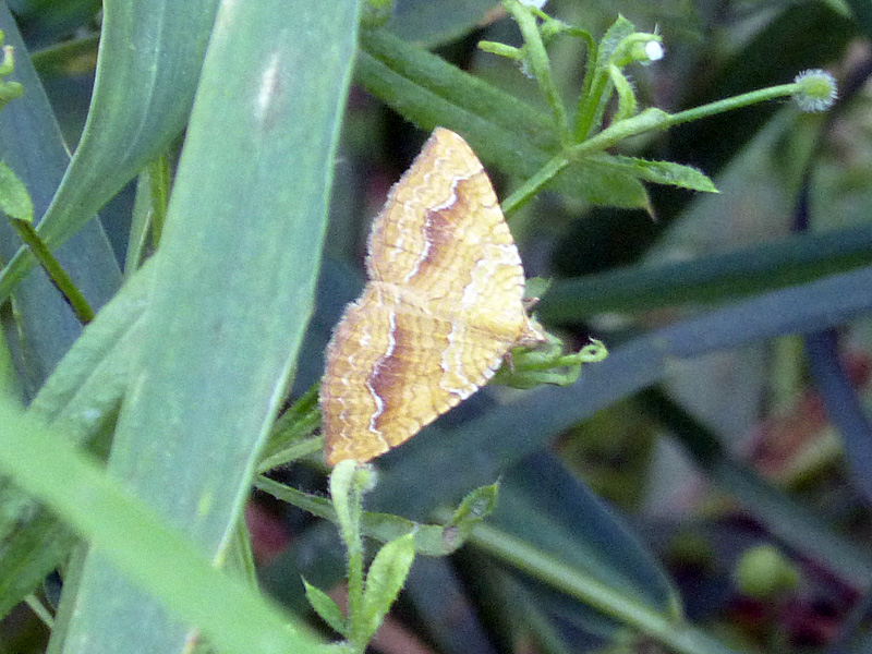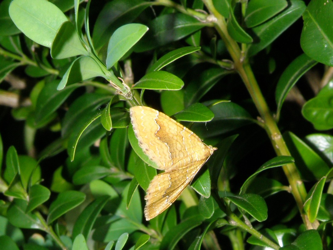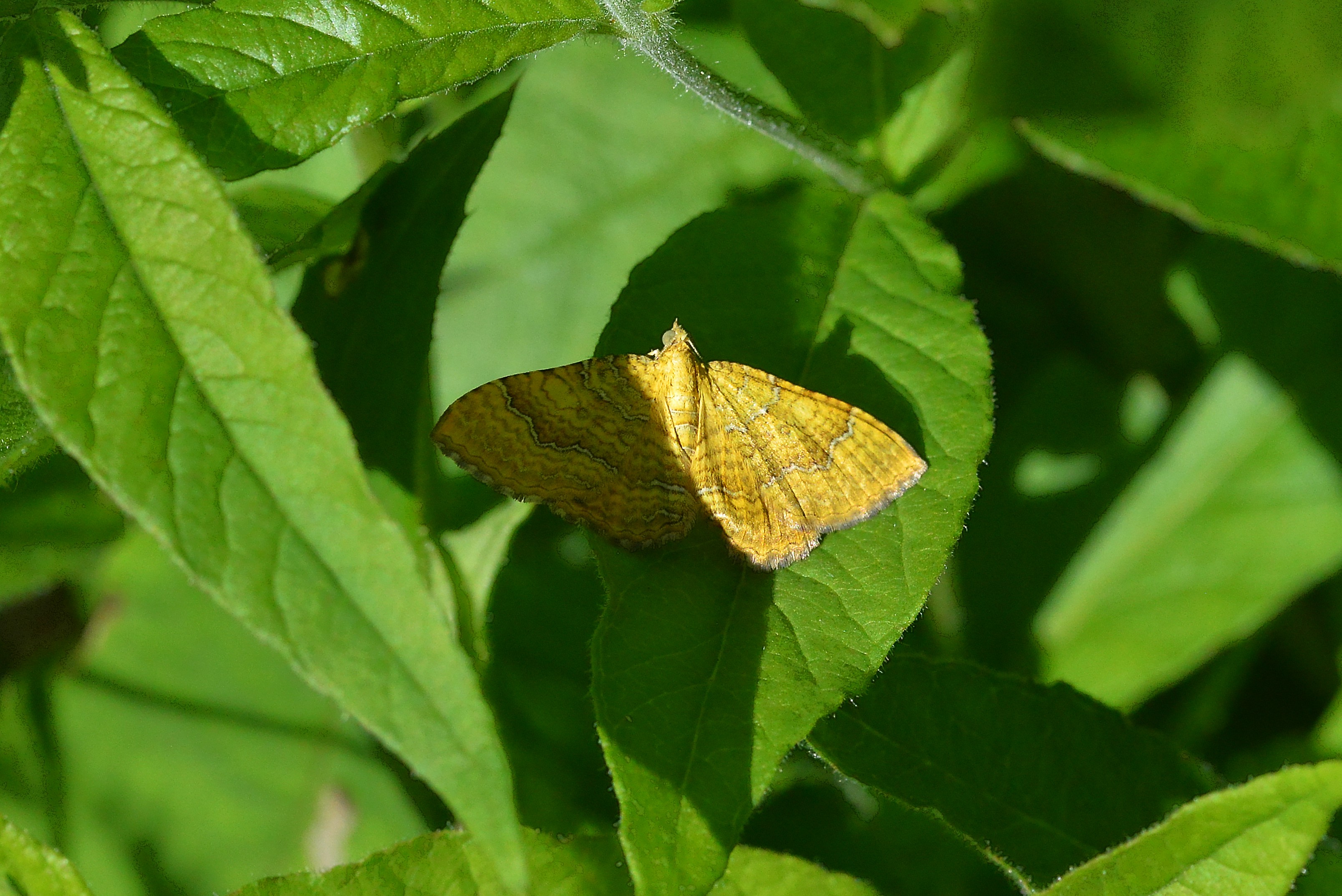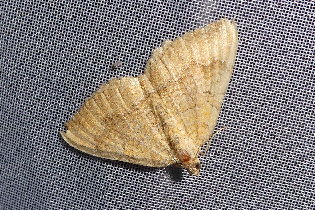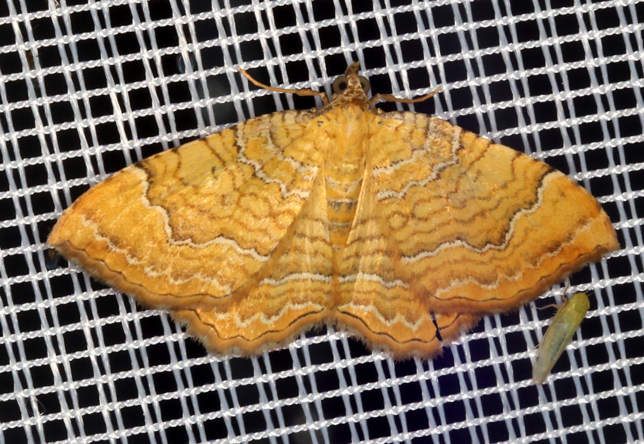 Ockergelbe Blattspanner, oder Löwenzahnspanner oder Brennnesselspanner (Camptogramma bilineata (Linnaeus, 1758)), am Licht, Radeberg, August 2013.