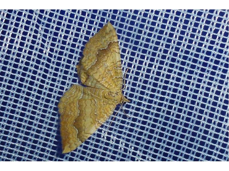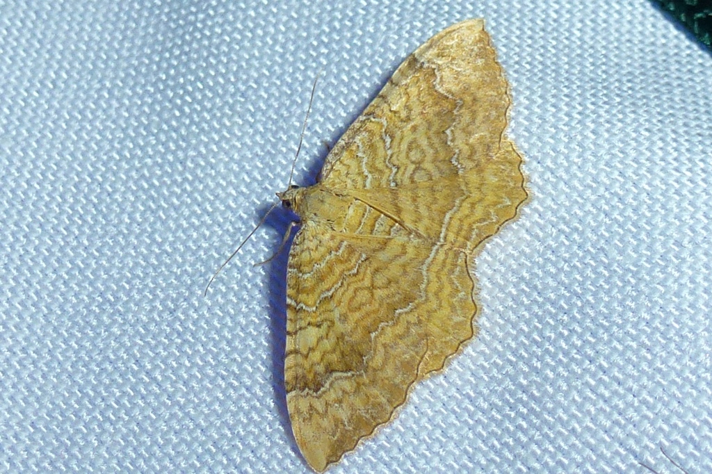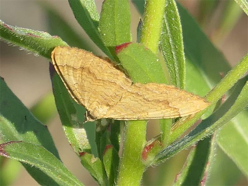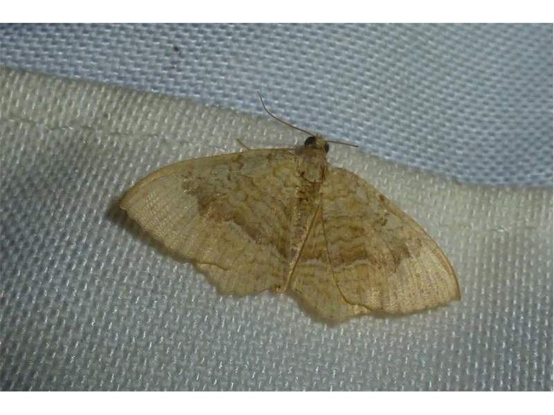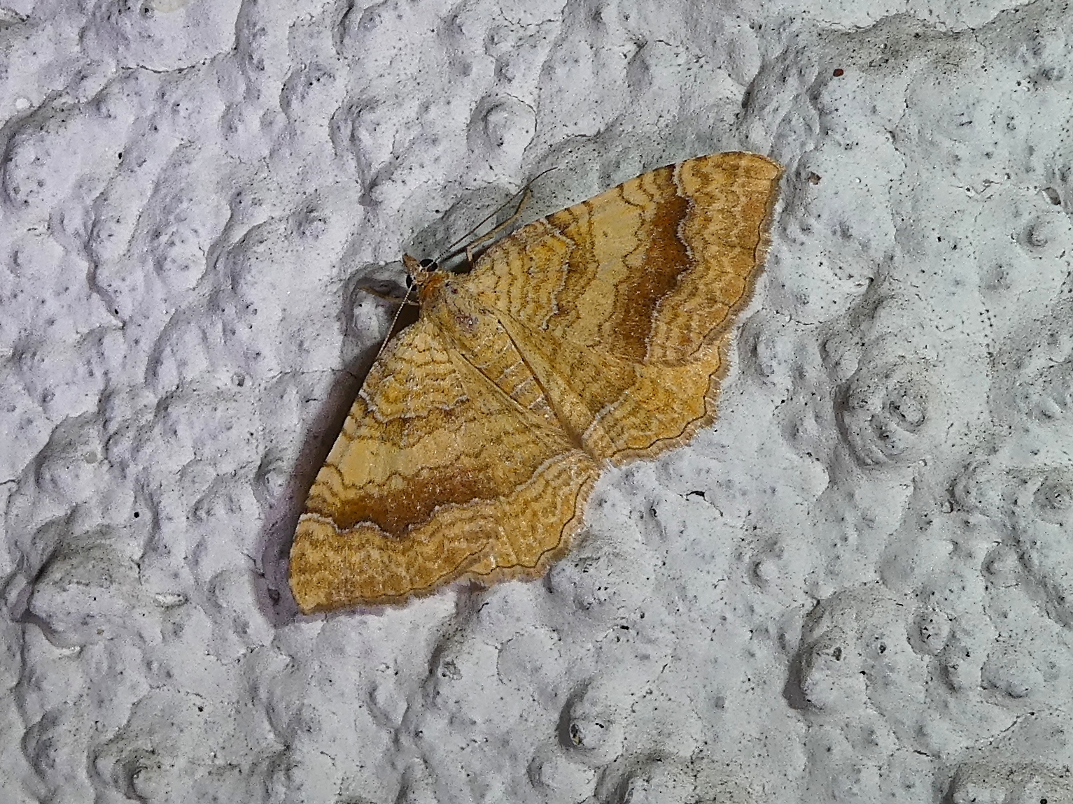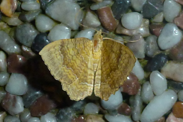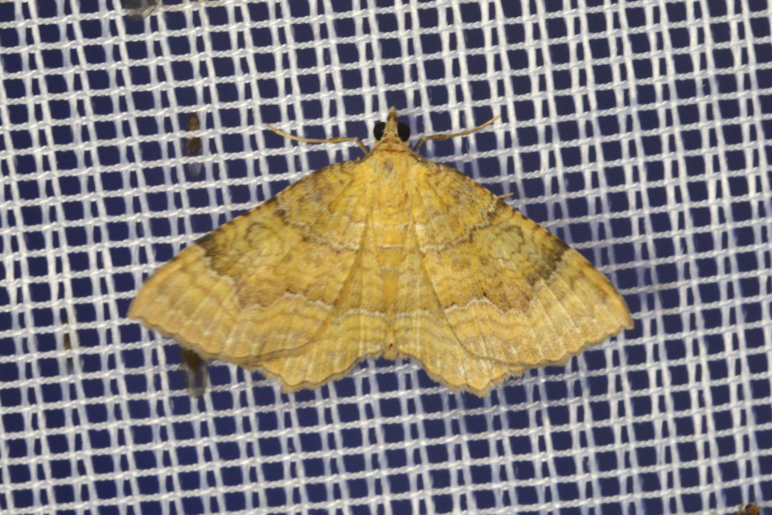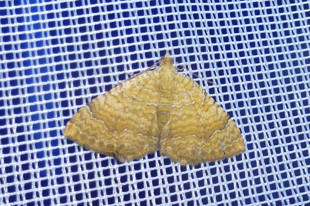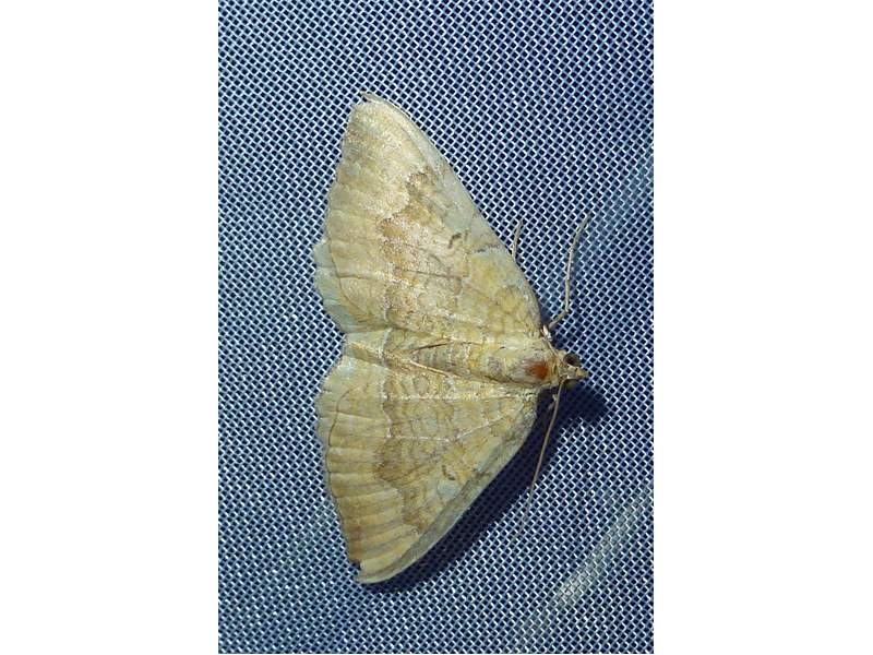 Ockergelbe Blattspanner, oder Löwenzahnspanner oder Brennnesselspanner (Camptogramma bilineata (Linnaeus, 1758)), am Licht, Radeberg, August 2013.