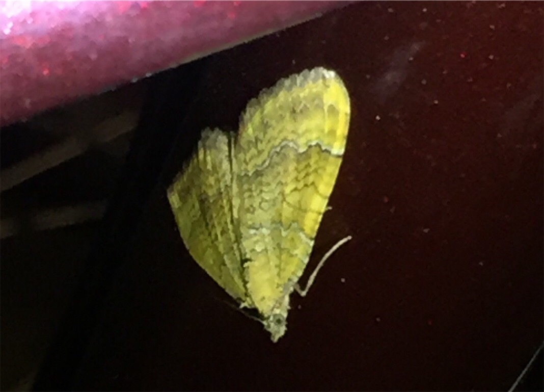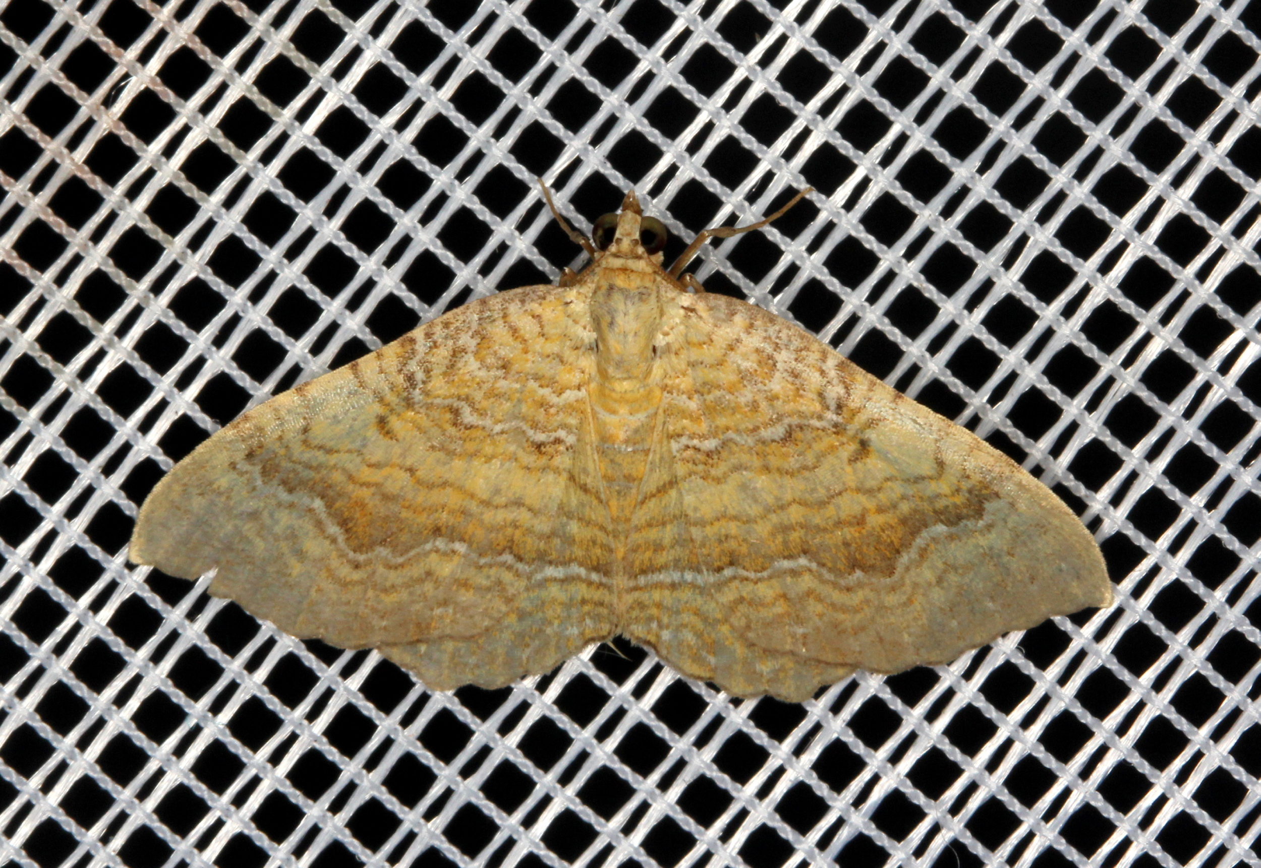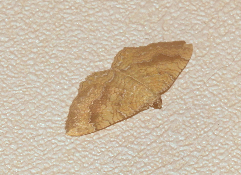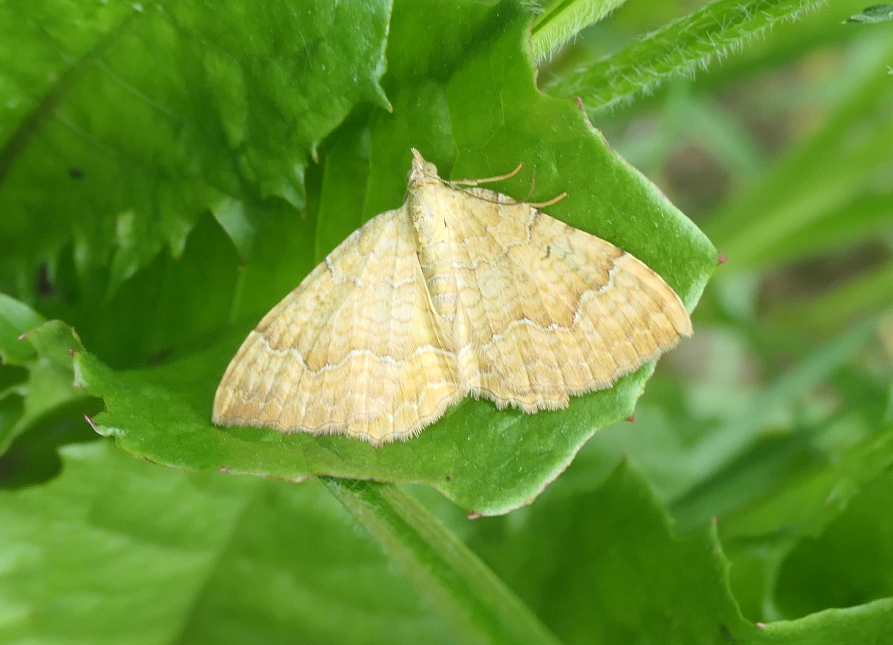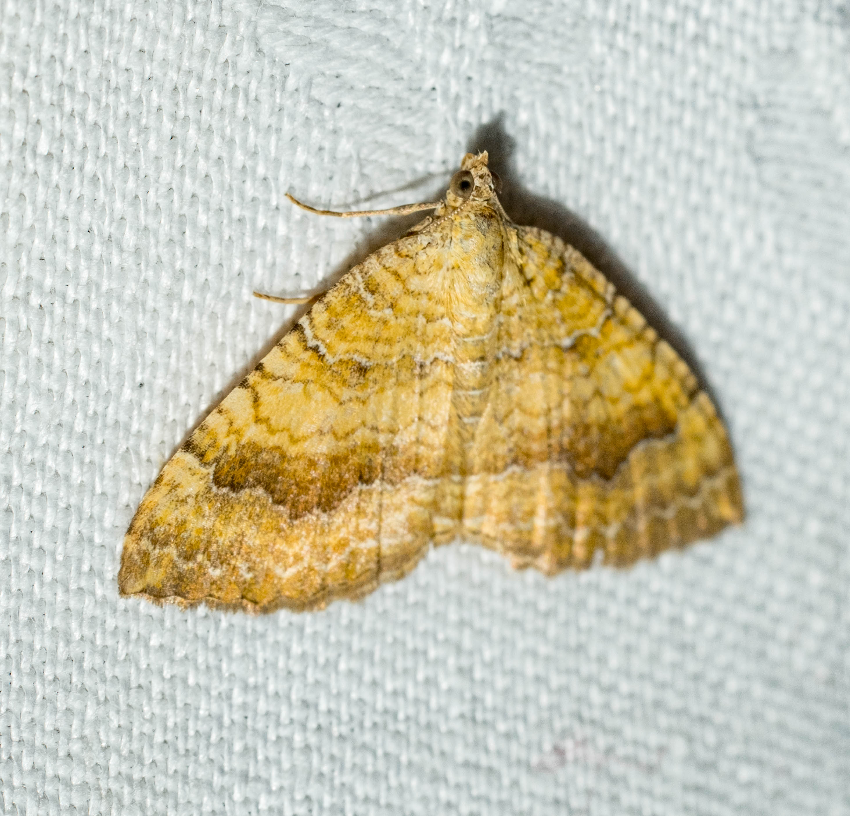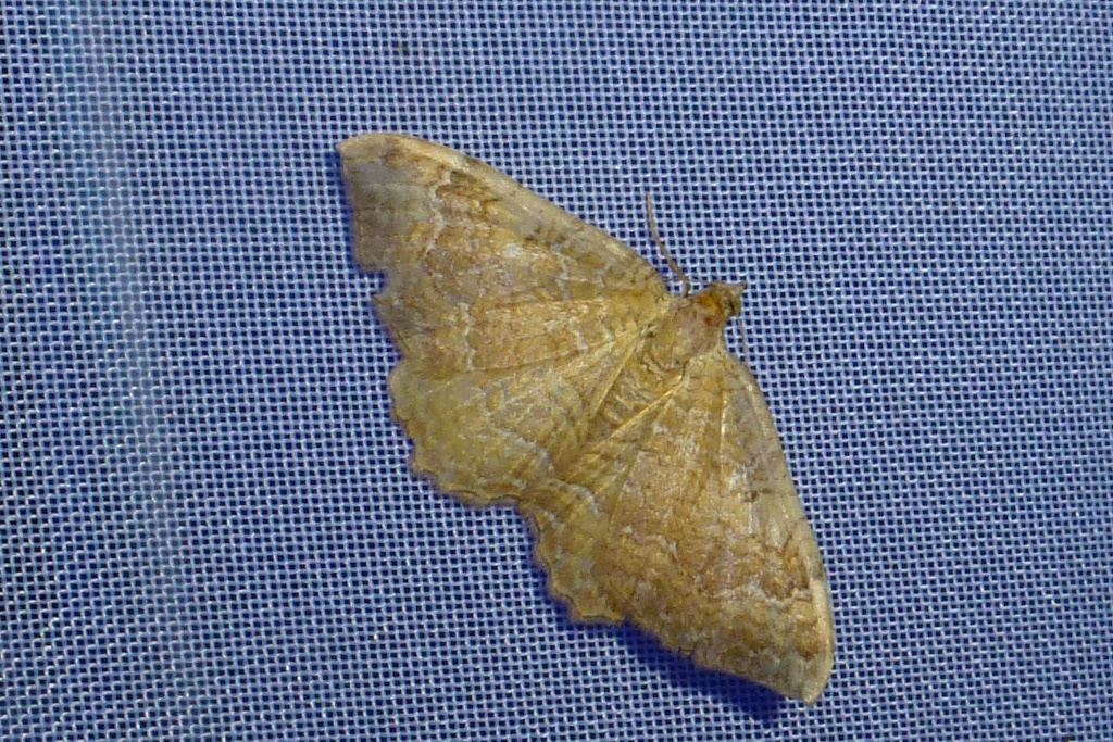 Ockergelbe Blattspanner, oder Löwenzahnspanner oder Brennnesselspanner (Camptogramma bilineata (Linnaeus, 1758)), am Licht, Radeberg, August 2013.