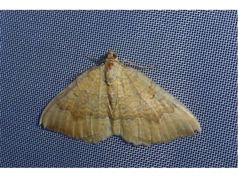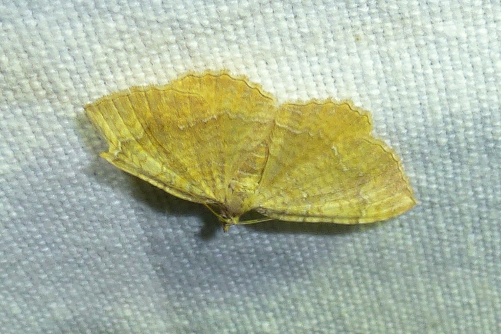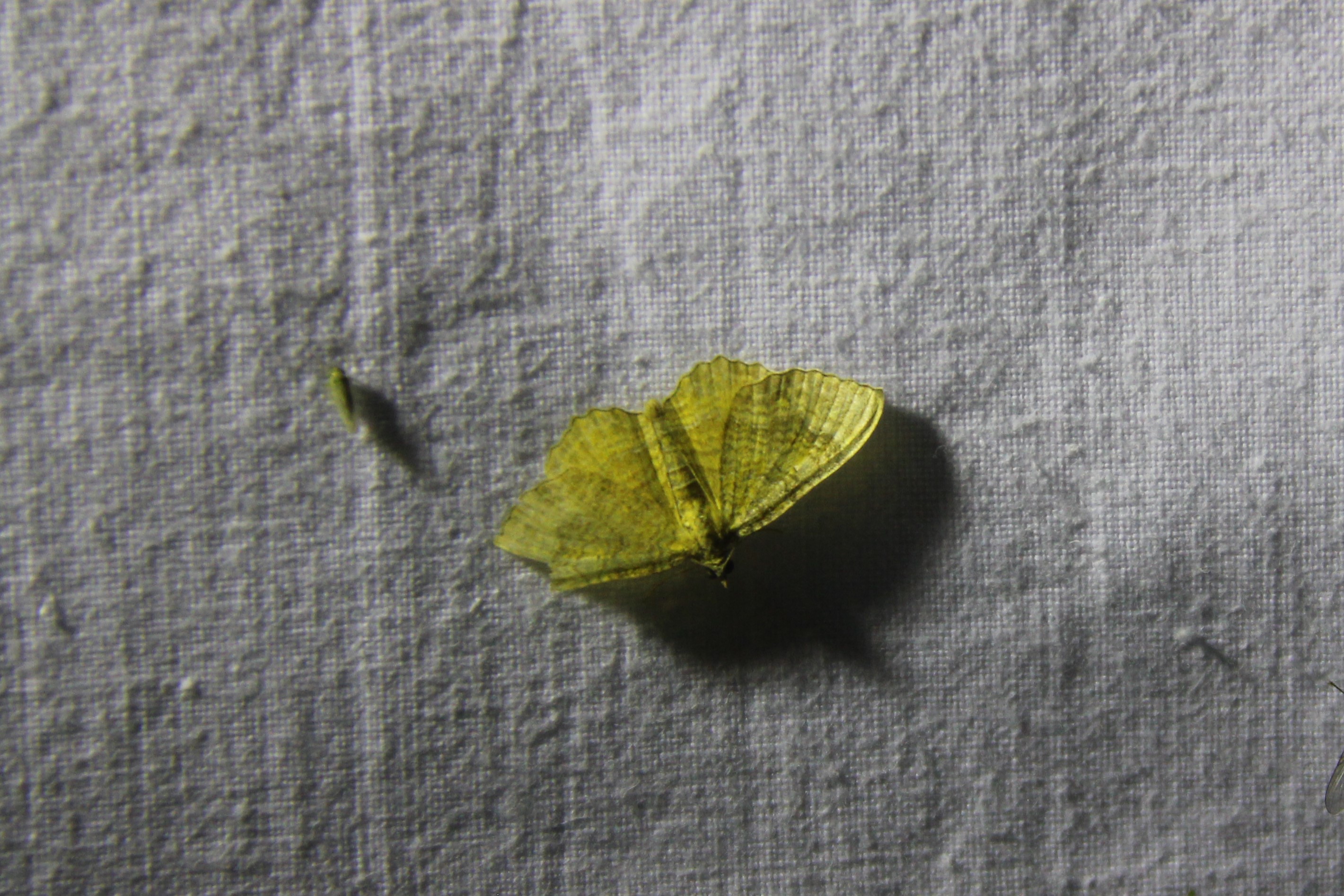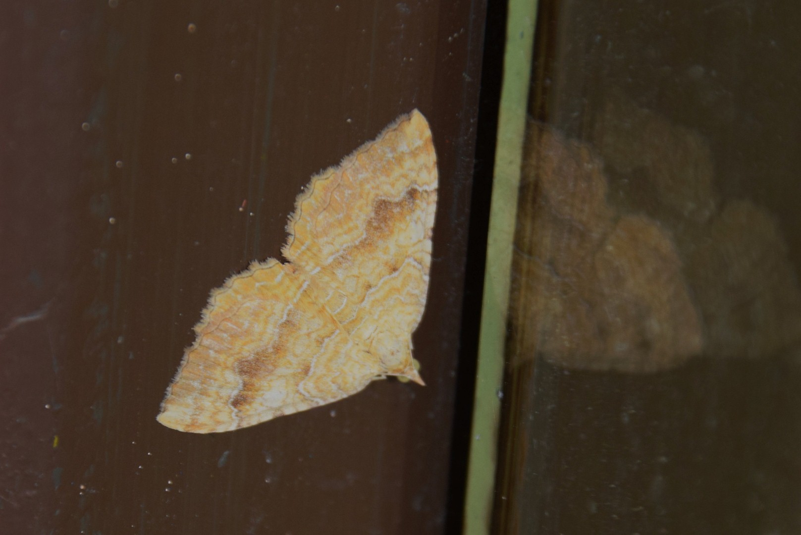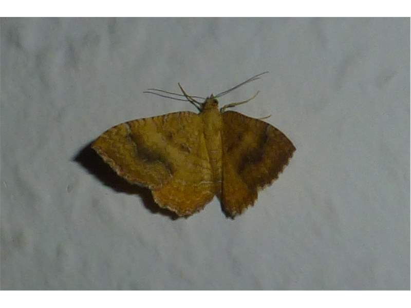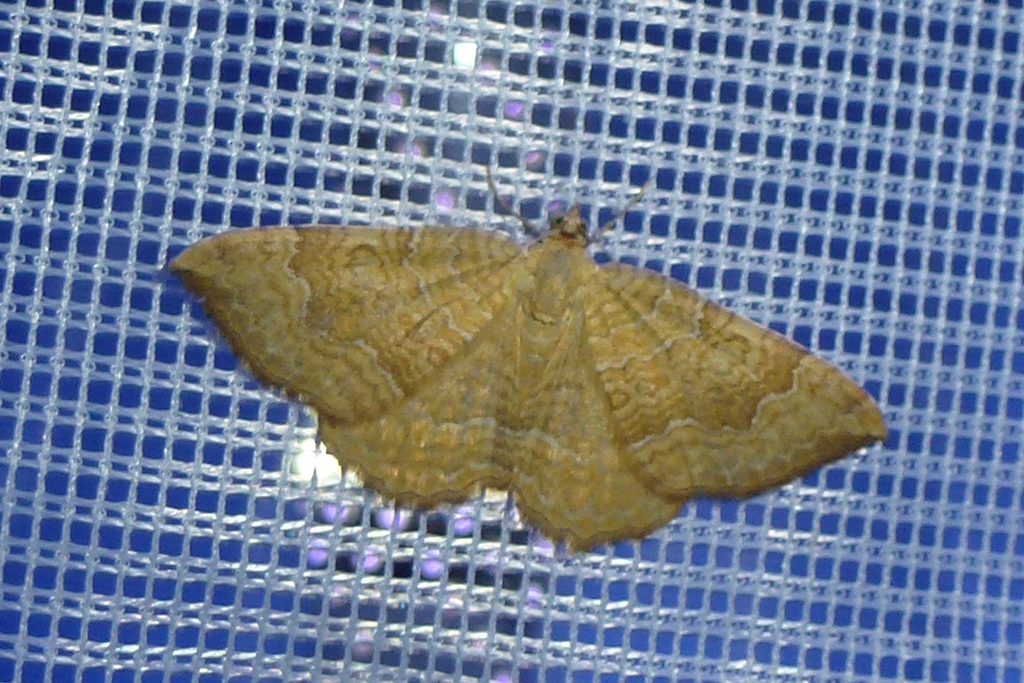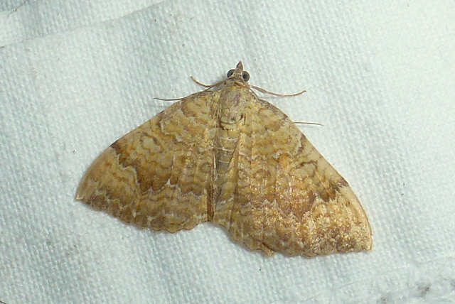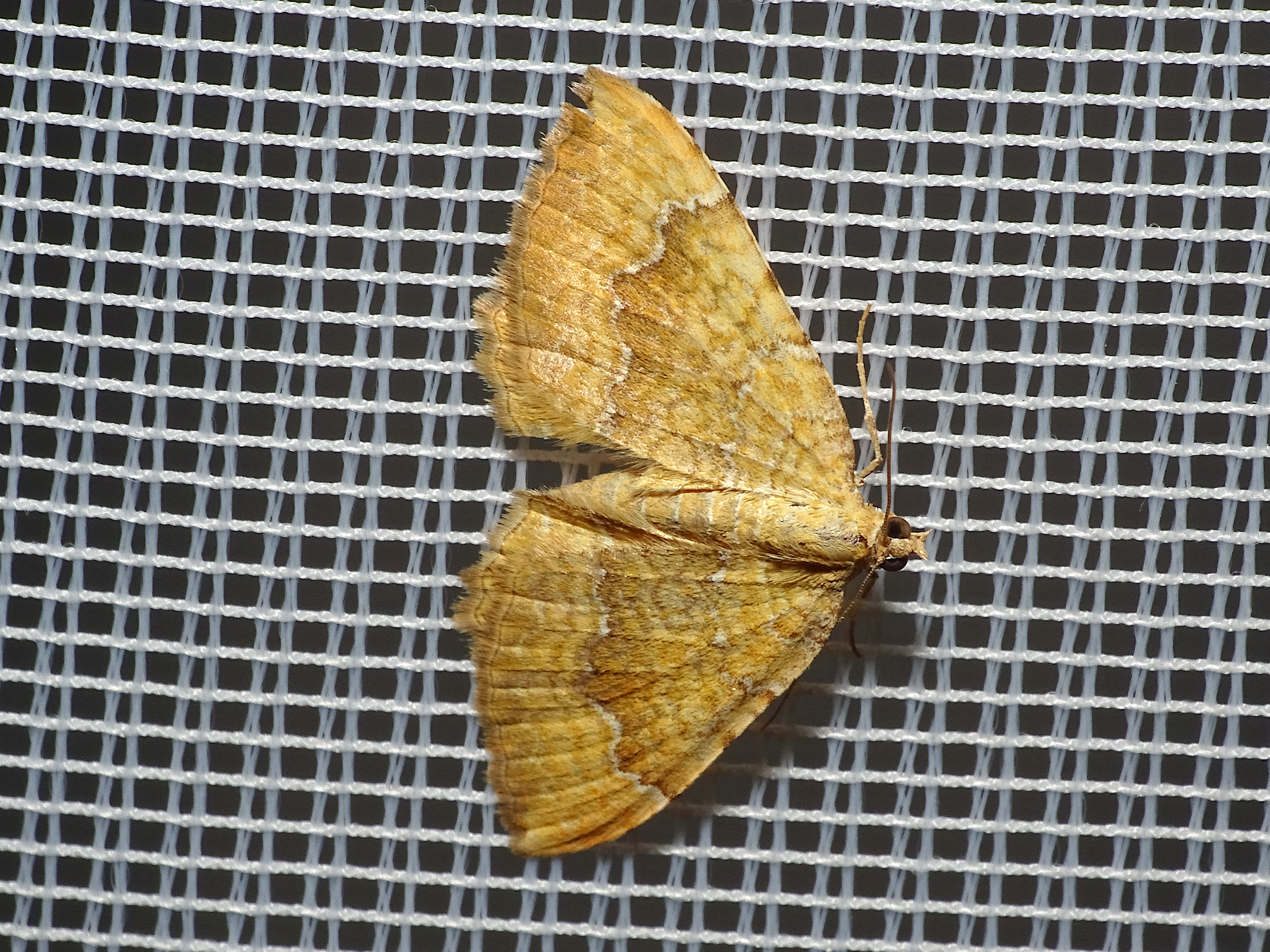 Ockergelbe Blattspanner, oder Löwenzahnspanner oder Brennnesselspanner (Camptogramma bilineata (Linnaeus, 1758)), am Licht, Radeberg, August 2013.